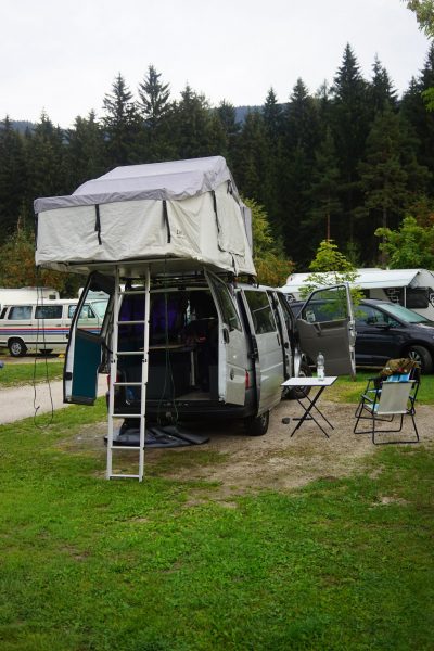 Nach der ein oder anderen Baustelle, kamen wir dann etwa 8 Stunden später in Südtirol an. Dort suchten wir direkt unseren Campingplatz auf und bauten das Dachzelt für die erste Nacht auf. Nach einem königlichen Abendmahl bestehend aus Baked Beans aus der Dose und Oliven konnten wir zufrieden ins eiskalte Bett gehen.
