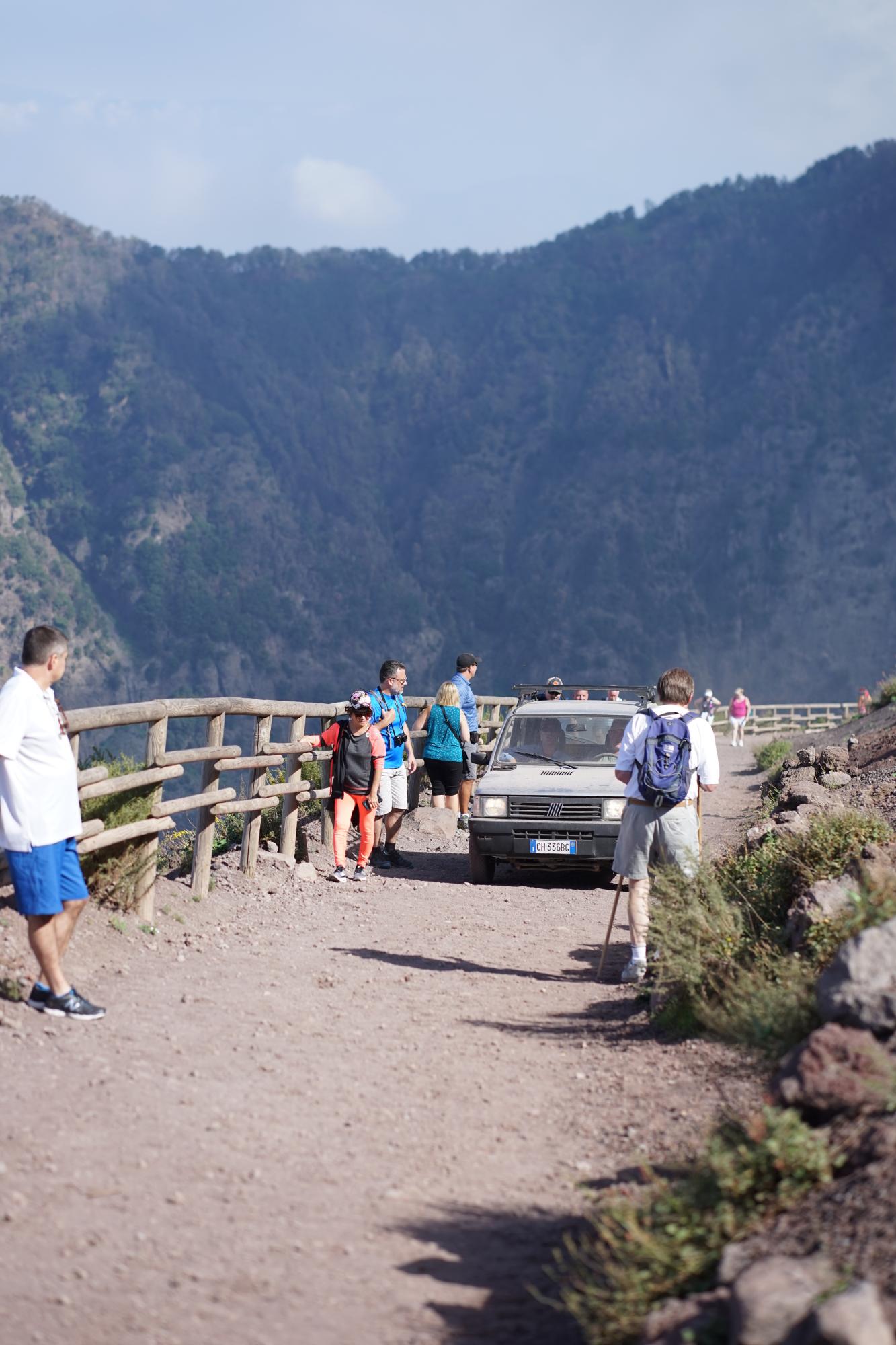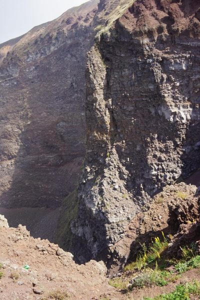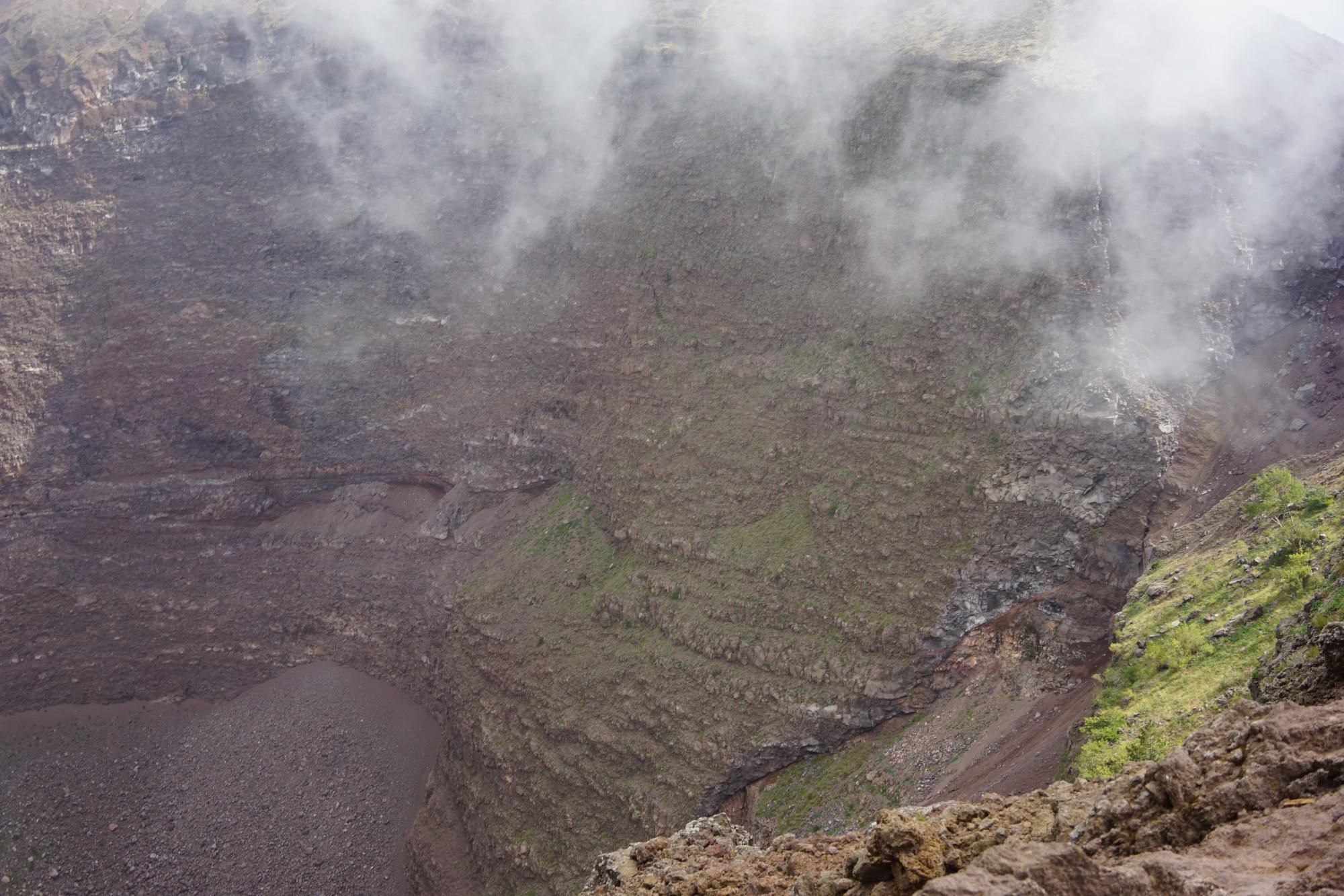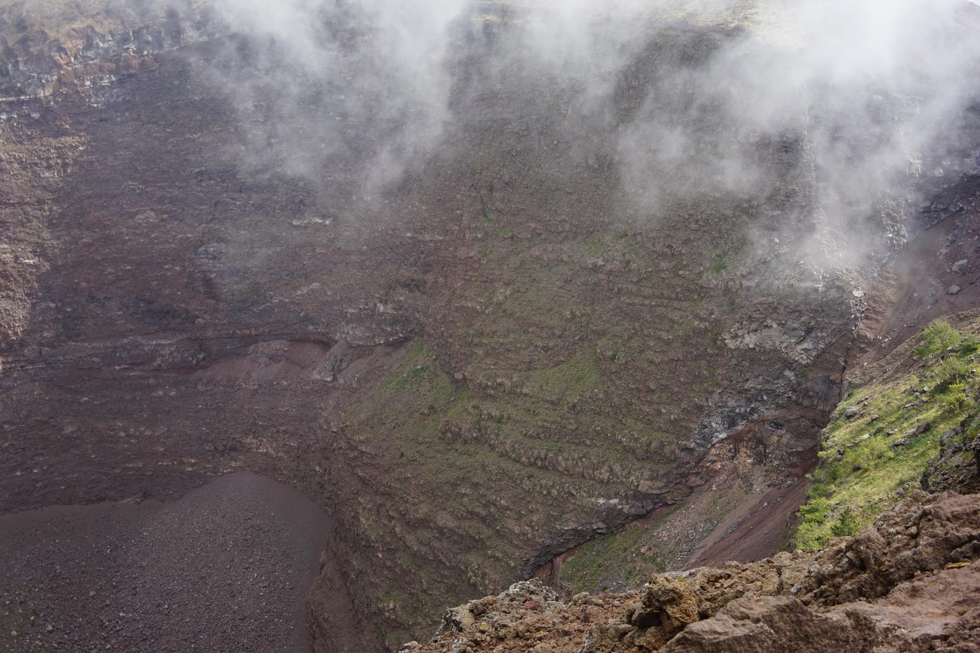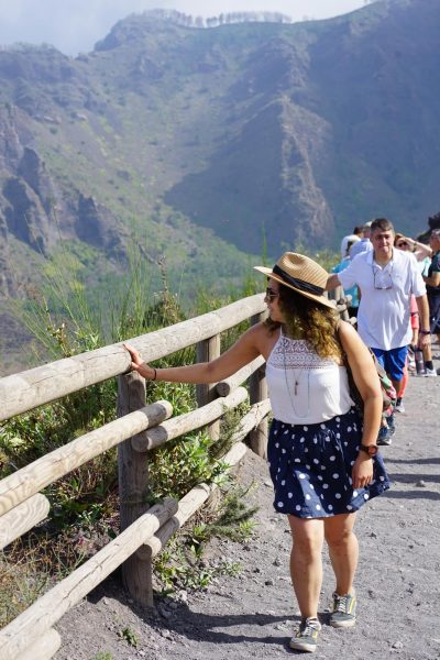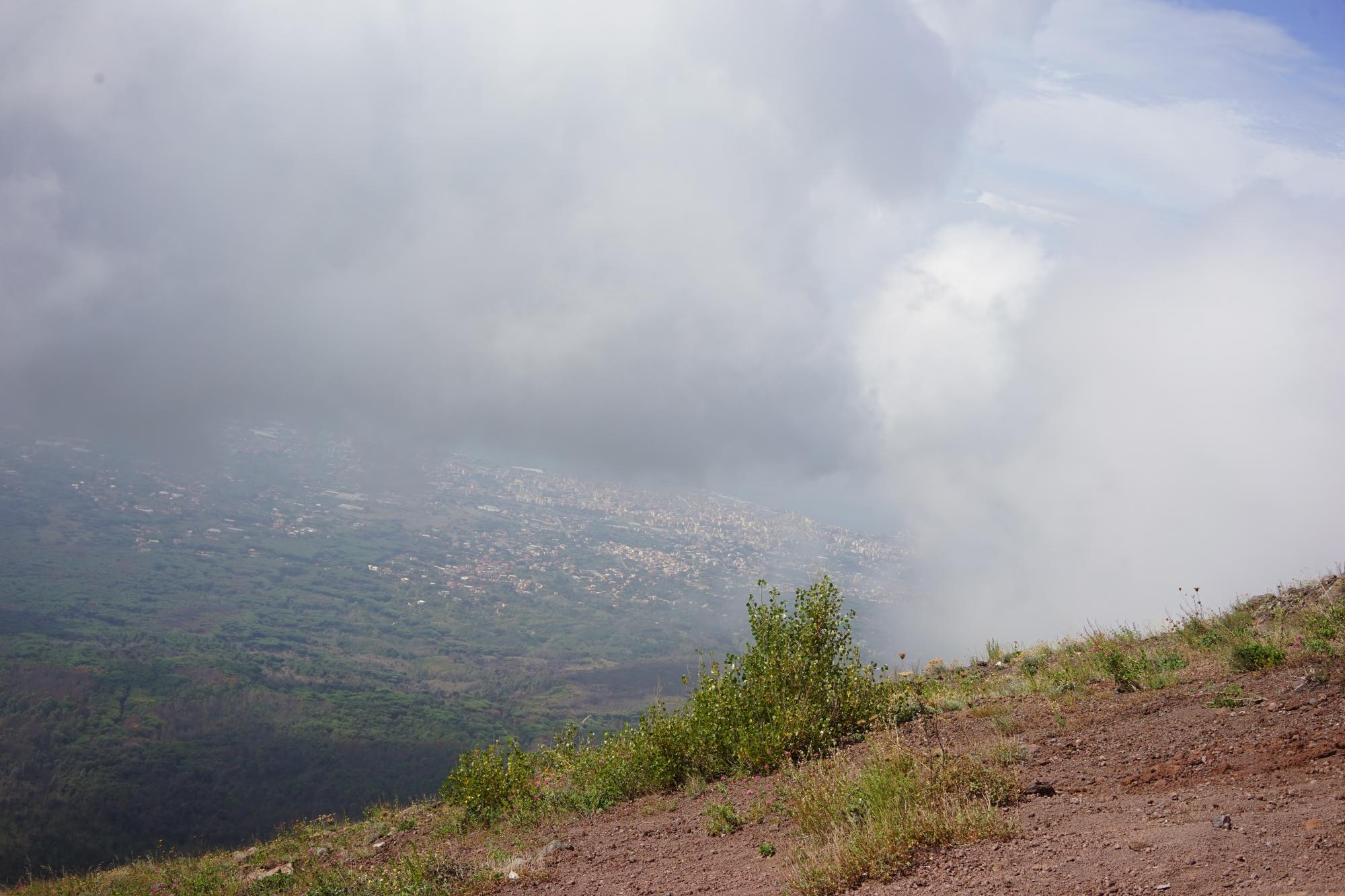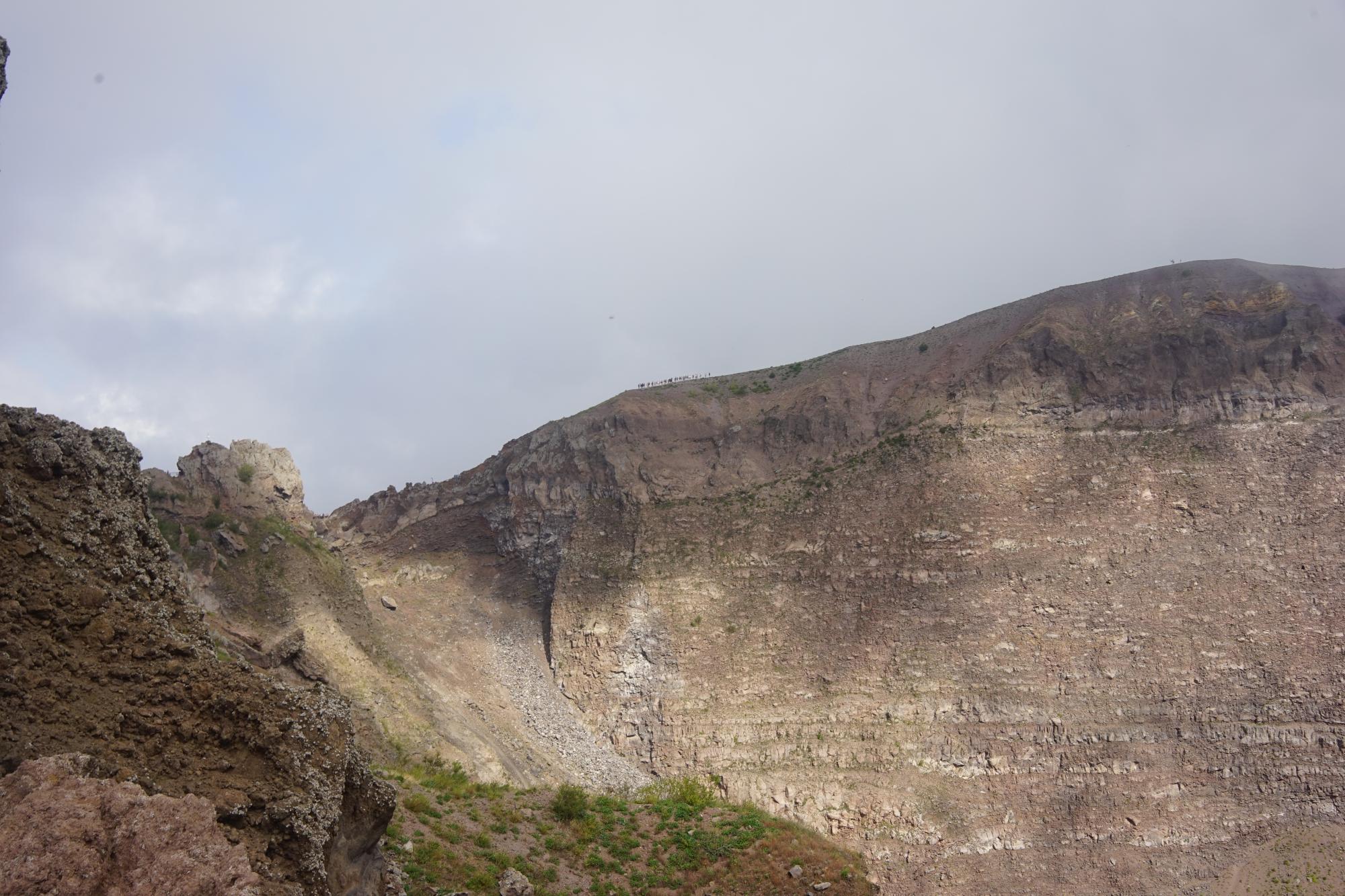 Nach dem Frühstück stand dann ein volles Programm für den zweiten Tag an. Als erstes fuhren wir mit dem Bus auf den Vesuv, wobei der Bus die meiste Zeit im stehenden Zustand verbachte da der Fahrer wild gestikulierend telefonieren musste. Generell ist in Italien jeder immer und überall am Telefonieren. Vor allem auf der Autobahn bei 120 km/h. Am Vesus angekommen ging es zu Fuß eine halbe Stunde steil bergauf. Wobei die Landschaft mehr an einen Spaziergang auf dem Mars erinnerte. Der Krater an sich war dann recht unspektakulär und der Vulkan machte nicht den Eindruck in nächster Zeit ausbrechen zu wollen. Die Aussicht war den Aufstieg aber trotzdem wert.