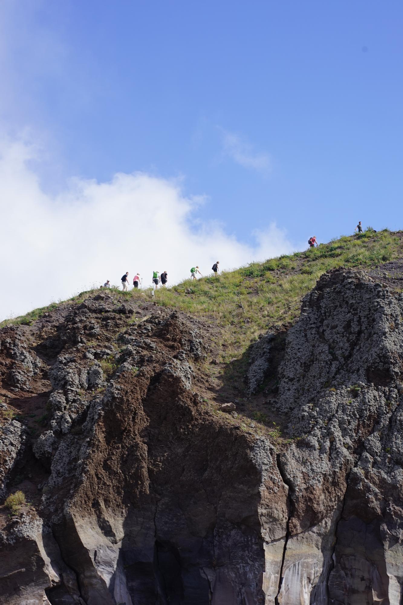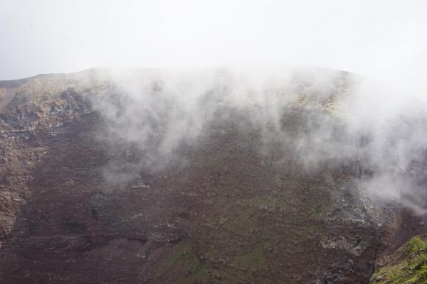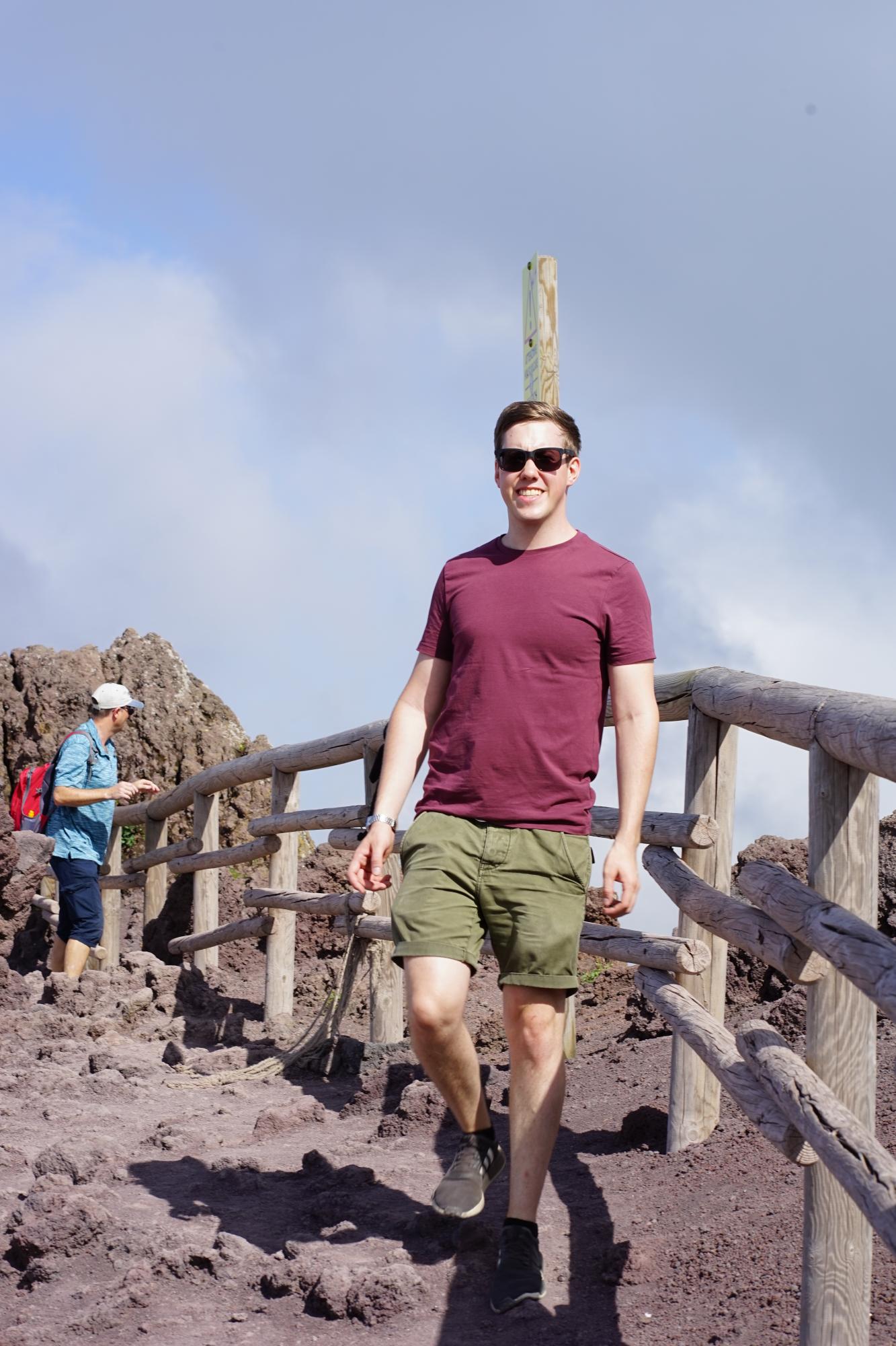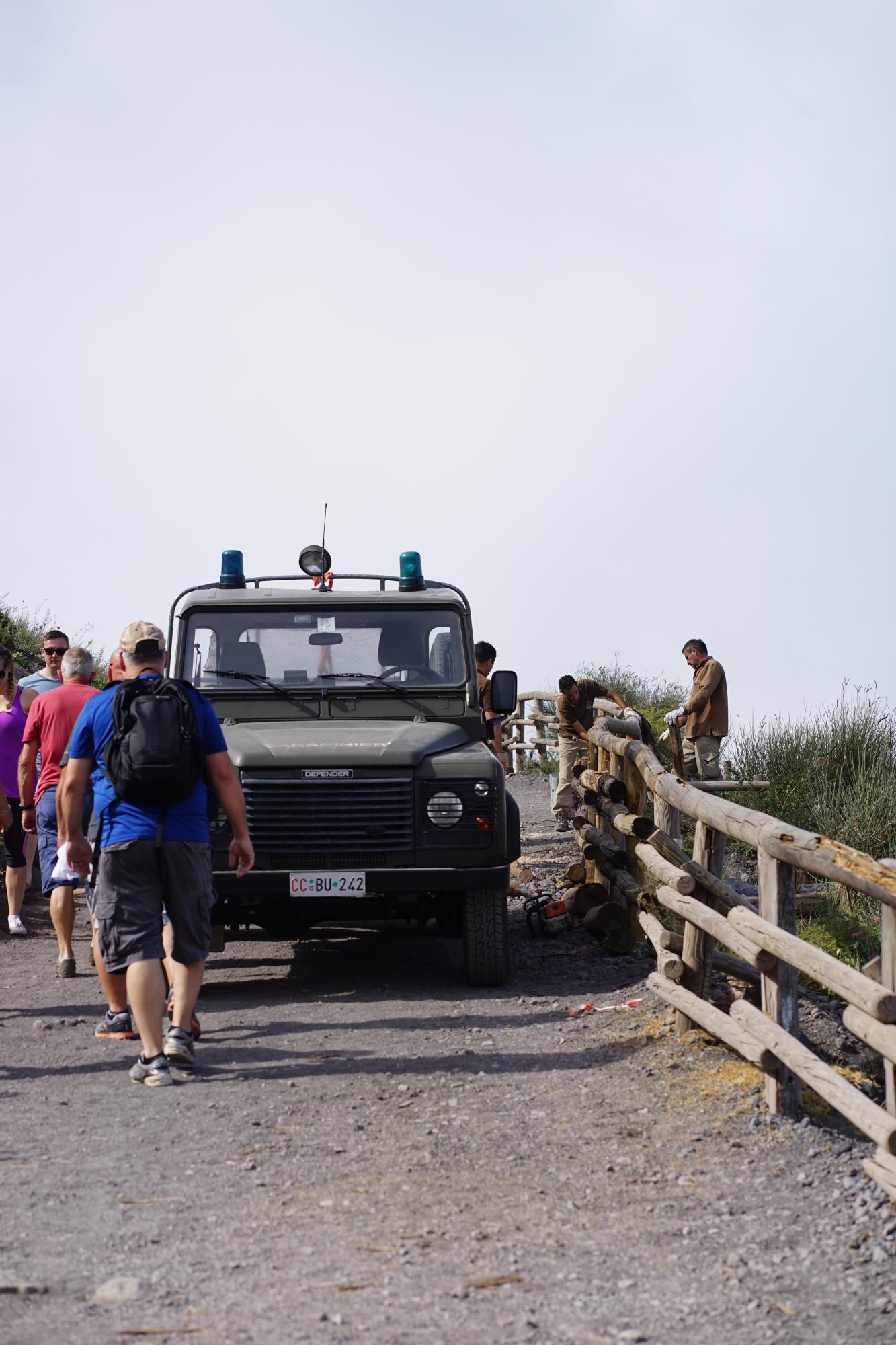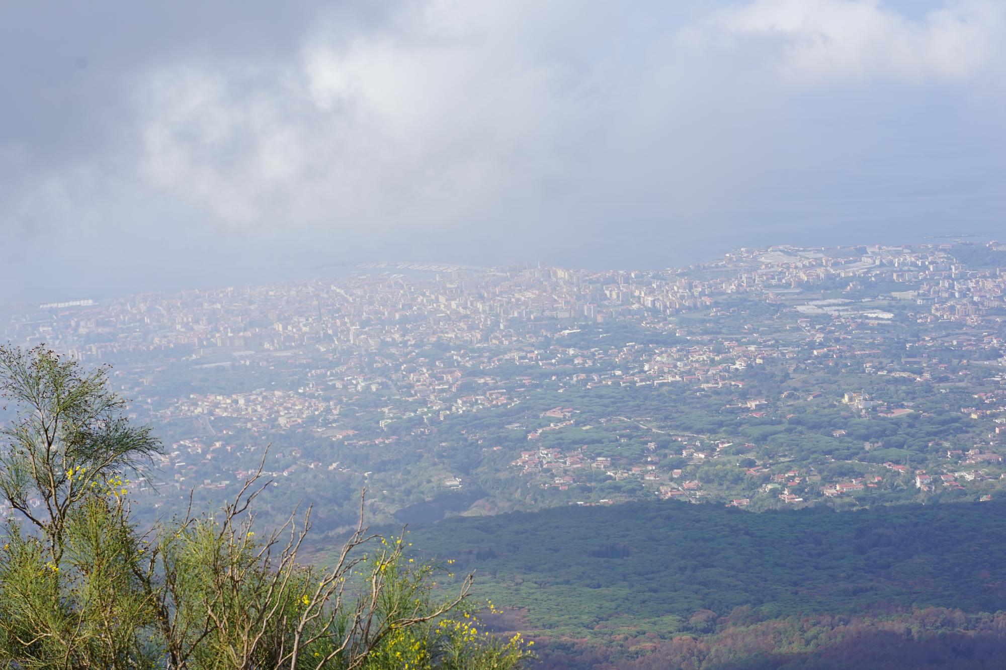 Nach dem Frühstück stand dann ein volles Programm für den zweiten Tag an. Als erstes fuhren wir mit dem Bus auf den Vesuv, wobei der Bus die meiste Zeit im stehenden Zustand verbachte da der Fahrer wild gestikulierend telefonieren musste. Generell ist in Italien jeder immer und überall am Telefonieren. Vor allem auf der Autobahn bei 120 km/h. Am Vesus angekommen ging es zu Fuß eine halbe Stunde steil bergauf. Wobei die Landschaft mehr an einen Spaziergang auf dem Mars erinnerte. Der Krater an sich war dann recht unspektakulär und der Vulkan machte nicht den Eindruck in nächster Zeit ausbrechen zu wollen. Die Aussicht war den Aufstieg aber trotzdem wert.