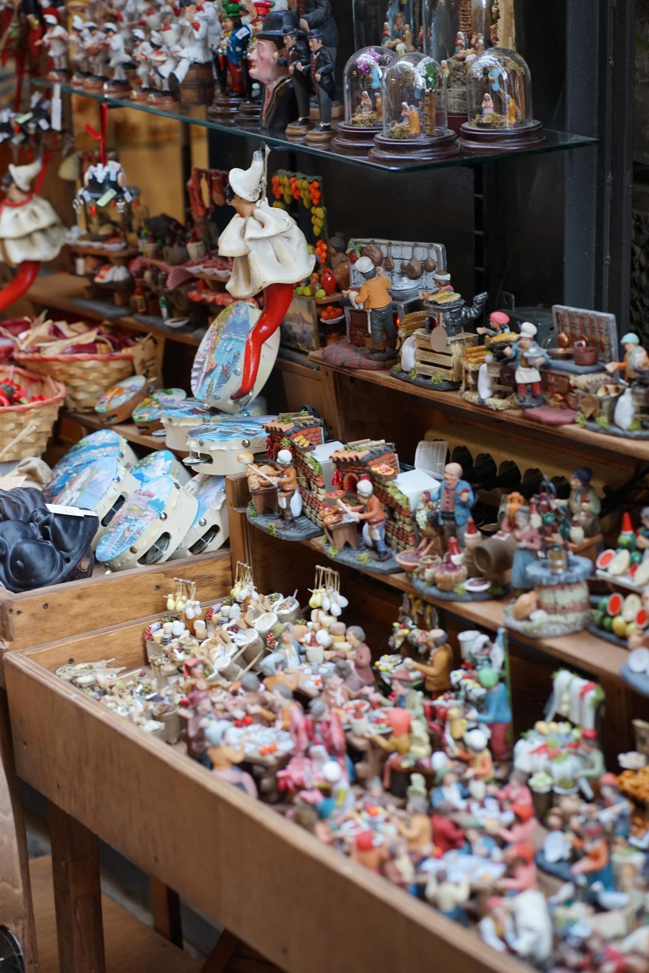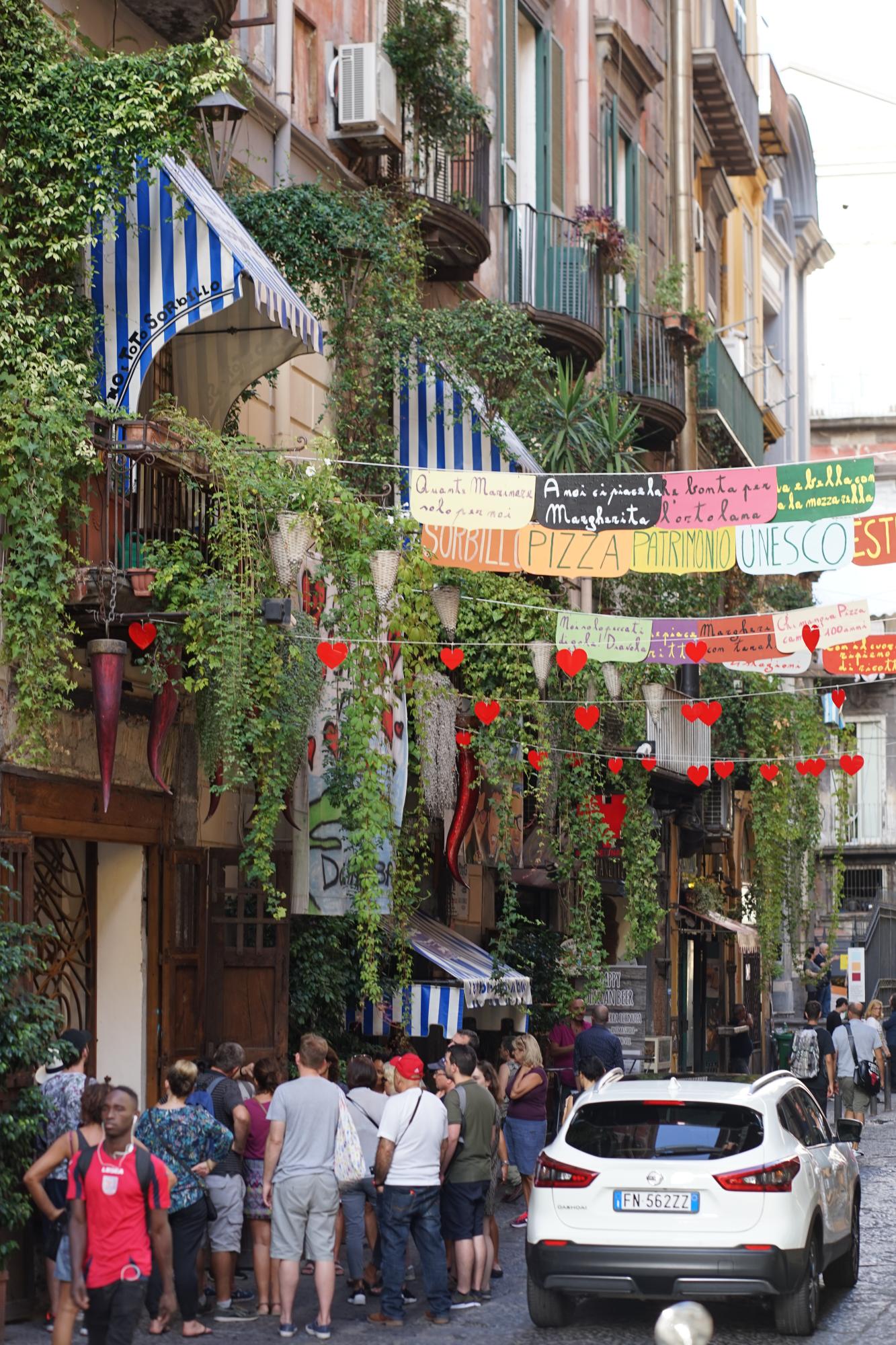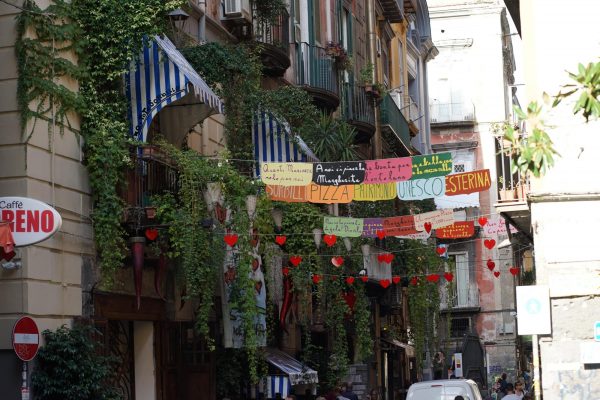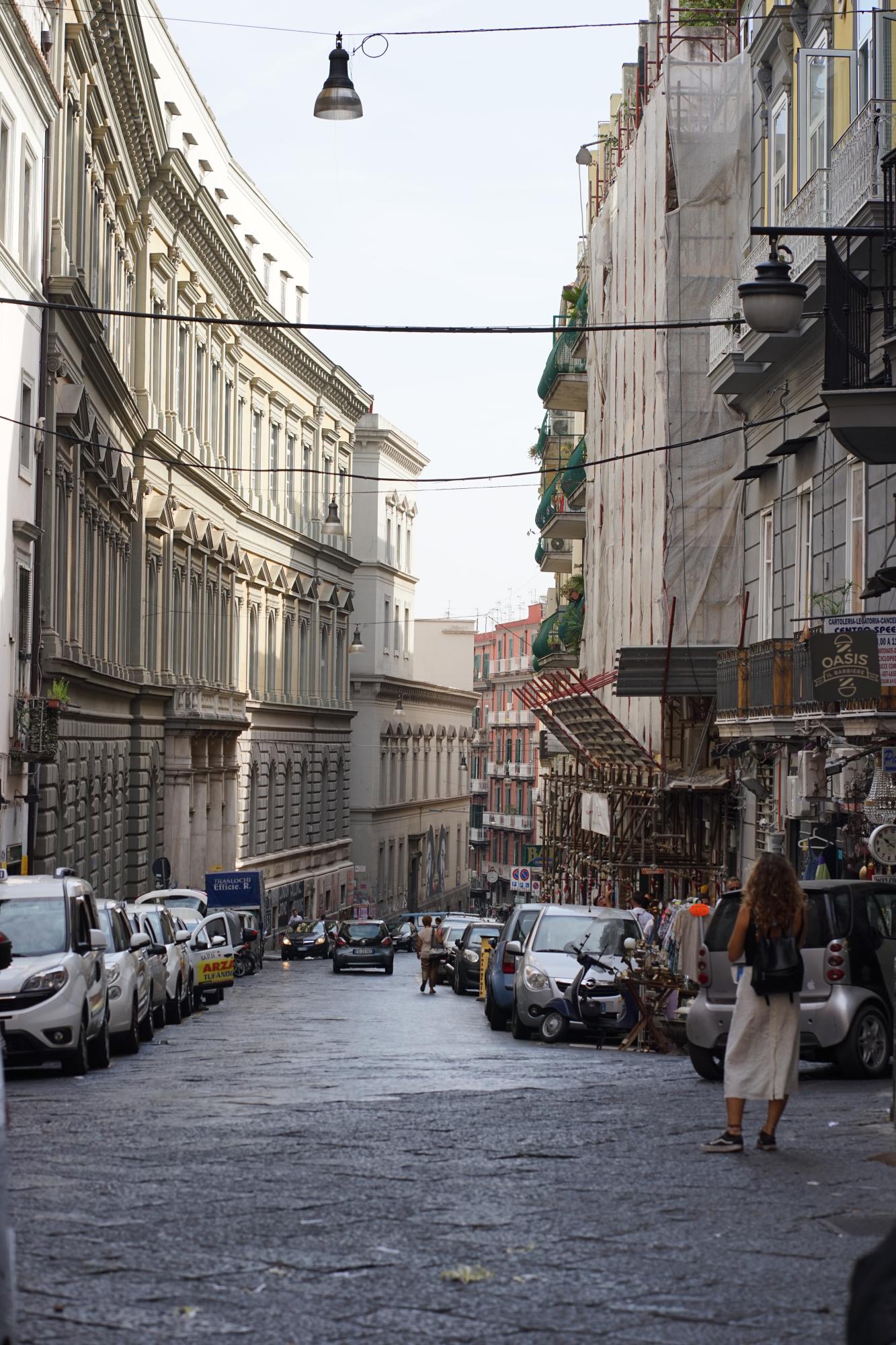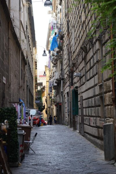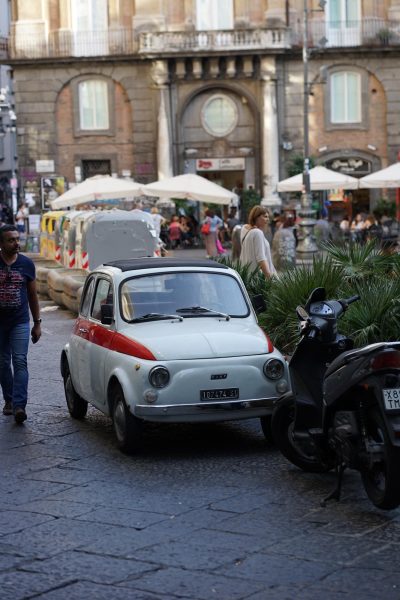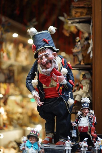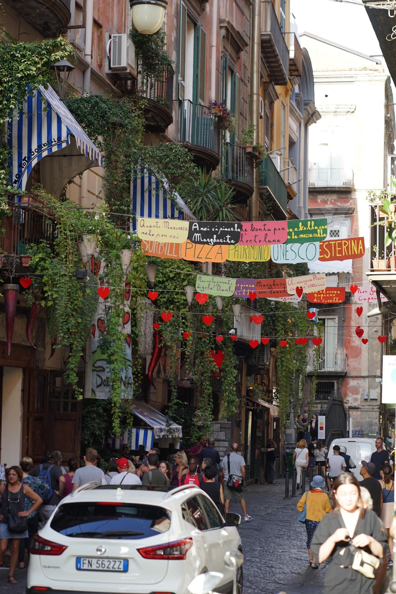 Zurück in Pompei stiegen wir dann in den Zug nach Neapel, wo wir am Hauptbahnhof erstmal vom Chaos und der puren Unordnung überwältigt waren. Über all auf den Straßen lag Plastikmüll herum und die alten schmalen Gassen waren komplett verstopft mit Autos und Motorollern. Der erste interessante Stopp für mich war dann das Viertel in dem das ganze Jahr über Grippen und anderer Nippes hergestellt werden. Eine beeindruckende Anzahl an Jesus Kindern und andere skurriler Figuren wurde uns geboten. Ein Großteil davon wird Vorort bemalt und hergestellt. Neben der Dekoration wurden uns die obligatorischen Handtaschen von Gucci und Versace auch an jeder Ecke angeboten.