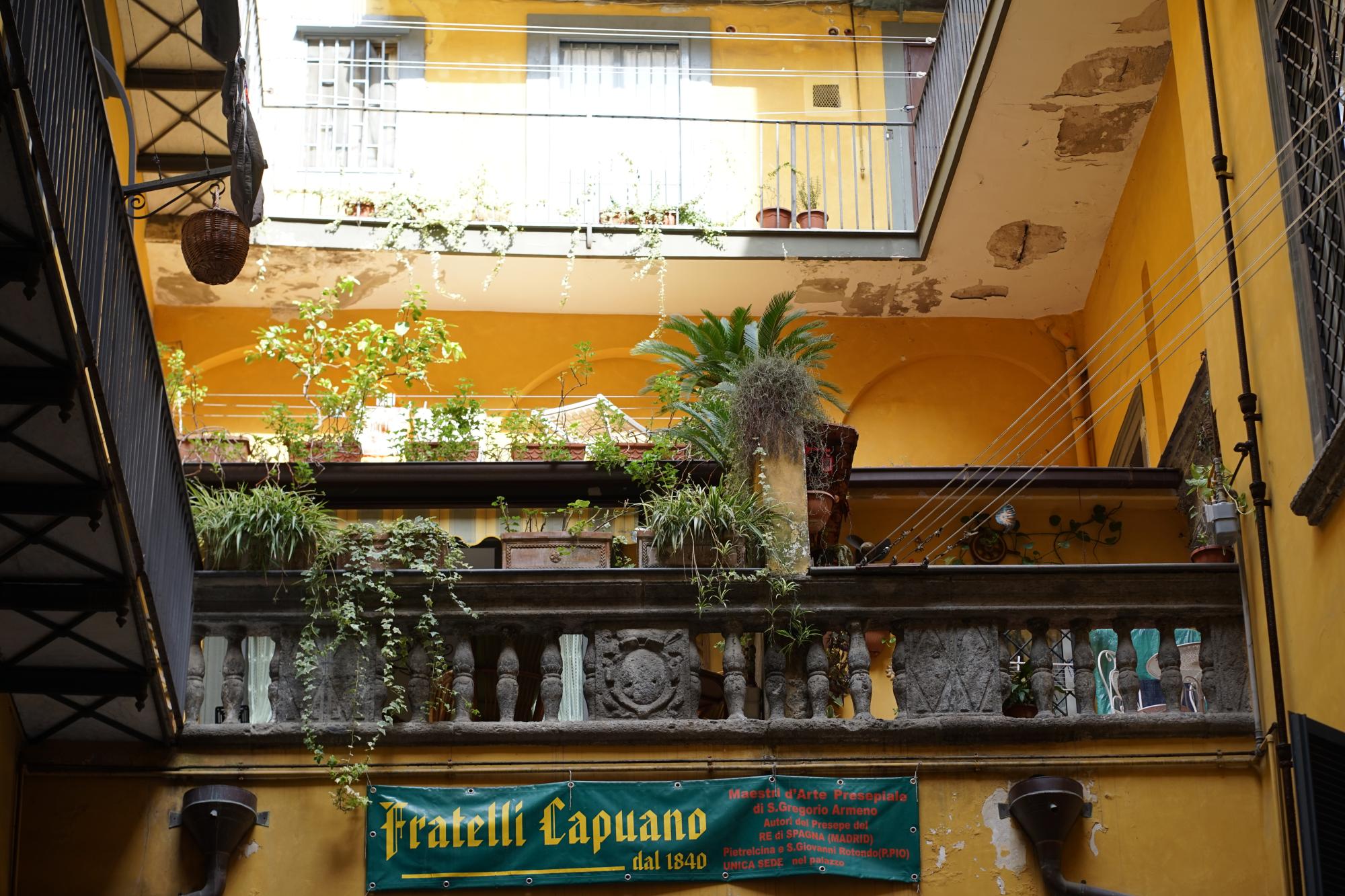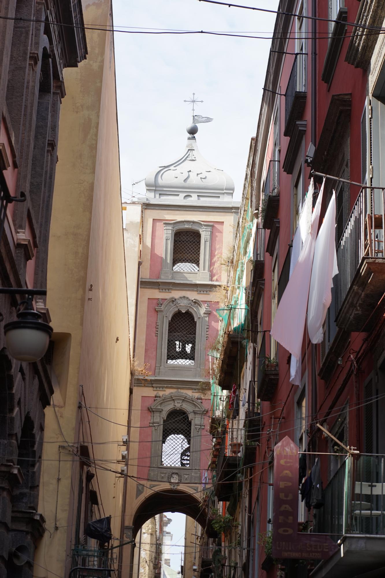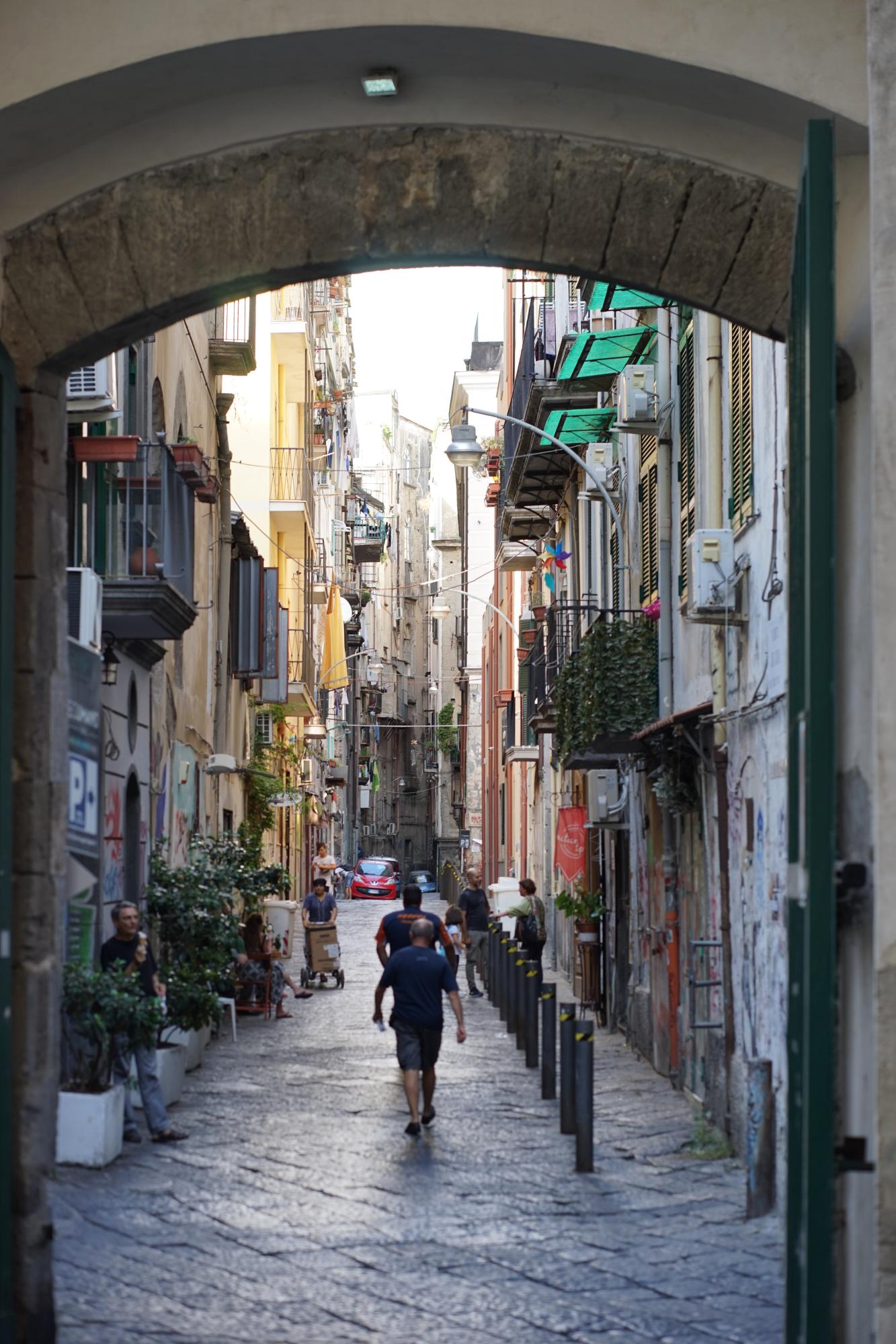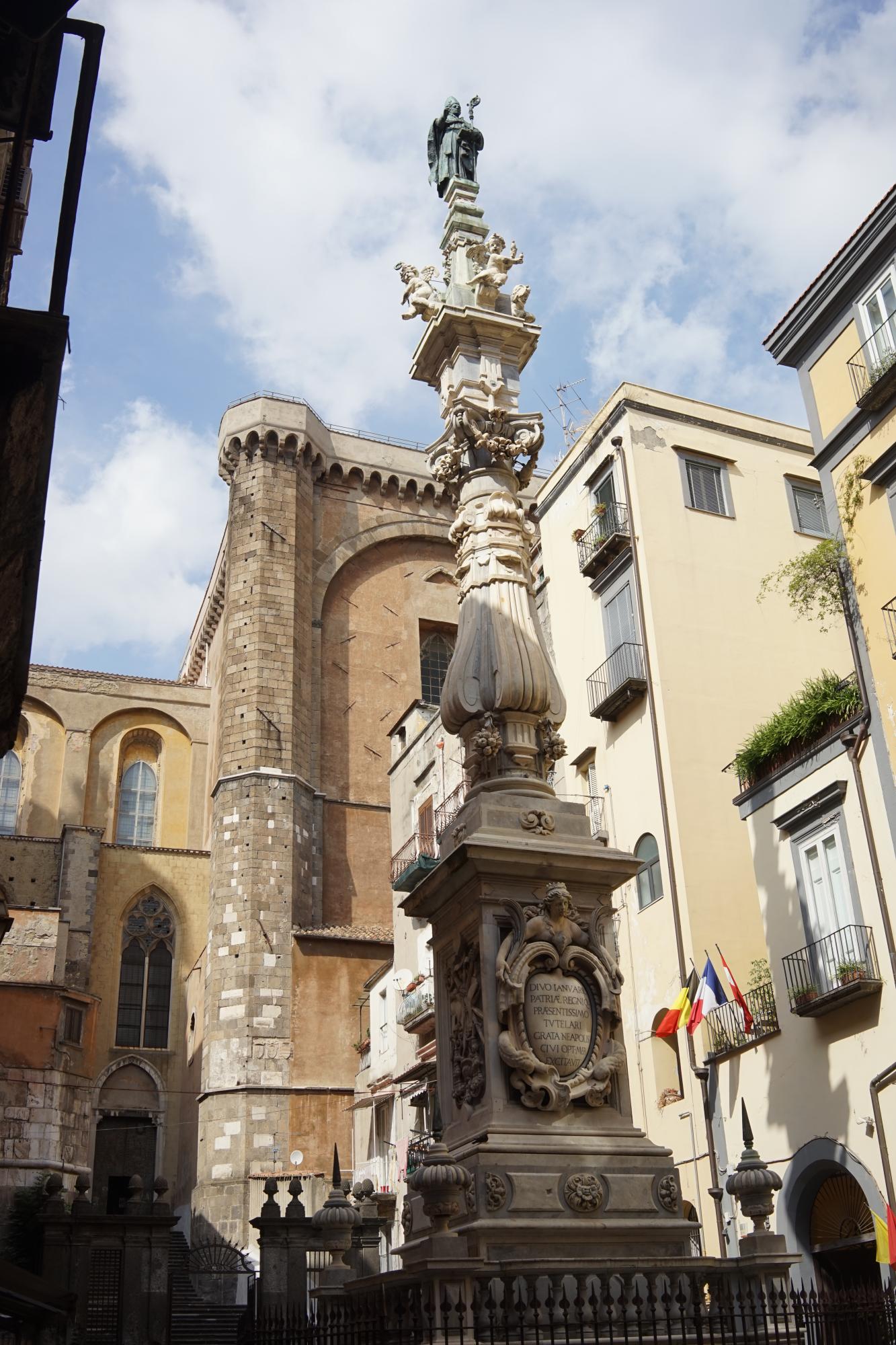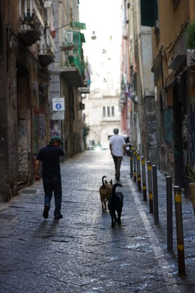 Zurück in Pompei stiegen wir dann in den Zug nach Neapel, wo wir am Hauptbahnhof erstmal vom Chaos und der puren Unordnung überwältigt waren. Über all auf den Straßen lag Plastikmüll herum und die alten schmalen Gassen waren komplett verstopft mit Autos und Motorollern. Der erste interessante Stopp für mich war dann das Viertel in dem das ganze Jahr über Grippen und anderer Nippes hergestellt werden. Eine beeindruckende Anzahl an Jesus Kindern und andere skurriler Figuren wurde uns geboten. Ein Großteil davon wird Vorort bemalt und hergestellt. Neben der Dekoration wurden uns die obligatorischen Handtaschen von Gucci und Versace auch an jeder Ecke angeboten.