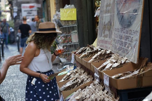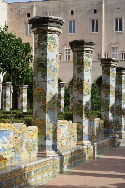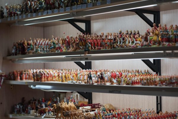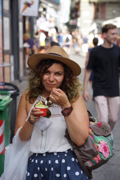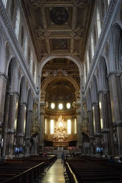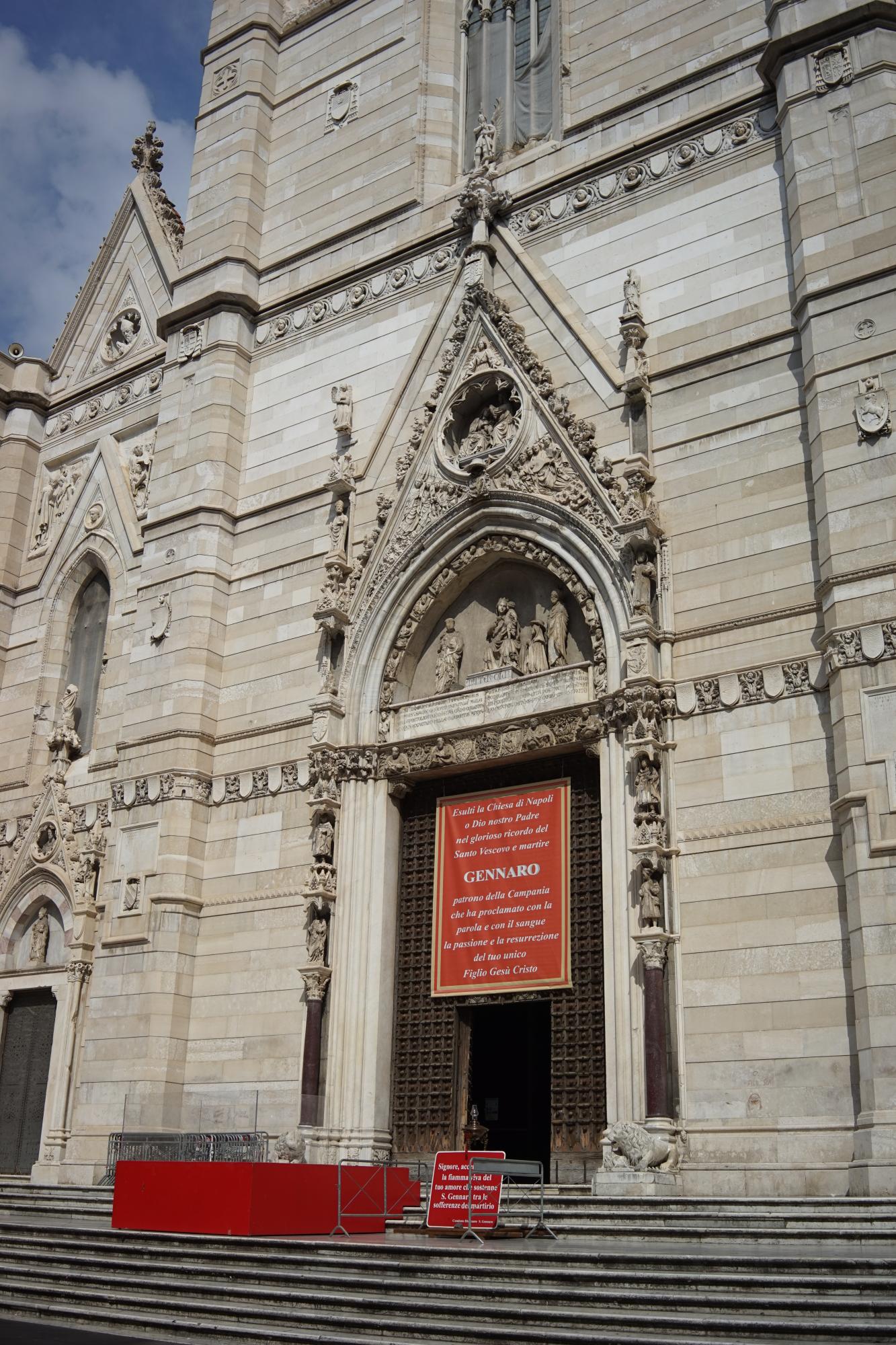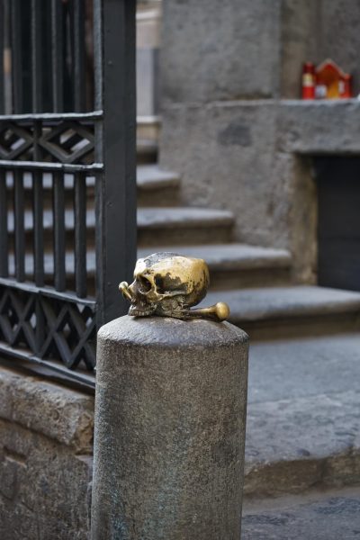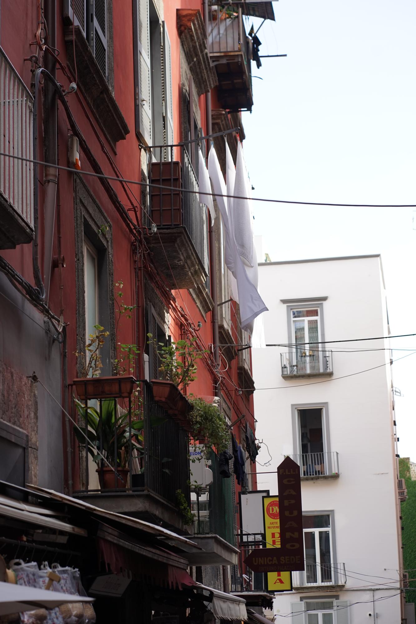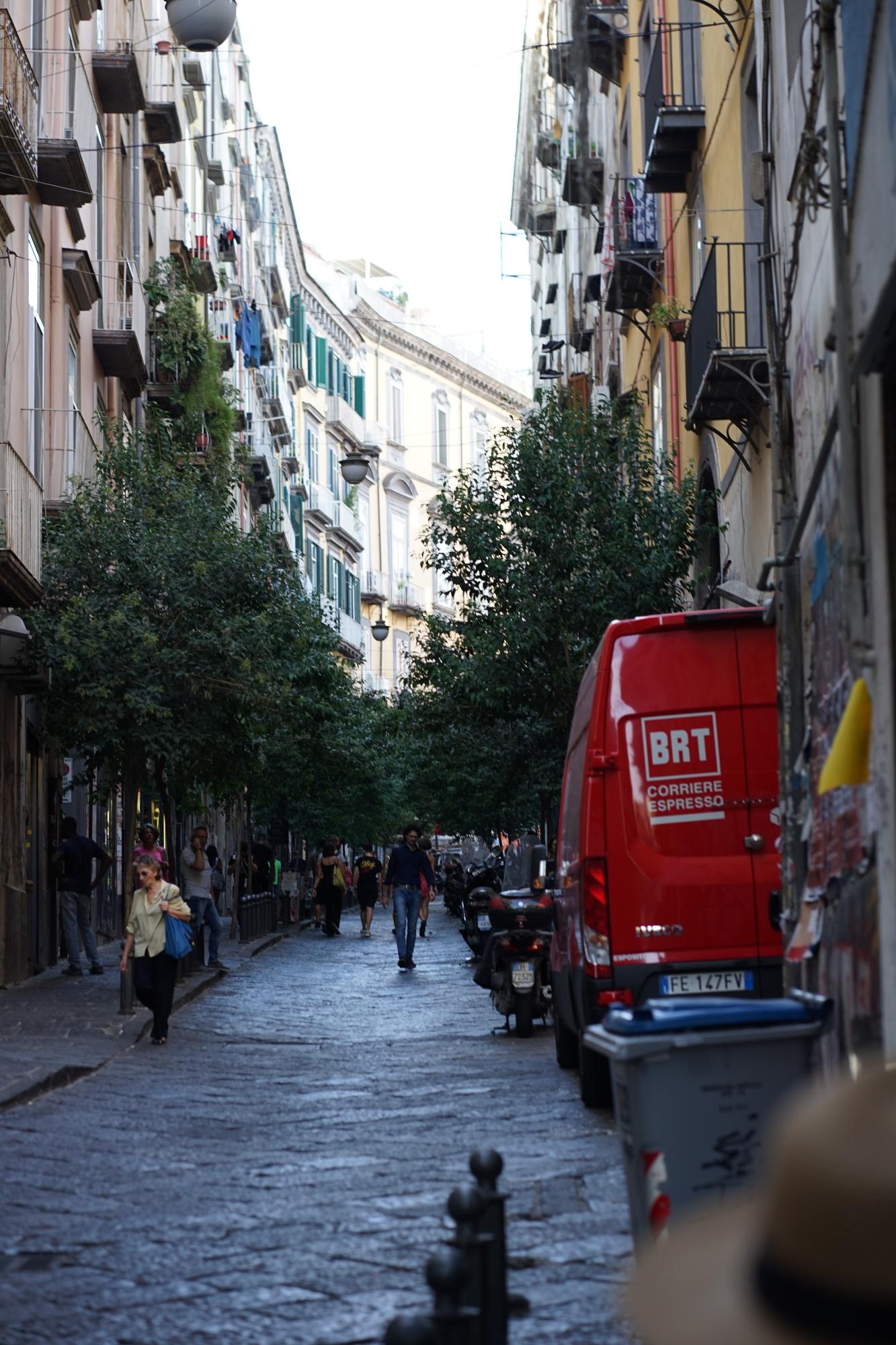 Zurück in Pompei stiegen wir dann in den Zug nach Neapel, wo wir am Hauptbahnhof erstmal vom Chaos und der puren Unordnung überwältigt waren. Über all auf den Straßen lag Plastikmüll herum und die alten schmalen Gassen waren komplett verstopft mit Autos und Motorollern. Der erste interessante Stopp für mich war dann das Viertel in dem das ganze Jahr über Grippen und anderer Nippes hergestellt werden. Eine beeindruckende Anzahl an Jesus Kindern und andere skurriler Figuren wurde uns geboten. Ein Großteil davon wird Vorort bemalt und hergestellt. Neben der Dekoration wurden uns die obligatorischen Handtaschen von Gucci und Versace auch an jeder Ecke angeboten.