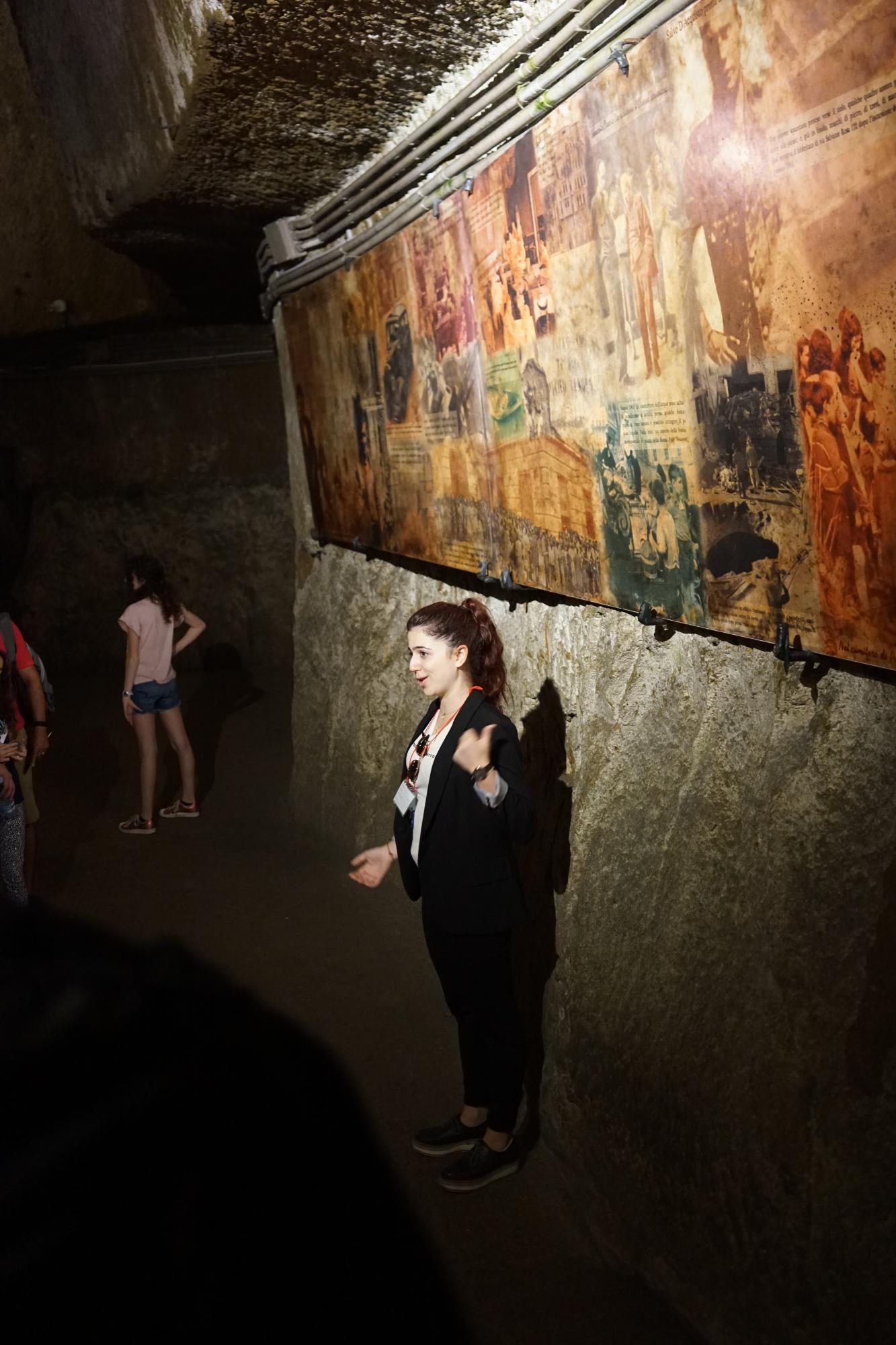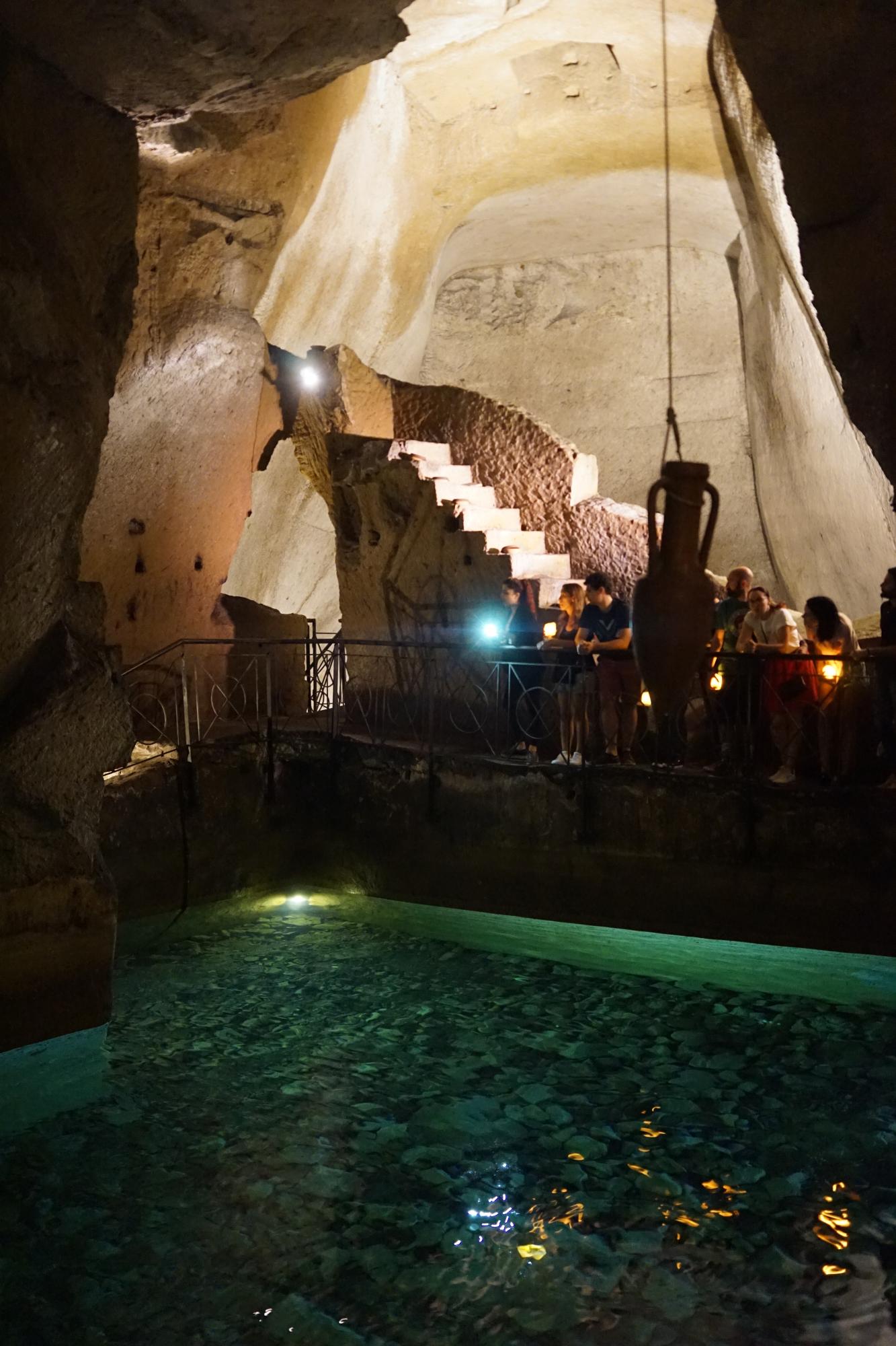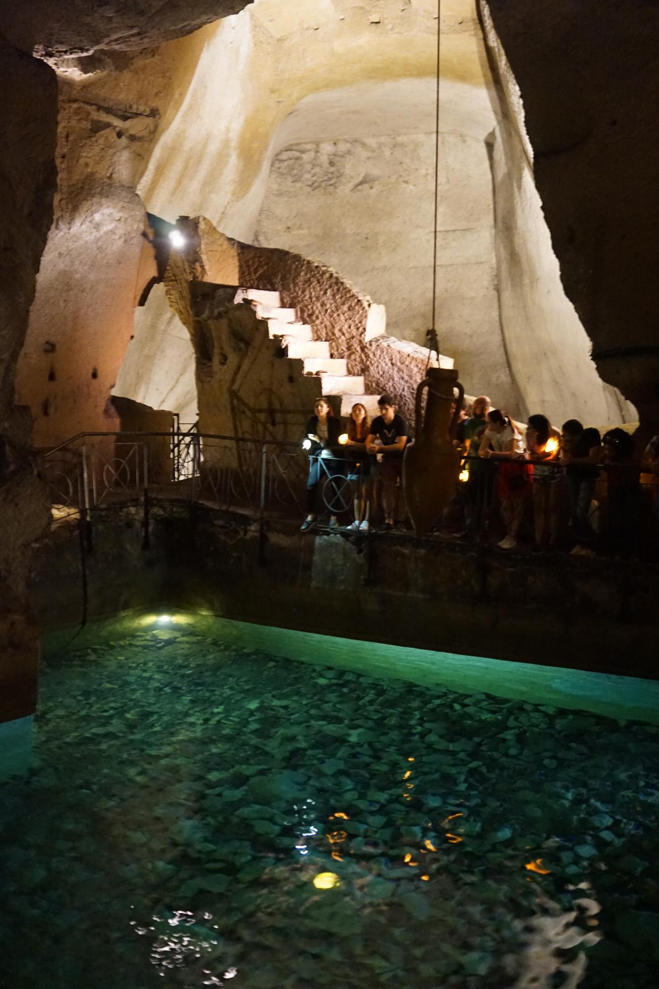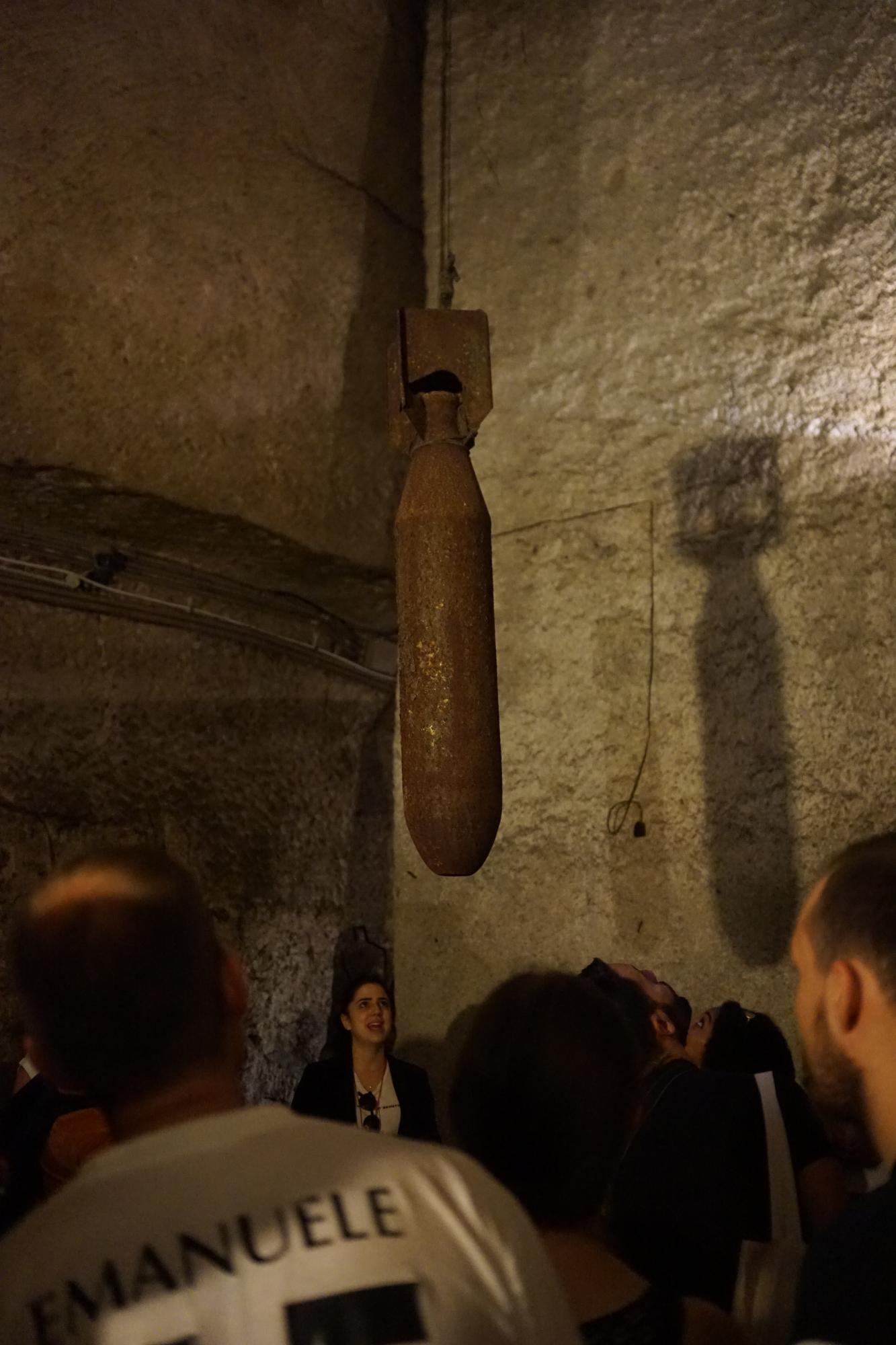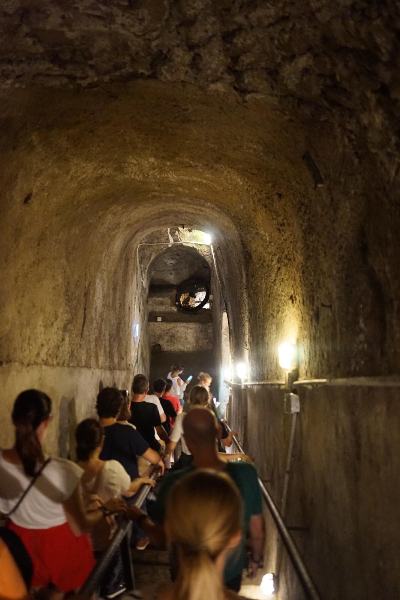 Den Abschluss der Tagestour bildete dann noch ein Besuch der unterirdischen Gänge von Neapel. Diese dienten über die Jahre verschiedener Einsatzzwecke. Zunächst als Zisternen dann als riesige Müllhalde und später im zweiten Weltkrieg als Bombenschutzräume. Hierbei ist zu erwähnen das die etwa fünf Meter hohen Räume nicht erst vom Müll befreit wurden, sondern man einfach Beton über die Müllmassen kippte um einen ebenen Boden zu erhalten. Damit sind die Räume heute auch nur noch etwa drei Meter hoch. Neapel hat also schon länger Probleme mit Müll.