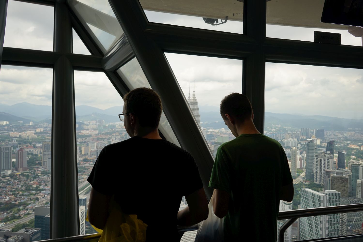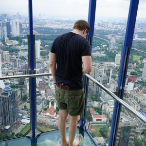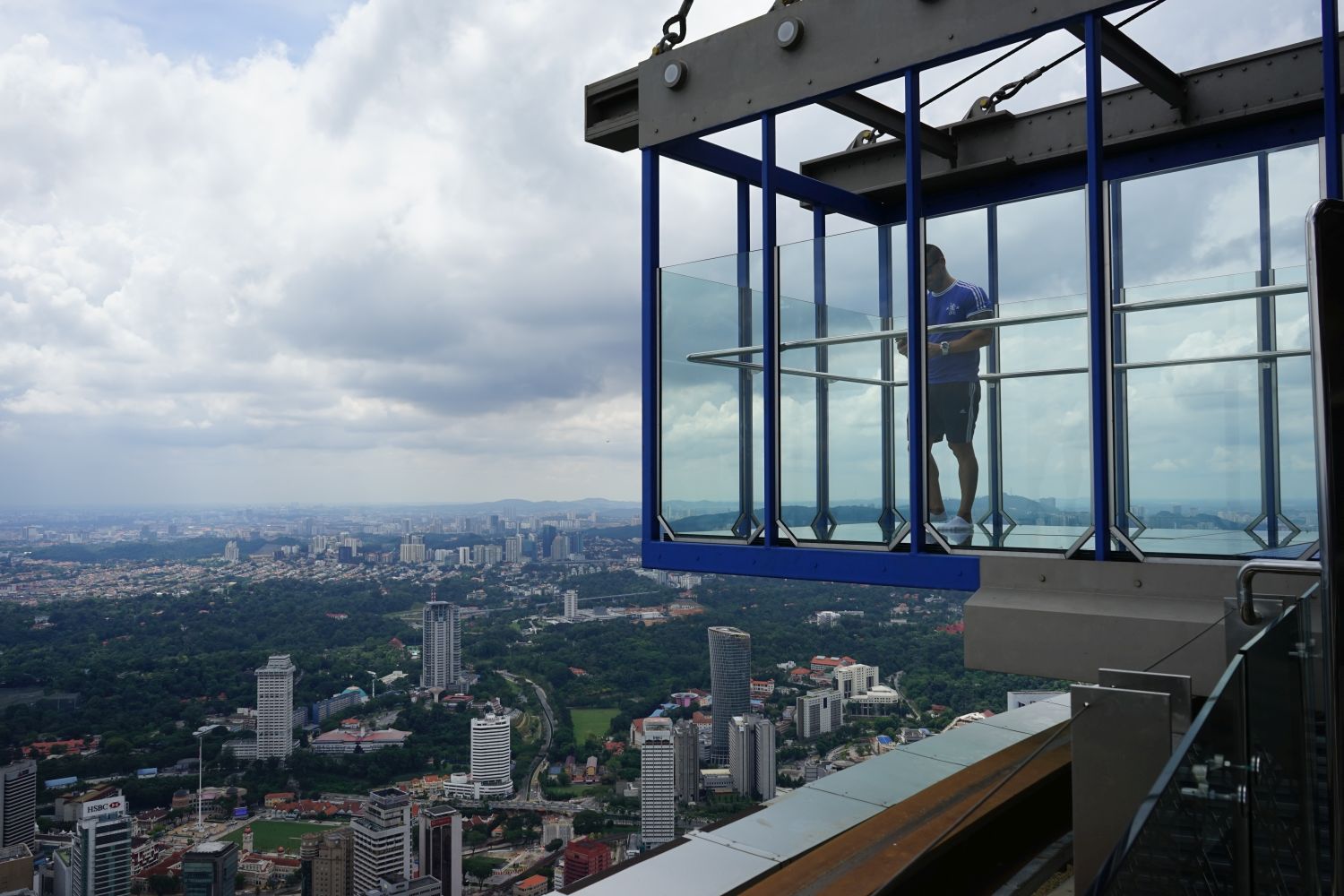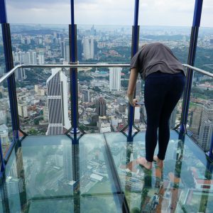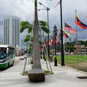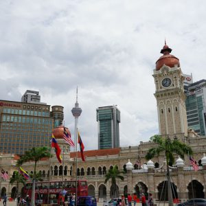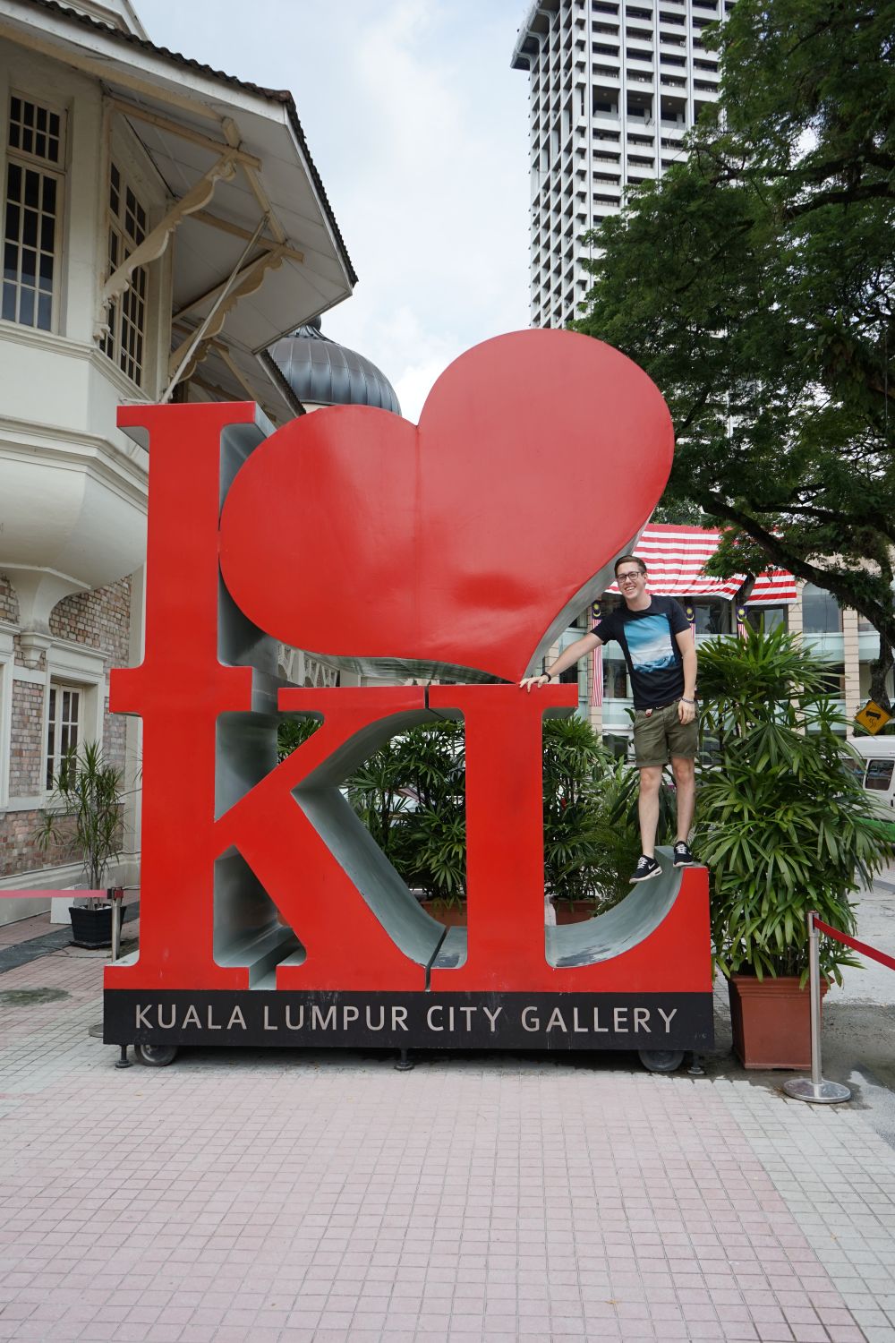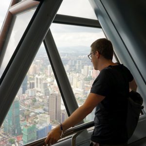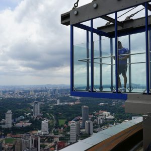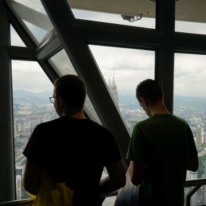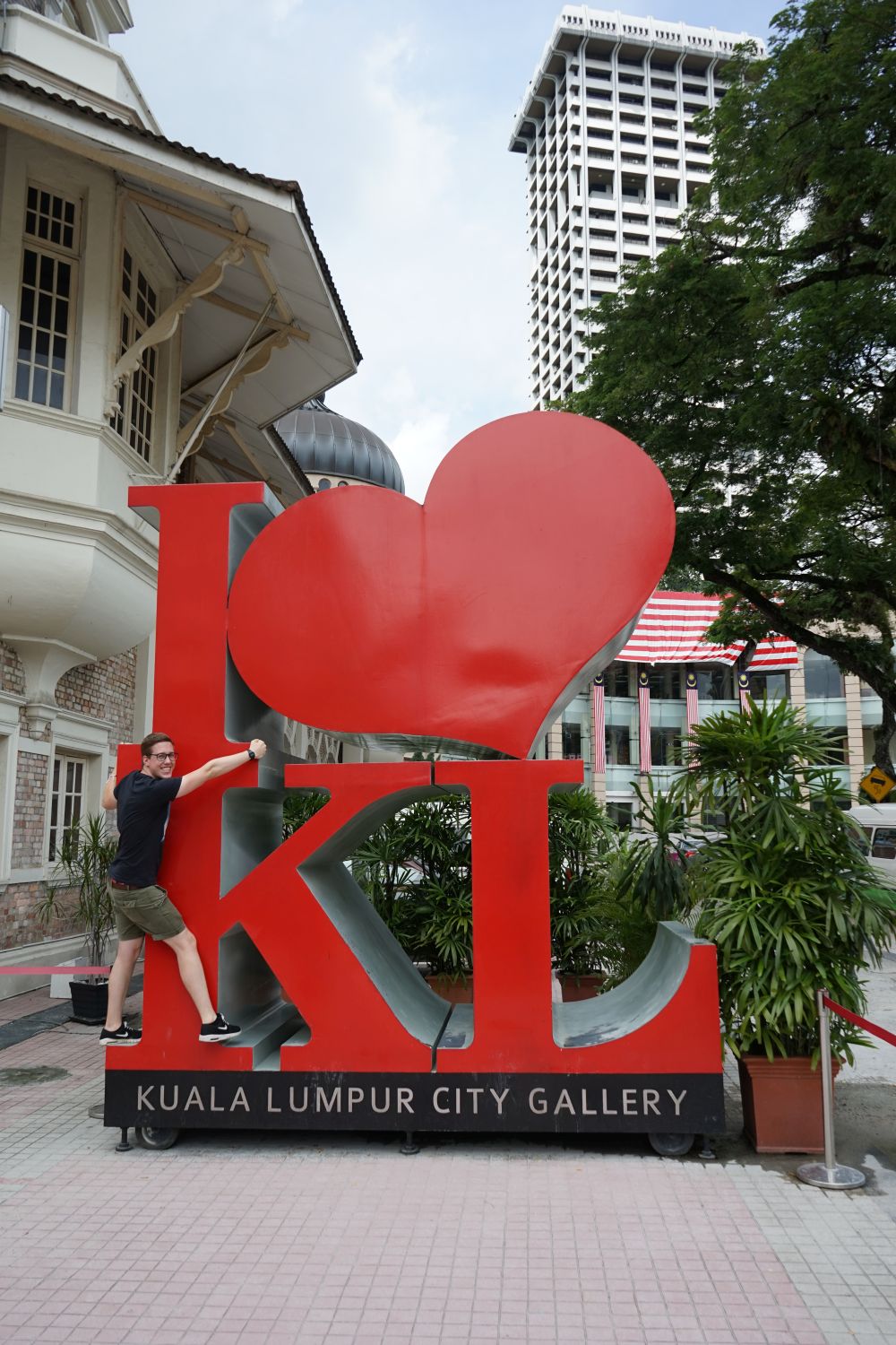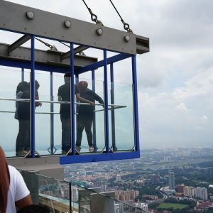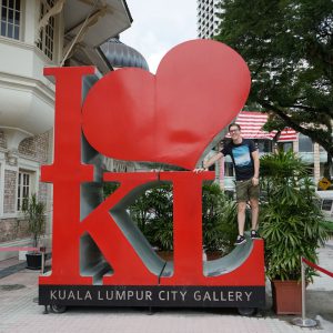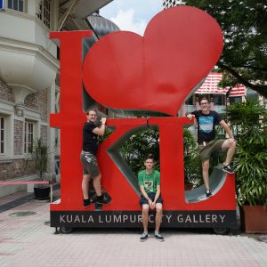 Nach dem gestrigen Regentag war es heute wieder schön schwül heiß und wir machten uns auf die letzten Sehenswürdigkeiten von unserer Liste zu streichen. Zunächst war ein Besuch der National Gallery geplant, hauptsächlich um ein paar Bilder vor dem I❤KL Zeichen zu machen. Da wir ja aber eh schon da waren und die Gallery klimatisiert war verbrachten wir hier noch etwas Zeit. Anschließend liefen wir über den Merdeka Platz (Platz der Unabhängigkeit), der den riesigen Flaggenmast beheimatet und an das  Sultan Abdul Samad Building grenzt, welches während der britischen Kolonialzeit als Verwaltungsgebäude genutzt wurde und heute einige Ministerien beheimatet. Um noch etwas die Aussicht über der riesen Metropole zu genießen ging es zur Menara Kuala Lumpur dem höchsten Fernsehturm Malaysias. Dieser bietet als besonderes Highlight sogenannte Sky-Boxen, Glaskästen auf einer Höhe von etwa 400m. Gerade für Max war das ein Highlight, er konnte den Aufenthalt in der Box auf Grund seiner Höhenangst richtig genießen. Der Rest des Abends verlief bis auf etwas Shopping relativ unspektakulär.