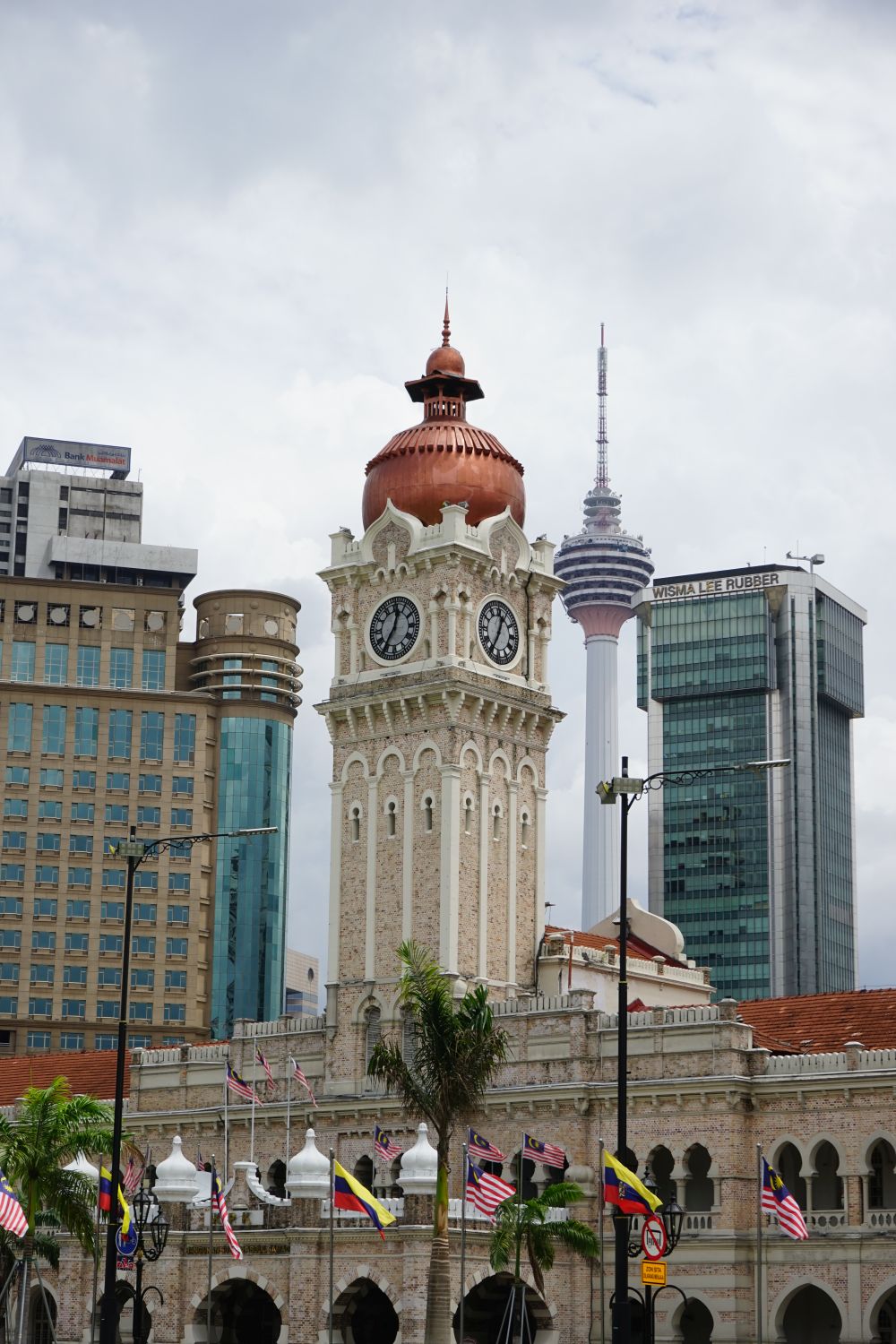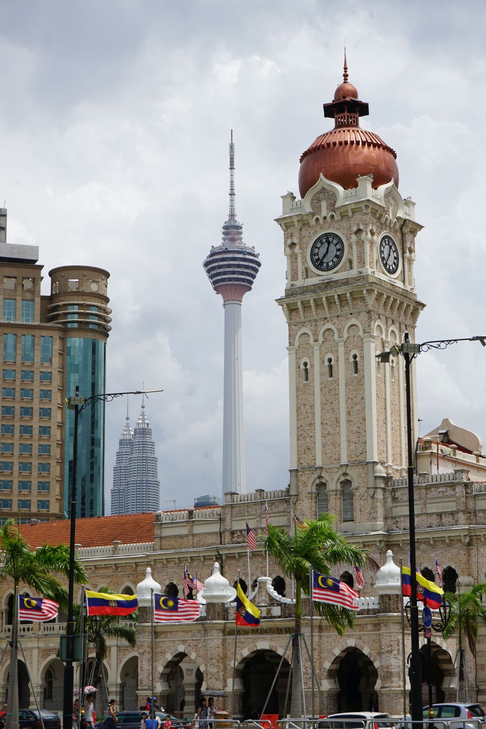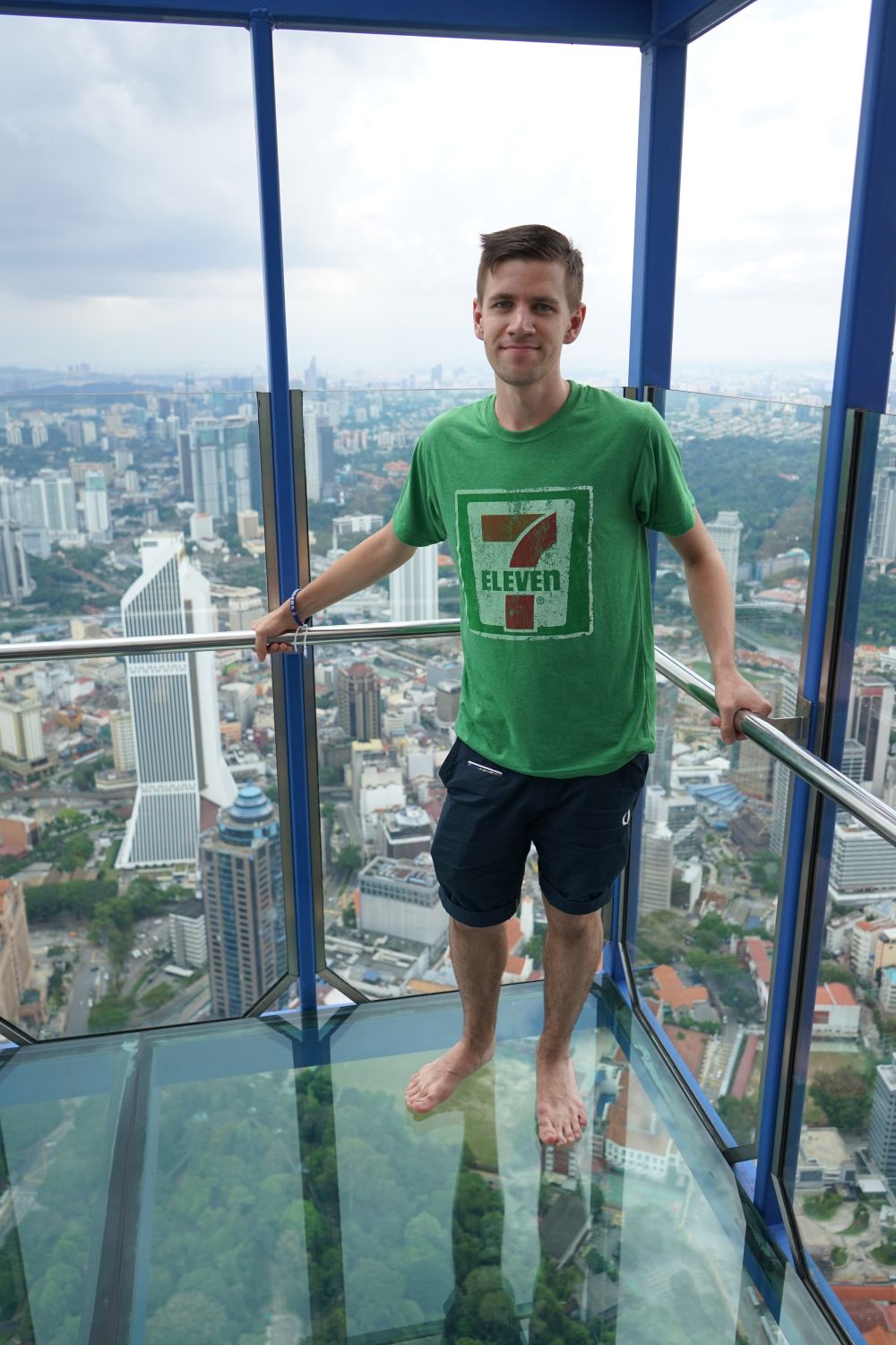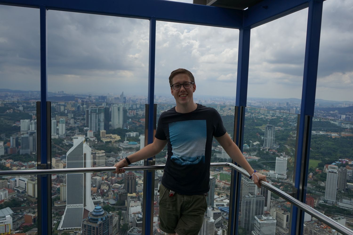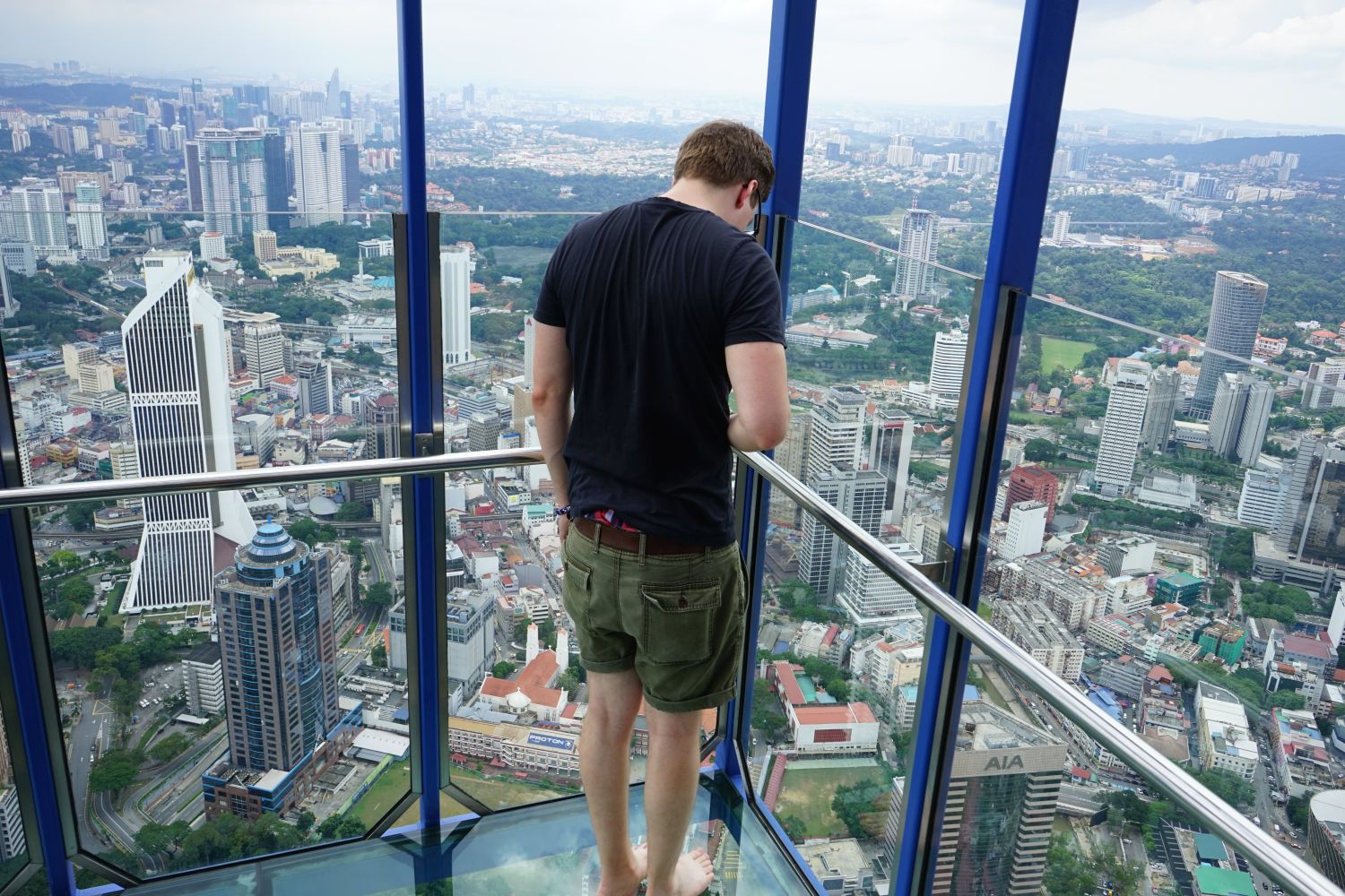 Nach dem gestrigen Regentag war es heute wieder schön schwül heiß und wir machten uns auf die letzten Sehenswürdigkeiten von unserer Liste zu streichen. Zunächst war ein Besuch der National Gallery geplant, hauptsächlich um ein paar Bilder vor dem I❤KL Zeichen zu machen. Da wir ja aber eh schon da waren und die Gallery klimatisiert war verbrachten wir hier noch etwas Zeit. Anschließend liefen wir über den Merdeka Platz (Platz der Unabhängigkeit), der den riesigen Flaggenmast beheimatet und an das  Sultan Abdul Samad Building grenzt, welches während der britischen Kolonialzeit als Verwaltungsgebäude genutzt wurde und heute einige Ministerien beheimatet. Um noch etwas die Aussicht über der riesen Metropole zu genießen ging es zur Menara Kuala Lumpur dem höchsten Fernsehturm Malaysias. Dieser bietet als besonderes Highlight sogenannte Sky-Boxen, Glaskästen auf einer Höhe von etwa 400m. Gerade für Max war das ein Highlight, er konnte den Aufenthalt in der Box auf Grund seiner Höhenangst richtig genießen. Der Rest des Abends verlief bis auf etwas Shopping relativ unspektakulär.