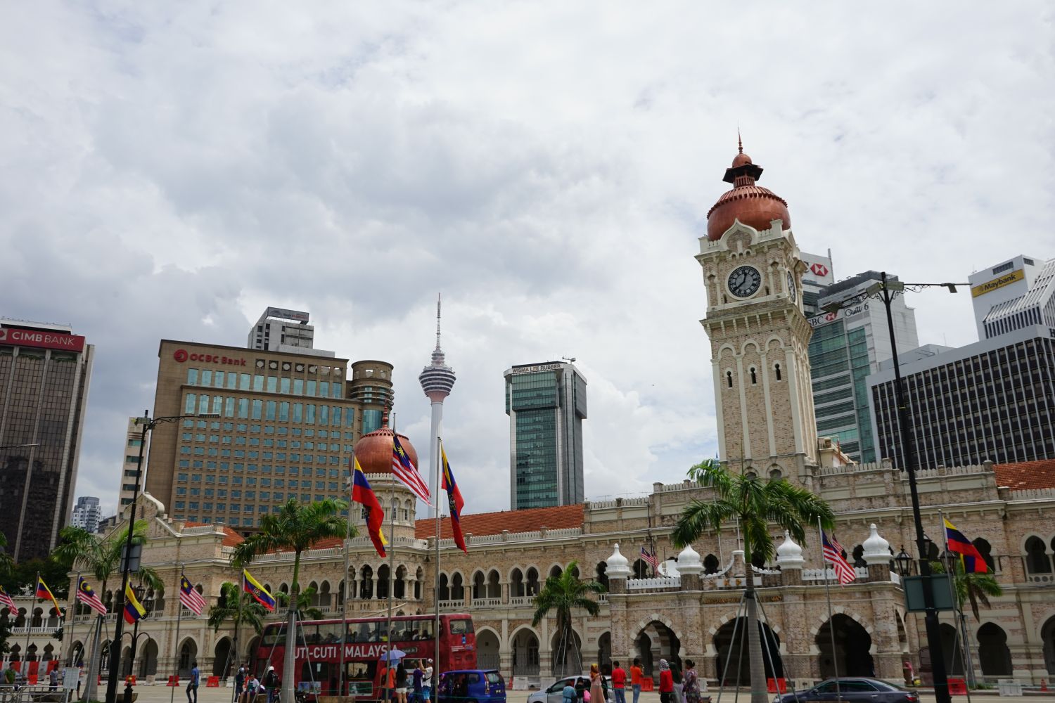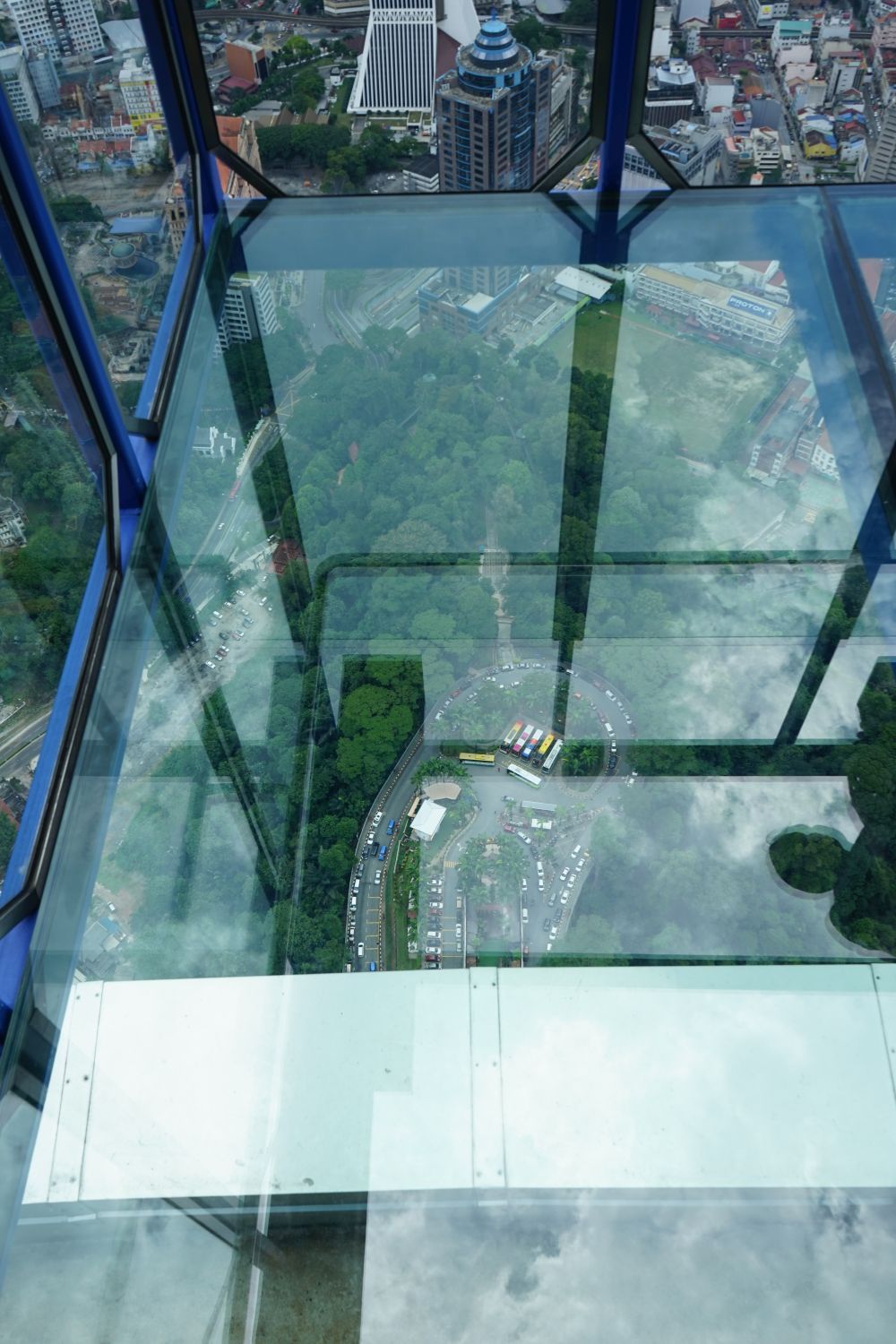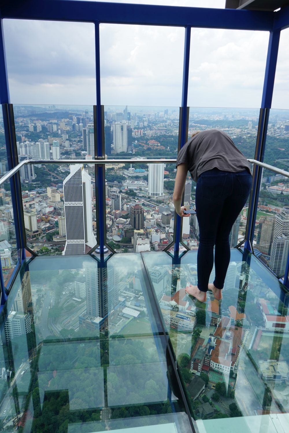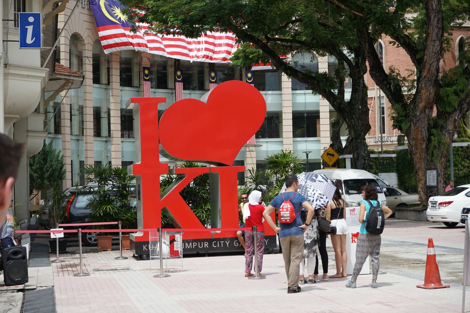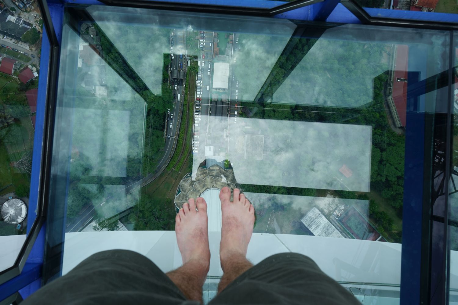 Nach dem gestrigen Regentag war es heute wieder schön schwül heiß und wir machten uns auf die letzten Sehenswürdigkeiten von unserer Liste zu streichen. Zunächst war ein Besuch der National Gallery geplant, hauptsächlich um ein paar Bilder vor dem I❤KL Zeichen zu machen. Da wir ja aber eh schon da waren und die Gallery klimatisiert war verbrachten wir hier noch etwas Zeit. Anschließend liefen wir über den Merdeka Platz (Platz der Unabhängigkeit), der den riesigen Flaggenmast beheimatet und an das  Sultan Abdul Samad Building grenzt, welches während der britischen Kolonialzeit als Verwaltungsgebäude genutzt wurde und heute einige Ministerien beheimatet. Um noch etwas die Aussicht über der riesen Metropole zu genießen ging es zur Menara Kuala Lumpur dem höchsten Fernsehturm Malaysias. Dieser bietet als besonderes Highlight sogenannte Sky-Boxen, Glaskästen auf einer Höhe von etwa 400m. Gerade für Max war das ein Highlight, er konnte den Aufenthalt in der Box auf Grund seiner Höhenangst richtig genießen. Der Rest des Abends verlief bis auf etwas Shopping relativ unspektakulär.