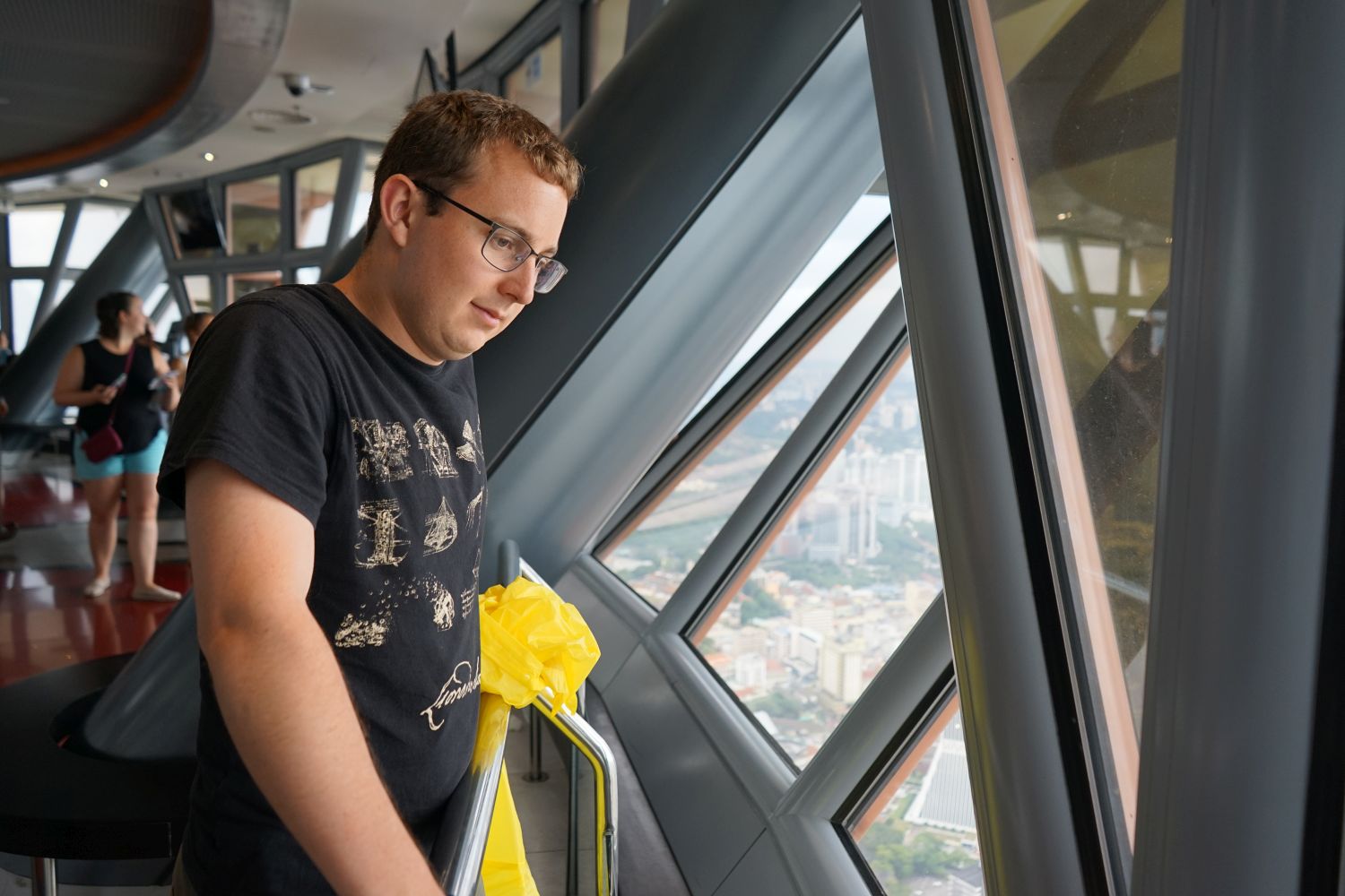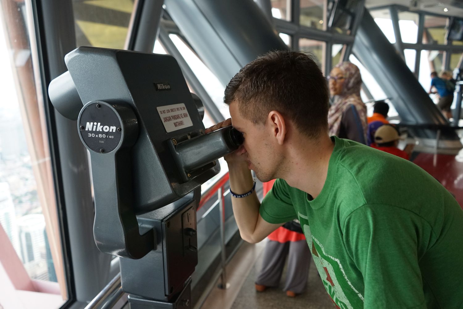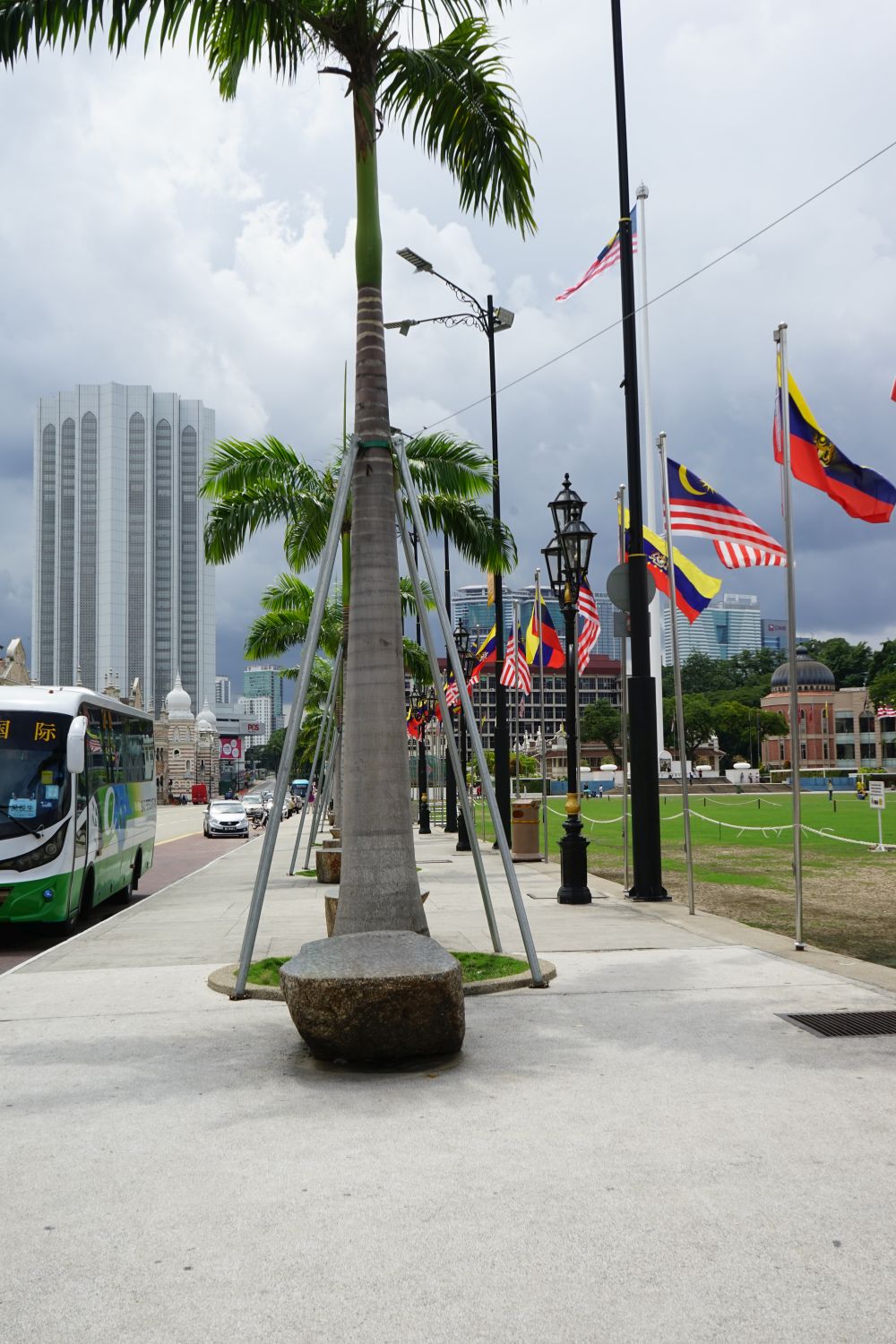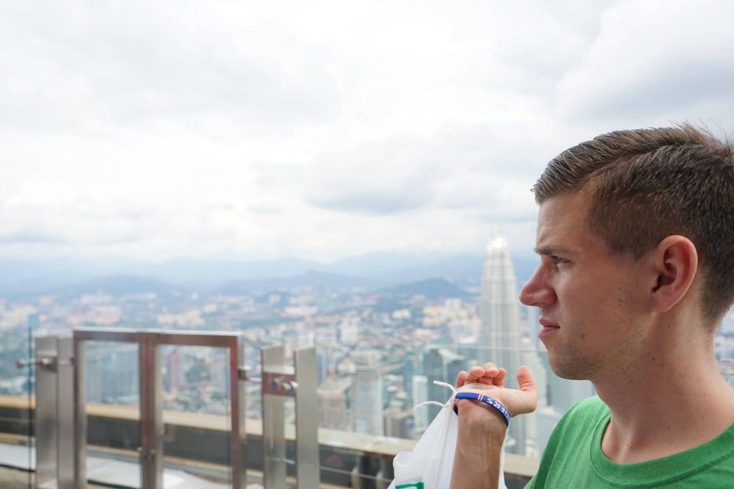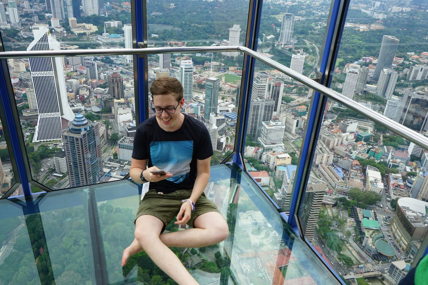 Nach dem gestrigen Regentag war es heute wieder schön schwül heiß und wir machten uns auf die letzten Sehenswürdigkeiten von unserer Liste zu streichen. Zunächst war ein Besuch der National Gallery geplant, hauptsächlich um ein paar Bilder vor dem I❤KL Zeichen zu machen. Da wir ja aber eh schon da waren und die Gallery klimatisiert war verbrachten wir hier noch etwas Zeit. Anschließend liefen wir über den Merdeka Platz (Platz der Unabhängigkeit), der den riesigen Flaggenmast beheimatet und an das  Sultan Abdul Samad Building grenzt, welches während der britischen Kolonialzeit als Verwaltungsgebäude genutzt wurde und heute einige Ministerien beheimatet. Um noch etwas die Aussicht über der riesen Metropole zu genießen ging es zur Menara Kuala Lumpur dem höchsten Fernsehturm Malaysias. Dieser bietet als besonderes Highlight sogenannte Sky-Boxen, Glaskästen auf einer Höhe von etwa 400m. Gerade für Max war das ein Highlight, er konnte den Aufenthalt in der Box auf Grund seiner Höhenangst richtig genießen. Der Rest des Abends verlief bis auf etwas Shopping relativ unspektakulär.