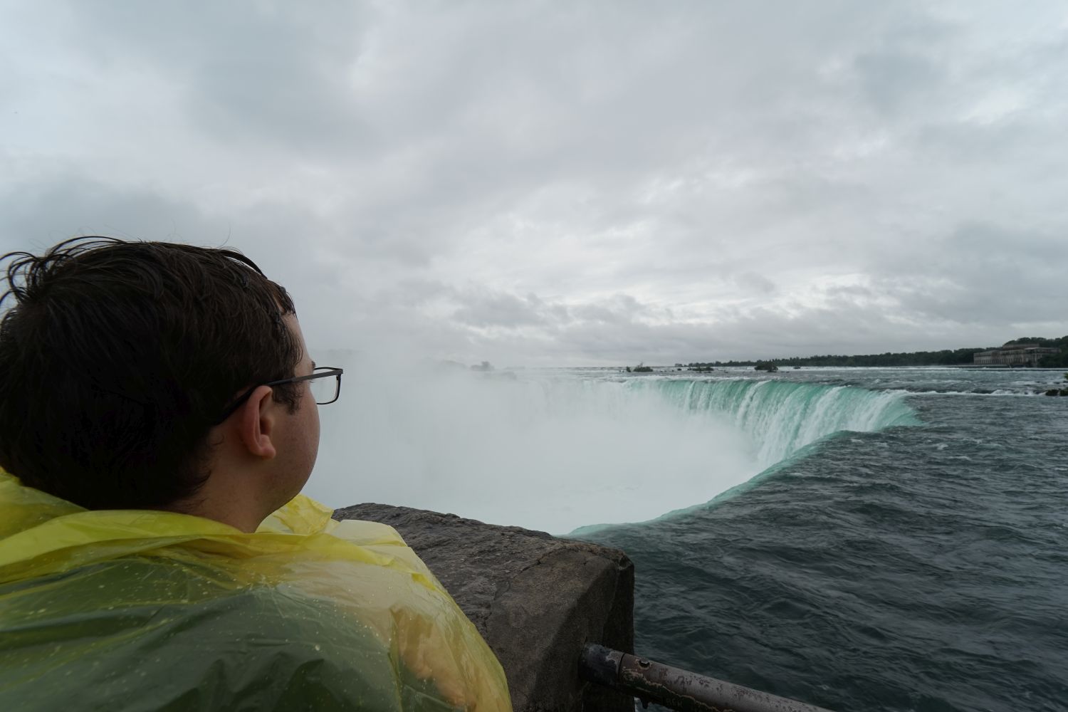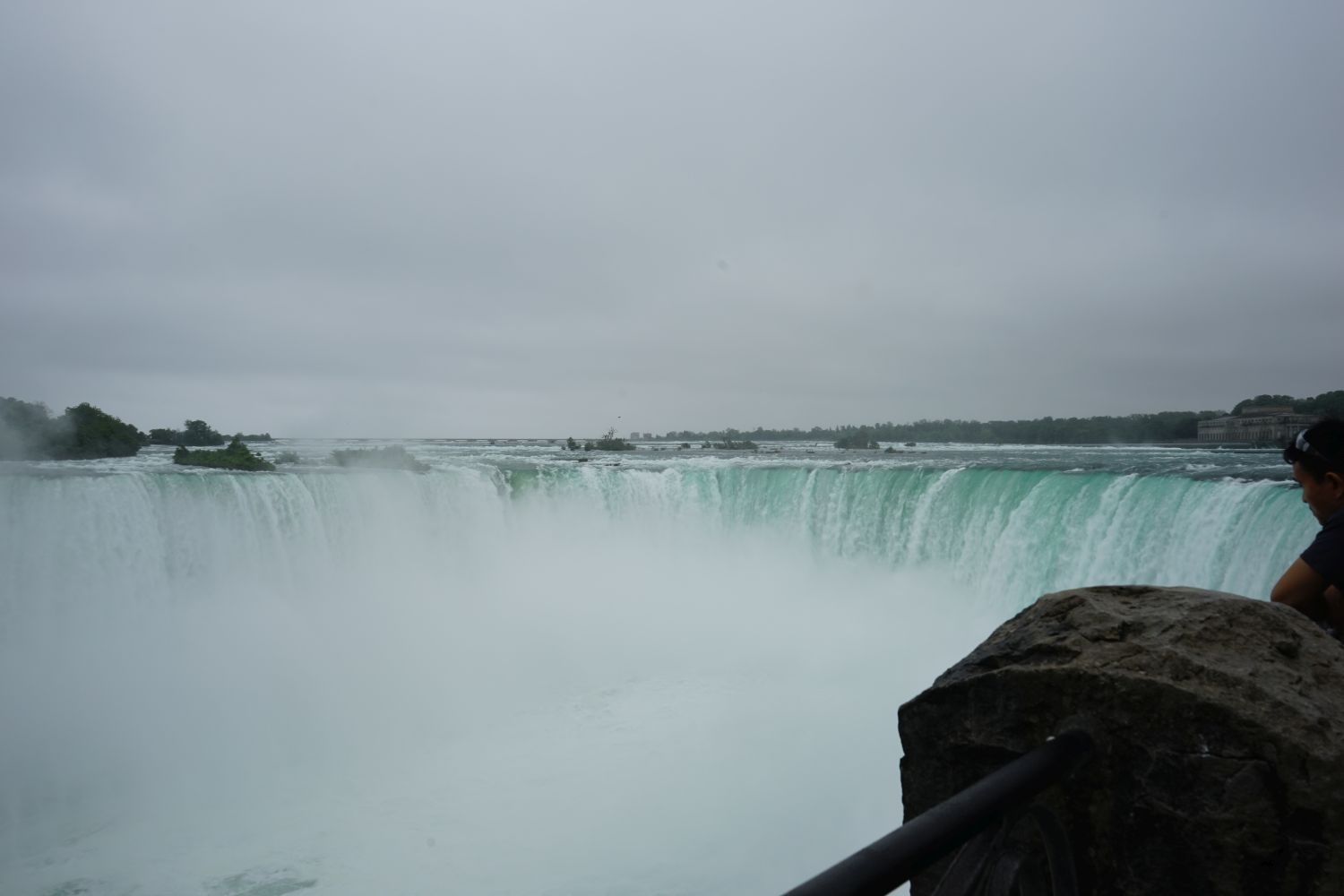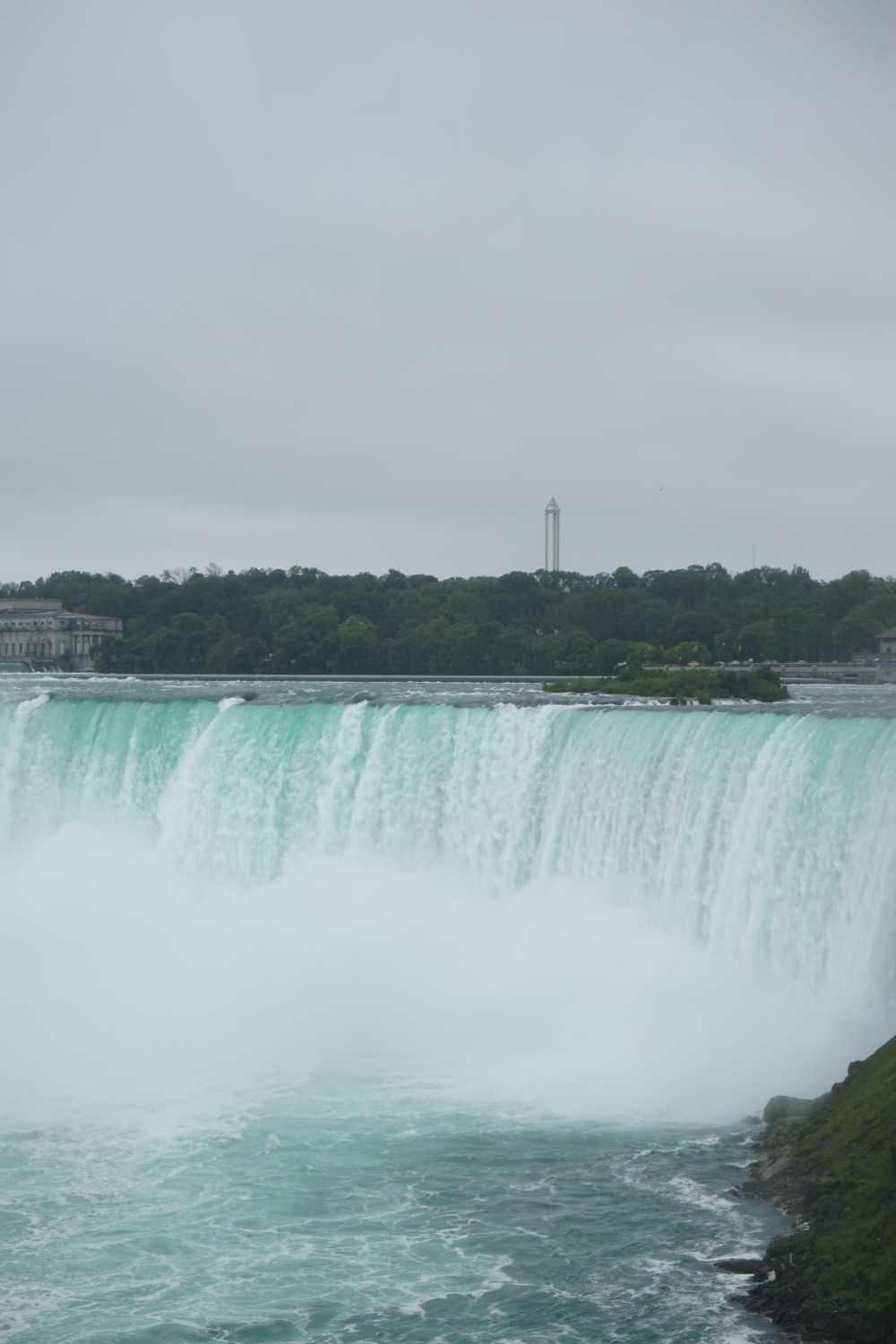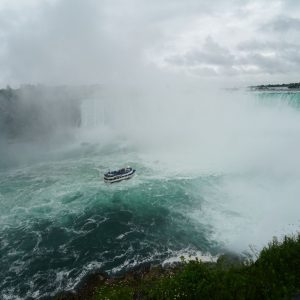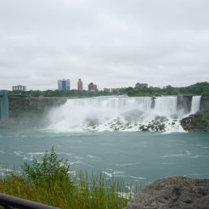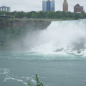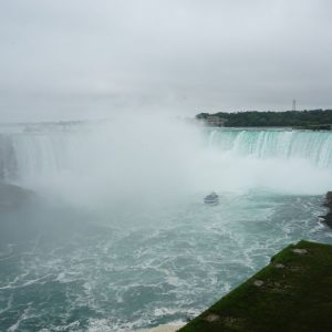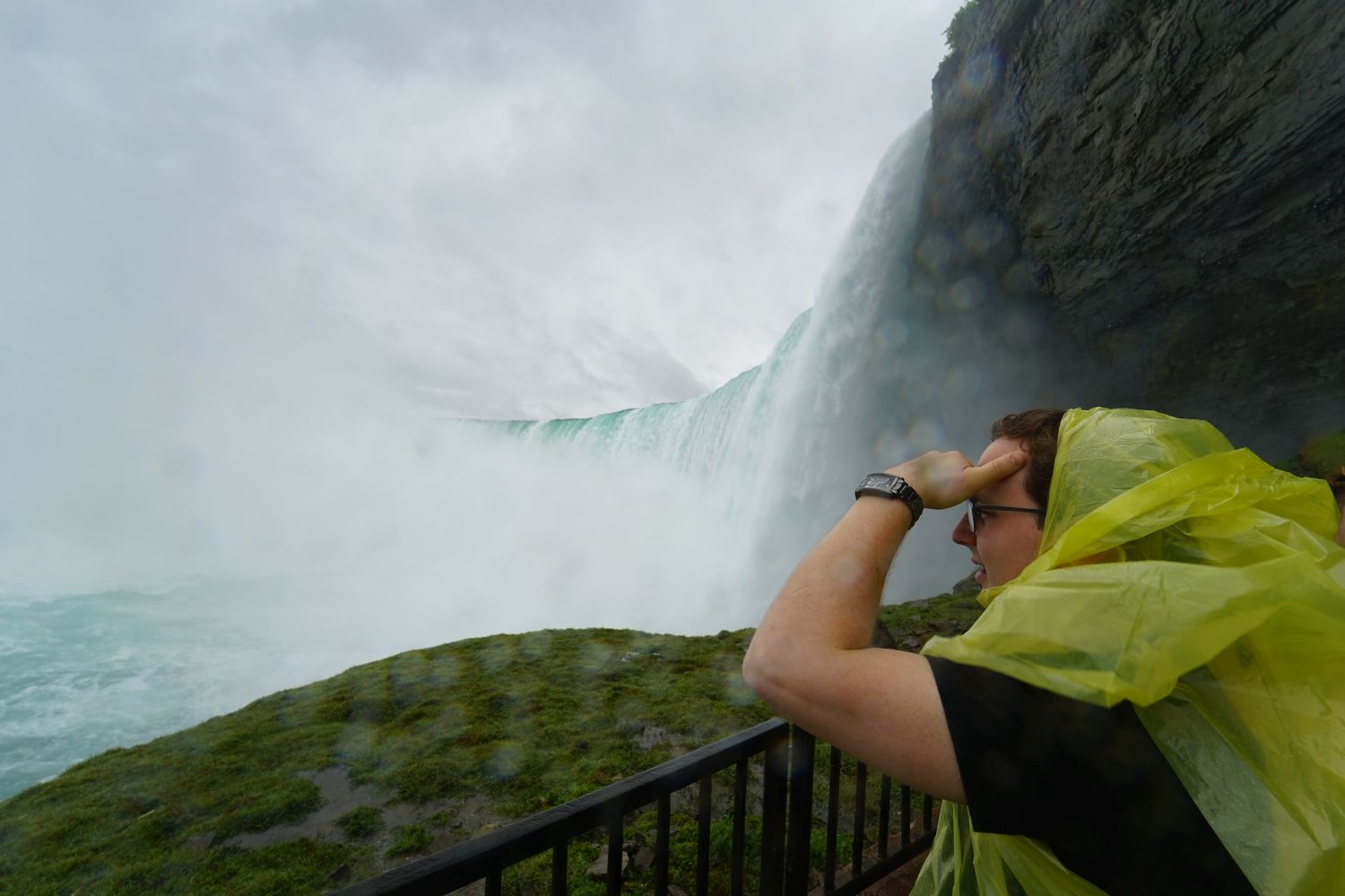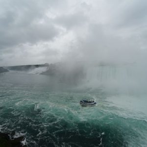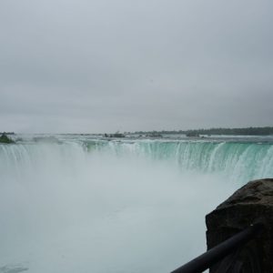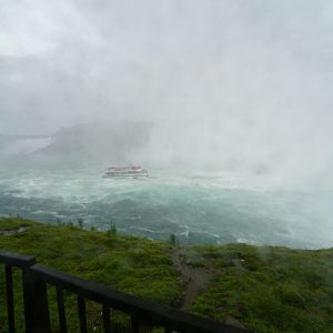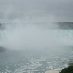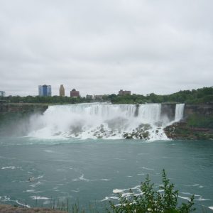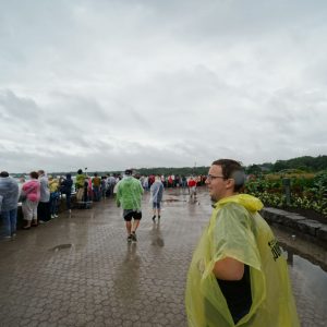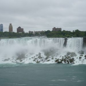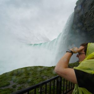 Für mich begann der Tag entspannt mit Pancakes in der Gasthausküche. Nach einem entspannten Vormittag stand dann irgendwann Philip auf der Veranda. Er hatte bereits eine fünfstündige Autofahrt hinter sich. Nachdem ich mich von meiner Gastgebrin verabschiedet hatte fuhren wir auch direkt nach Kanada und besichtigten dort die Niagra Fälle. Die Aussicht sowie der Großteil der Angebote ist auf der kanadischen Seite bedeutend besser. Leider war das Wetter etwas diesig die Bilder sind aber doch ganz gut geworden. Um heute noch nach Toronto zu kommen machten wir nur einen kurzen Abstecher an den Fuß der Wasserfälle. Dort befindet sich zum einen die Aussichtsplattform zum anderen kann man hinter die Fälle und das vorbeirauschende Wasser durch zwei „Lucken“ bestaunen. Nach der gratis Dusche auf der Plattform ging es dann bei leichtem Regen zurück zum Auto.