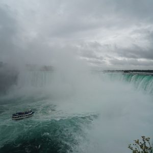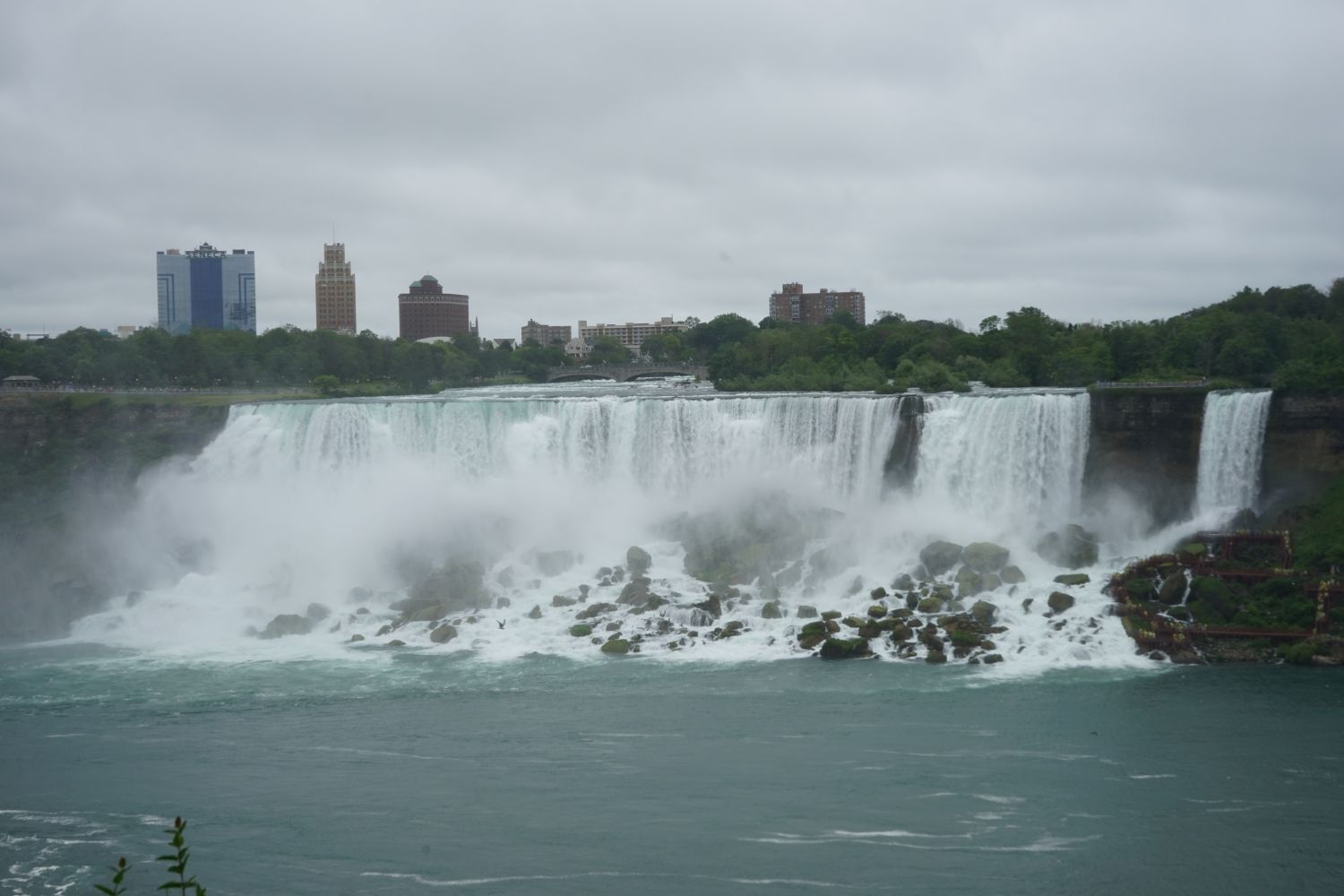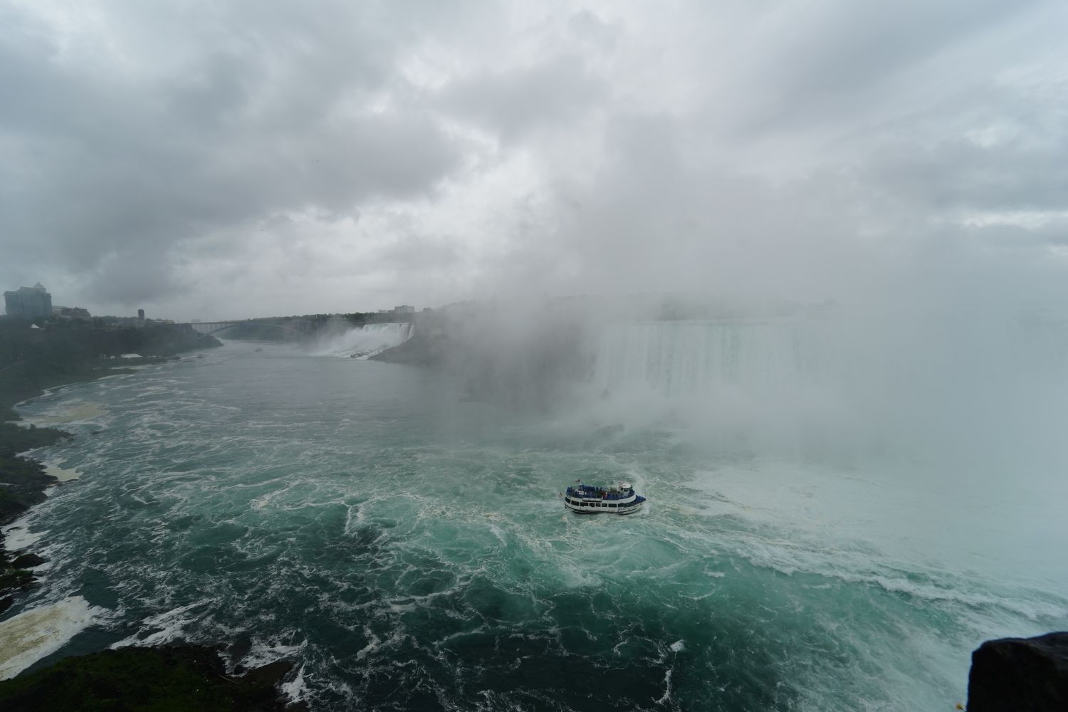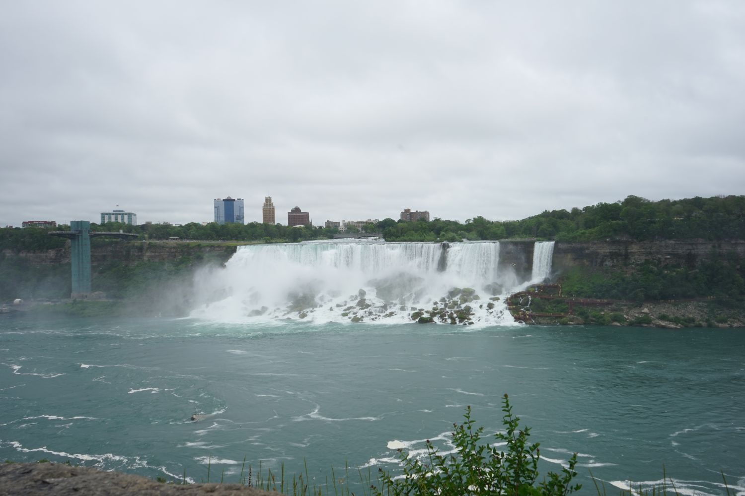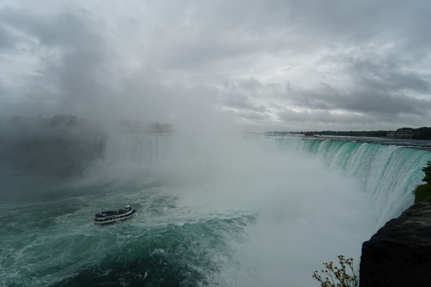 Für mich begann der Tag entspannt mit Pancakes in der Gasthausküche. Nach einem entspannten Vormittag stand dann irgendwann Philip auf der Veranda. Er hatte bereits eine fünfstündige Autofahrt hinter sich. Nachdem ich mich von meiner Gastgebrin verabschiedet hatte fuhren wir auch direkt nach Kanada und besichtigten dort die Niagra Fälle. Die Aussicht sowie der Großteil der Angebote ist auf der kanadischen Seite bedeutend besser. Leider war das Wetter etwas diesig die Bilder sind aber doch ganz gut geworden. Um heute noch nach Toronto zu kommen machten wir nur einen kurzen Abstecher an den Fuß der Wasserfälle. Dort befindet sich zum einen die Aussichtsplattform zum anderen kann man hinter die Fälle und das vorbeirauschende Wasser durch zwei „Lucken“ bestaunen. Nach der gratis Dusche auf der Plattform ging es dann bei leichtem Regen zurück zum Auto.
