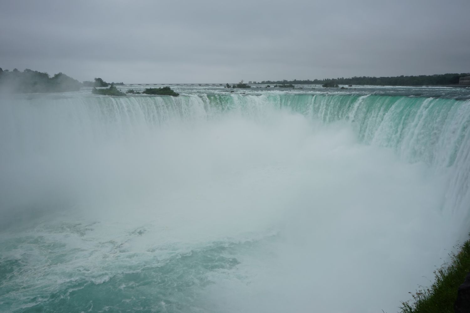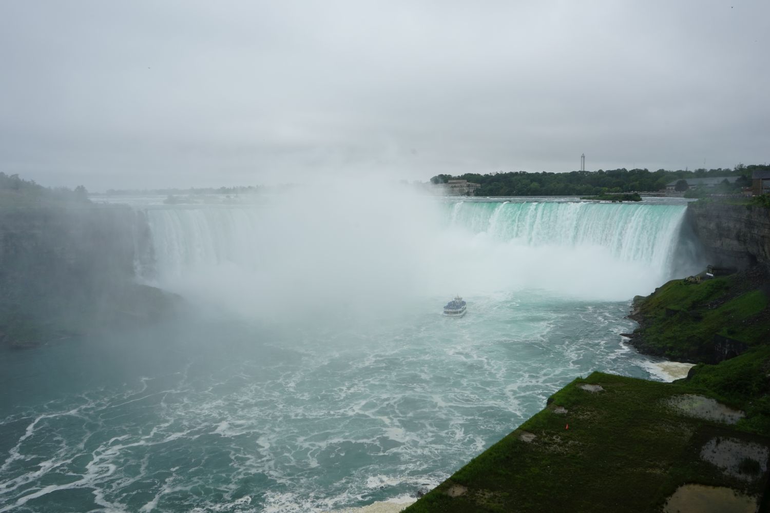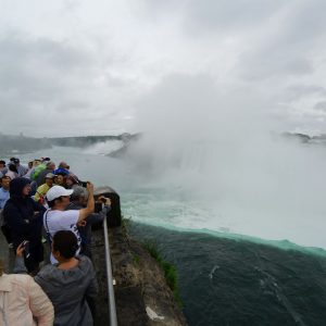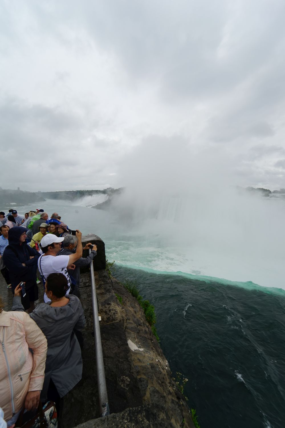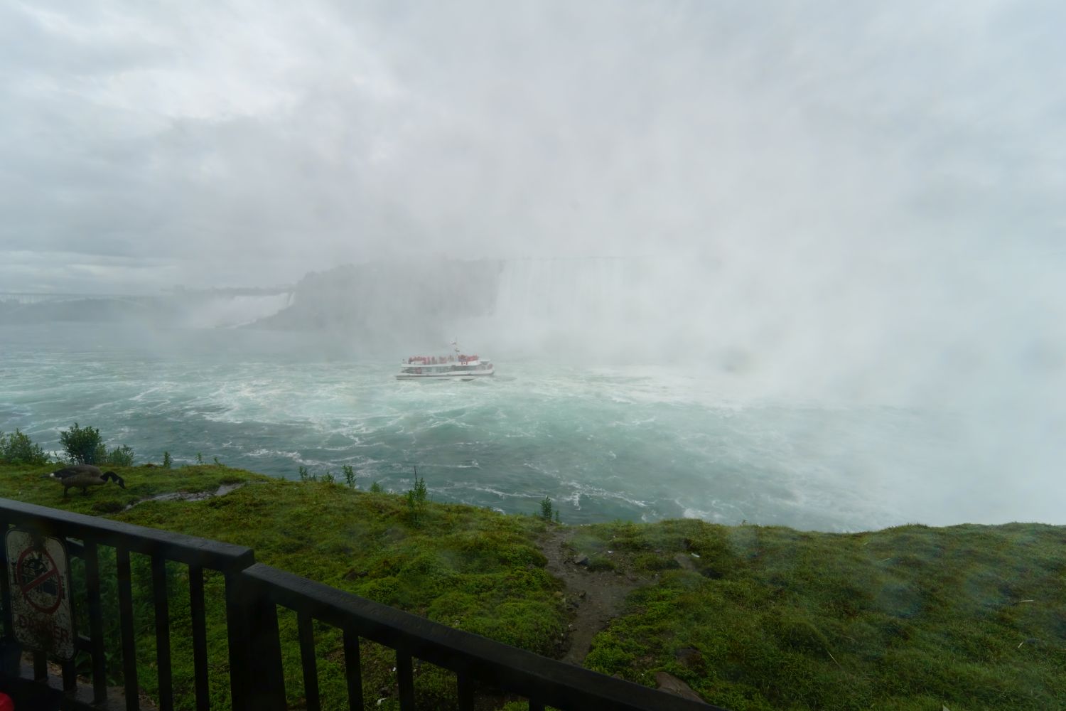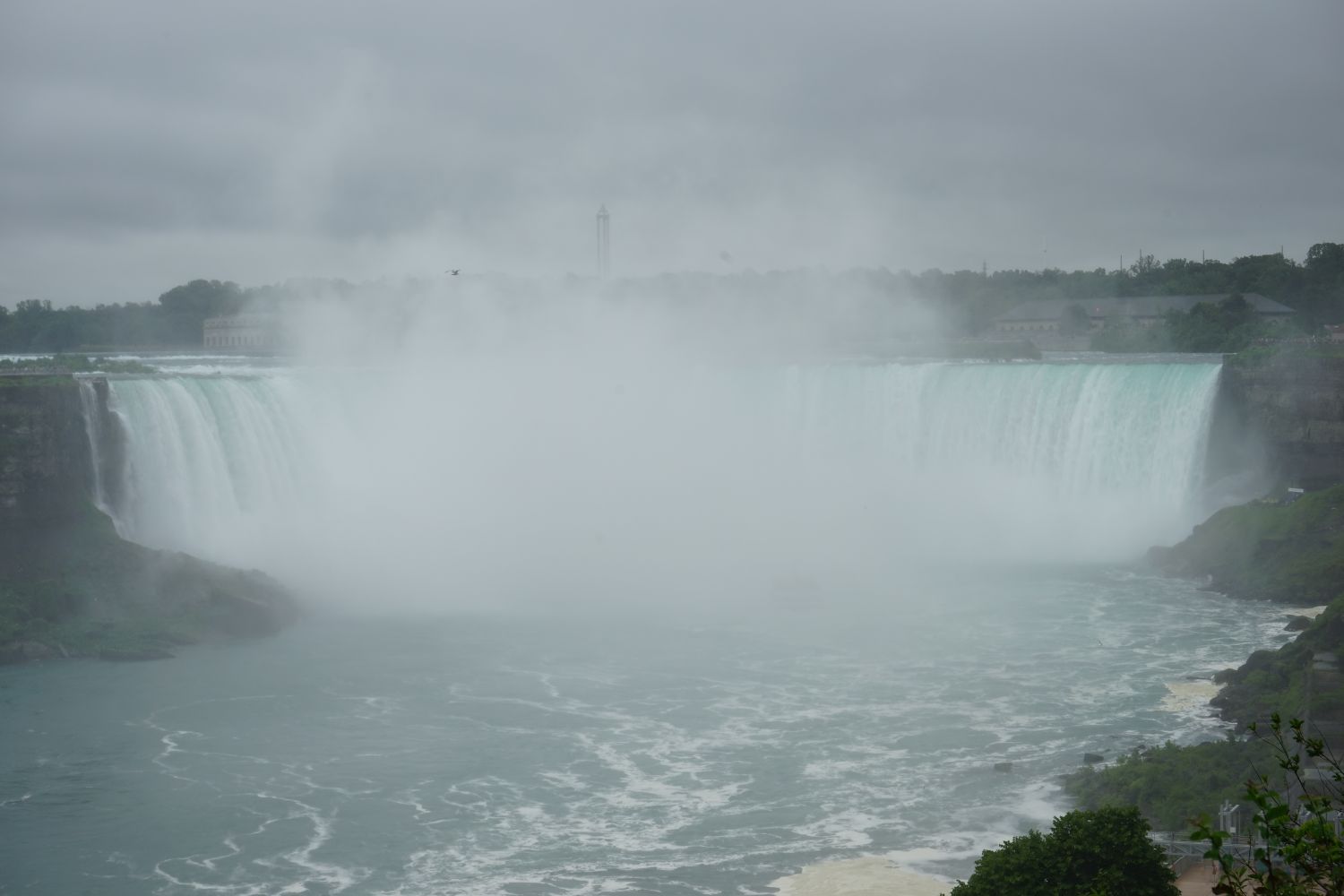 Für mich begann der Tag entspannt mit Pancakes in der Gasthausküche. Nach einem entspannten Vormittag stand dann irgendwann Philip auf der Veranda. Er hatte bereits eine fünfstündige Autofahrt hinter sich. Nachdem ich mich von meiner Gastgebrin verabschiedet hatte fuhren wir auch direkt nach Kanada und besichtigten dort die Niagra Fälle. Die Aussicht sowie der Großteil der Angebote ist auf der kanadischen Seite bedeutend besser. Leider war das Wetter etwas diesig die Bilder sind aber doch ganz gut geworden. Um heute noch nach Toronto zu kommen machten wir nur einen kurzen Abstecher an den Fuß der Wasserfälle. Dort befindet sich zum einen die Aussichtsplattform zum anderen kann man hinter die Fälle und das vorbeirauschende Wasser durch zwei „Lucken“ bestaunen. Nach der gratis Dusche auf der Plattform ging es dann bei leichtem Regen zurück zum Auto.