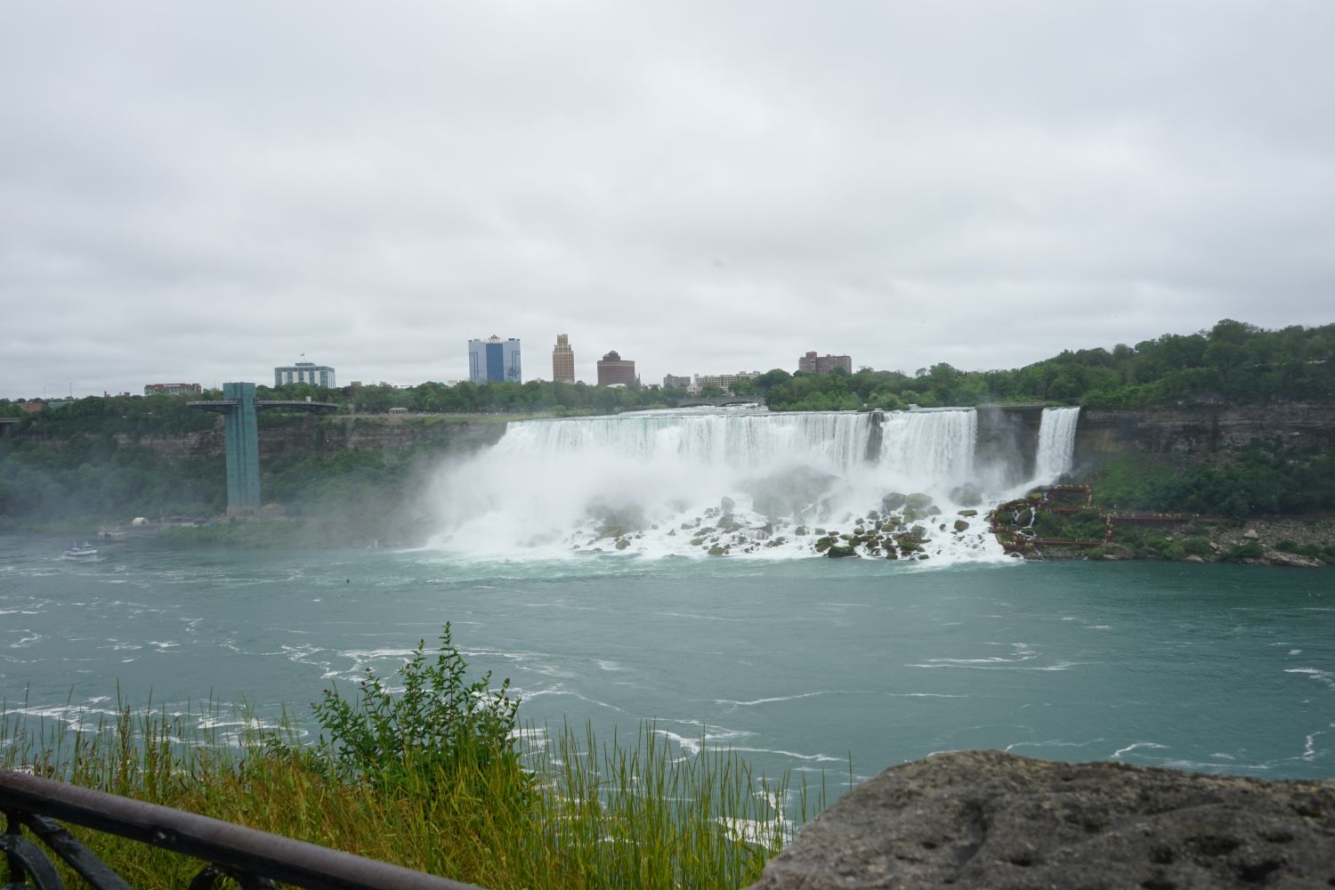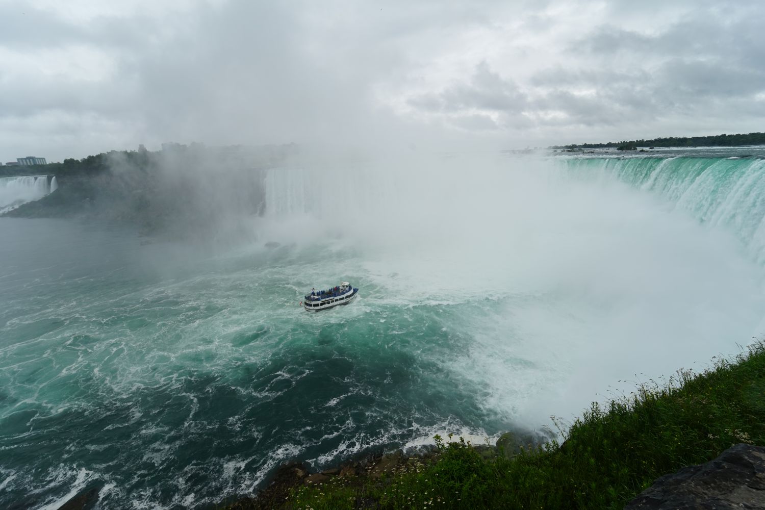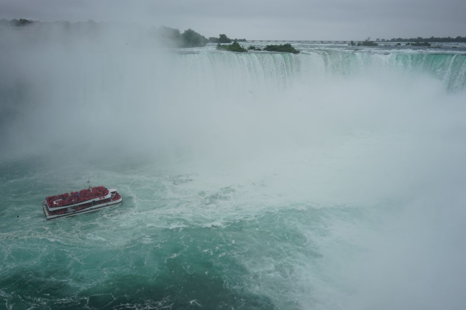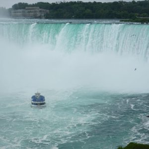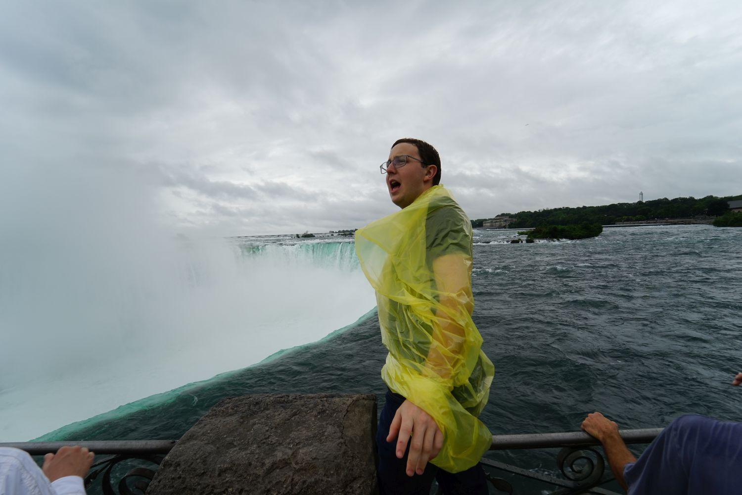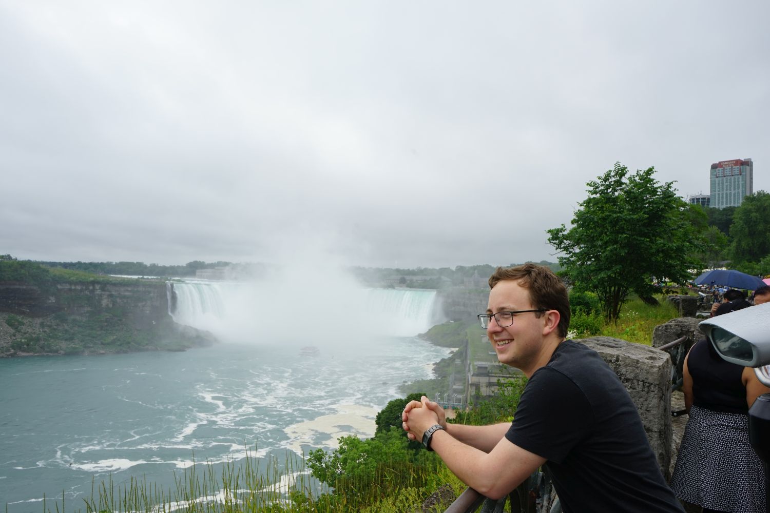 Für mich begann der Tag entspannt mit Pancakes in der Gasthausküche. Nach einem entspannten Vormittag stand dann irgendwann Philip auf der Veranda. Er hatte bereits eine fünfstündige Autofahrt hinter sich. Nachdem ich mich von meiner Gastgebrin verabschiedet hatte fuhren wir auch direkt nach Kanada und besichtigten dort die Niagra Fälle. Die Aussicht sowie der Großteil der Angebote ist auf der kanadischen Seite bedeutend besser. Leider war das Wetter etwas diesig die Bilder sind aber doch ganz gut geworden. Um heute noch nach Toronto zu kommen machten wir nur einen kurzen Abstecher an den Fuß der Wasserfälle. Dort befindet sich zum einen die Aussichtsplattform zum anderen kann man hinter die Fälle und das vorbeirauschende Wasser durch zwei „Lucken“ bestaunen. Nach der gratis Dusche auf der Plattform ging es dann bei leichtem Regen zurück zum Auto.
