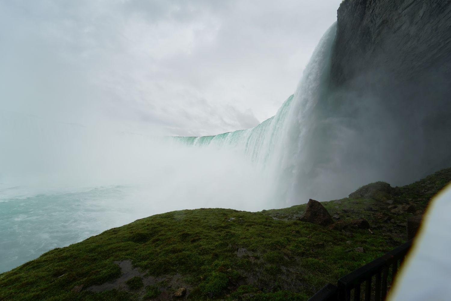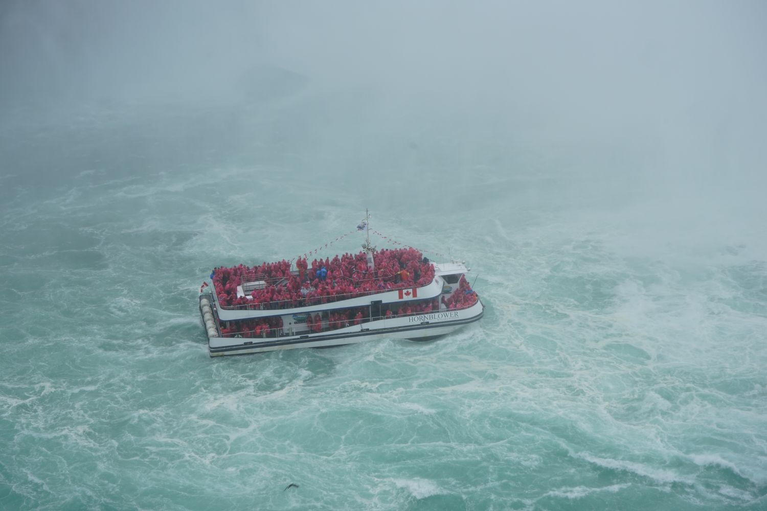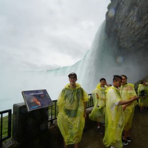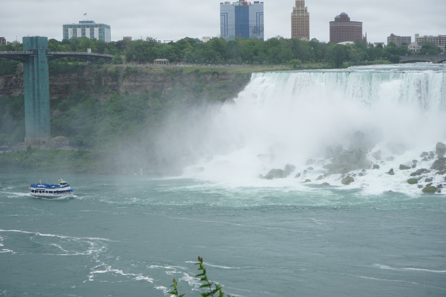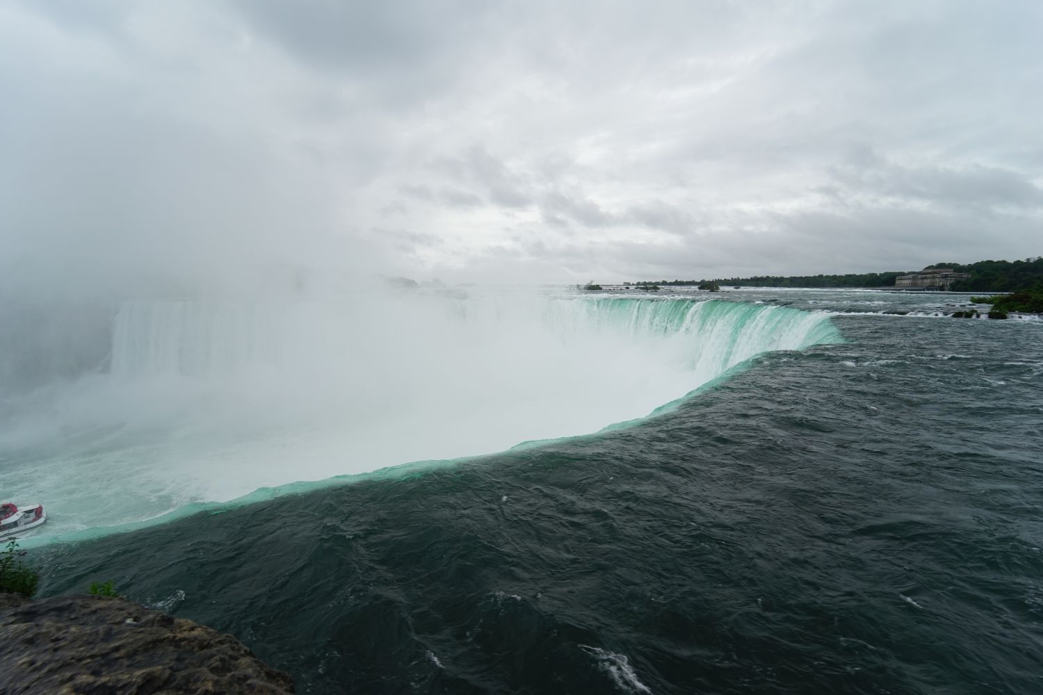 Für mich begann der Tag entspannt mit Pancakes in der Gasthausküche. Nach einem entspannten Vormittag stand dann irgendwann Philip auf der Veranda. Er hatte bereits eine fünfstündige Autofahrt hinter sich. Nachdem ich mich von meiner Gastgebrin verabschiedet hatte fuhren wir auch direkt nach Kanada und besichtigten dort die Niagra Fälle. Die Aussicht sowie der Großteil der Angebote ist auf der kanadischen Seite bedeutend besser. Leider war das Wetter etwas diesig die Bilder sind aber doch ganz gut geworden. Um heute noch nach Toronto zu kommen machten wir nur einen kurzen Abstecher an den Fuß der Wasserfälle. Dort befindet sich zum einen die Aussichtsplattform zum anderen kann man hinter die Fälle und das vorbeirauschende Wasser durch zwei „Lucken“ bestaunen. Nach der gratis Dusche auf der Plattform ging es dann bei leichtem Regen zurück zum Auto.