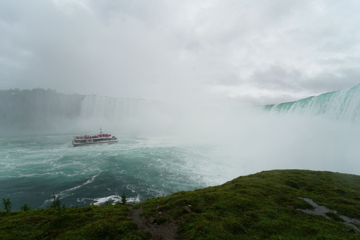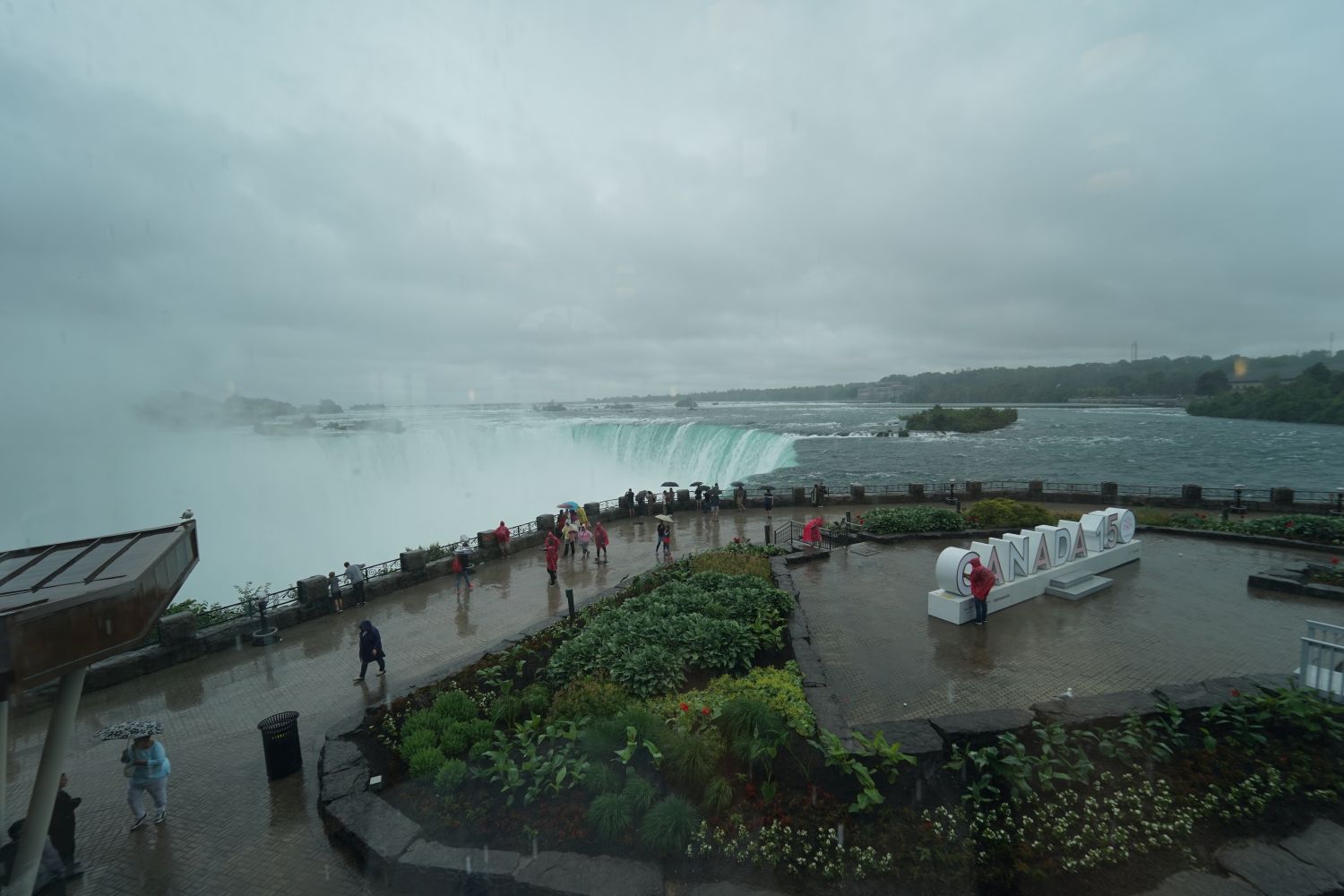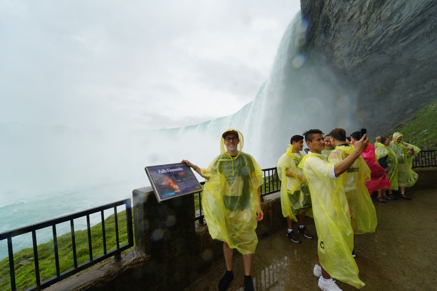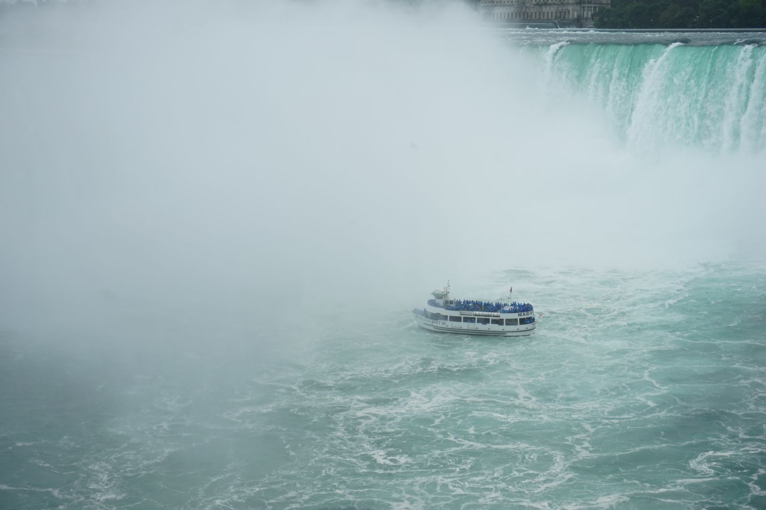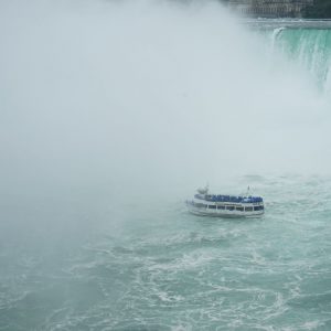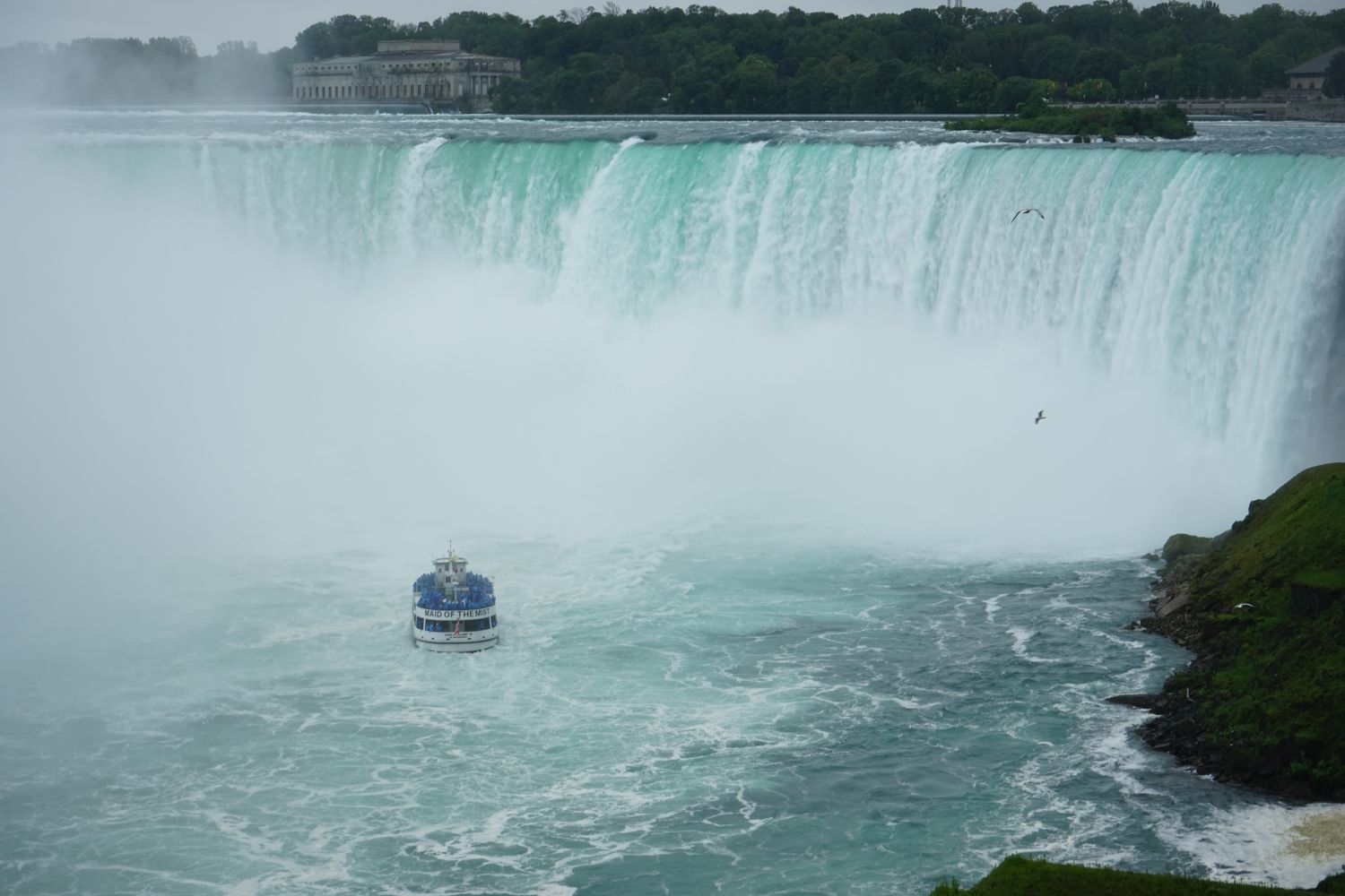 Für mich begann der Tag entspannt mit Pancakes in der Gasthausküche. Nach einem entspannten Vormittag stand dann irgendwann Philip auf der Veranda. Er hatte bereits eine fünfstündige Autofahrt hinter sich. Nachdem ich mich von meiner Gastgebrin verabschiedet hatte fuhren wir auch direkt nach Kanada und besichtigten dort die Niagra Fälle. Die Aussicht sowie der Großteil der Angebote ist auf der kanadischen Seite bedeutend besser. Leider war das Wetter etwas diesig die Bilder sind aber doch ganz gut geworden. Um heute noch nach Toronto zu kommen machten wir nur einen kurzen Abstecher an den Fuß der Wasserfälle. Dort befindet sich zum einen die Aussichtsplattform zum anderen kann man hinter die Fälle und das vorbeirauschende Wasser durch zwei „Lucken“ bestaunen. Nach der gratis Dusche auf der Plattform ging es dann bei leichtem Regen zurück zum Auto.