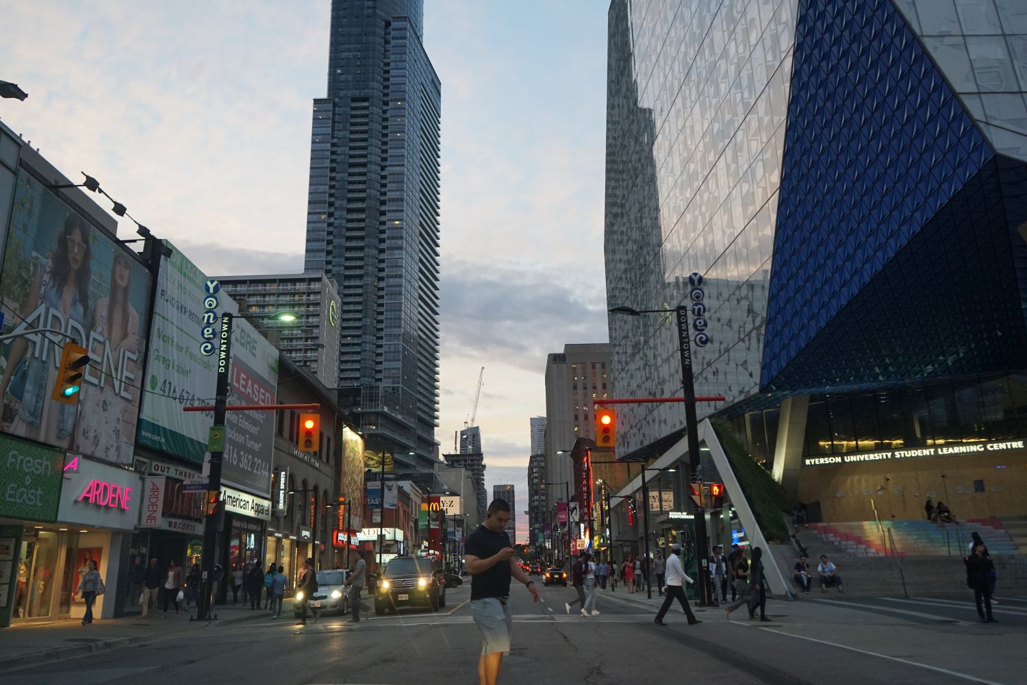 Da Philip schon genug gefahren war übernahm ich die erste Teilstrecke nach Toronto. Kurz vor Toronto machten wir dann nochmal in einer Shopping-mall halt und genehmigten uns was zu essen. Philip durfte sich dann am Toronto Stadtverkehr erfreuen. Bis zu unserer Ankunft in Toronto war uns auch nicht bewusst das dort aktuell der Pride Monat ist. Es gab also Rund um unser Hotel verschiedene Veranstaltungen und Aktionen die Schwulen, Lesben sowie alle Arten von Trans-/Bisexuelle Menschen ehren/feiern. Also ein reges und buntes treiben auf den Straßen.