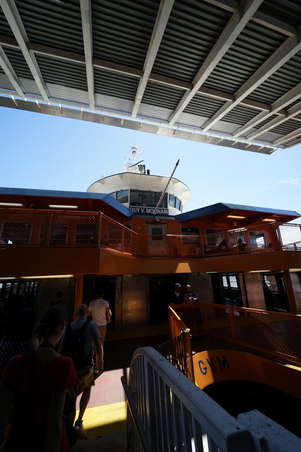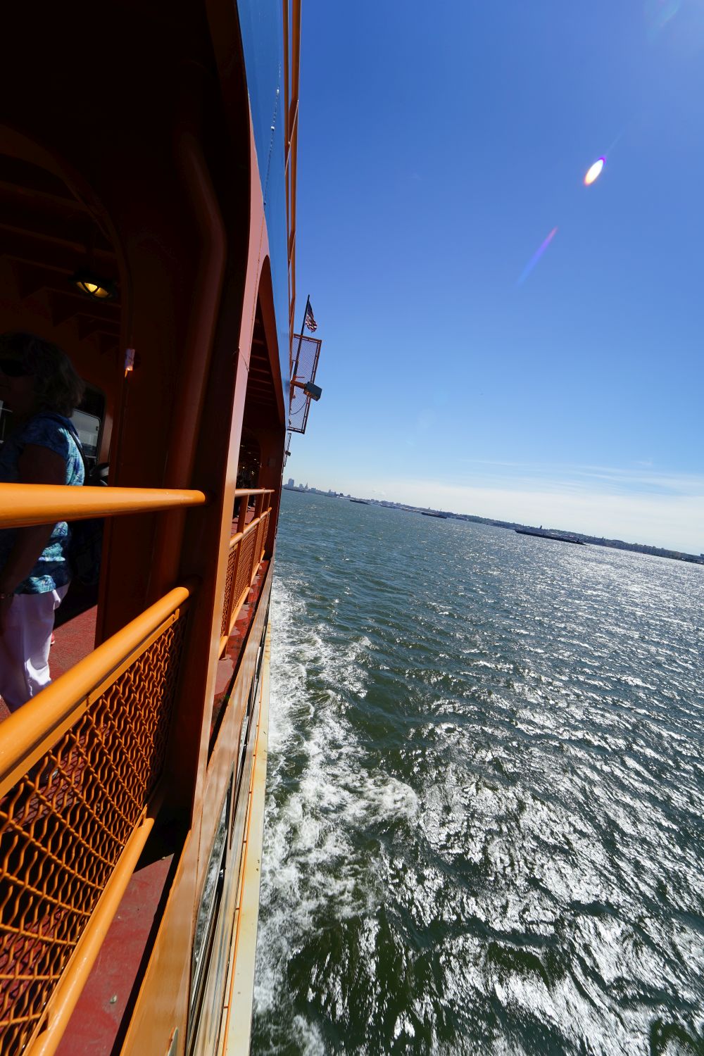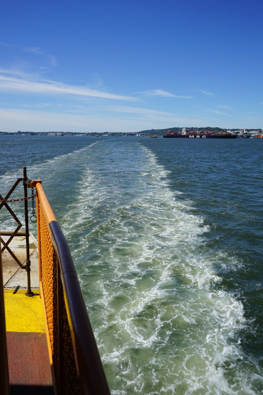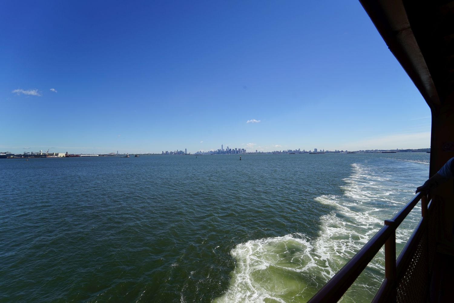 Einer der offenen Punkte auf meiner Todo-Liste war der Besuch der Freiheitsstatue. Um jetzt nicht unnötig viel Geld für einen direkten Besuch auszugeben, stand heute die Sparversion auf dem Programm. Zu nächst ging es nach Downtown Manhattan von wo aus die kostenlose Fähre nach Staten Island ablegt. Glücklicherweise verläuft die Fährroute direkt an der Statue vorbei und ist zum sonst eher teuren New York eine willkommene gratis Abwechslung. Die Fahrt dauert etwa 20-25 Minuten und sollte man währenddessen den Hungertot erleiden gibt es auch Snacks und Kaltgetränke. Da Staten Island keinen Besuch lohnt, ist beim anlegen etwas eile geboten. Die Fähre zurück legt zeitgleich mit der Ankommenden ab. Durch einen kleinen Sprint durch das Fährterminal lässt sich so eine Wartezeit von 30 Minuten vermeiden. Also direkt bei Ankunft mit einer Horde von anderen Touristen quer durch die Station gehetzt um zurück nochmal die selbe Route zu genießen.