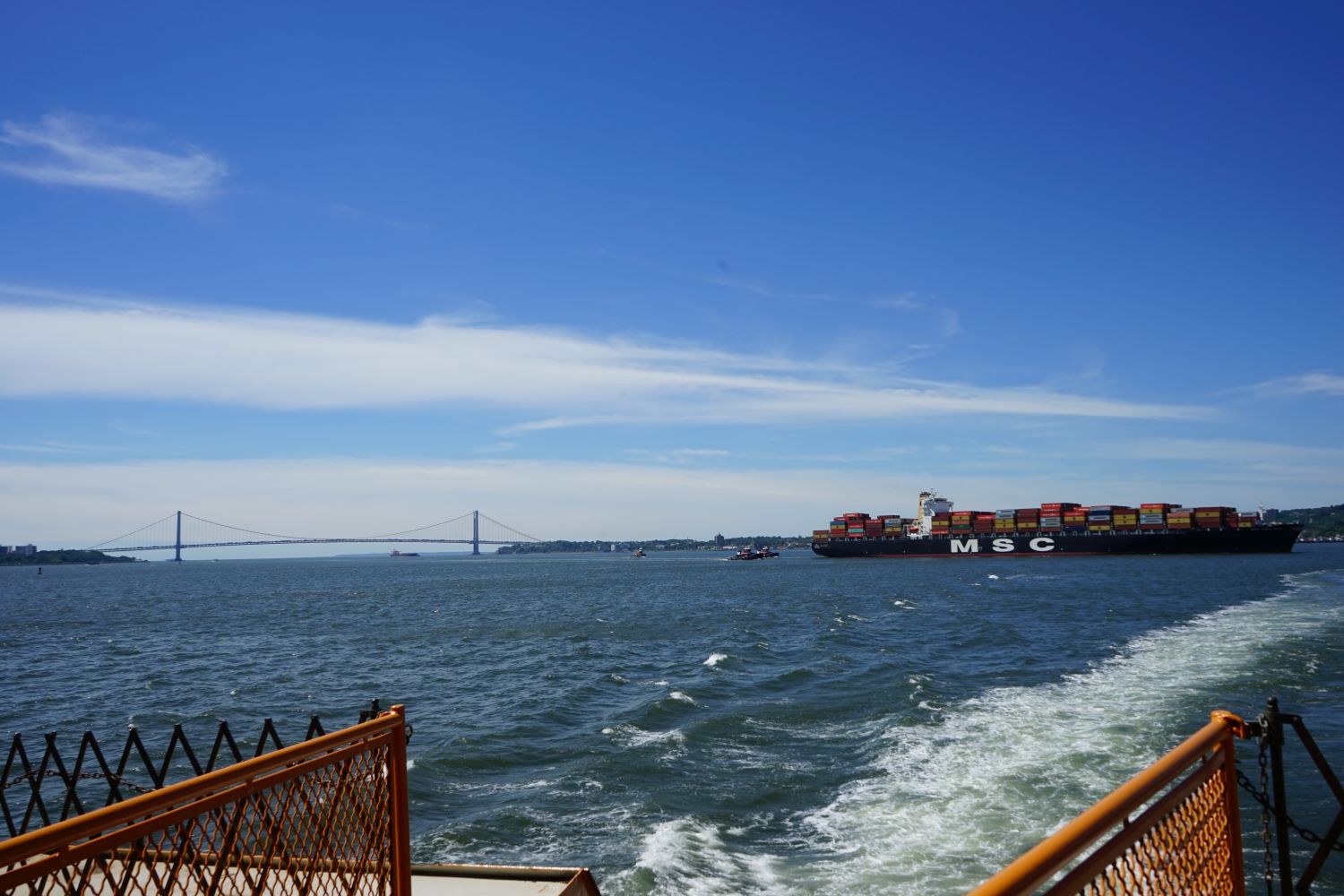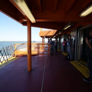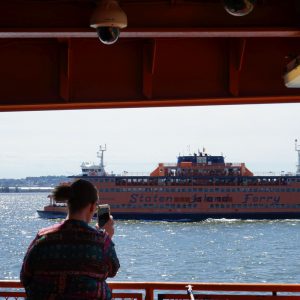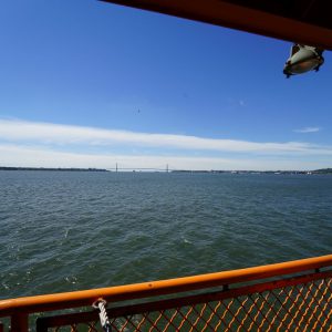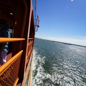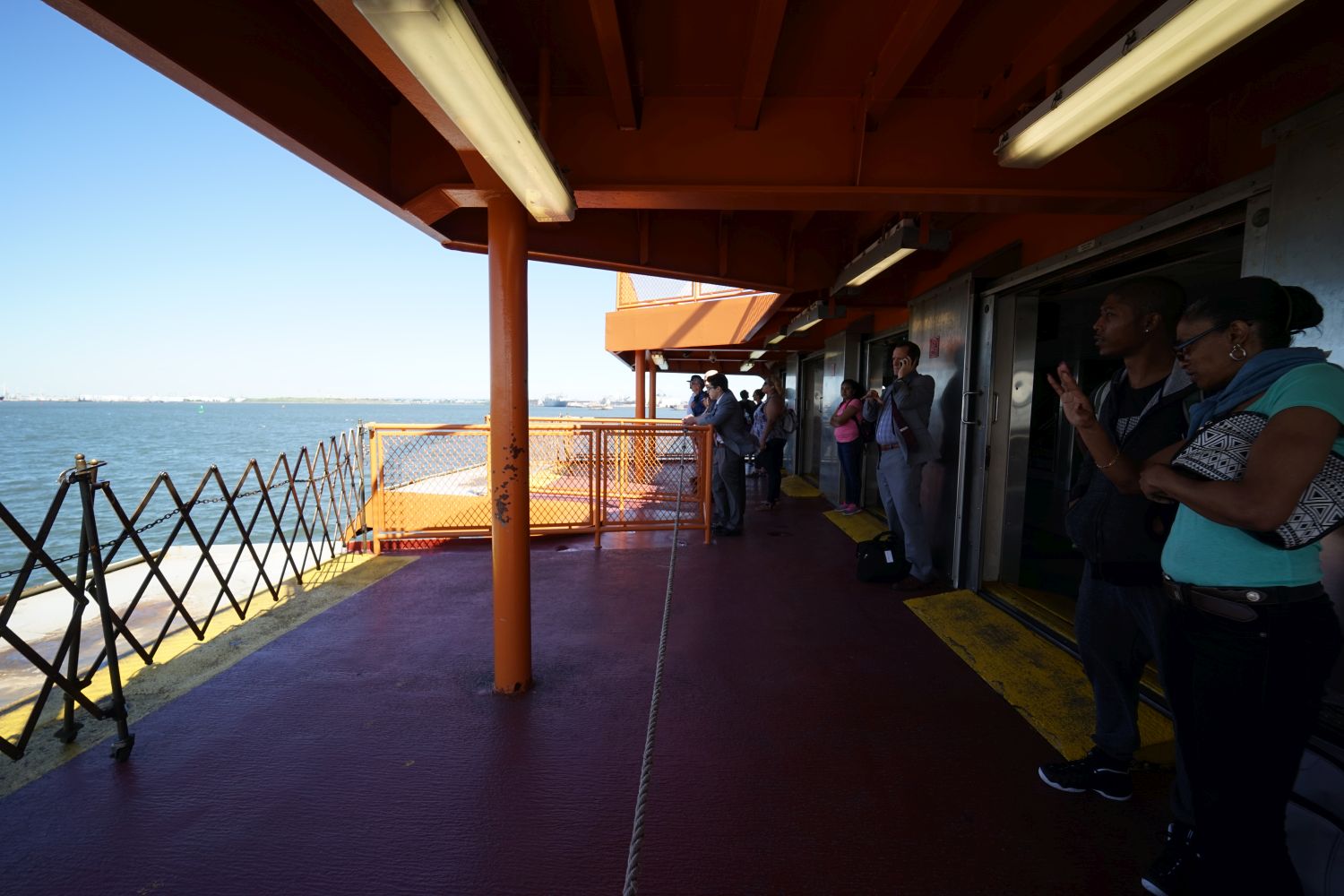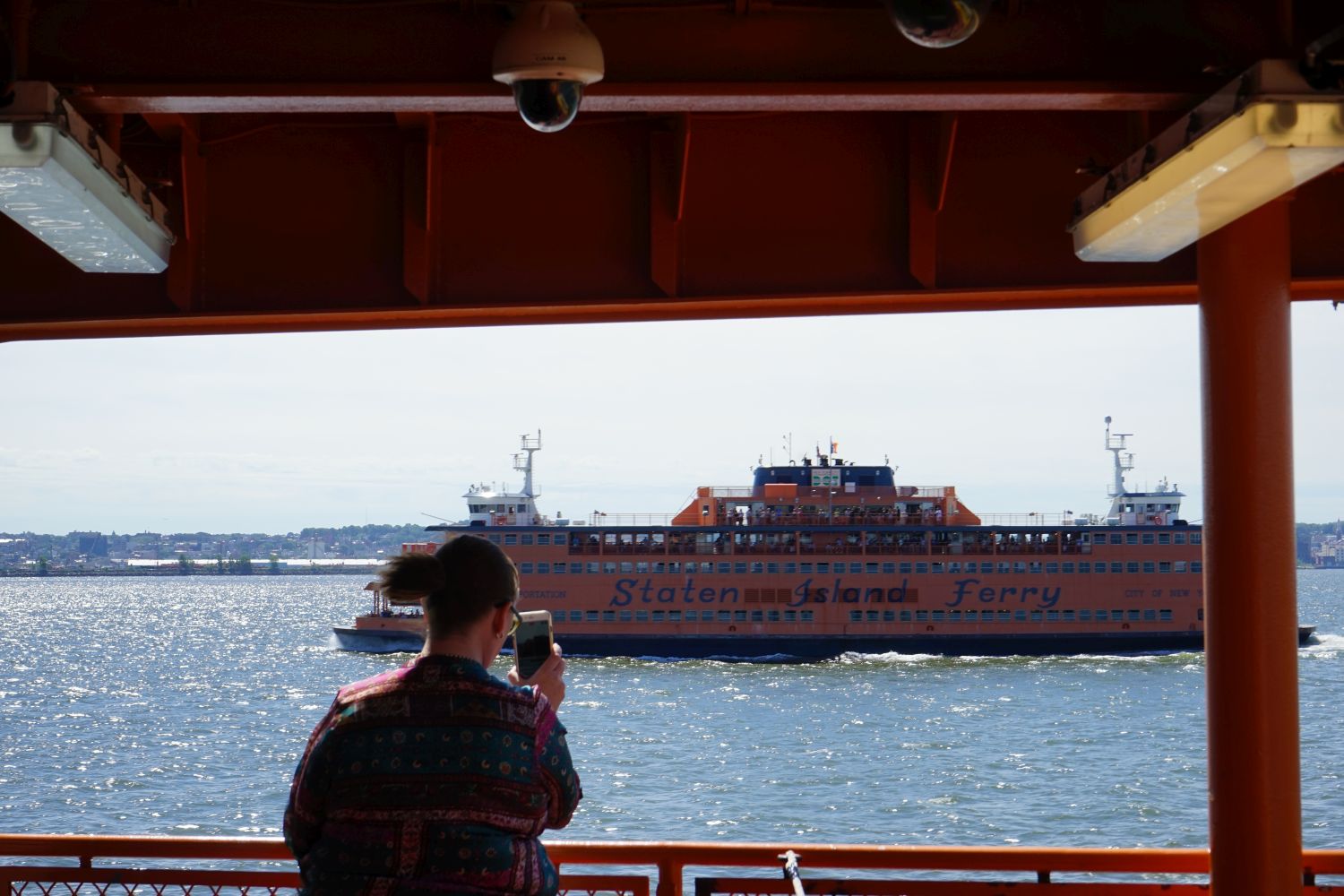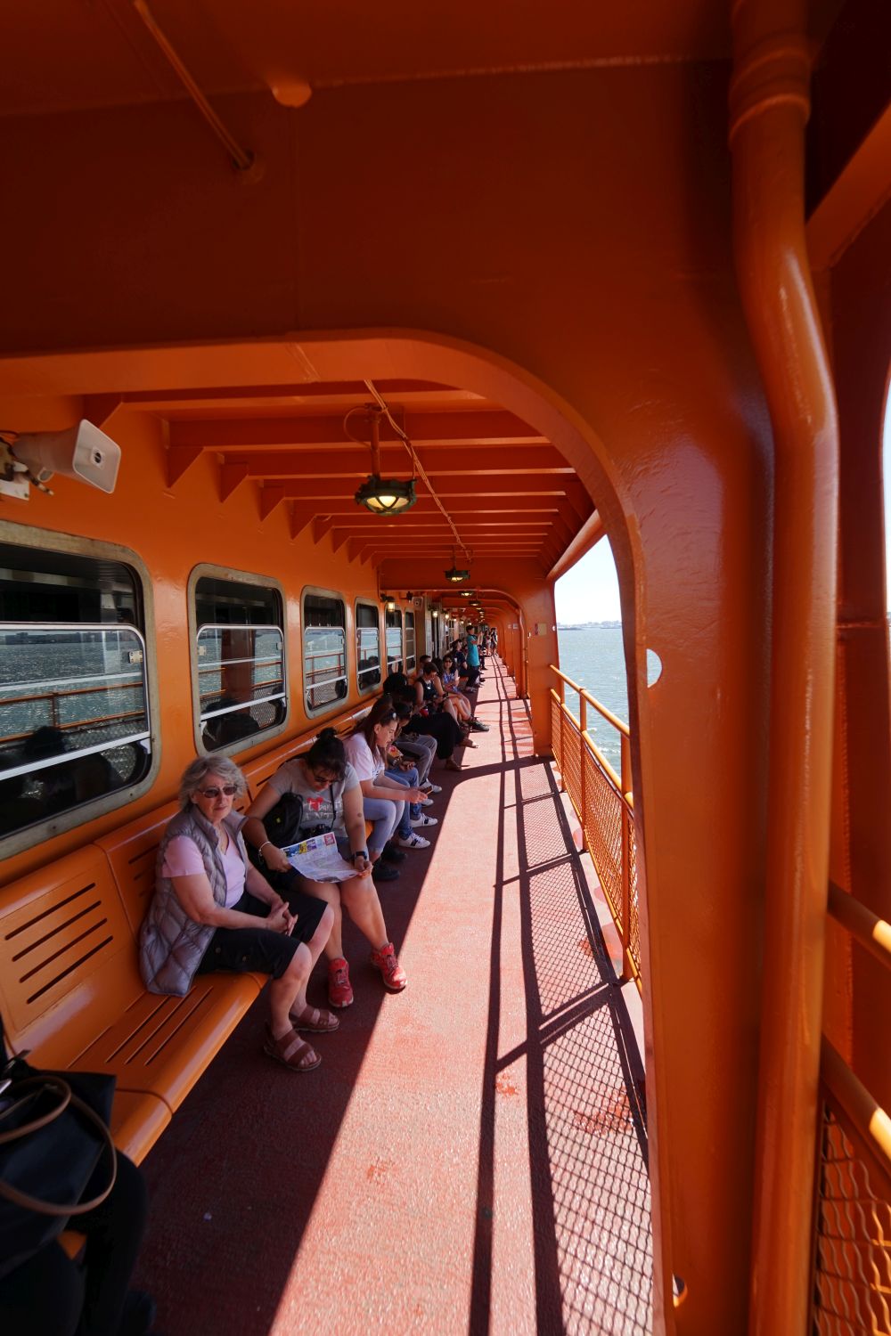 Einer der offenen Punkte auf meiner Todo-Liste war der Besuch der Freiheitsstatue. Um jetzt nicht unnötig viel Geld für einen direkten Besuch auszugeben, stand heute die Sparversion auf dem Programm. Zu nächst ging es nach Downtown Manhattan von wo aus die kostenlose Fähre nach Staten Island ablegt. Glücklicherweise verläuft die Fährroute direkt an der Statue vorbei und ist zum sonst eher teuren New York eine willkommene gratis Abwechslung. Die Fahrt dauert etwa 20-25 Minuten und sollte man währenddessen den Hungertot erleiden gibt es auch Snacks und Kaltgetränke. Da Staten Island keinen Besuch lohnt, ist beim anlegen etwas eile geboten. Die Fähre zurück legt zeitgleich mit der Ankommenden ab. Durch einen kleinen Sprint durch das Fährterminal lässt sich so eine Wartezeit von 30 Minuten vermeiden. Also direkt bei Ankunft mit einer Horde von anderen Touristen quer durch die Station gehetzt um zurück nochmal die selbe Route zu genießen.