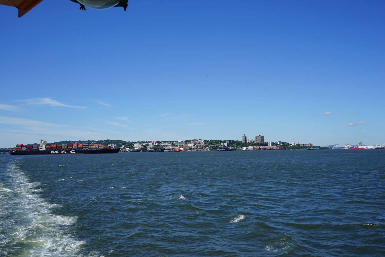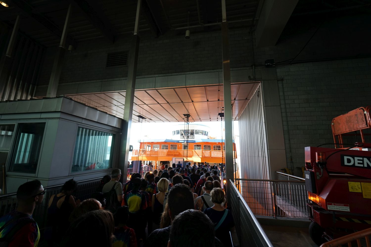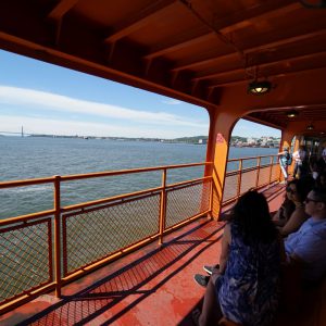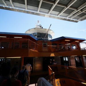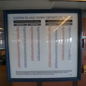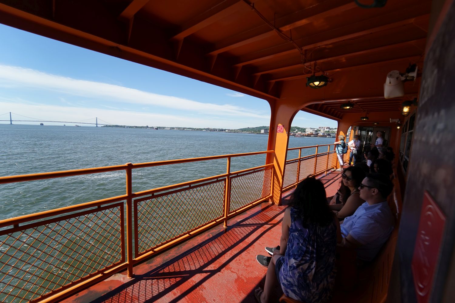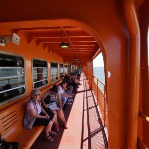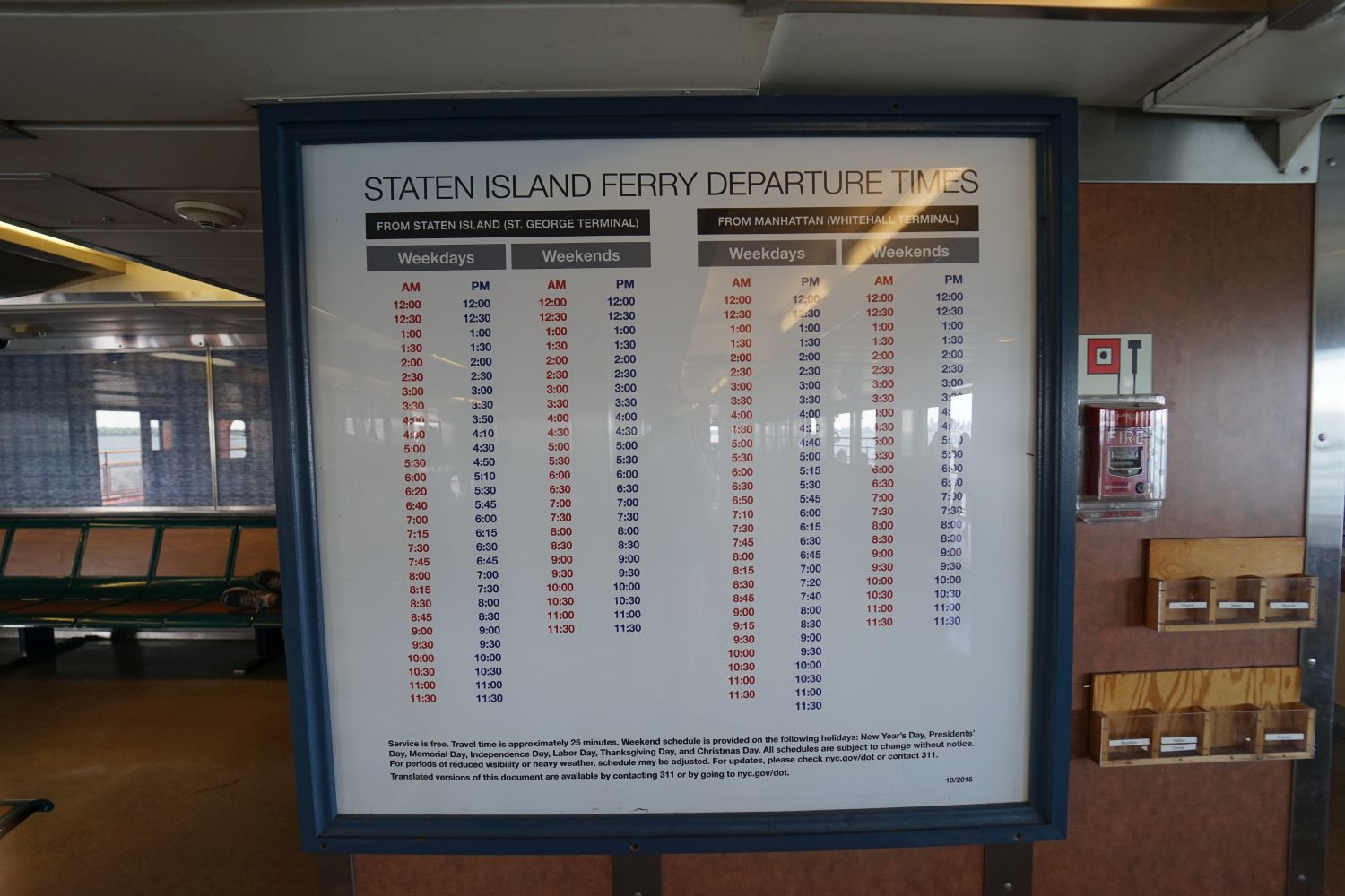 Einer der offenen Punkte auf meiner Todo-Liste war der Besuch der Freiheitsstatue. Um jetzt nicht unnötig viel Geld für einen direkten Besuch auszugeben, stand heute die Sparversion auf dem Programm. Zu nächst ging es nach Downtown Manhattan von wo aus die kostenlose Fähre nach Staten Island ablegt. Glücklicherweise verläuft die Fährroute direkt an der Statue vorbei und ist zum sonst eher teuren New York eine willkommene gratis Abwechslung. Die Fahrt dauert etwa 20-25 Minuten und sollte man währenddessen den Hungertot erleiden gibt es auch Snacks und Kaltgetränke. Da Staten Island keinen Besuch lohnt, ist beim anlegen etwas eile geboten. Die Fähre zurück legt zeitgleich mit der Ankommenden ab. Durch einen kleinen Sprint durch das Fährterminal lässt sich so eine Wartezeit von 30 Minuten vermeiden. Also direkt bei Ankunft mit einer Horde von anderen Touristen quer durch die Station gehetzt um zurück nochmal die selbe Route zu genießen.