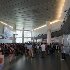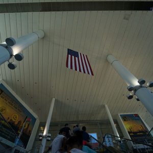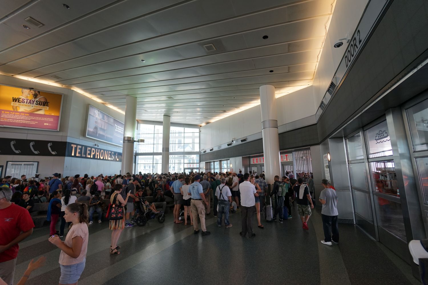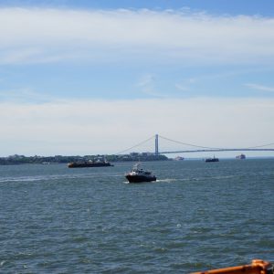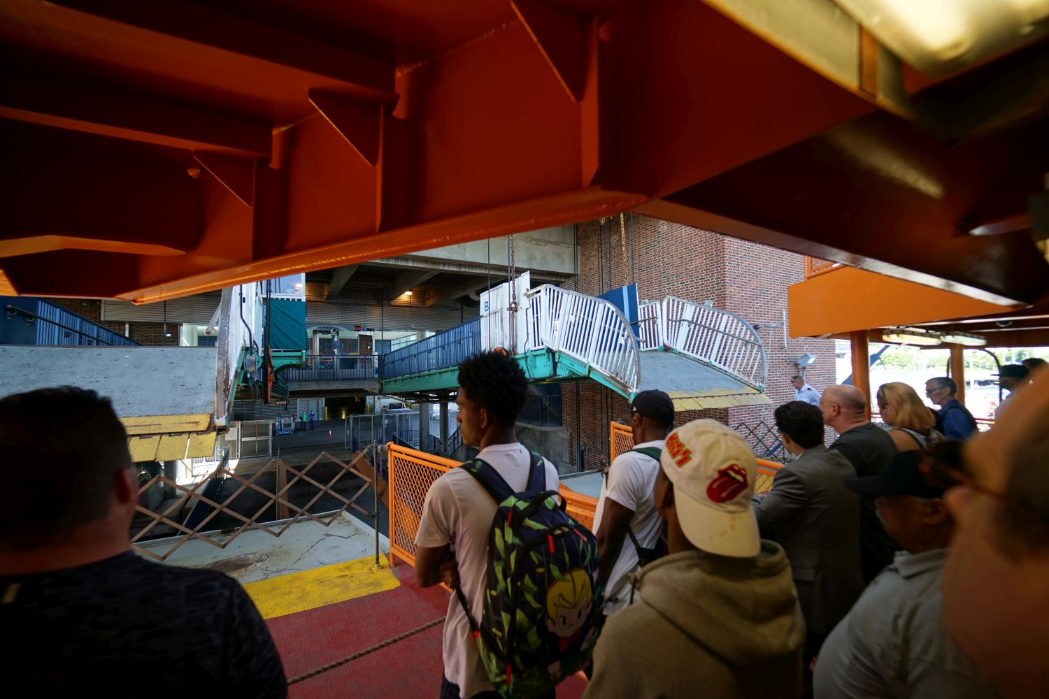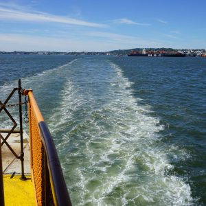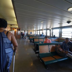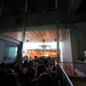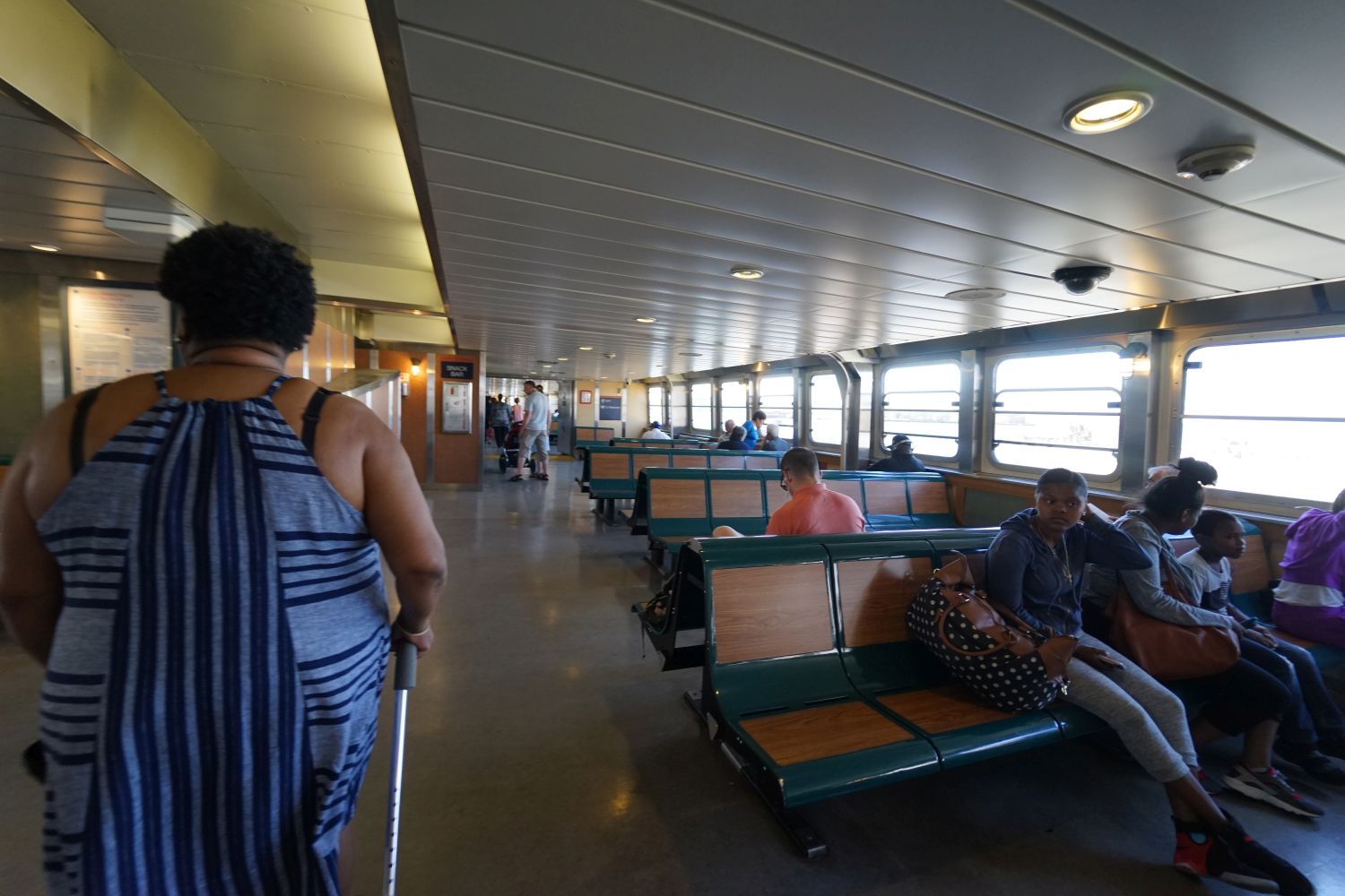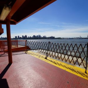 Einer der offenen Punkte auf meiner Todo-Liste war der Besuch der Freiheitsstatue. Um jetzt nicht unnötig viel Geld für einen direkten Besuch auszugeben, stand heute die Sparversion auf dem Programm. Zu nächst ging es nach Downtown Manhattan von wo aus die kostenlose Fähre nach Staten Island ablegt. Glücklicherweise verläuft die Fährroute direkt an der Statue vorbei und ist zum sonst eher teuren New York eine willkommene gratis Abwechslung. Die Fahrt dauert etwa 20-25 Minuten und sollte man währenddessen den Hungertot erleiden gibt es auch Snacks und Kaltgetränke. Da Staten Island keinen Besuch lohnt, ist beim anlegen etwas eile geboten. Die Fähre zurück legt zeitgleich mit der Ankommenden ab. Durch einen kleinen Sprint durch das Fährterminal lässt sich so eine Wartezeit von 30 Minuten vermeiden. Also direkt bei Ankunft mit einer Horde von anderen Touristen quer durch die Station gehetzt um zurück nochmal die selbe Route zu genießen.