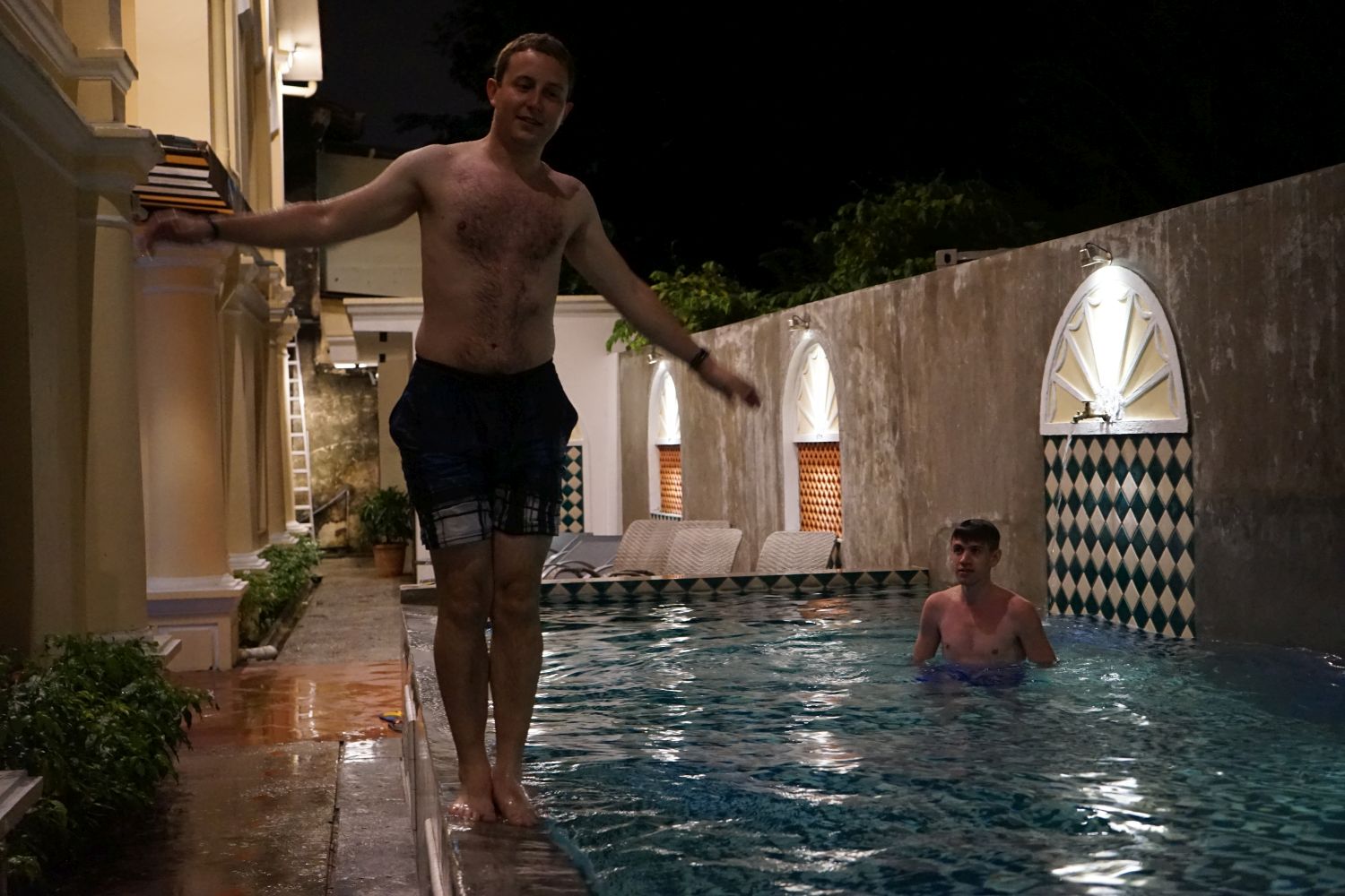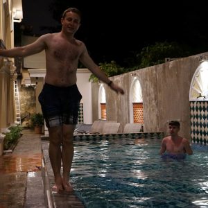 Da es bei unserer gestrigen Ankunft bereits dunkel war sollte heute Penang etwas erkundet werden. Gut 50% der malaysischen Bevölkerung ist dem Islam zugehörig. Dies viel uns bereits zum Sonnenaufgang auf als der erste Muezzin-Ruf ertönte und wir alle aus unseren Betten fielen. Um gegen diese Frühe Ruhestörung Beschwerde einzulegen ging es als erstes in die Moschee auf unserer Straße. Nach einer kurzen Führung sowie einer Gebetsdemonstration verließen wir das Gotteshaus mit einem Paket an Infoflyern für Ungläubige. Durch das indische Viertel führte unsere Weg in Richtung Rathaus vor dem eine Reihe von Berliner-Bären aufgestellt waren. Wir nahmen zu nächst an das es sich hierbei nur um eine zufällige Ähnlichkeit handelte. Es stellte sich dann aber schnell heraus das es hierbei wirklich um eine Aktion eines Berliner Kollektivs handelte und das die einzelnen Bären von den Botschaften der deutschen Hauptstadt gestiftete wurden und jeweils ein Land repräsentieren. Um der heißen Mittagssonne zu entgehen besuchten wir das 3D Trickeye Museum und probierten die ein oder andere optische Täuschung aus. Den kulturellen Pflichtteil des Mittags erledigten wir mit einer Besichtigung der Pinang Peranakan Mansion. Um anschließend zum Hafen zumarschieren von wo es in ein bekanntes Streetart-Viertel ging. Danach Stand das Mittagessen auf dem Programm. Danach begaben wir uns zurück ins Hotel wo wir den Rest des Tages am Pool oder faul im Hotelzimmer verbrachten.
