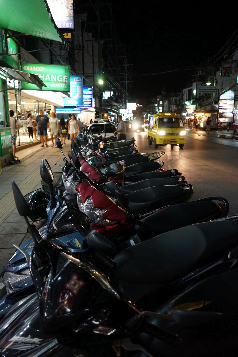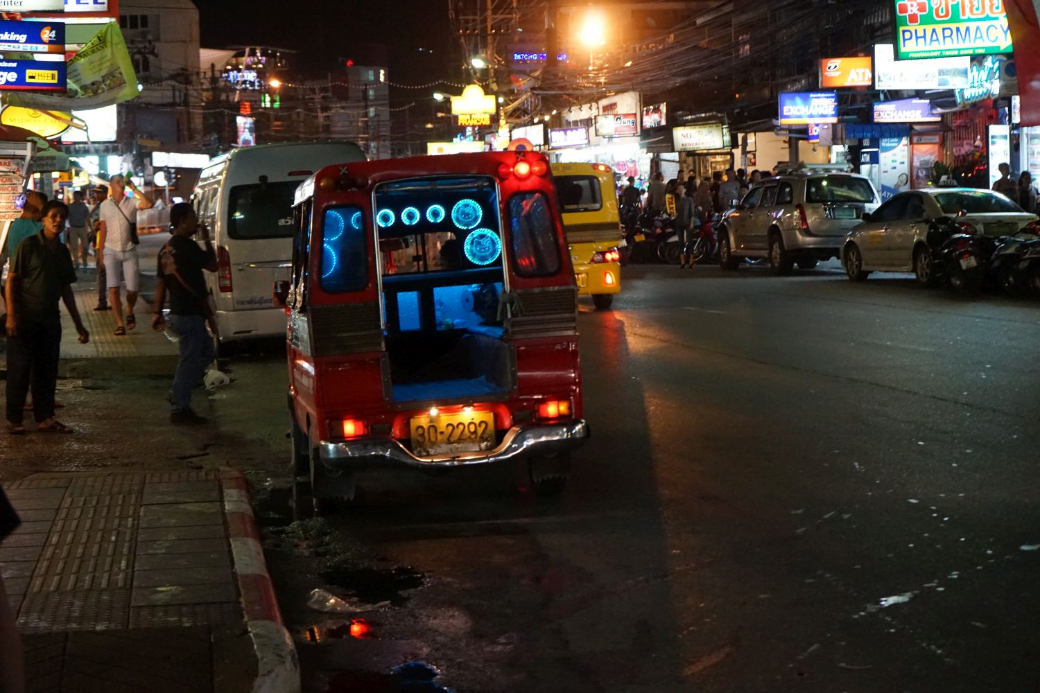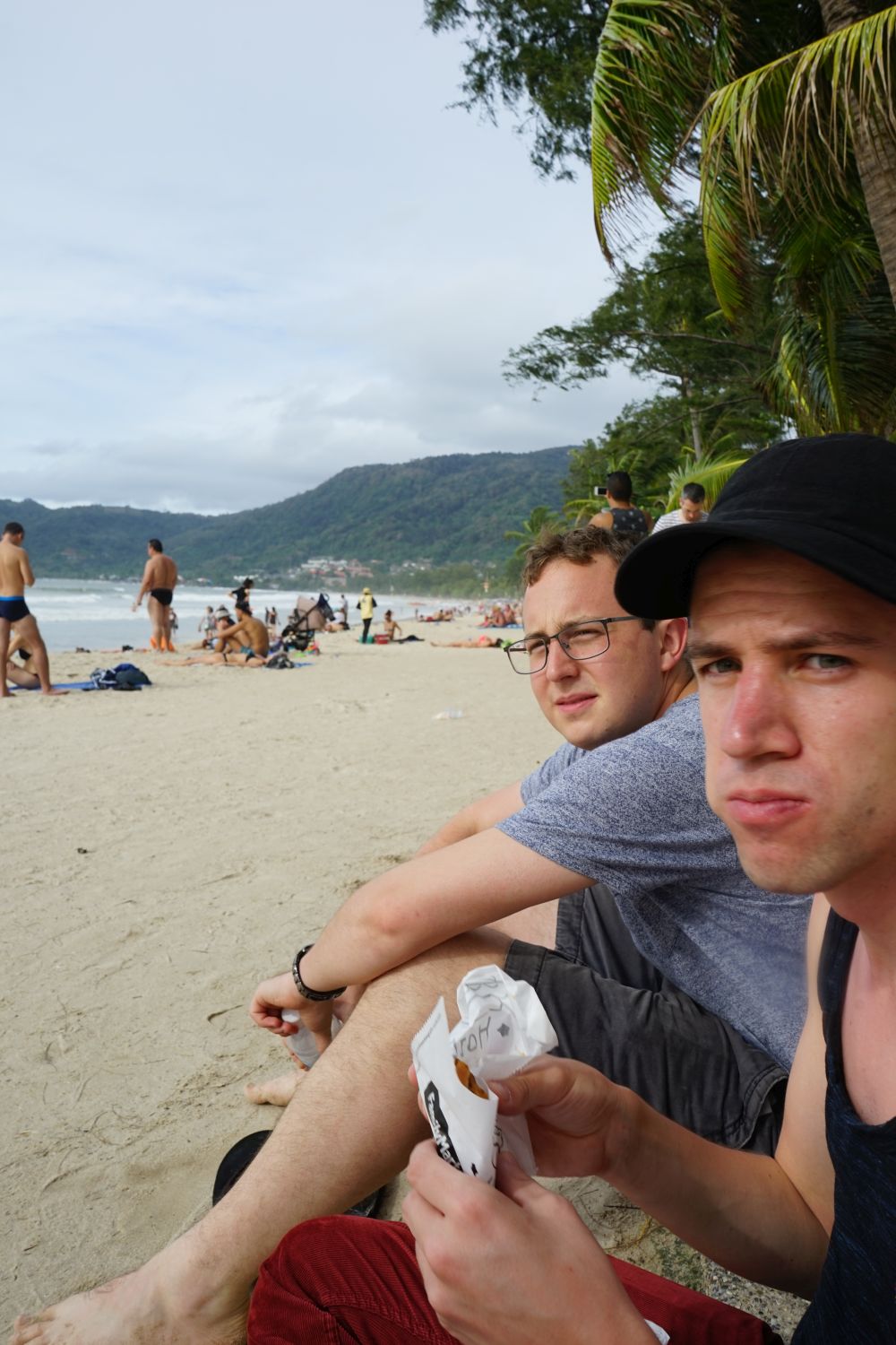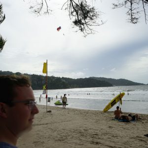 On the highway to hell. Unsere Zeit in Krabi neigte sich dem Ende zu und es war Zeit für ein neues Abenteuer. Es sollte auf die Insel Phuket gehen. Unsere Freude war groß, als wir den SUV vor unserer Hoteltür erblickten, doch leider brachte uns dieser nur zu einem Sammelplatz, von dem es weiter nach Patong auf Phuket gehen sollte. Nachdem wir circa eine Stunde in aller Herrgottsfrühe auf unseren Minivan wartetetn, durften wir mit Freude feststellen, dass dieser bereits voll war und wir uns unsere Plätze mit den Koffern und Rucksäcken der anderen Fahrgäste teilen durften. Da die anderen Businsassen vom Body-Mass-Index eher amerikanische Züge aufwiesen war ihr Gepäck auch dementsprechend groß. Somit folgten 3 Stunden Höllentour auf einer Sitzfläche, die nicht einmal einem Masthähnchen zur Verfügung steht, garniert mit einer Fahrweise eines japanisches Kamikazefliegers auf einer Thai-Autobahn voller Fahrer mit Fahrkünsten eines Alzeyers. Als wir endlich froh waren, angekommen zu sein und dachten, dass es nicht mehr schlimmer werden könne, wurden wir eines besseren belehrt. Wir waren im größten Moloch von Thailand gelandet: Patong auf Phuket. Doch dazu morgen mehr. In unserem skandinavischen Hotel angekommen, schnappten wir uns unsere Badesachen und verbrachten noch ein bisschen Zeit am Strand, der dann glücklicherweise sehr schön war. Den Abend ließen wir dann mit Thai-Food und einem kleinen Spaziergang durch die Stadt ausklingen.