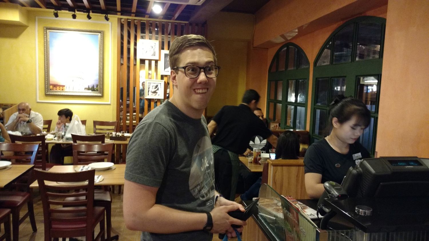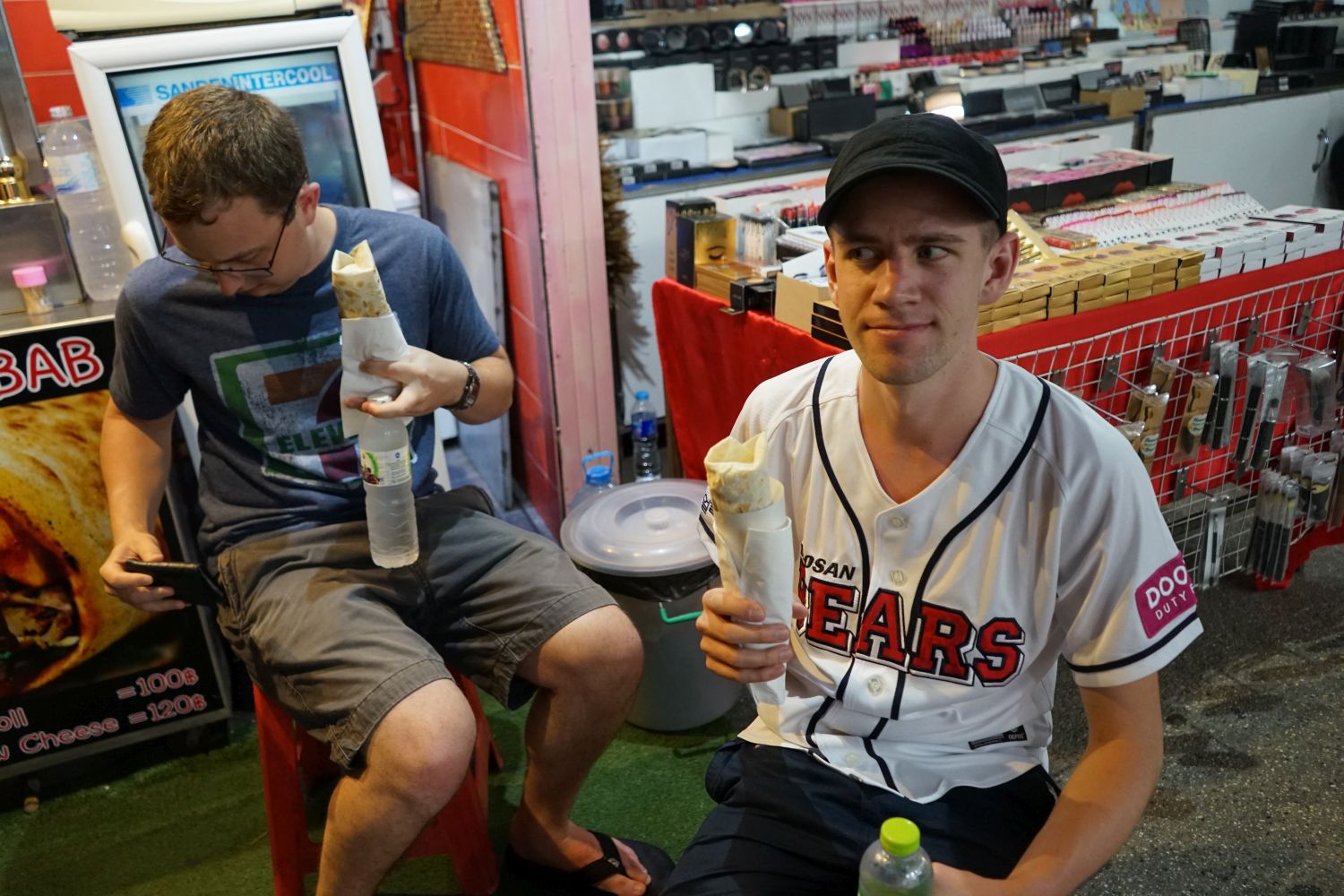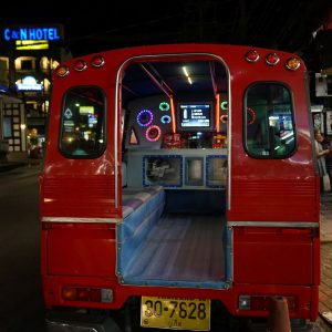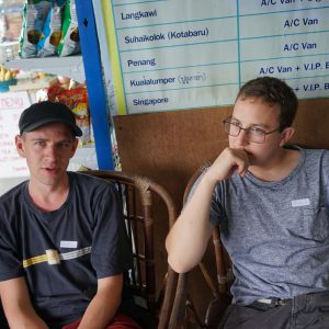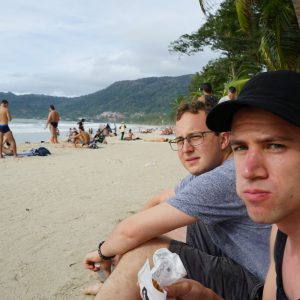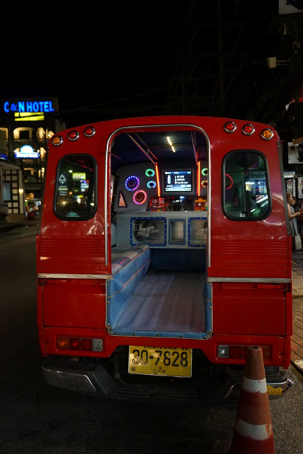 On the highway to hell. Unsere Zeit in Krabi neigte sich dem Ende zu und es war Zeit für ein neues Abenteuer. Es sollte auf die Insel Phuket gehen. Unsere Freude war groß, als wir den SUV vor unserer Hoteltür erblickten, doch leider brachte uns dieser nur zu einem Sammelplatz, von dem es weiter nach Patong auf Phuket gehen sollte. Nachdem wir circa eine Stunde in aller Herrgottsfrühe auf unseren Minivan wartetetn, durften wir mit Freude feststellen, dass dieser bereits voll war und wir uns unsere Plätze mit den Koffern und Rucksäcken der anderen Fahrgäste teilen durften. Da die anderen Businsassen vom Body-Mass-Index eher amerikanische Züge aufwiesen war ihr Gepäck auch dementsprechend groß. Somit folgten 3 Stunden Höllentour auf einer Sitzfläche, die nicht einmal einem Masthähnchen zur Verfügung steht, garniert mit einer Fahrweise eines japanisches Kamikazefliegers auf einer Thai-Autobahn voller Fahrer mit Fahrkünsten eines Alzeyers. Als wir endlich froh waren, angekommen zu sein und dachten, dass es nicht mehr schlimmer werden könne, wurden wir eines besseren belehrt. Wir waren im größten Moloch von Thailand gelandet: Patong auf Phuket. Doch dazu morgen mehr. In unserem skandinavischen Hotel angekommen, schnappten wir uns unsere Badesachen und verbrachten noch ein bisschen Zeit am Strand, der dann glücklicherweise sehr schön war. Den Abend ließen wir dann mit Thai-Food und einem kleinen Spaziergang durch die Stadt ausklingen.