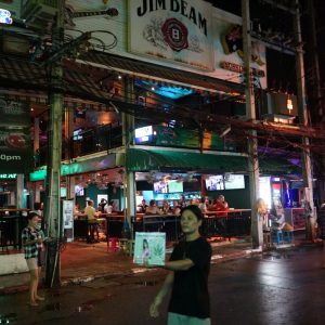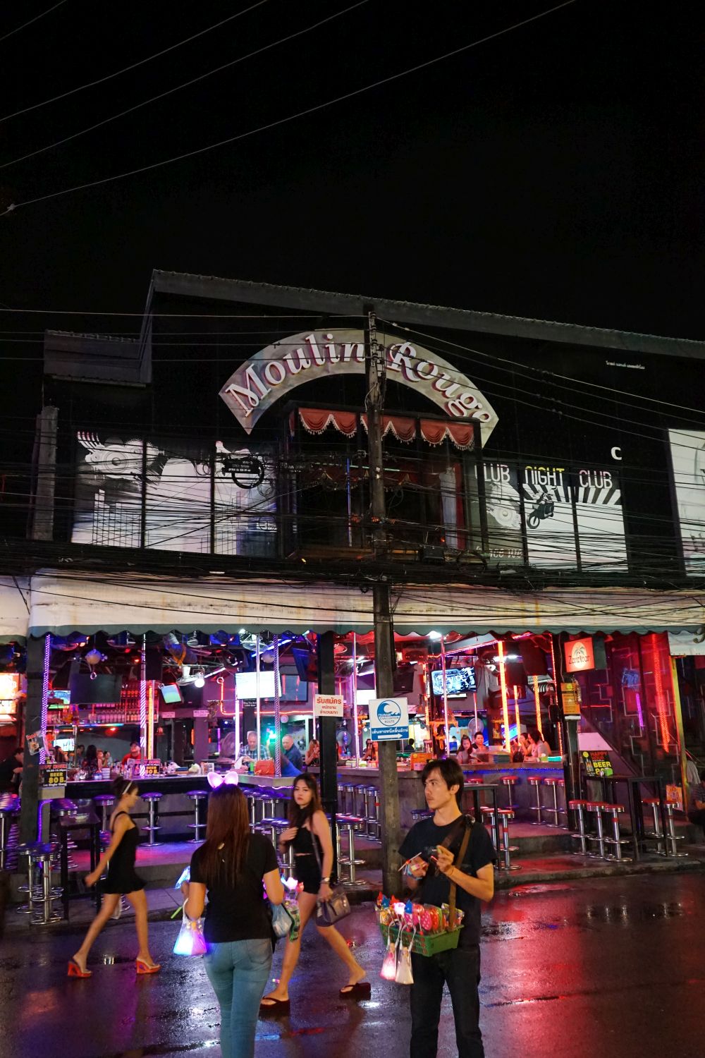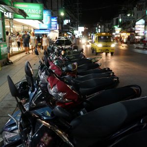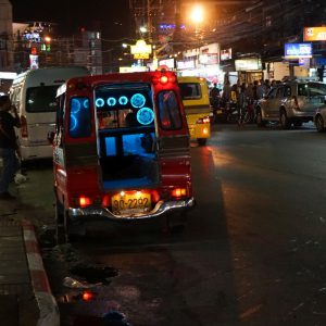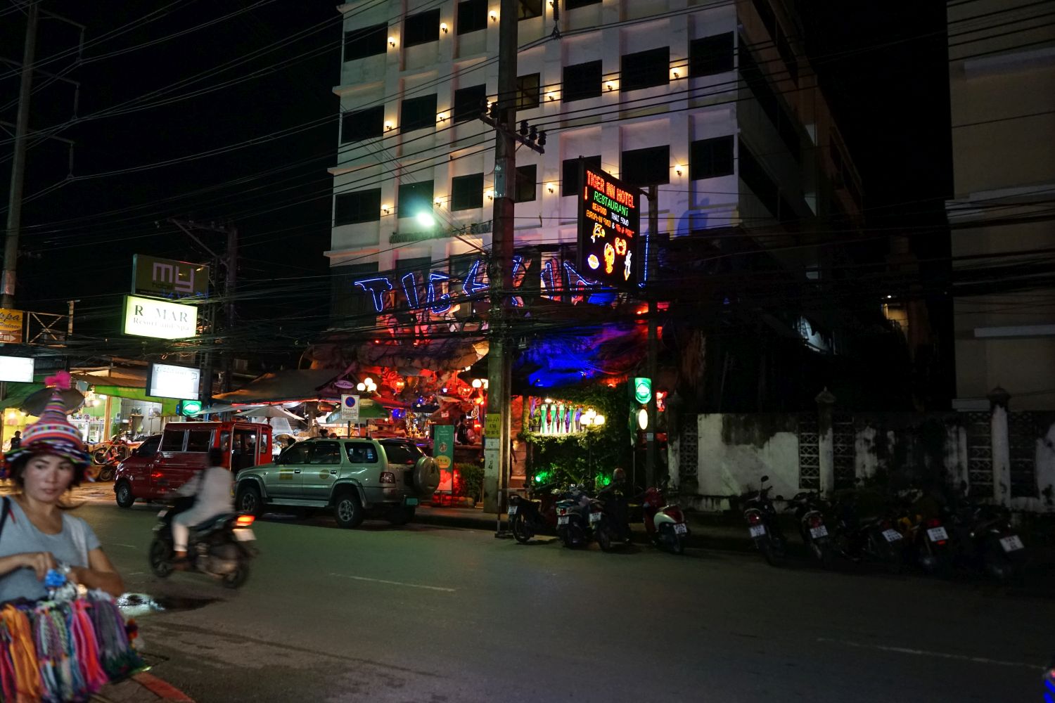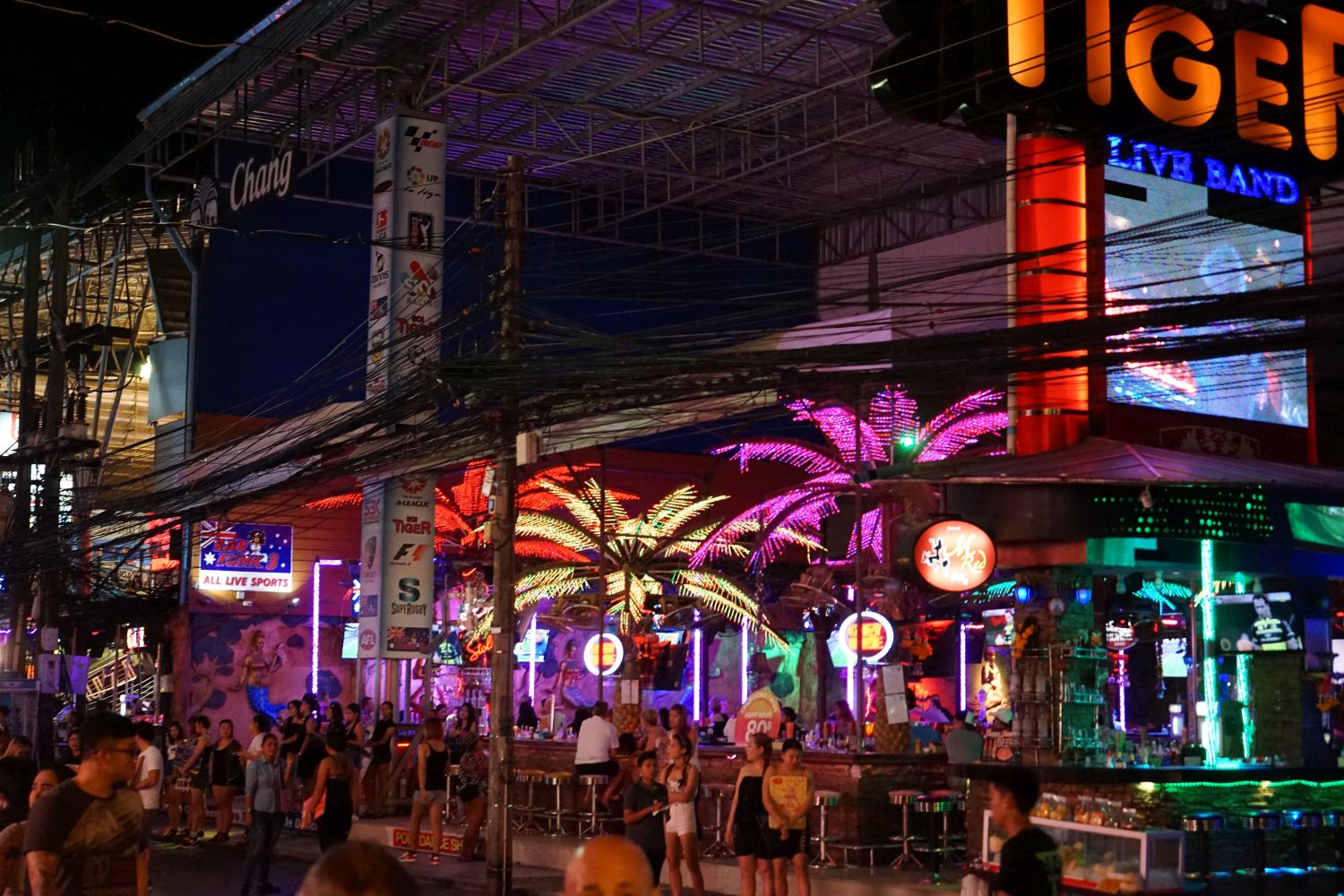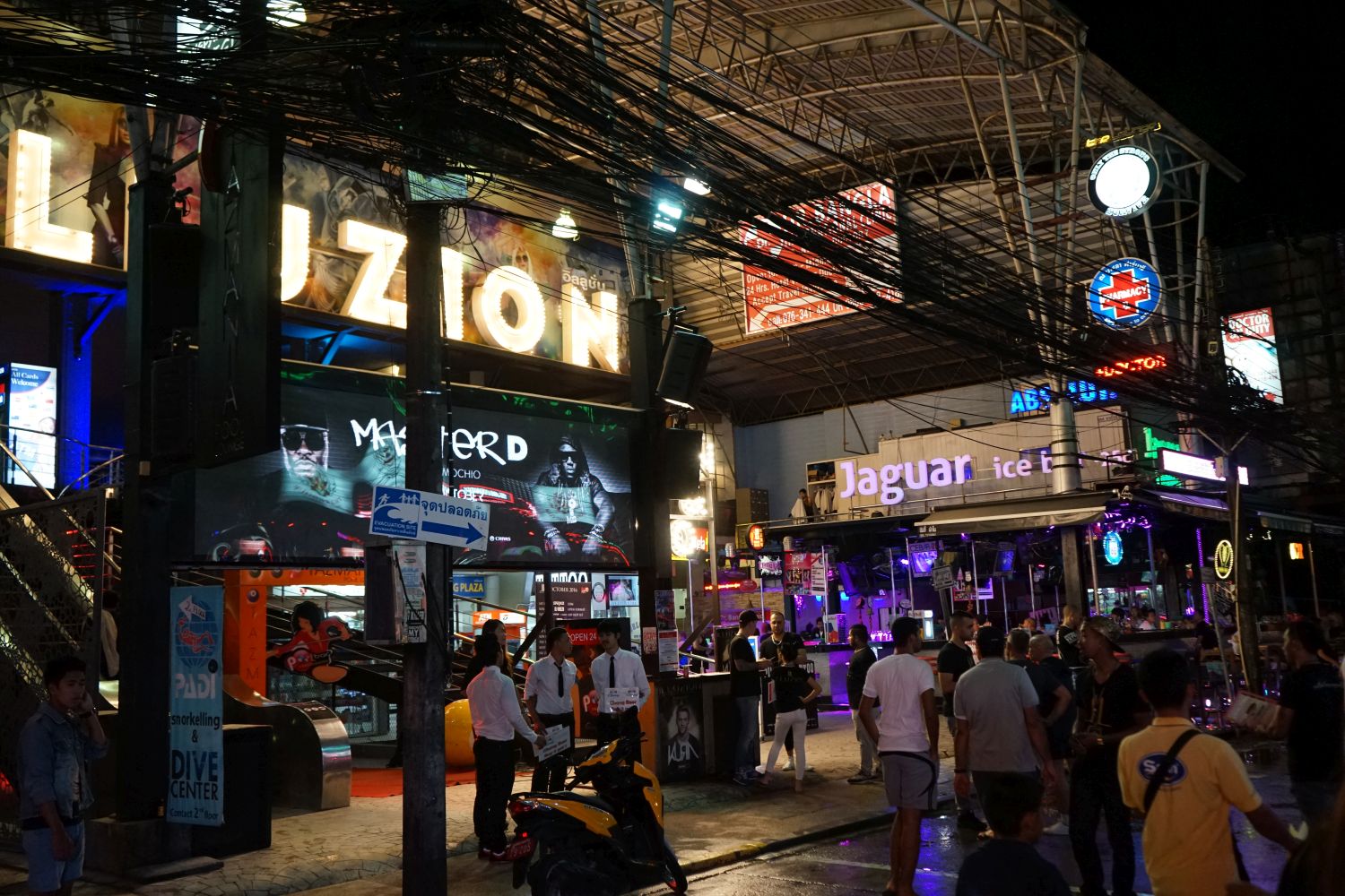 Gemeinsam begann der Spießroutenlauf durch die Straßen von Patong. Zu nächst ging es an einer schier unendlichen Zahl von Massagestudios vorbei. Vor diesen sitzen die Masseusen wie Hühner auf der Stange und warten auf männliche Opfer die direkt mit den Rufen „Massag, Massag“ angesprungen werden. Nach dem wir die ersten Wellen an Masseusen abgewehrt hatten ging es über die Partymeile von Patong. Hier warteten neue Gegner auf uns. Das Angebot an Massagen ist hier verschwinden gering dafür muss man sich vor Ladyboys, Prostituierten, Bardamen, Sexshow-Promotern und anderen schmierigen Gestalten in acht nehmen. Dieser Ort hat überhaupt nichts mit der asiatischen Zurückhaltung zu tun und sogar Familien mit Kindern werden auf dieser Meile mit dubiosen Angeboten überschüttet. Wie man hier mehr als 1-2 Abende freiwillig verbringen kann ist uns ein Rätsel. Wir würden es daher auch als Moloch von Thailand bezeichnen.