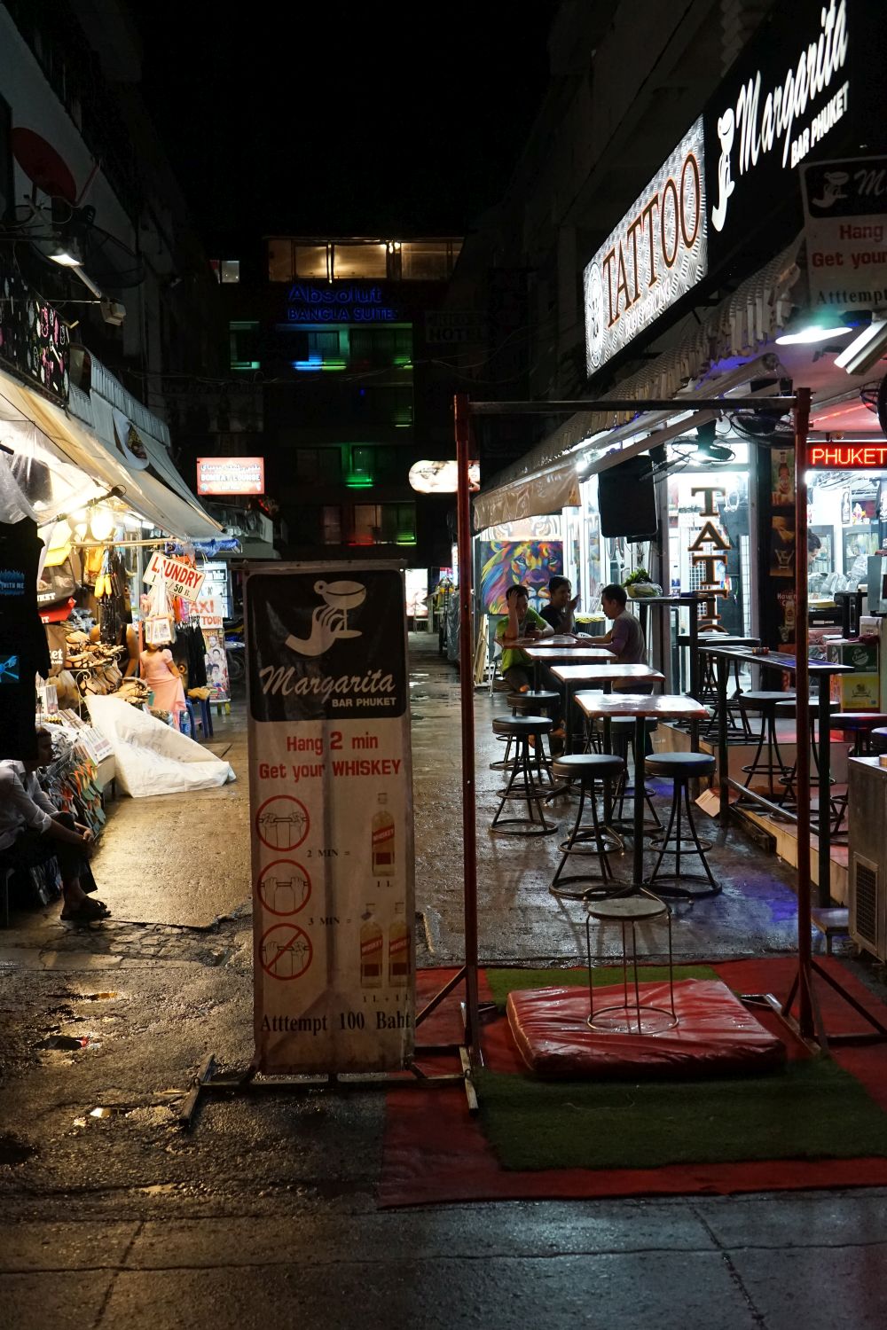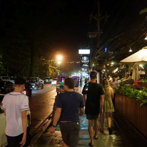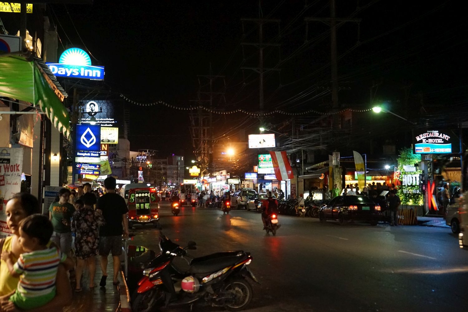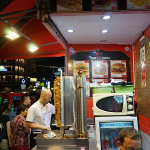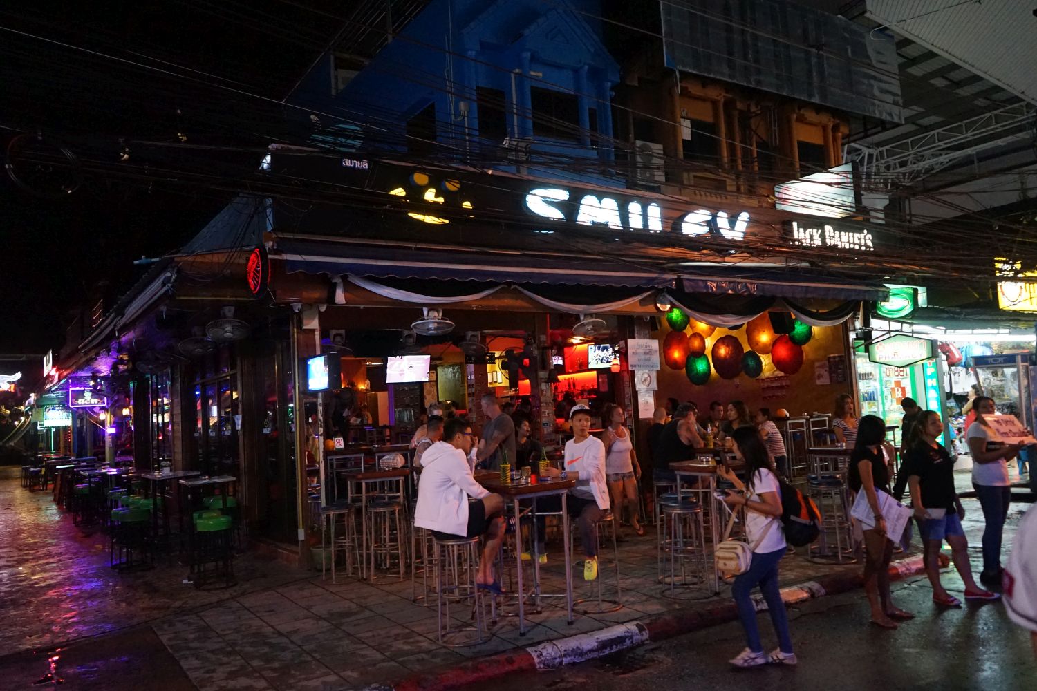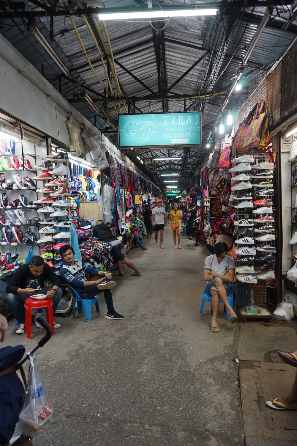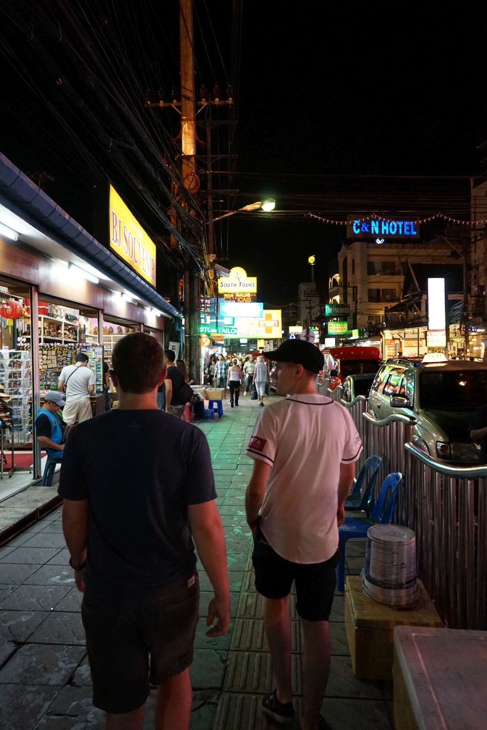 Gemeinsam begann der Spießroutenlauf durch die Straßen von Patong. Zu nächst ging es an einer schier unendlichen Zahl von Massagestudios vorbei. Vor diesen sitzen die Masseusen wie Hühner auf der Stange und warten auf männliche Opfer die direkt mit den Rufen „Massag, Massag“ angesprungen werden. Nach dem wir die ersten Wellen an Masseusen abgewehrt hatten ging es über die Partymeile von Patong. Hier warteten neue Gegner auf uns. Das Angebot an Massagen ist hier verschwinden gering dafür muss man sich vor Ladyboys, Prostituierten, Bardamen, Sexshow-Promotern und anderen schmierigen Gestalten in acht nehmen. Dieser Ort hat überhaupt nichts mit der asiatischen Zurückhaltung zu tun und sogar Familien mit Kindern werden auf dieser Meile mit dubiosen Angeboten überschüttet. Wie man hier mehr als 1-2 Abende freiwillig verbringen kann ist uns ein Rätsel. Wir würden es daher auch als Moloch von Thailand bezeichnen.