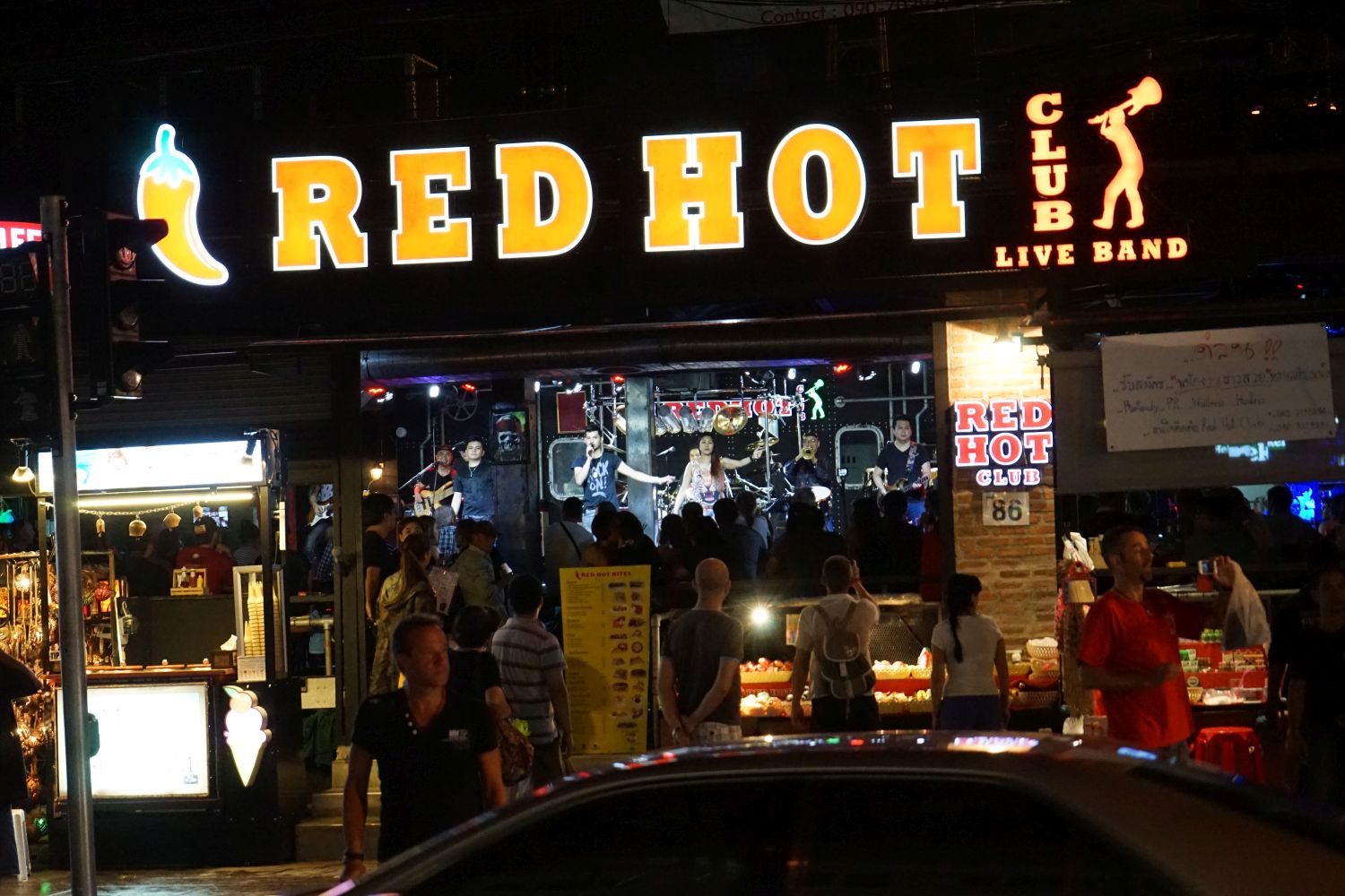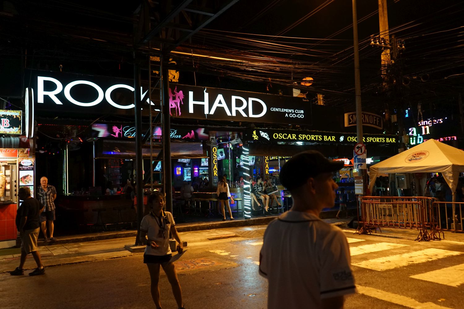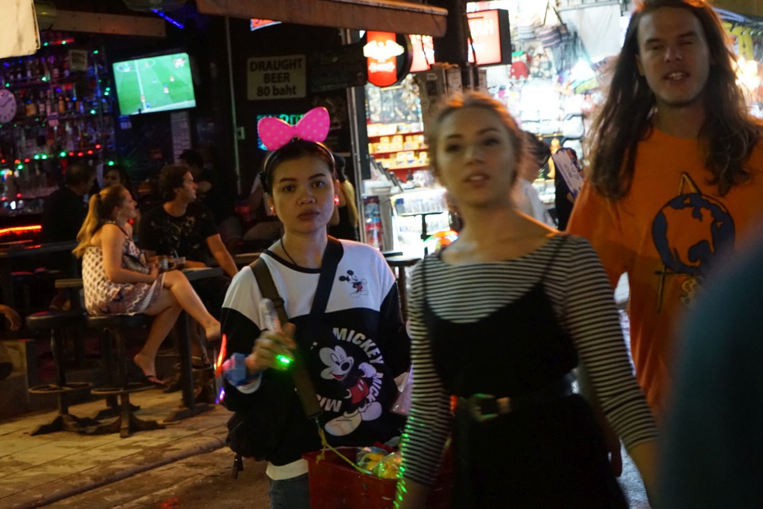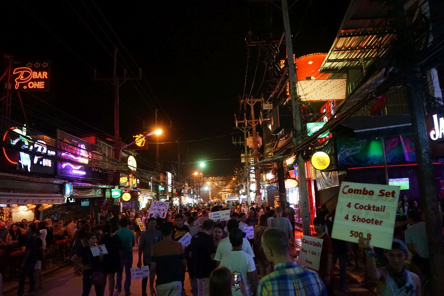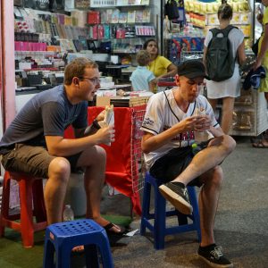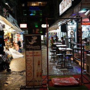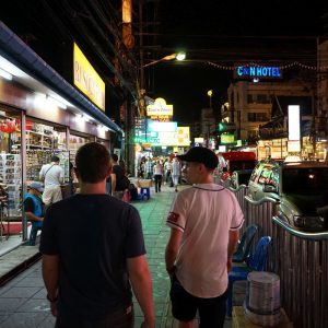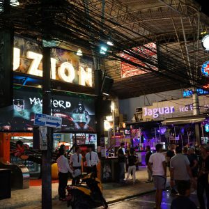 Gemeinsam begann der Spießroutenlauf durch die Straßen von Patong. Zu nächst ging es an einer schier unendlichen Zahl von Massagestudios vorbei. Vor diesen sitzen die Masseusen wie Hühner auf der Stange und warten auf männliche Opfer die direkt mit den Rufen „Massag, Massag“ angesprungen werden. Nach dem wir die ersten Wellen an Masseusen abgewehrt hatten ging es über die Partymeile von Patong. Hier warteten neue Gegner auf uns. Das Angebot an Massagen ist hier verschwinden gering dafür muss man sich vor Ladyboys, Prostituierten, Bardamen, Sexshow-Promotern und anderen schmierigen Gestalten in acht nehmen. Dieser Ort hat überhaupt nichts mit der asiatischen Zurückhaltung zu tun und sogar Familien mit Kindern werden auf dieser Meile mit dubiosen Angeboten überschüttet. Wie man hier mehr als 1-2 Abende freiwillig verbringen kann ist uns ein Rätsel. Wir würden es daher auch als Moloch von Thailand bezeichnen.