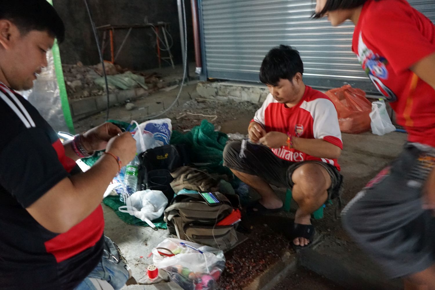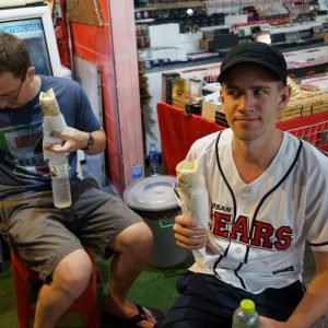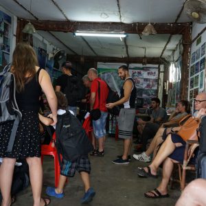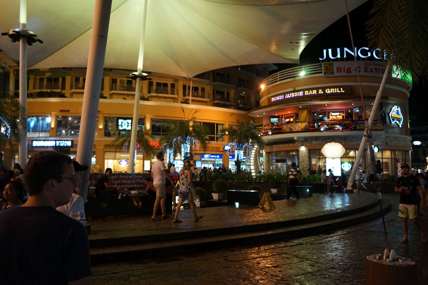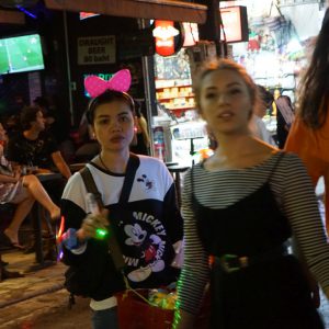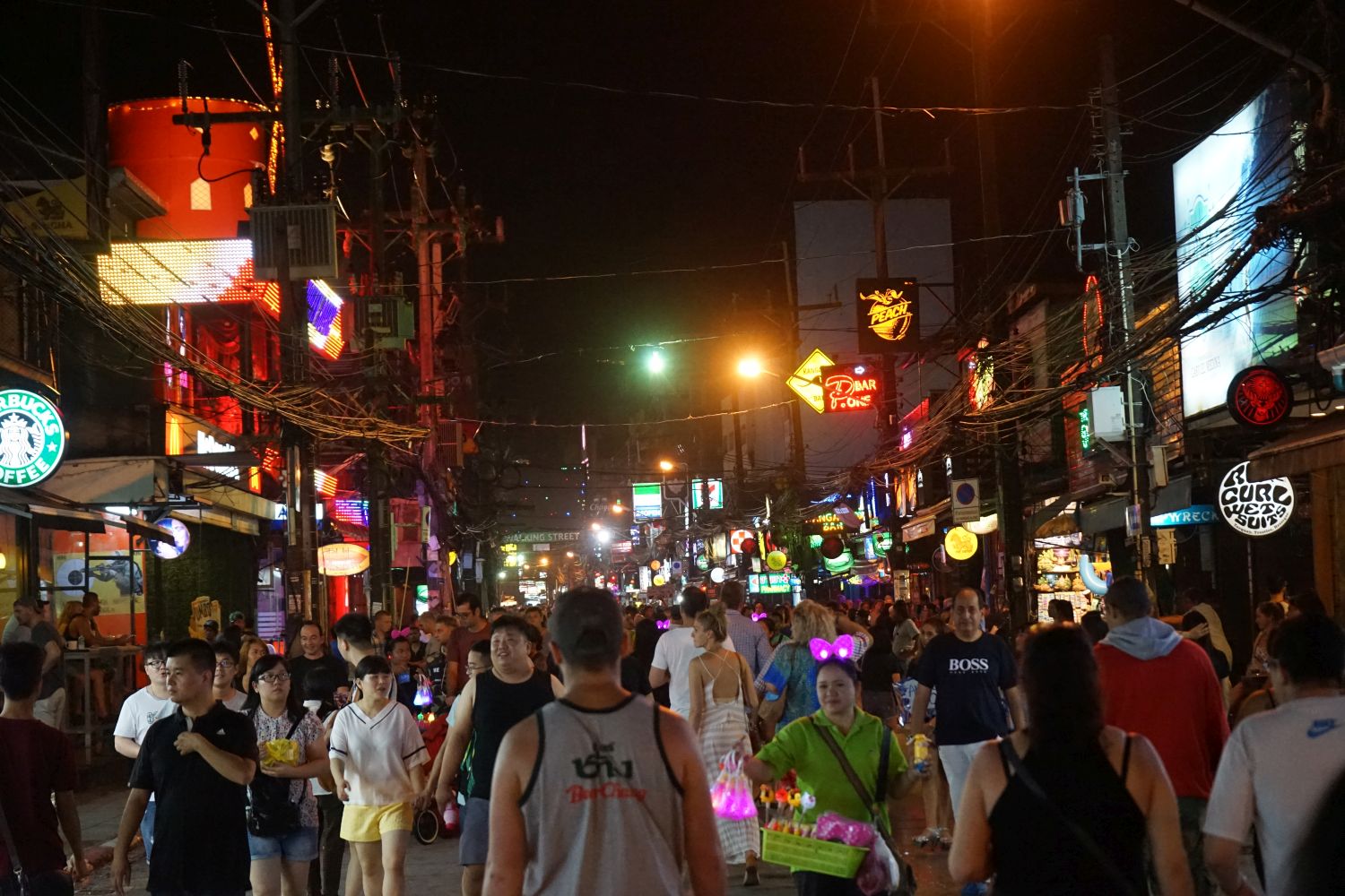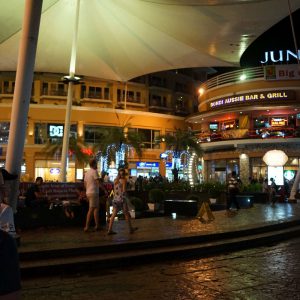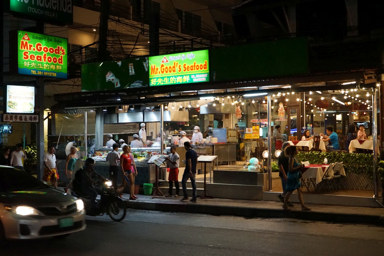 Gemeinsam begann der Spießroutenlauf durch die Straßen von Patong. Zu nächst ging es an einer schier unendlichen Zahl von Massagestudios vorbei. Vor diesen sitzen die Masseusen wie Hühner auf der Stange und warten auf männliche Opfer die direkt mit den Rufen „Massag, Massag“ angesprungen werden. Nach dem wir die ersten Wellen an Masseusen abgewehrt hatten ging es über die Partymeile von Patong. Hier warteten neue Gegner auf uns. Das Angebot an Massagen ist hier verschwinden gering dafür muss man sich vor Ladyboys, Prostituierten, Bardamen, Sexshow-Promotern und anderen schmierigen Gestalten in acht nehmen. Dieser Ort hat überhaupt nichts mit der asiatischen Zurückhaltung zu tun und sogar Familien mit Kindern werden auf dieser Meile mit dubiosen Angeboten überschüttet. Wie man hier mehr als 1-2 Abende freiwillig verbringen kann ist uns ein Rätsel. Wir würden es daher auch als Moloch von Thailand bezeichnen.
