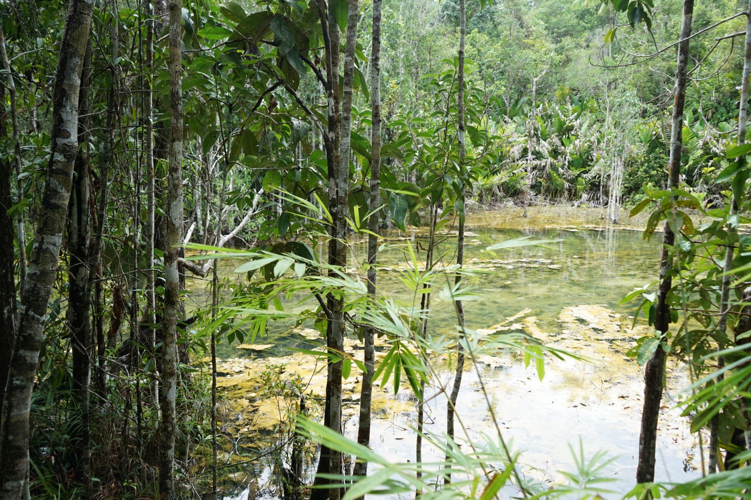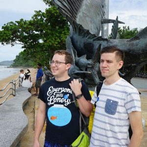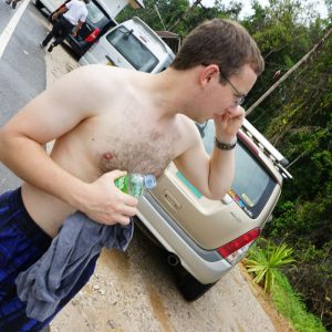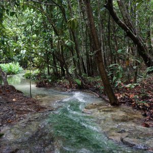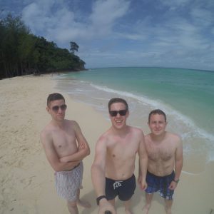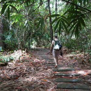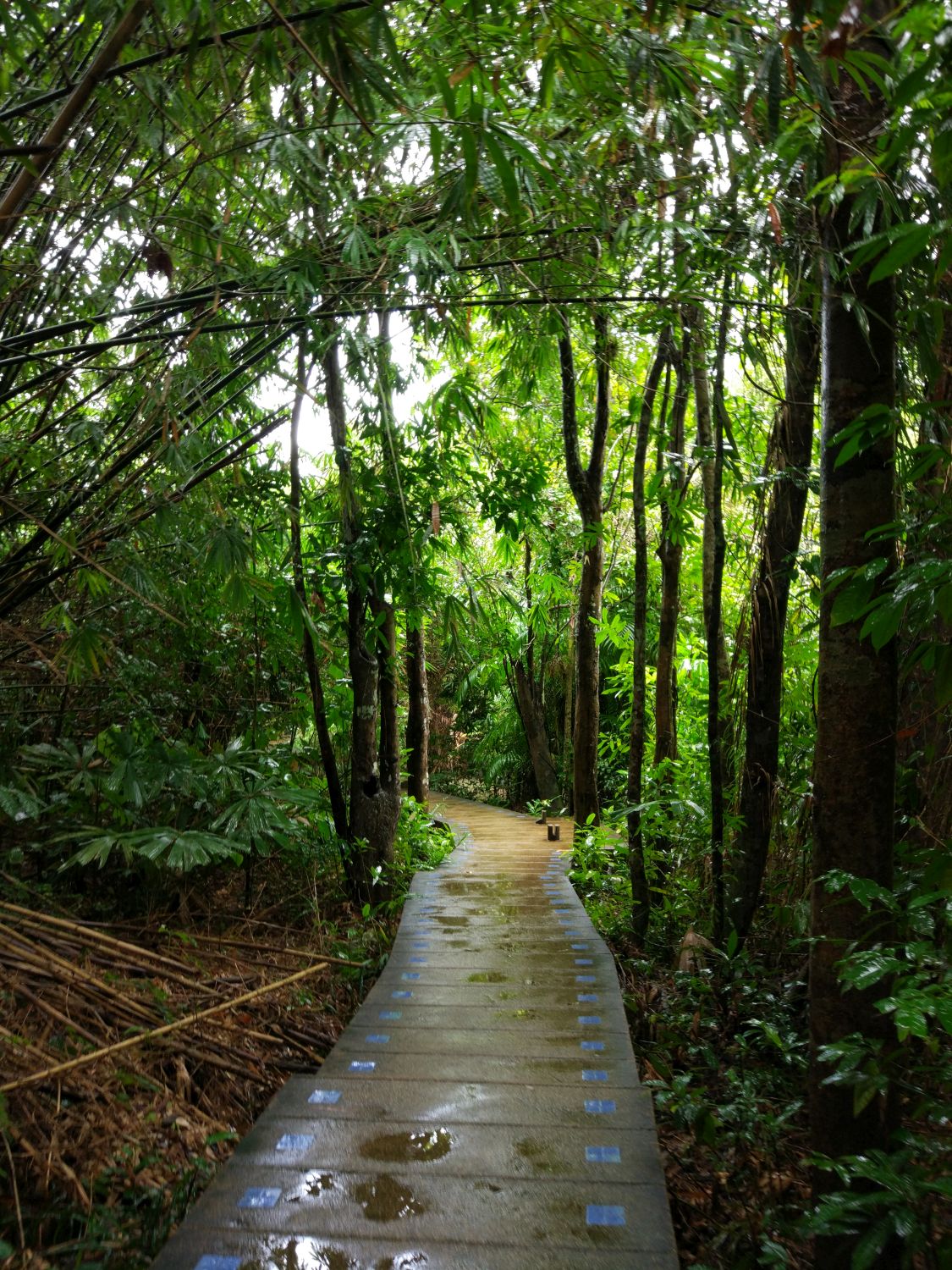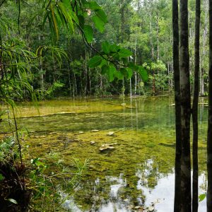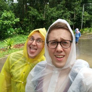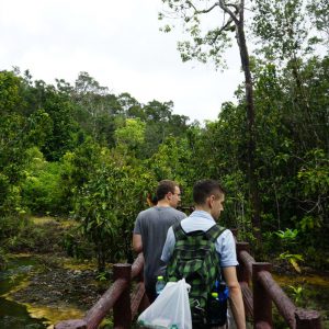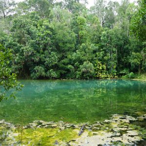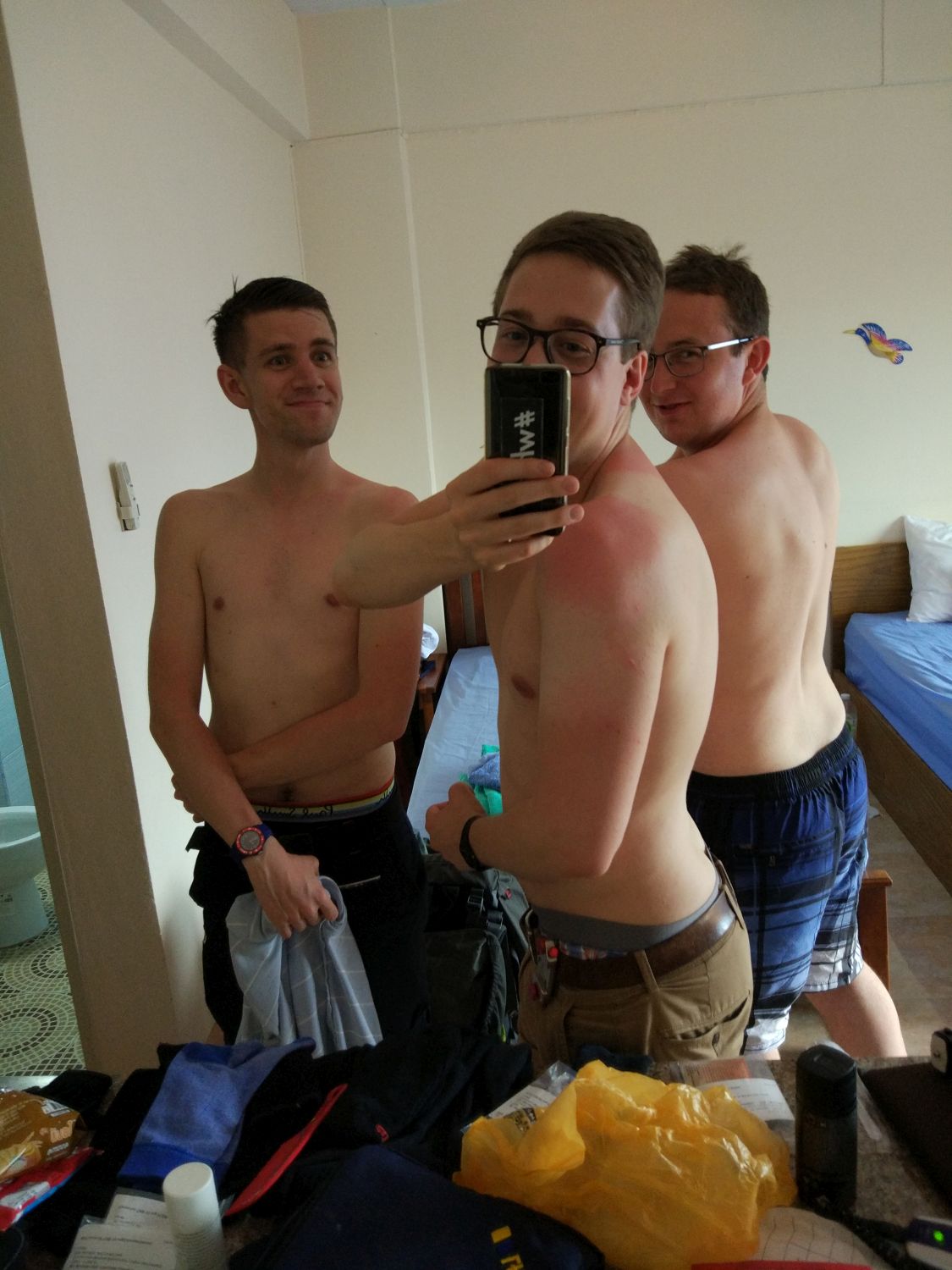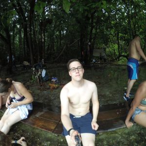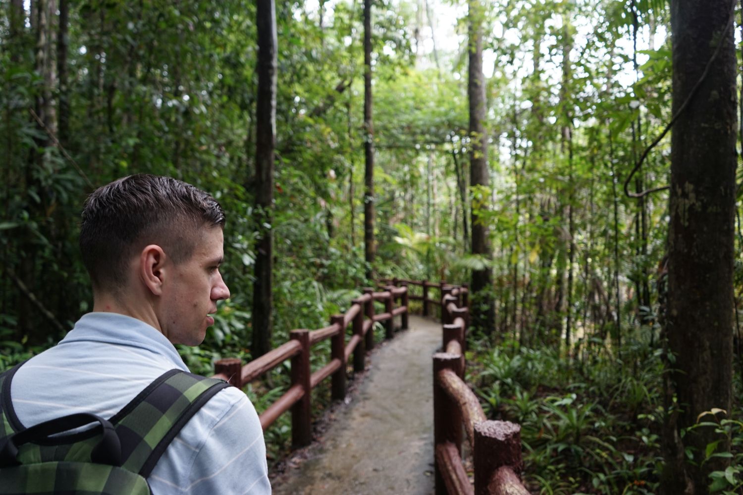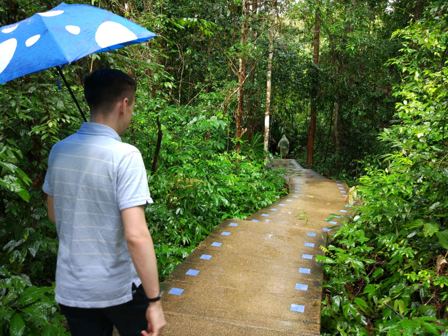 Endlich wieder Regen. Einer verregneten Nacht folgte ein verregneter Morgen, den wir glücklicherweise erst einmal in einem Minivan verbrachten. Wir hatten uns eine Tour mit „Guide“ gebucht, die uns in die Urwälder Thailands führen sollte. Guide bedeutet in diesem Zusammenhang aber nur, dass es eine Person gab, die einem Uhrzeiten in einer Sprache zuschrie, die dem Englischen zumindest ein bisschen ähnelte. Erklärungen zu irgendwas gab es leider keine. Als Erstes ging es zu den heißen Quellen (Namtok Ron) die leider ziemlich überfüllt und aufgrund des Regens alles andere als glasklar waren. Wir hielten uns dort also nicht besonders lange auf und so waren wir schnell wieder in unserem gemütlichen Minivan. Als nächster Stop war der Emerald See (Sa Morakot) geplant. Hier verbrachten wir auch die meiste Zeit. Nach dem ausgiebigen Baden in einem ebenfalls überfüllten Pool, plantschten wir dann noch ein bisschen in einem abseits gelegen Wasserfällchen, wo es deutlich entspannter zuging. Wie bei allen Touren in Südostasien ist der Zeitplan immer sehr straff und so ging es schnell wieder zum Minivan und dann fast direkt – zwei Chinesen aus unserer Reisegruppe waren kurz verschollen-  zum Elephant Trekking. Wie der Name schon andeutet ist das ein Elefantenritt durch den Dschungel. Abgesehen von der Tatsache, dass es sich dabei um massive Tierquälerei handelte, war es aber ganz unterhaltsam, zumal die Guides die ganze Zeit ein paar Chinesinnen aus unserer Reisegruppe veräppelten. Auf dem Rückweg machten wir dann noch einen kurzen Stop bei 7Eleven, dem Laden unseres Vertrauens, wo wir uns mit Proviant eindeckten. Im Hotel angekommen, entspannten wir noch ein bisschen bei ein paar Stückchen Thai-Pizza und traten wir unsere Reise ins Traumland an, um für den folgenden Tag in Topform zu sein. Aber das ist eine andere Geschichte und ein neuer Blogeintrag 😉