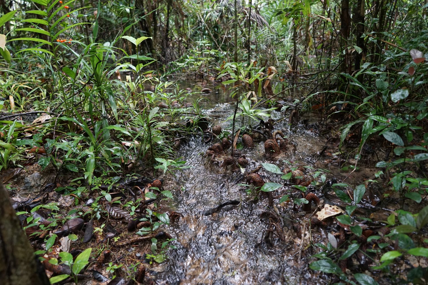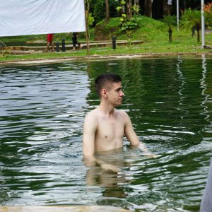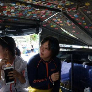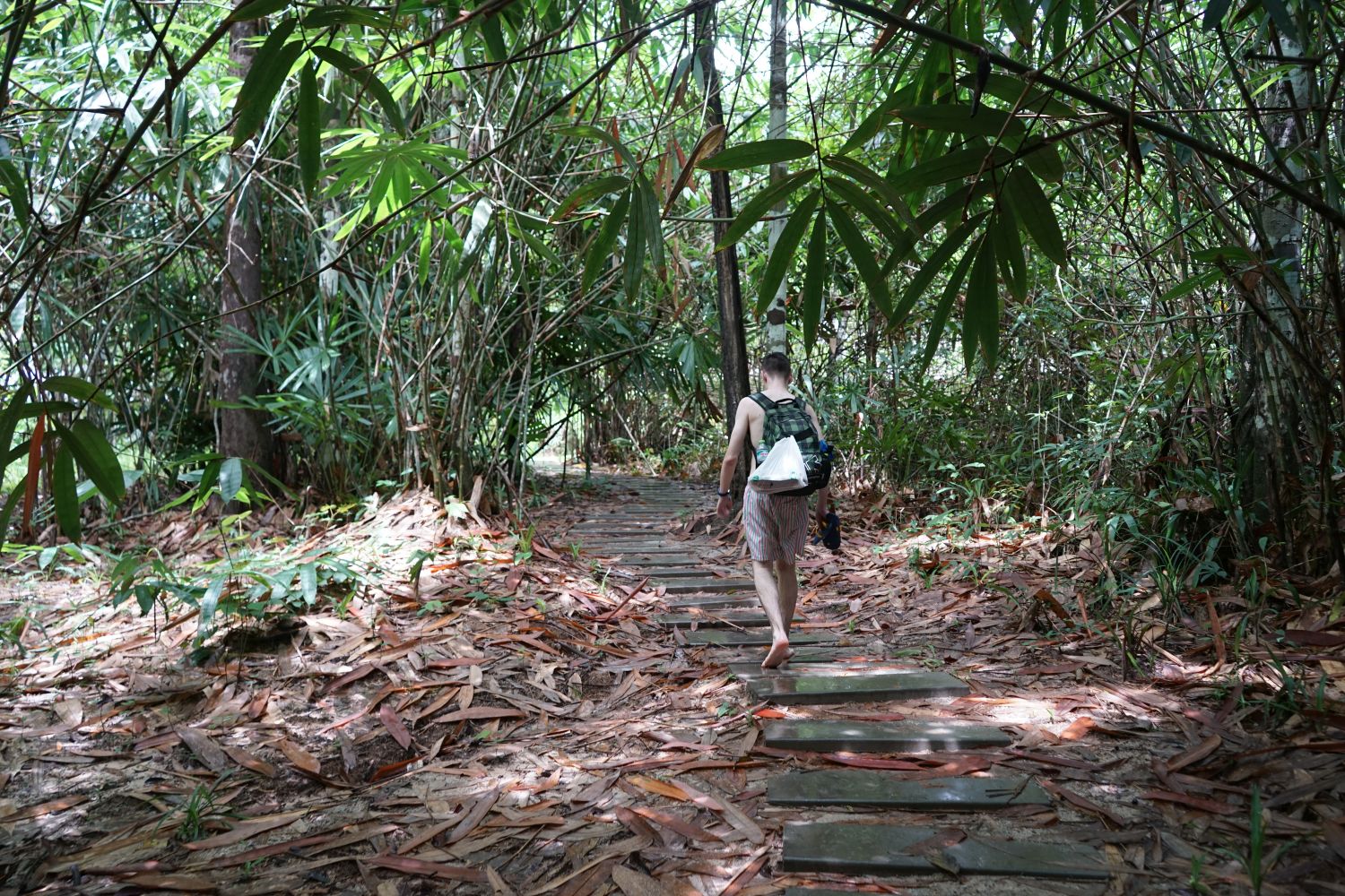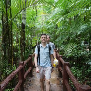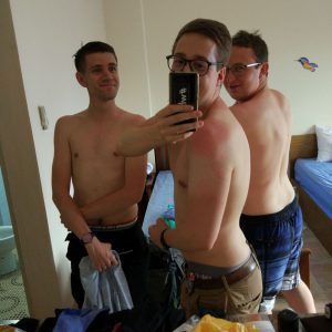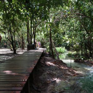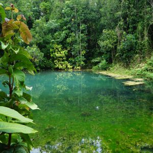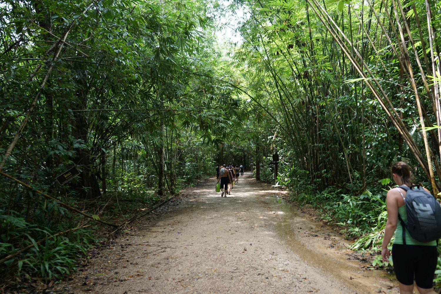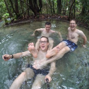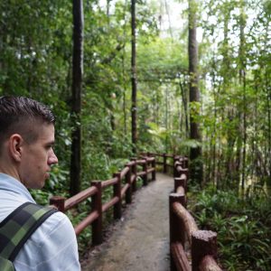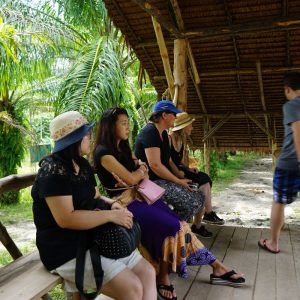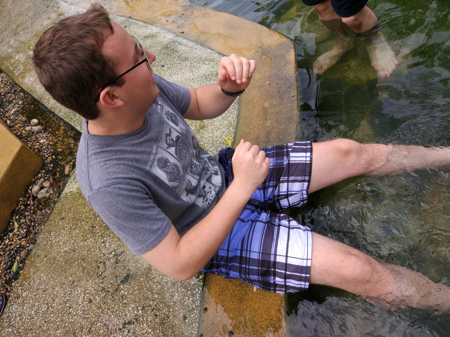 Endlich wieder Regen. Einer verregneten Nacht folgte ein verregneter Morgen, den wir glücklicherweise erst einmal in einem Minivan verbrachten. Wir hatten uns eine Tour mit „Guide“ gebucht, die uns in die Urwälder Thailands führen sollte. Guide bedeutet in diesem Zusammenhang aber nur, dass es eine Person gab, die einem Uhrzeiten in einer Sprache zuschrie, die dem Englischen zumindest ein bisschen ähnelte. Erklärungen zu irgendwas gab es leider keine. Als Erstes ging es zu den heißen Quellen (Namtok Ron) die leider ziemlich überfüllt und aufgrund des Regens alles andere als glasklar waren. Wir hielten uns dort also nicht besonders lange auf und so waren wir schnell wieder in unserem gemütlichen Minivan. Als nächster Stop war der Emerald See (Sa Morakot) geplant. Hier verbrachten wir auch die meiste Zeit. Nach dem ausgiebigen Baden in einem ebenfalls überfüllten Pool, plantschten wir dann noch ein bisschen in einem abseits gelegen Wasserfällchen, wo es deutlich entspannter zuging. Wie bei allen Touren in Südostasien ist der Zeitplan immer sehr straff und so ging es schnell wieder zum Minivan und dann fast direkt – zwei Chinesen aus unserer Reisegruppe waren kurz verschollen-  zum Elephant Trekking. Wie der Name schon andeutet ist das ein Elefantenritt durch den Dschungel. Abgesehen von der Tatsache, dass es sich dabei um massive Tierquälerei handelte, war es aber ganz unterhaltsam, zumal die Guides die ganze Zeit ein paar Chinesinnen aus unserer Reisegruppe veräppelten. Auf dem Rückweg machten wir dann noch einen kurzen Stop bei 7Eleven, dem Laden unseres Vertrauens, wo wir uns mit Proviant eindeckten. Im Hotel angekommen, entspannten wir noch ein bisschen bei ein paar Stückchen Thai-Pizza und traten wir unsere Reise ins Traumland an, um für den folgenden Tag in Topform zu sein. Aber das ist eine andere Geschichte und ein neuer Blogeintrag 😉
