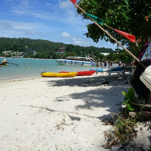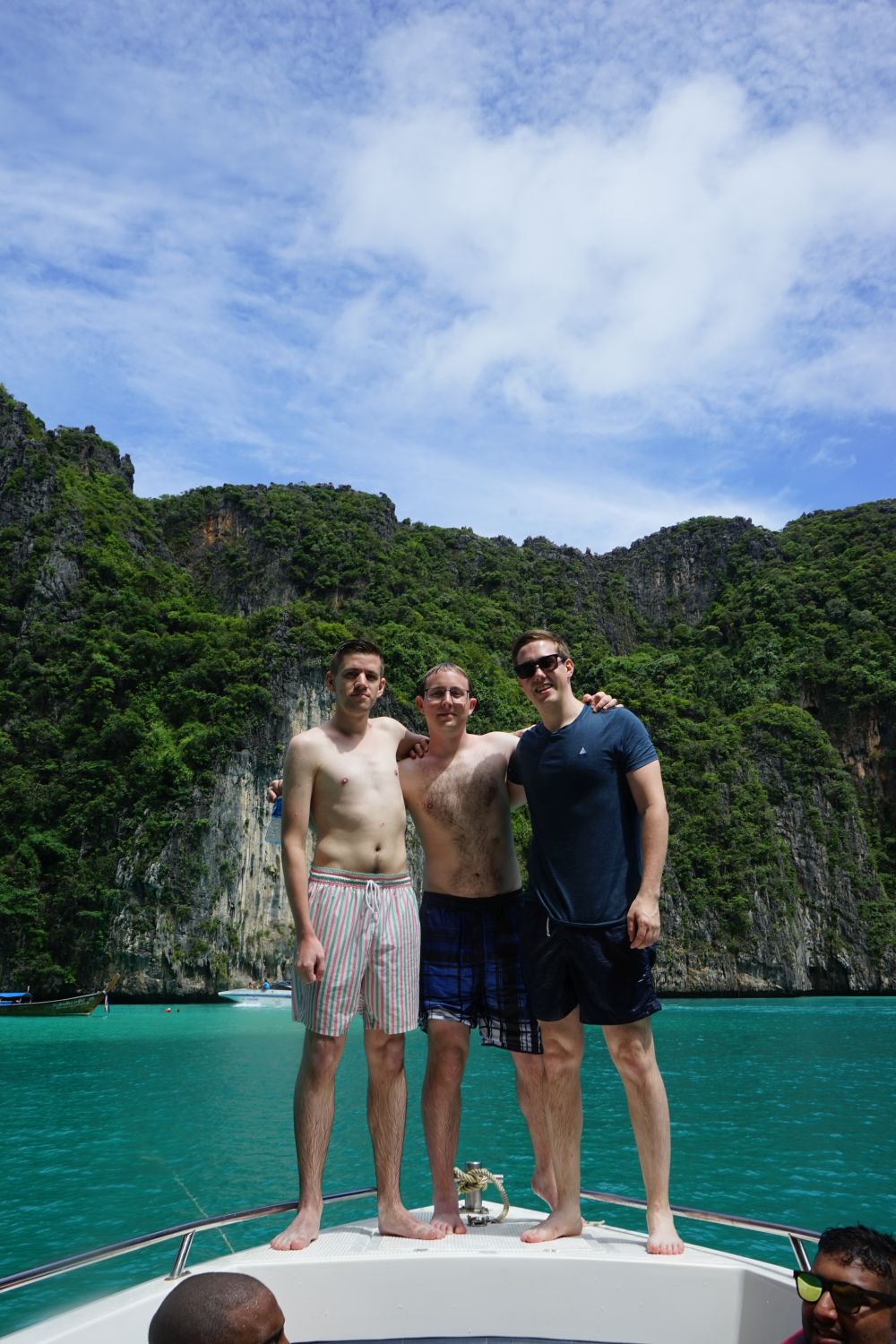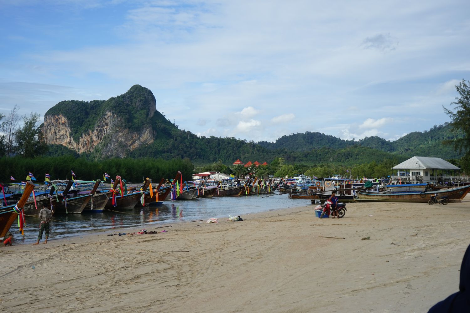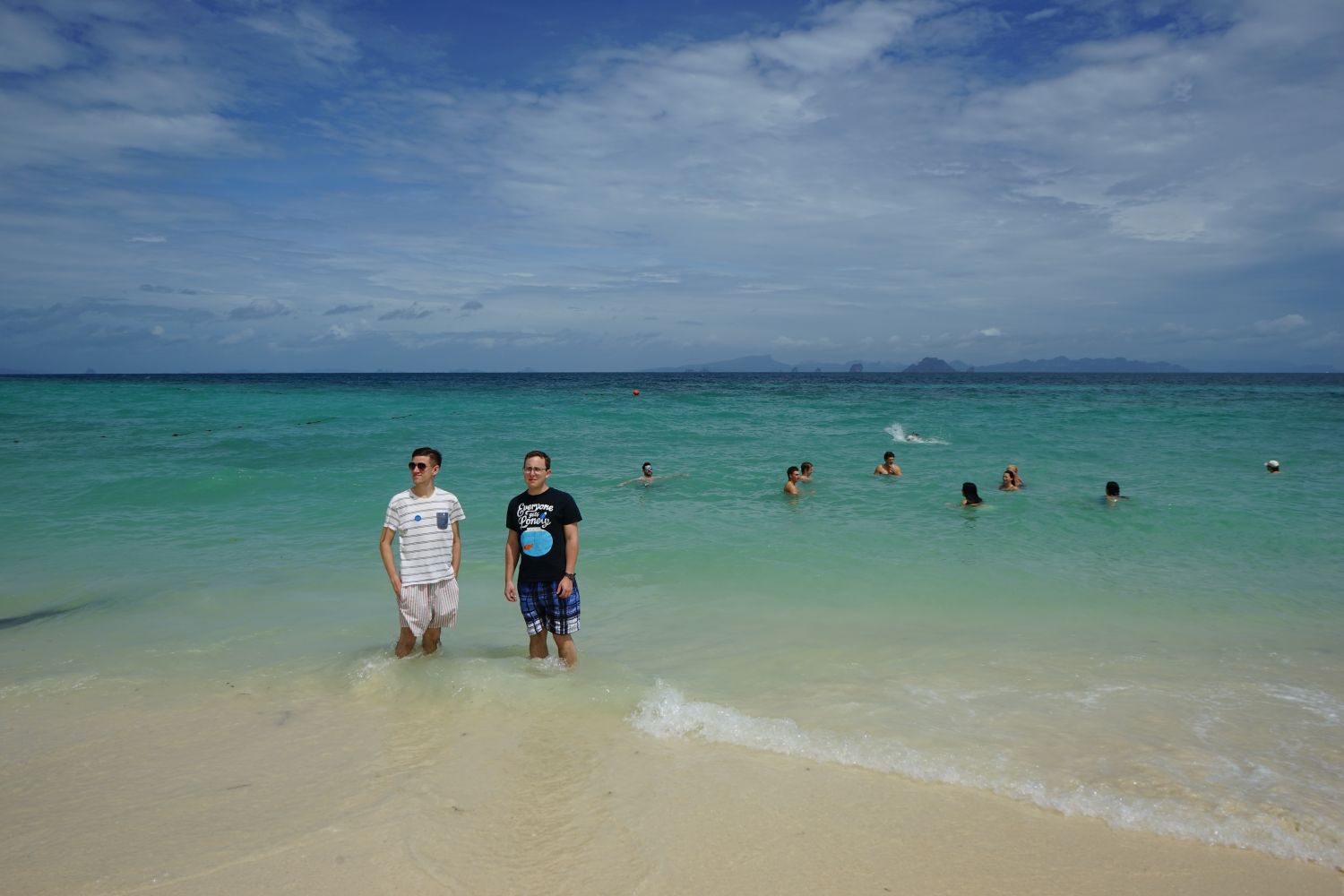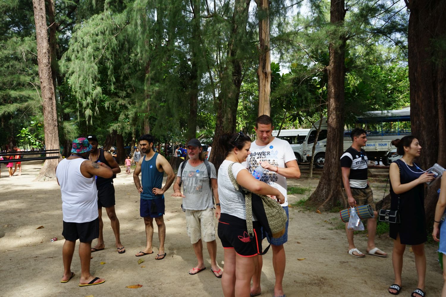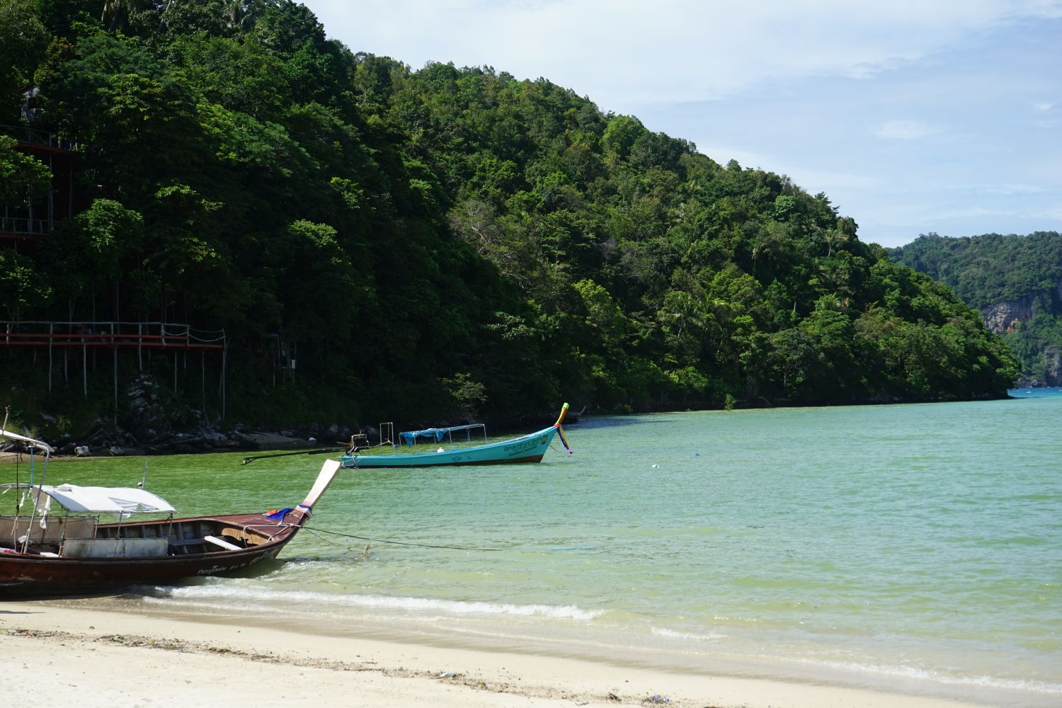 Morgenstund hat Gold im Mund. Um 7:30 Uhr stand unser gebuchter Mini-Van bereits vor der Tür und sollte uns in das nächste Abenteuer führen. Nach einer dreiviertel stündigen Fahrt standen wir am Strand von Ao Nang, der Touristenortschaft in der Nähe von Krabi-Stadt in der sich unser Hotel befand. Nun wurde es richtig zum Kotzen. Dies ist wörtlich gemeint denn die Bootsfahrt zu den Phi Phi Inseln führte bei einem Großteil der Bootsinsassen zu plötzlichen schwall artigen Entleerungen des Mageninhalts. Auf Grund der Regenzeit war der Wellengang besonders hoch. Auf der ersten Insel angekommen wankten alle Tourteilnehmer zum Strand und hatten 40 Minuten Zeit wieder auf ihr Leben klar zukommen. Dann ging es auch schon weiter zum Schnorcheln. Auch diese eher unspektakulären 30 Minuten gingen schnell vorbei und wir machten uns endlich auf zum Höhepunkt der Tour, Maya Beach. Hier wurde der bekannte Film „The Beach“ gedreht, in dem Leonardo DiCaprio die Hauptrolle besetzt. Nach einem kurzen Zwischenstopp an der Affeninsel ging es endlich zum Mittagessen nach Ko Phi Phi Don wo es neben einem großen Buffet auch einen herrlichen Strand zum entspannen gab. Die Rückfahrt verlief, bedingt durch das gute Wetter weitestgehend ruhig so dass die Körperinhalte der Bootsinsassen an ihren angestammten Orten blieben.