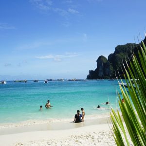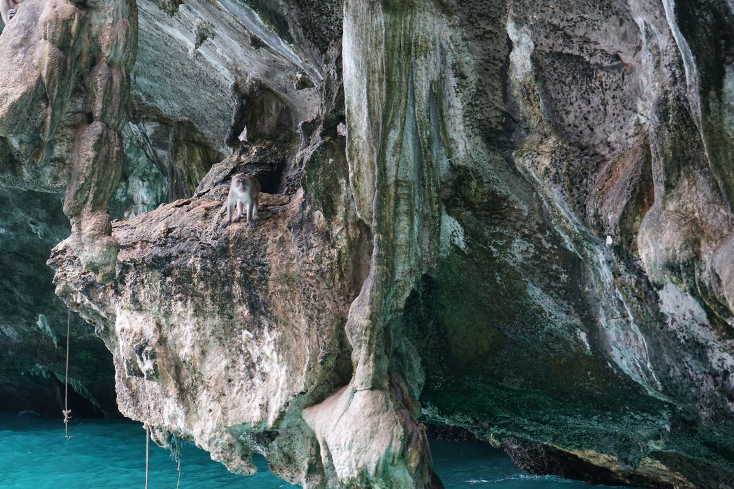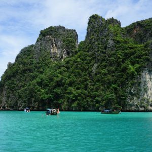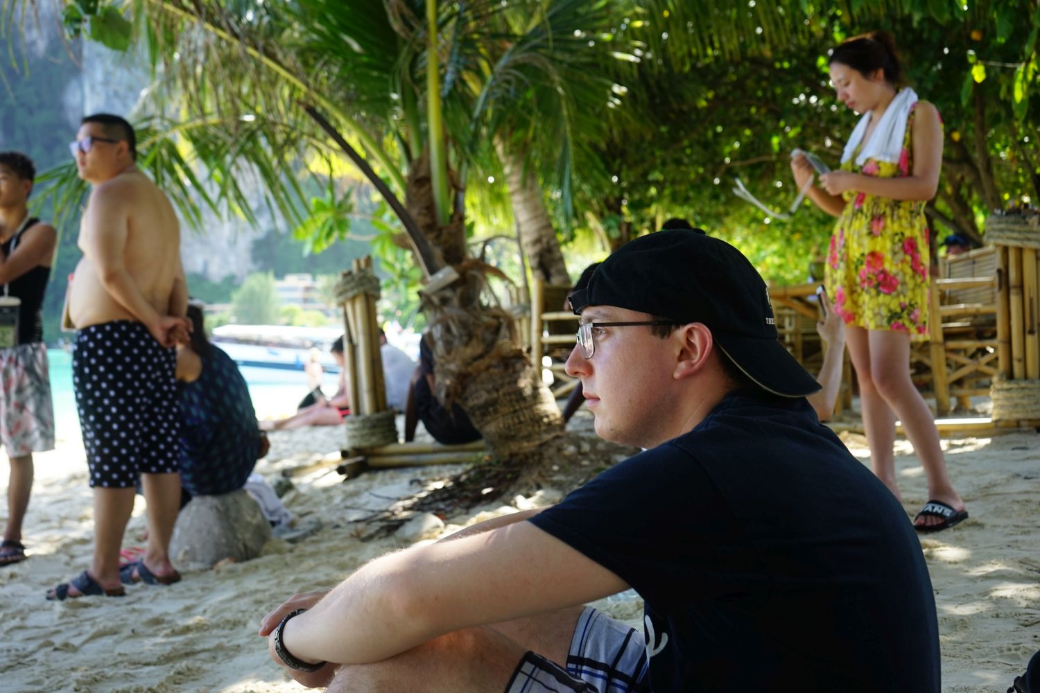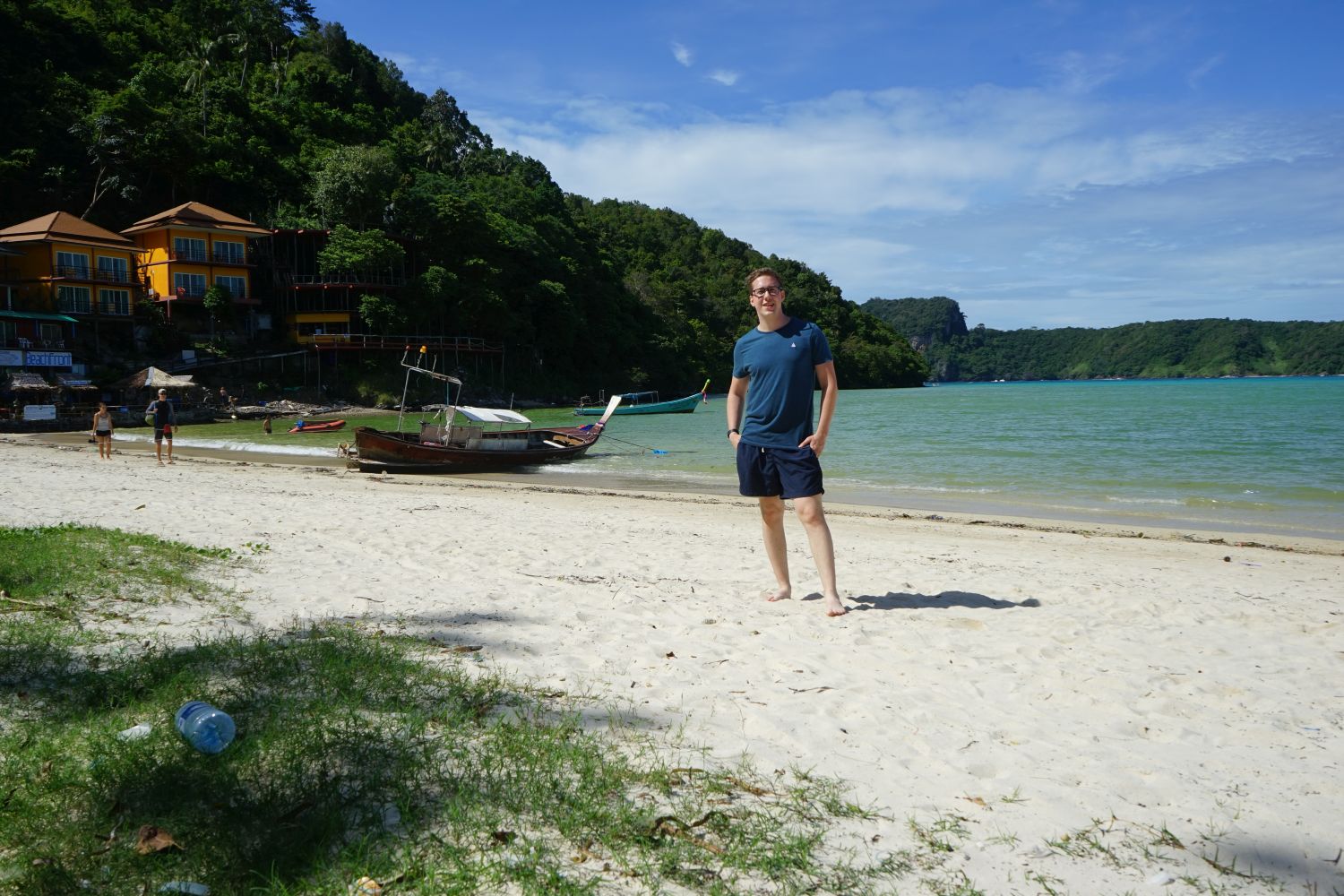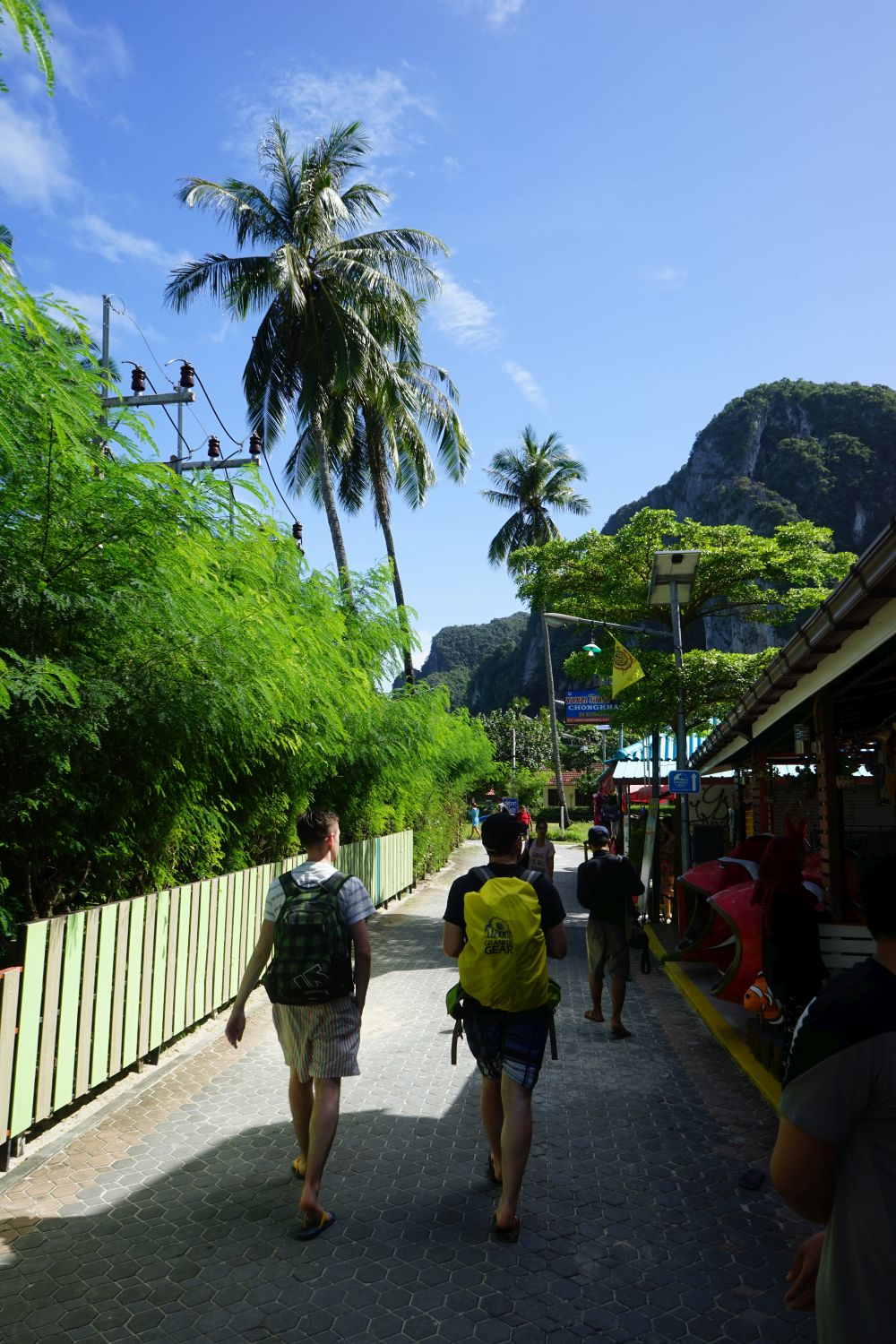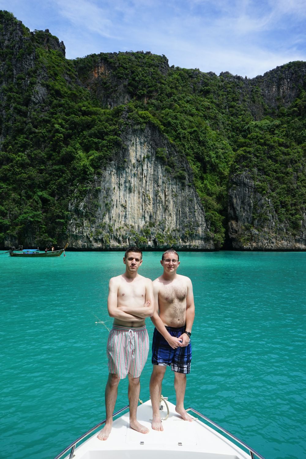 Morgenstund hat Gold im Mund. Um 7:30 Uhr stand unser gebuchter Mini-Van bereits vor der Tür und sollte uns in das nächste Abenteuer führen. Nach einer dreiviertel stündigen Fahrt standen wir am Strand von Ao Nang, der Touristenortschaft in der Nähe von Krabi-Stadt in der sich unser Hotel befand. Nun wurde es richtig zum Kotzen. Dies ist wörtlich gemeint denn die Bootsfahrt zu den Phi Phi Inseln führte bei einem Großteil der Bootsinsassen zu plötzlichen schwall artigen Entleerungen des Mageninhalts. Auf Grund der Regenzeit war der Wellengang besonders hoch. Auf der ersten Insel angekommen wankten alle Tourteilnehmer zum Strand und hatten 40 Minuten Zeit wieder auf ihr Leben klar zukommen. Dann ging es auch schon weiter zum Schnorcheln. Auch diese eher unspektakulären 30 Minuten gingen schnell vorbei und wir machten uns endlich auf zum Höhepunkt der Tour, Maya Beach. Hier wurde der bekannte Film „The Beach“ gedreht, in dem Leonardo DiCaprio die Hauptrolle besetzt. Nach einem kurzen Zwischenstopp an der Affeninsel ging es endlich zum Mittagessen nach Ko Phi Phi Don wo es neben einem großen Buffet auch einen herrlichen Strand zum entspannen gab. Die Rückfahrt verlief, bedingt durch das gute Wetter weitestgehend ruhig so dass die Körperinhalte der Bootsinsassen an ihren angestammten Orten blieben.