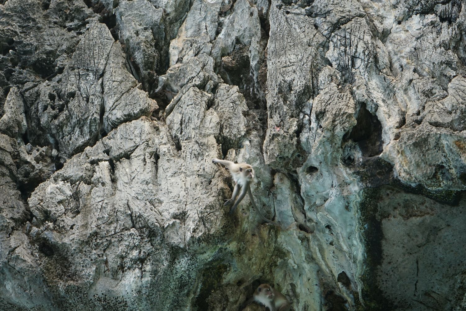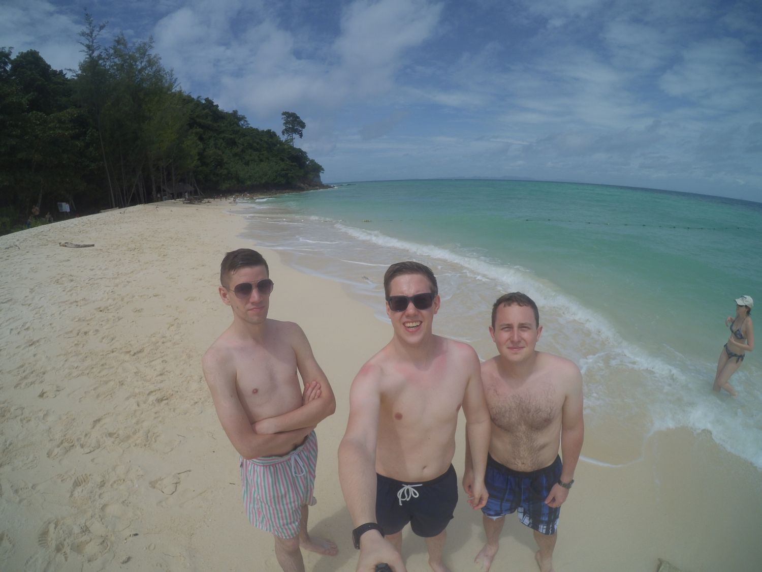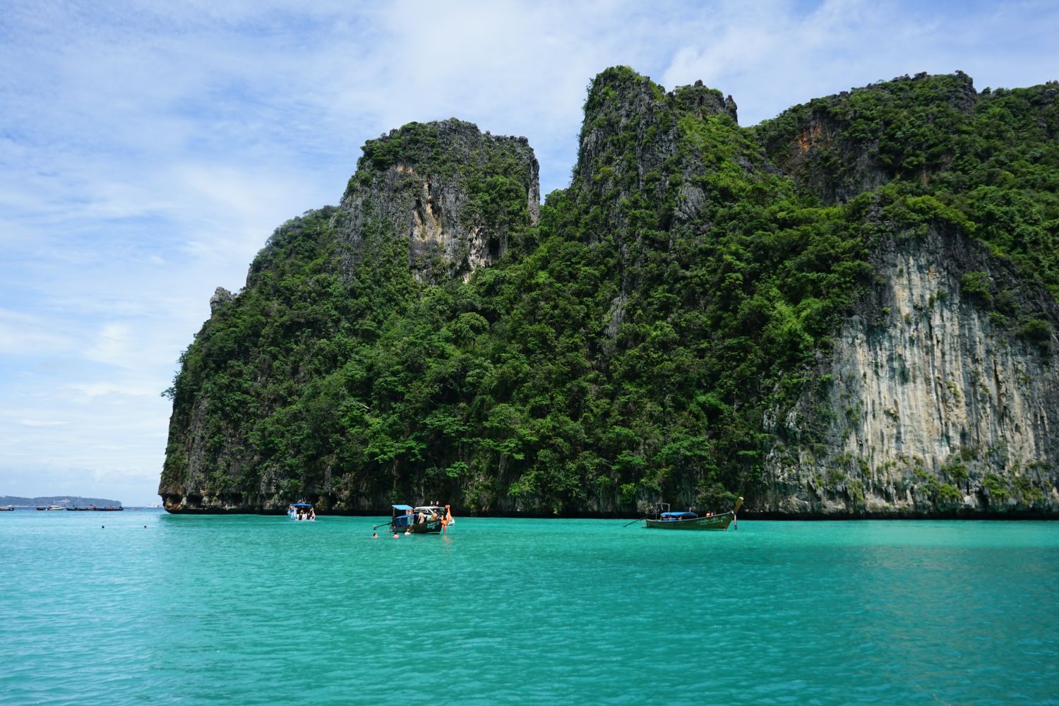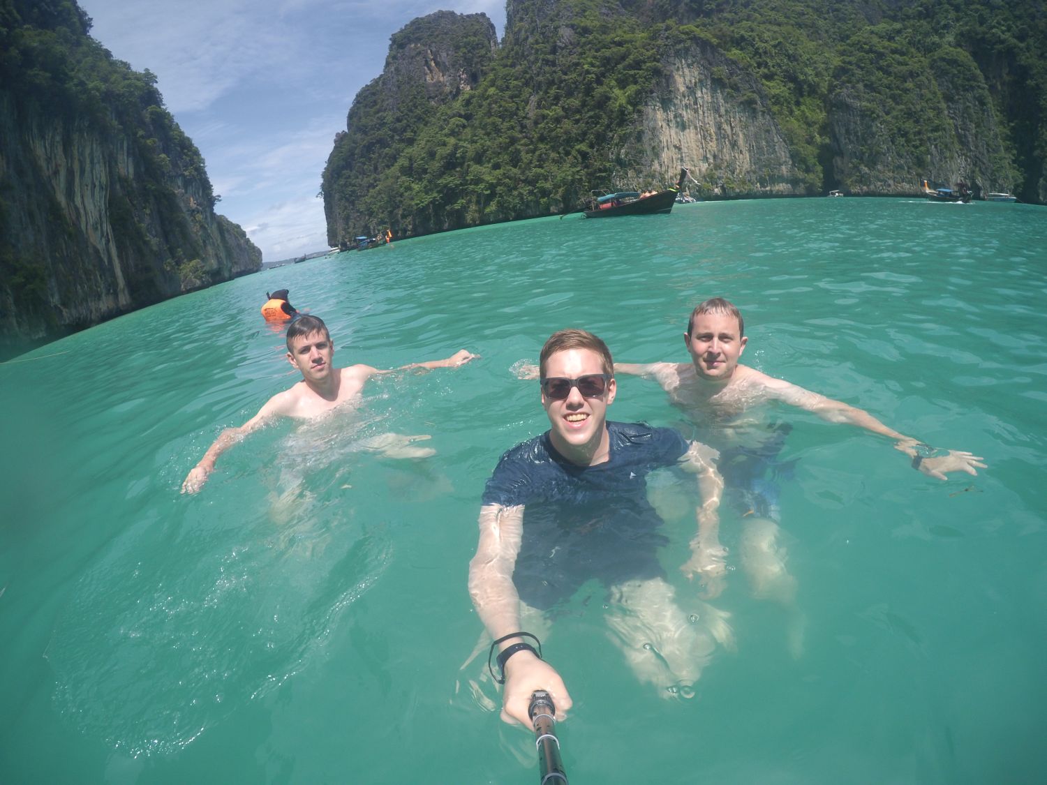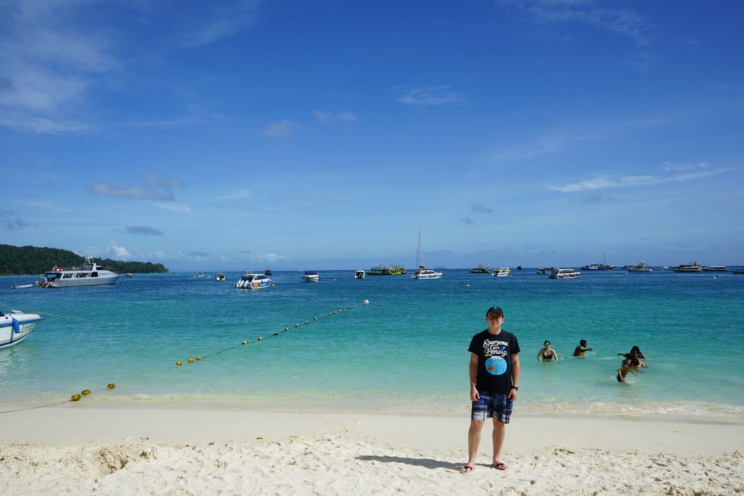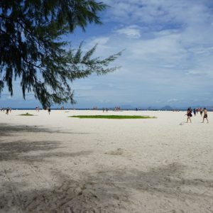 Morgenstund hat Gold im Mund. Um 7:30 Uhr stand unser gebuchter Mini-Van bereits vor der Tür und sollte uns in das nächste Abenteuer führen. Nach einer dreiviertel stündigen Fahrt standen wir am Strand von Ao Nang, der Touristenortschaft in der Nähe von Krabi-Stadt in der sich unser Hotel befand. Nun wurde es richtig zum Kotzen. Dies ist wörtlich gemeint denn die Bootsfahrt zu den Phi Phi Inseln führte bei einem Großteil der Bootsinsassen zu plötzlichen schwall artigen Entleerungen des Mageninhalts. Auf Grund der Regenzeit war der Wellengang besonders hoch. Auf der ersten Insel angekommen wankten alle Tourteilnehmer zum Strand und hatten 40 Minuten Zeit wieder auf ihr Leben klar zukommen. Dann ging es auch schon weiter zum Schnorcheln. Auch diese eher unspektakulären 30 Minuten gingen schnell vorbei und wir machten uns endlich auf zum Höhepunkt der Tour, Maya Beach. Hier wurde der bekannte Film „The Beach“ gedreht, in dem Leonardo DiCaprio die Hauptrolle besetzt. Nach einem kurzen Zwischenstopp an der Affeninsel ging es endlich zum Mittagessen nach Ko Phi Phi Don wo es neben einem großen Buffet auch einen herrlichen Strand zum entspannen gab. Die Rückfahrt verlief, bedingt durch das gute Wetter weitestgehend ruhig so dass die Körperinhalte der Bootsinsassen an ihren angestammten Orten blieben.