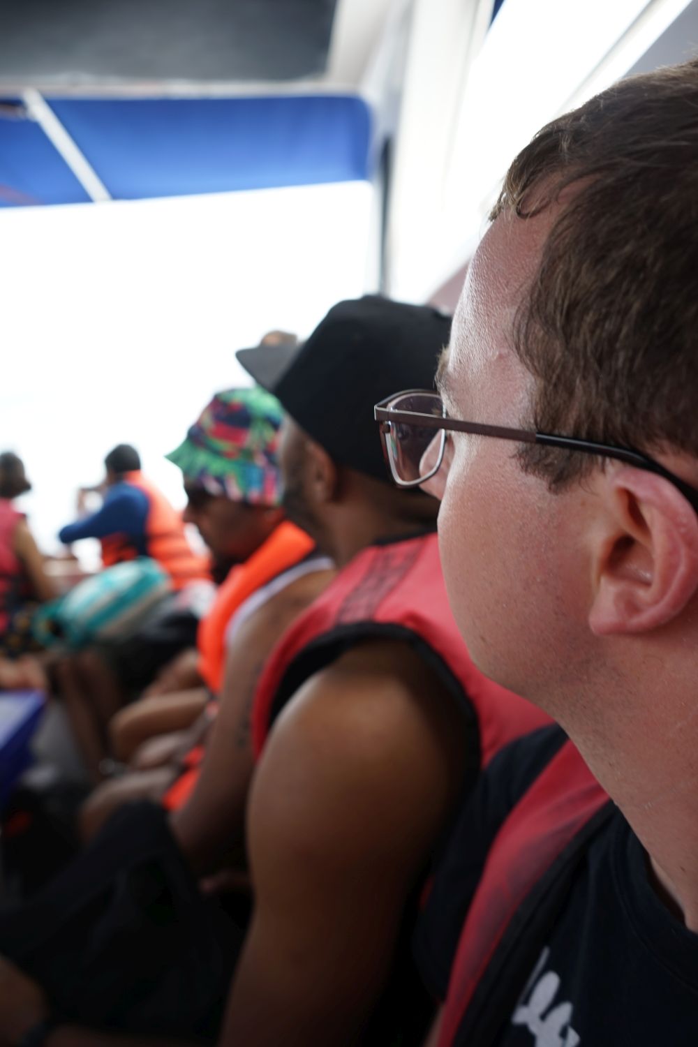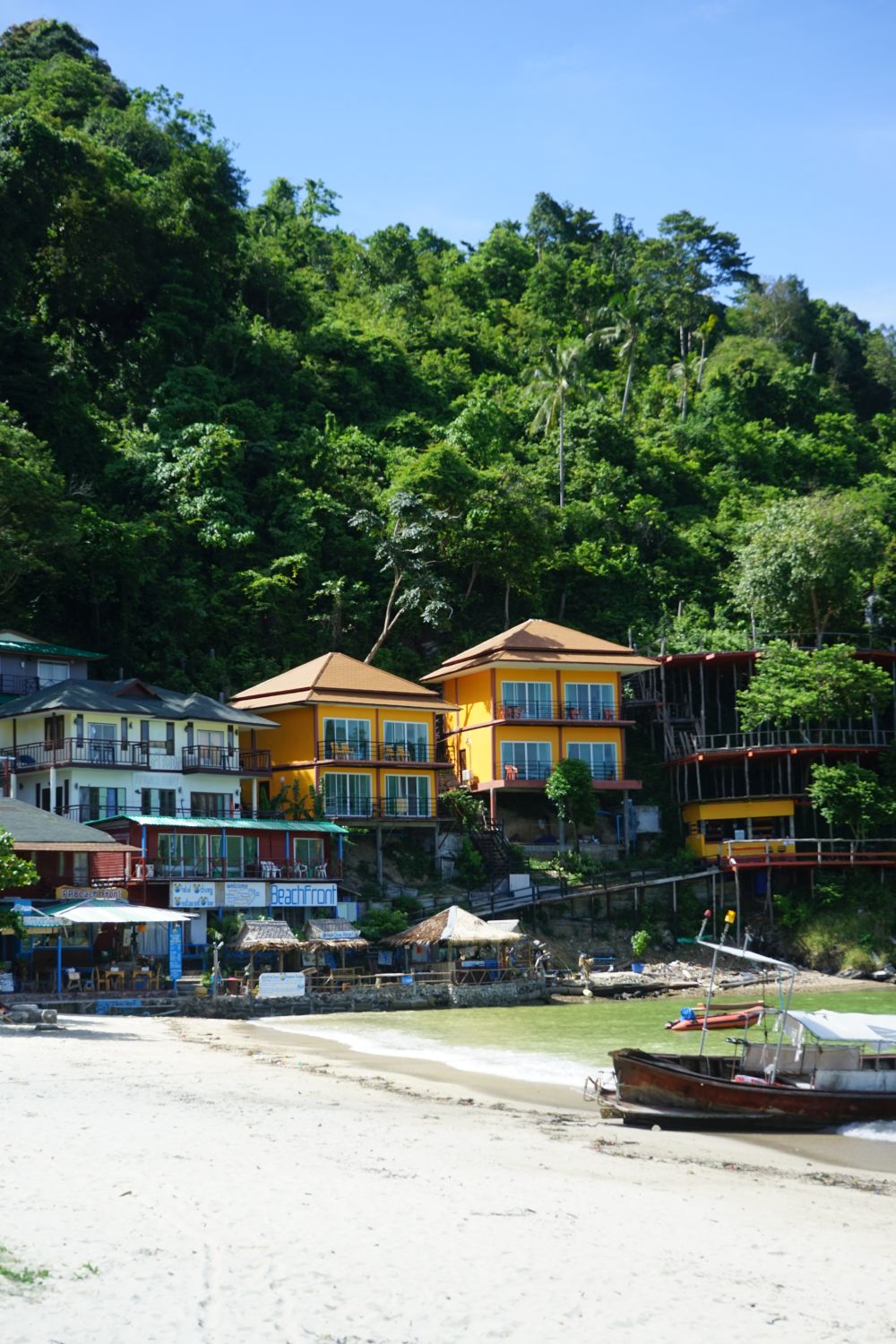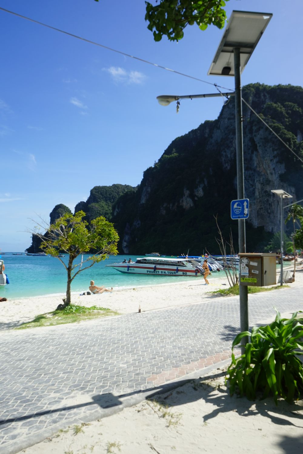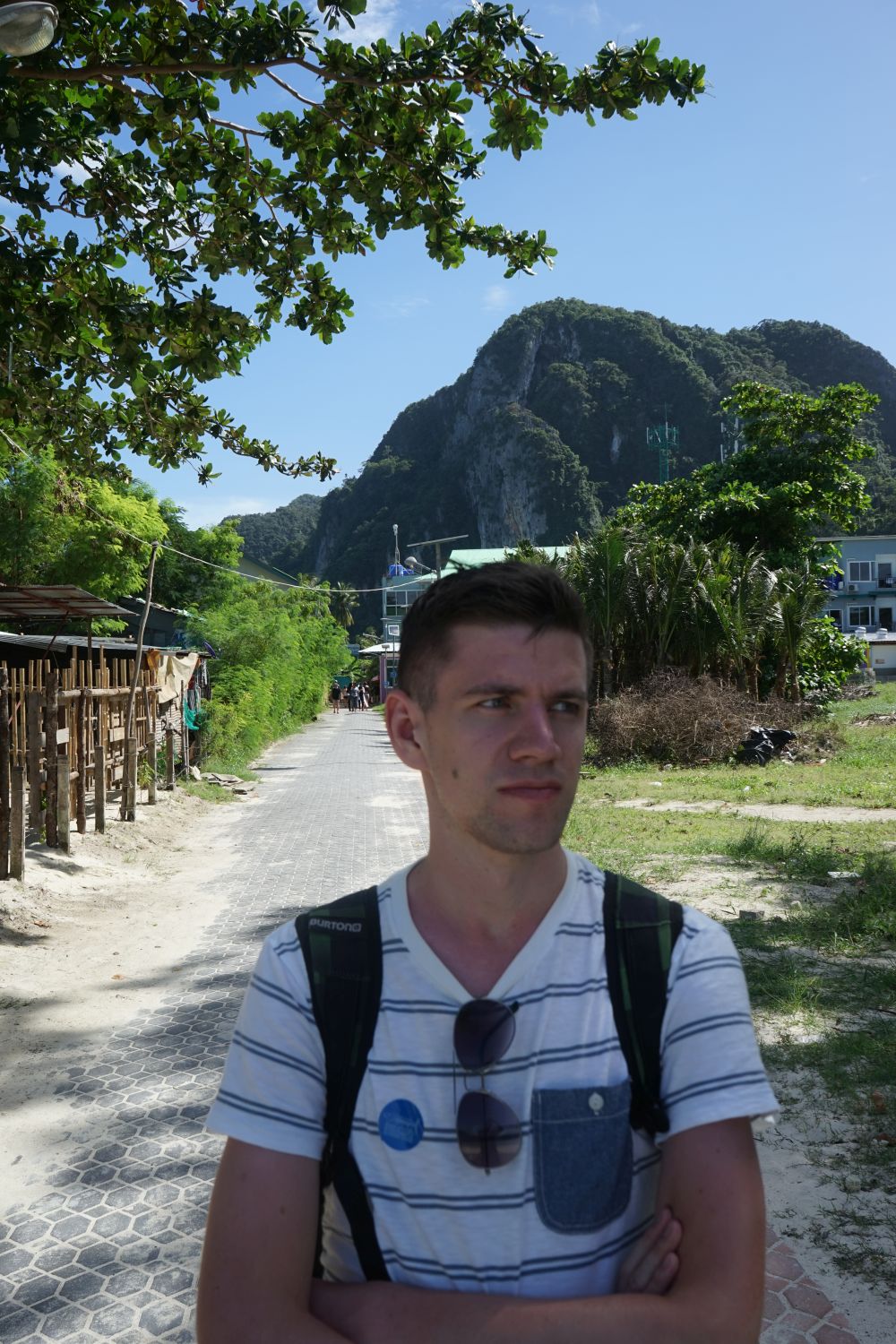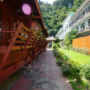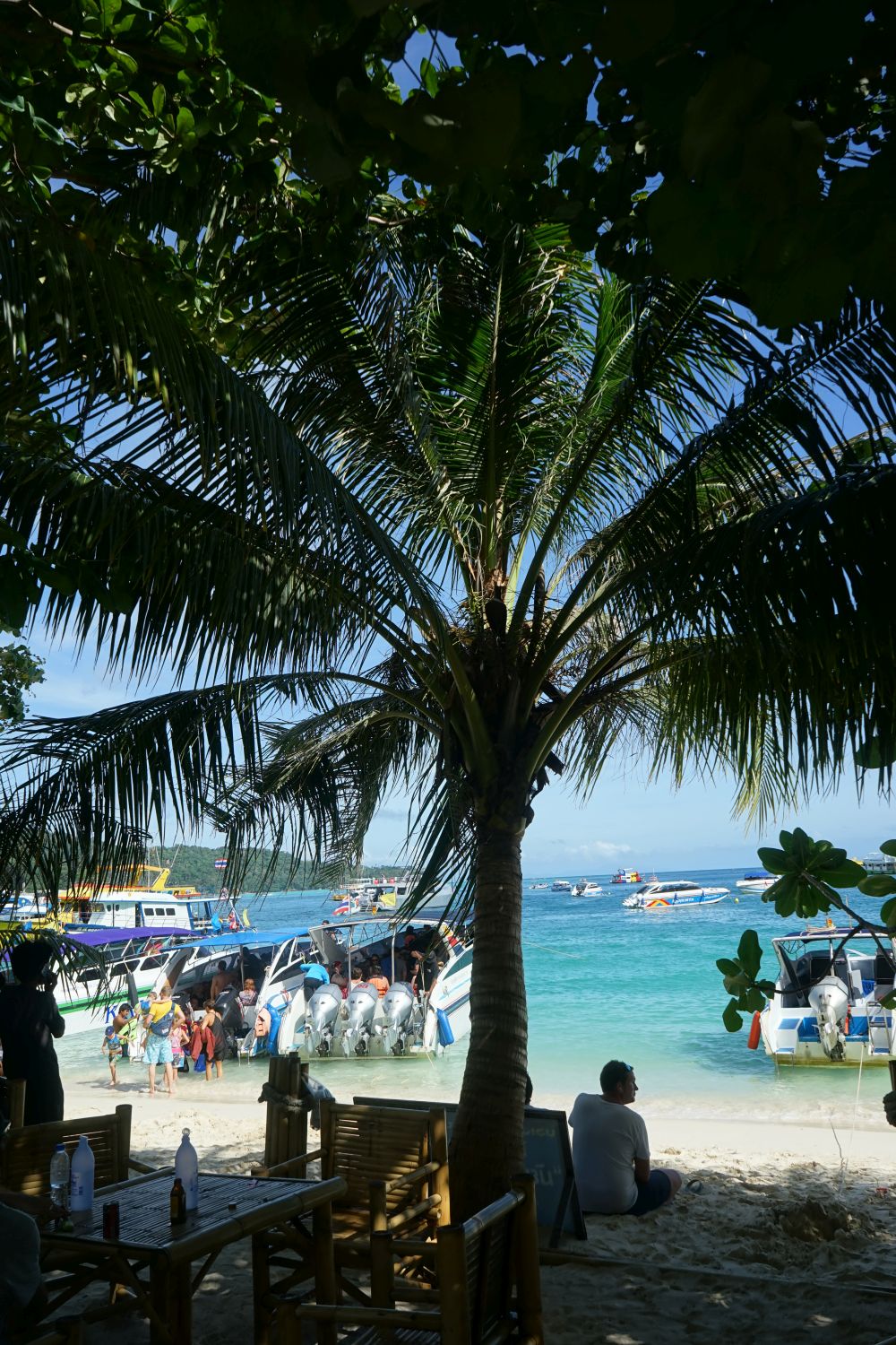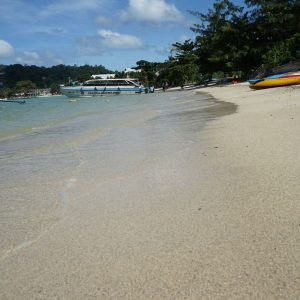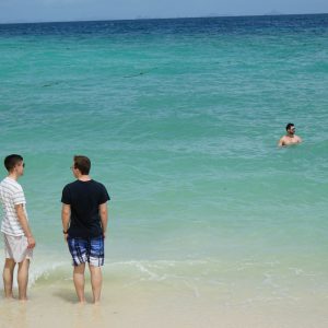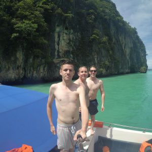 Morgenstund hat Gold im Mund. Um 7:30 Uhr stand unser gebuchter Mini-Van bereits vor der Tür und sollte uns in das nächste Abenteuer führen. Nach einer dreiviertel stündigen Fahrt standen wir am Strand von Ao Nang, der Touristenortschaft in der Nähe von Krabi-Stadt in der sich unser Hotel befand. Nun wurde es richtig zum Kotzen. Dies ist wörtlich gemeint denn die Bootsfahrt zu den Phi Phi Inseln führte bei einem Großteil der Bootsinsassen zu plötzlichen schwall artigen Entleerungen des Mageninhalts. Auf Grund der Regenzeit war der Wellengang besonders hoch. Auf der ersten Insel angekommen wankten alle Tourteilnehmer zum Strand und hatten 40 Minuten Zeit wieder auf ihr Leben klar zukommen. Dann ging es auch schon weiter zum Schnorcheln. Auch diese eher unspektakulären 30 Minuten gingen schnell vorbei und wir machten uns endlich auf zum Höhepunkt der Tour, Maya Beach. Hier wurde der bekannte Film „The Beach“ gedreht, in dem Leonardo DiCaprio die Hauptrolle besetzt. Nach einem kurzen Zwischenstopp an der Affeninsel ging es endlich zum Mittagessen nach Ko Phi Phi Don wo es neben einem großen Buffet auch einen herrlichen Strand zum entspannen gab. Die Rückfahrt verlief, bedingt durch das gute Wetter weitestgehend ruhig so dass die Körperinhalte der Bootsinsassen an ihren angestammten Orten blieben.