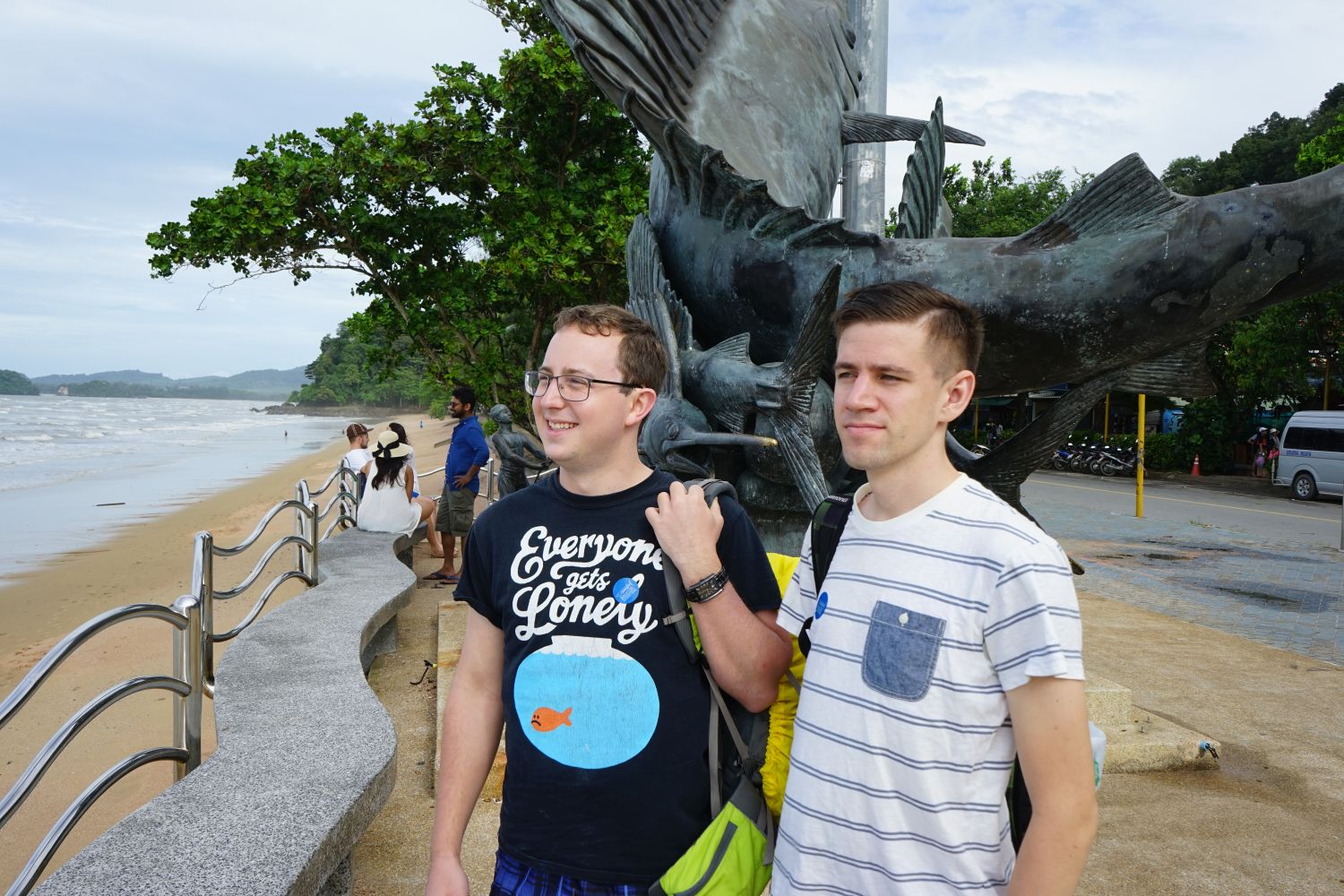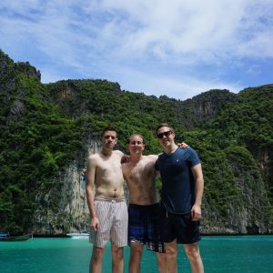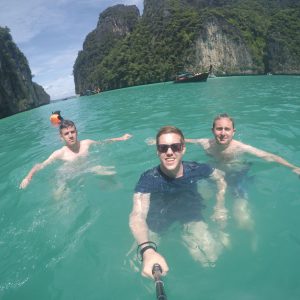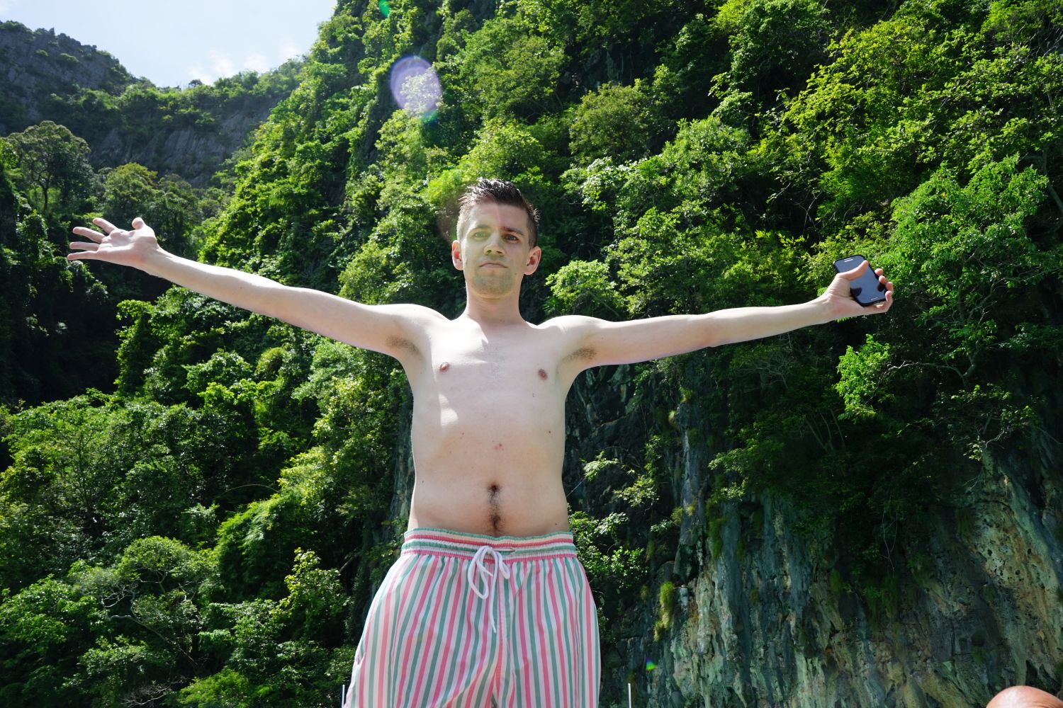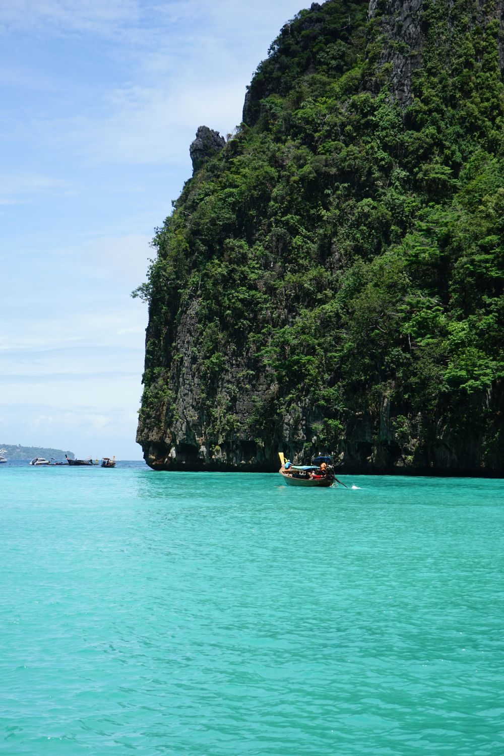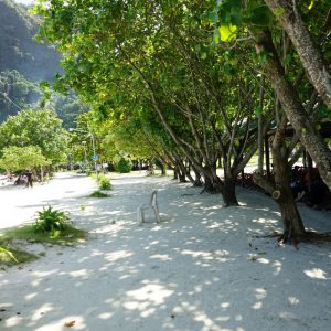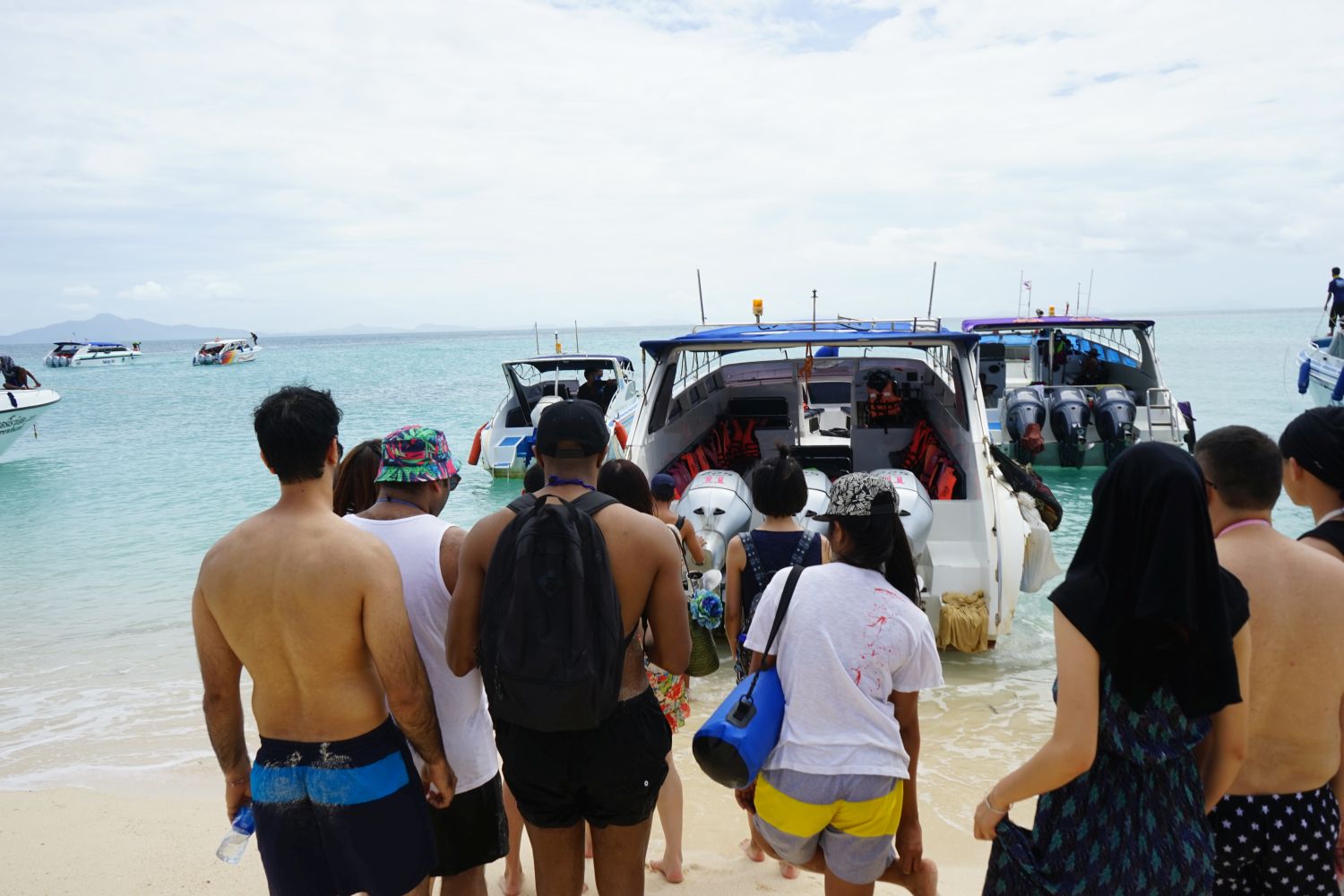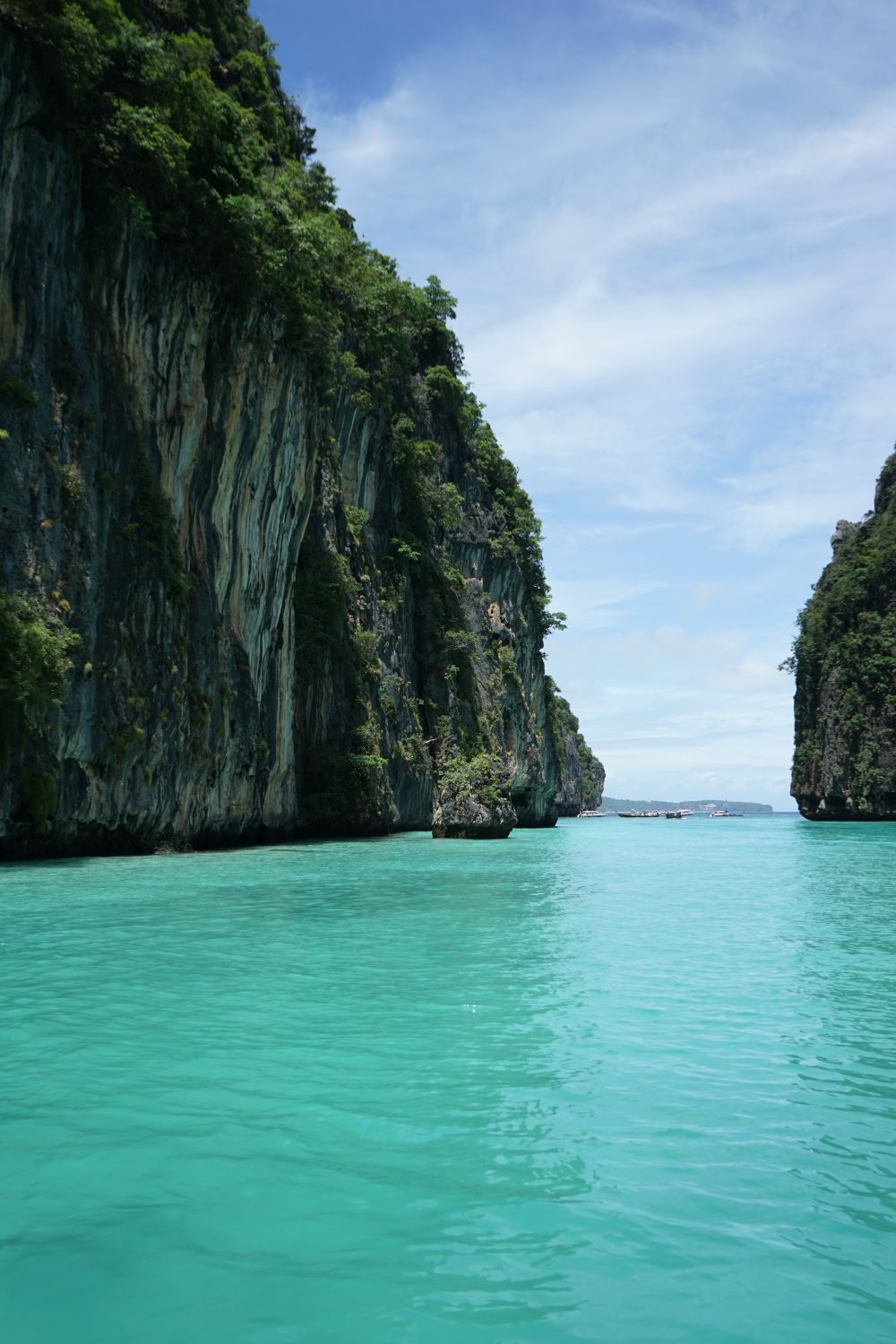Morgenstund hat Gold im Mund. Um 7:30 Uhr stand unser gebuchter Mini-Van bereits vor der Tür und sollte uns in das nächste Abenteuer führen. Nach einer dreiviertel stündigen Fahrt standen wir am Strand von Ao Nang, der Touristenortschaft in der Nähe von Krabi-Stadt in der sich unser Hotel befand. Nun wurde es richtig zum Kotzen. Dies ist wörtlich gemeint denn die Bootsfahrt zu den Phi Phi Inseln führte bei einem Großteil der Bootsinsassen zu plötzlichen schwall artigen Entleerungen des Mageninhalts. Auf Grund der Regenzeit war der Wellengang besonders hoch. Auf der ersten Insel angekommen wankten alle Tourteilnehmer zum Strand und hatten 40 Minuten Zeit wieder auf ihr Leben klar zukommen. Dann ging es auch schon weiter zum Schnorcheln. Auch diese eher unspektakulären 30 Minuten gingen schnell vorbei und wir machten uns endlich auf zum Höhepunkt der Tour, Maya Beach. Hier wurde der bekannte Film „The Beach“ gedreht, in dem Leonardo DiCaprio die Hauptrolle besetzt. Nach einem kurzen Zwischenstopp an der Affeninsel ging es endlich zum Mittagessen nach Ko Phi Phi Don wo es neben einem großen Buffet auch einen herrlichen Strand zum entspannen gab. Die Rückfahrt verlief, bedingt durch das gute Wetter weitestgehend ruhig so dass die Körperinhalte der Bootsinsassen an ihren angestammten Orten blieben.