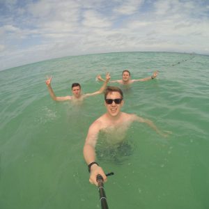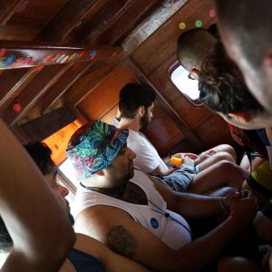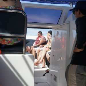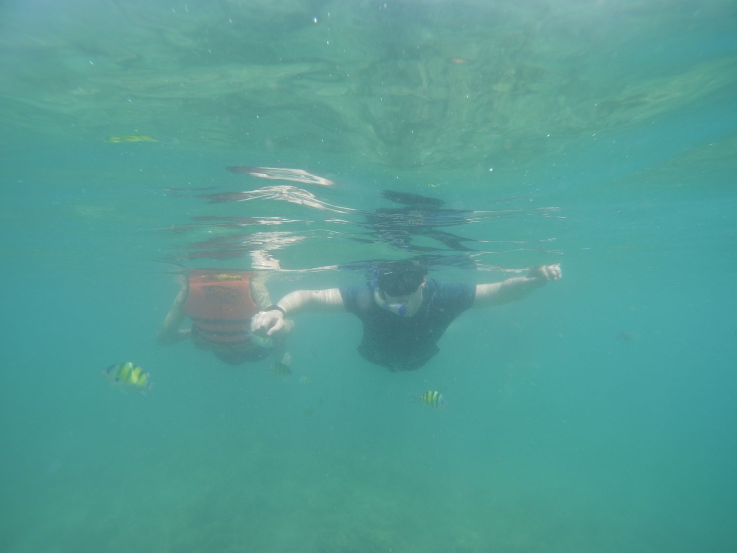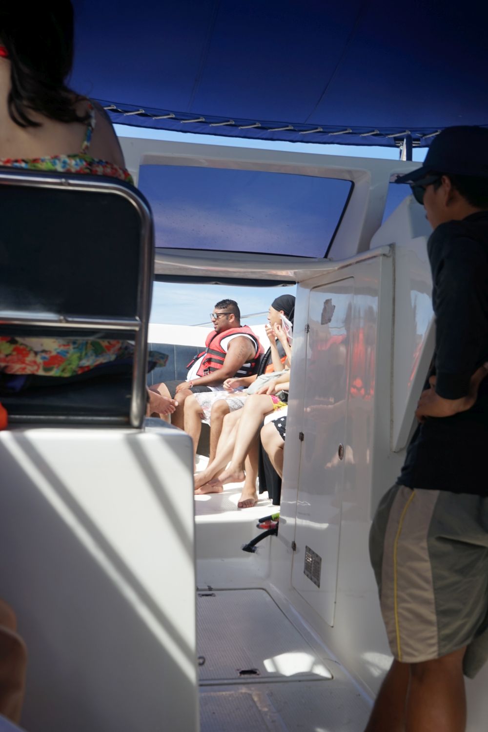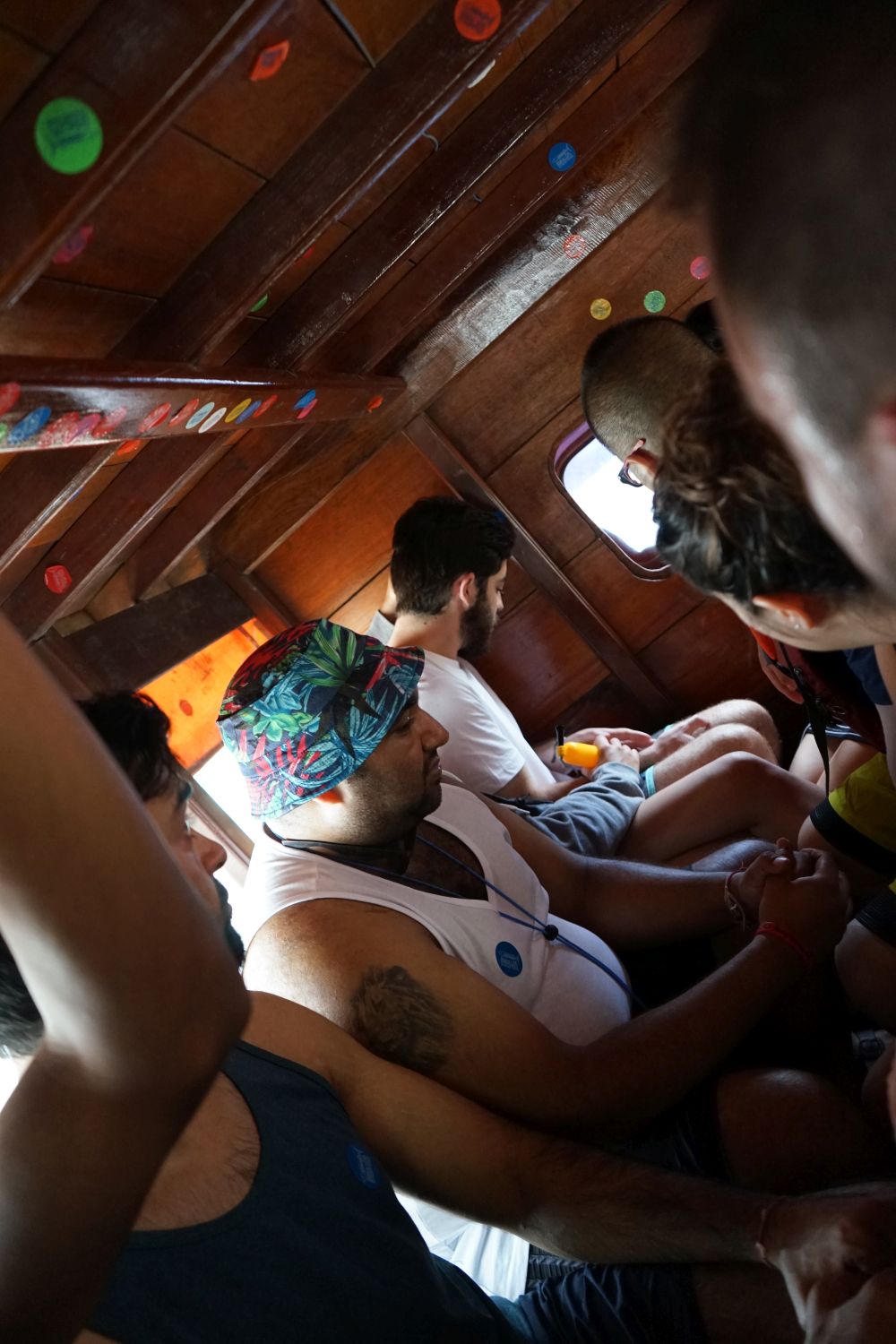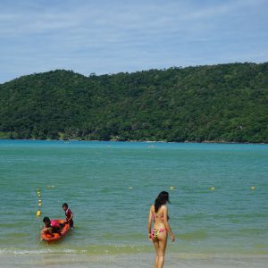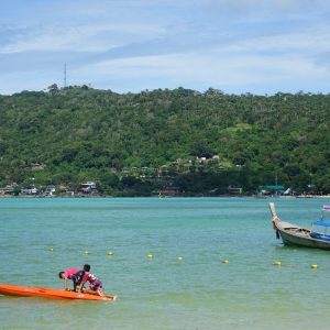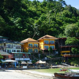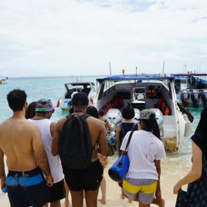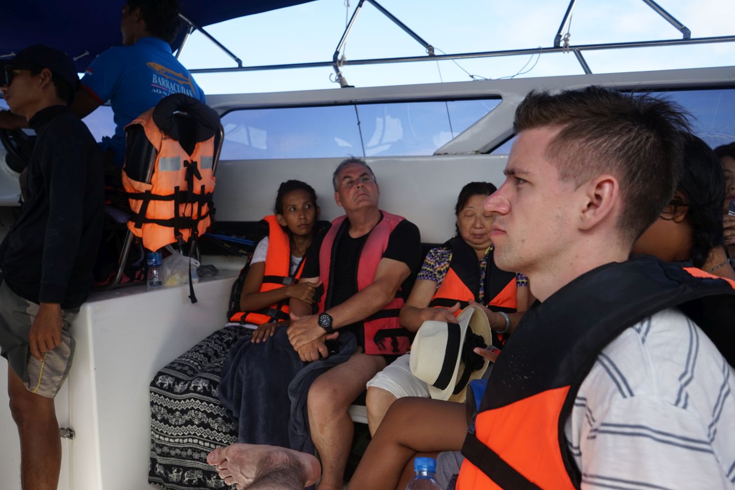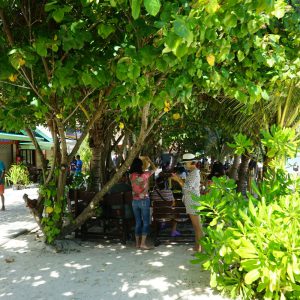 Morgenstund hat Gold im Mund. Um 7:30 Uhr stand unser gebuchter Mini-Van bereits vor der Tür und sollte uns in das nächste Abenteuer führen. Nach einer dreiviertel stündigen Fahrt standen wir am Strand von Ao Nang, der Touristenortschaft in der Nähe von Krabi-Stadt in der sich unser Hotel befand. Nun wurde es richtig zum Kotzen. Dies ist wörtlich gemeint denn die Bootsfahrt zu den Phi Phi Inseln führte bei einem Großteil der Bootsinsassen zu plötzlichen schwall artigen Entleerungen des Mageninhalts. Auf Grund der Regenzeit war der Wellengang besonders hoch. Auf der ersten Insel angekommen wankten alle Tourteilnehmer zum Strand und hatten 40 Minuten Zeit wieder auf ihr Leben klar zukommen. Dann ging es auch schon weiter zum Schnorcheln. Auch diese eher unspektakulären 30 Minuten gingen schnell vorbei und wir machten uns endlich auf zum Höhepunkt der Tour, Maya Beach. Hier wurde der bekannte Film „The Beach“ gedreht, in dem Leonardo DiCaprio die Hauptrolle besetzt. Nach einem kurzen Zwischenstopp an der Affeninsel ging es endlich zum Mittagessen nach Ko Phi Phi Don wo es neben einem großen Buffet auch einen herrlichen Strand zum entspannen gab. Die Rückfahrt verlief, bedingt durch das gute Wetter weitestgehend ruhig so dass die Körperinhalte der Bootsinsassen an ihren angestammten Orten blieben.