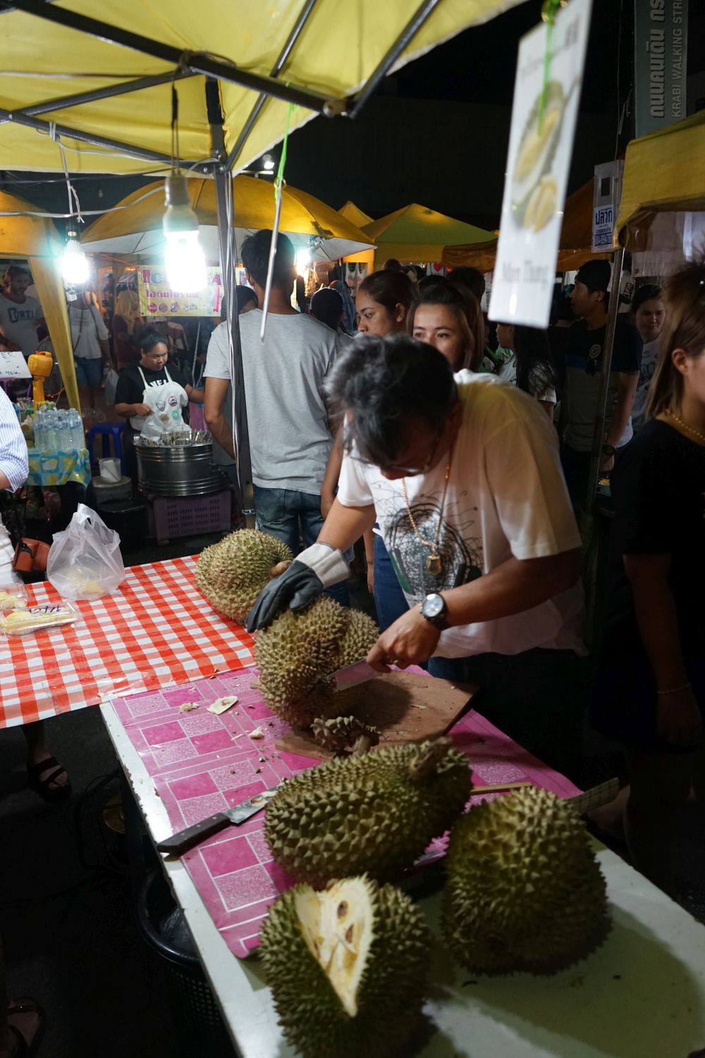 Da es Freitag war öffnete abends der bekannte Krabier Nachtmarkt seine Pforten, dieses Ereignis wollten wir uns natürlich nicht entgehen lassen. Neben Touristen ist der Markt vor allem für Einheimische gedacht, wodurch man von dem 0815 Touriramsch verschont bleibt. Mit ein paar Einkäufen im Gepäck wurde noch schnell der Hunger gestillt bevor es ins Bett ging.