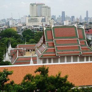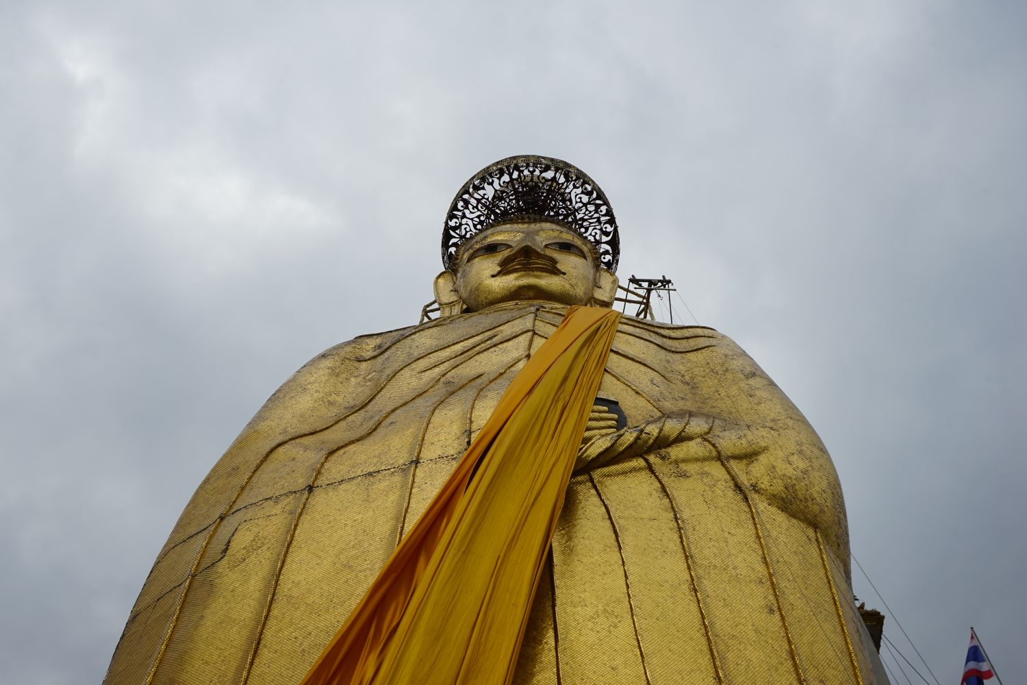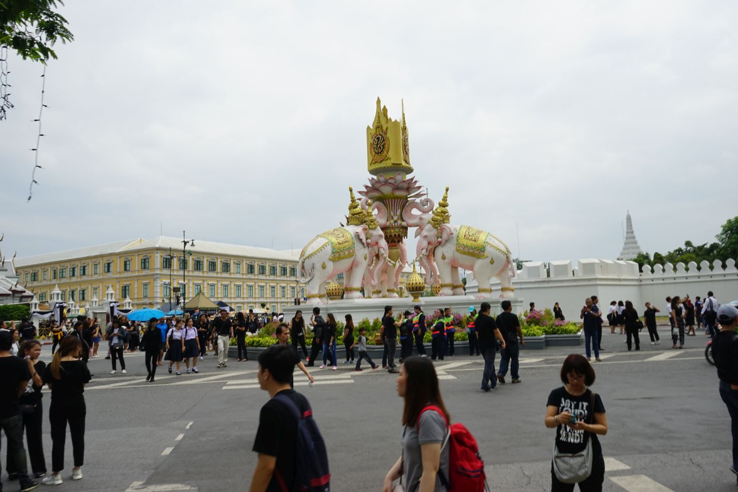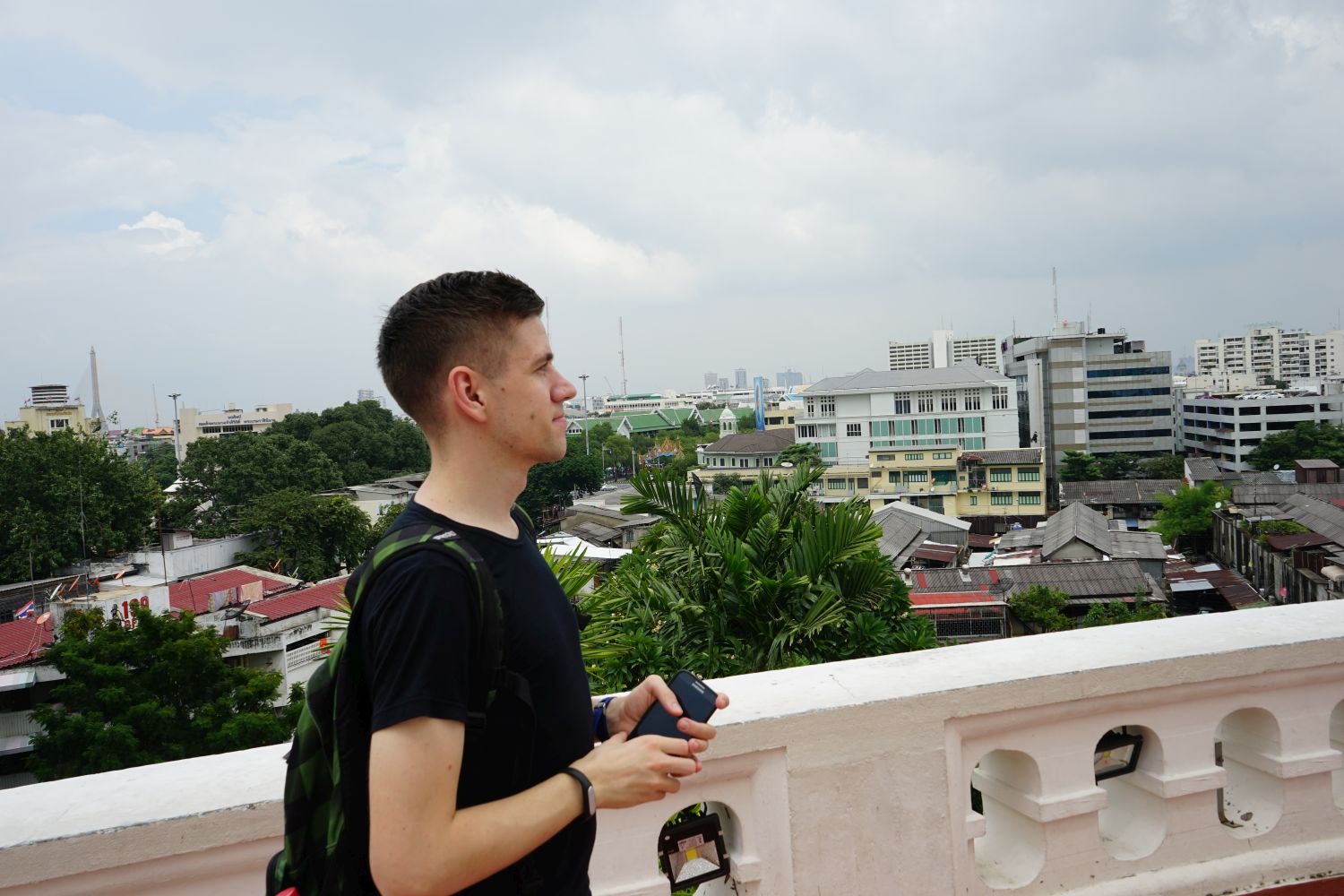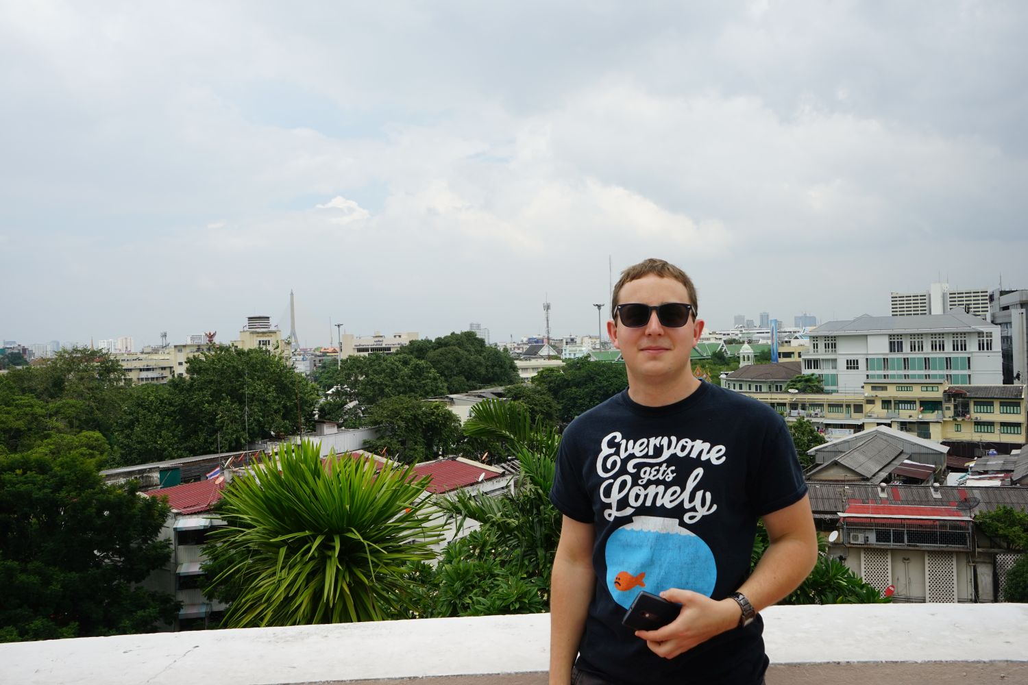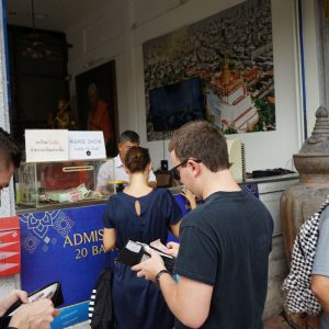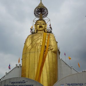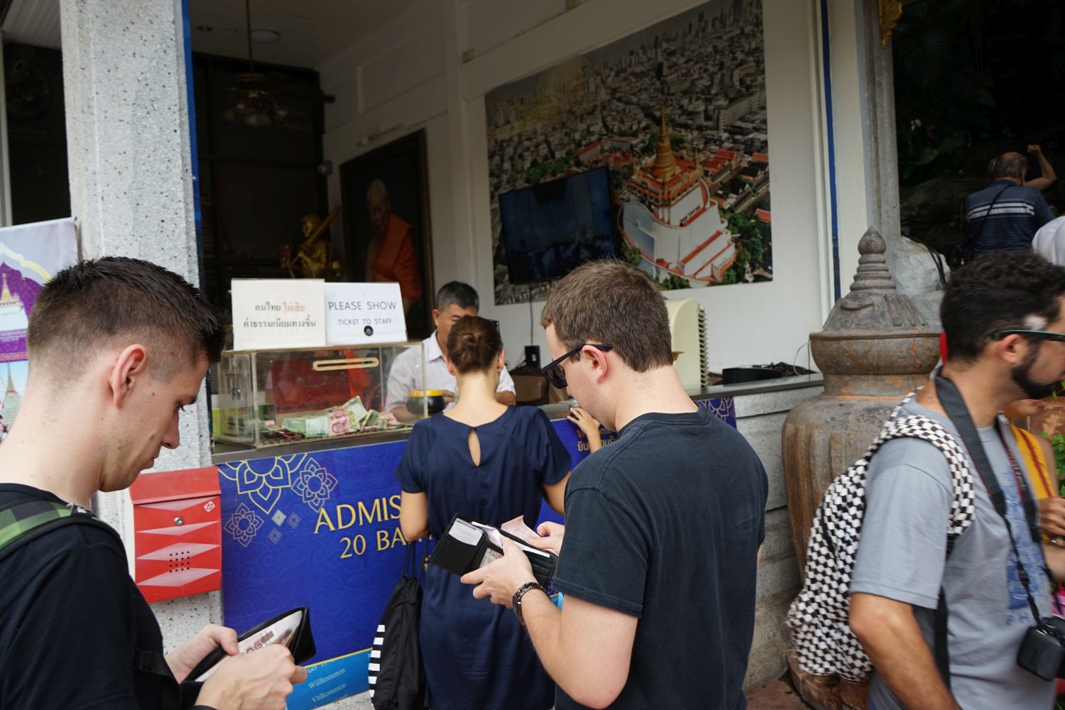 Heute stand etwas Sightseeing auf dem Programm, also schnappten wir uns ein Tuktuk, in der nähe vom Hotel und fuhren zunächst zum Tempel des goldenen Bergs (Wat Saket). Nach 318 Stufen waren wir am Gipfel angekommen und konnten etwas die Aussicht über Bangkok genießen. Nächster Stop war dann der 32 Meter hohe stehende Buddah (Luang Pho Tho) des Wat Intharawihan Tempels. Zum Abschluss Stand eigentlich ein Besuch des Königspalasts auf dem Programm. Dieser ist jedoch aufgrund der aktuellen Staatstrauer geschlossen. Trotzdem hat sich ein Besuch gelohnt. Riesige schwarz gekleidete Menschenmengen reisen aktuell zum Palast, um ihrem König beizustehen. Für uns Außenstehende hat das ganze Treiben etwas von einer Naturkatastrophe: Militär, riesige Wasservorräte und andere Hilfsgüter, die an die Menschen kostenlos verteilt werden. Aufgrund der Staatstrauer wird aktuell kein Alkohol verkauft bzw. ausgeschenkt, wodurch ich die Kao San Road noch nie so leer und vor allem ruhig erlebt habe. Morgen geht es für uns weiter nach Krabi, wo wir hoffentlich etwas weniger durchwachsenes Wetter haben.