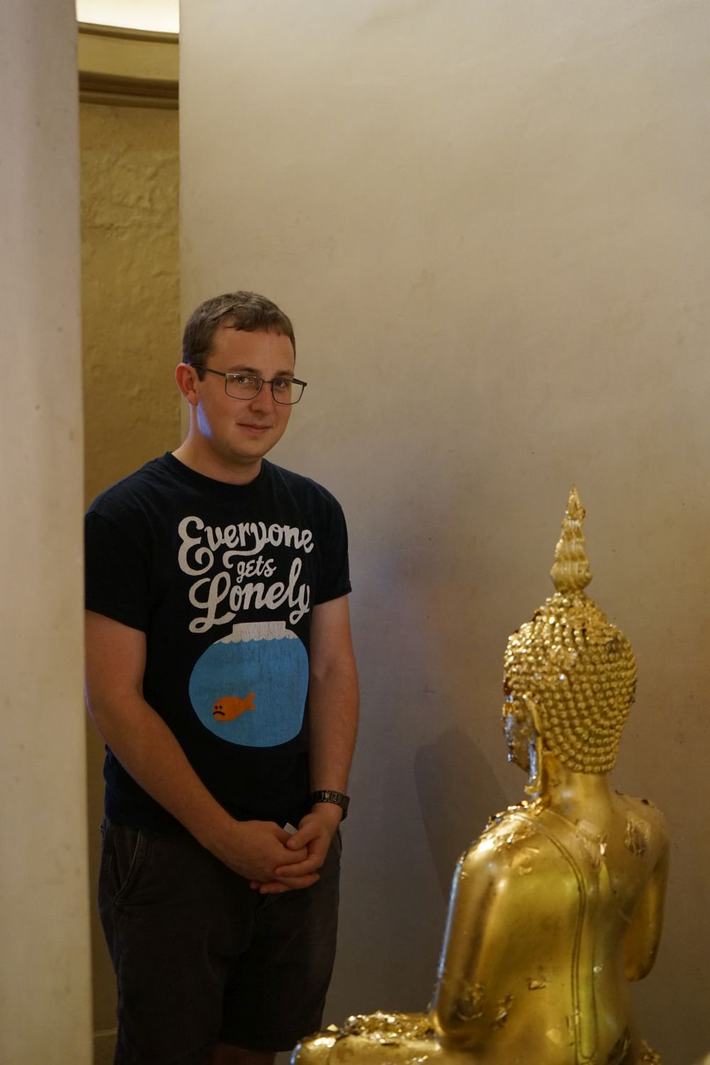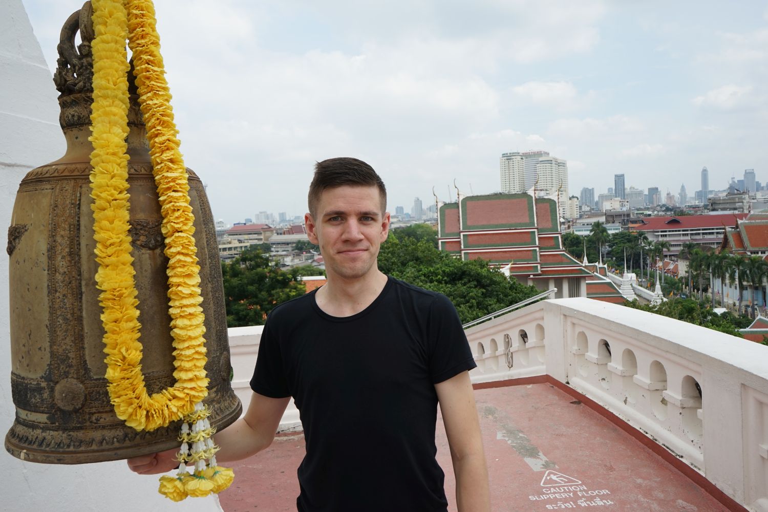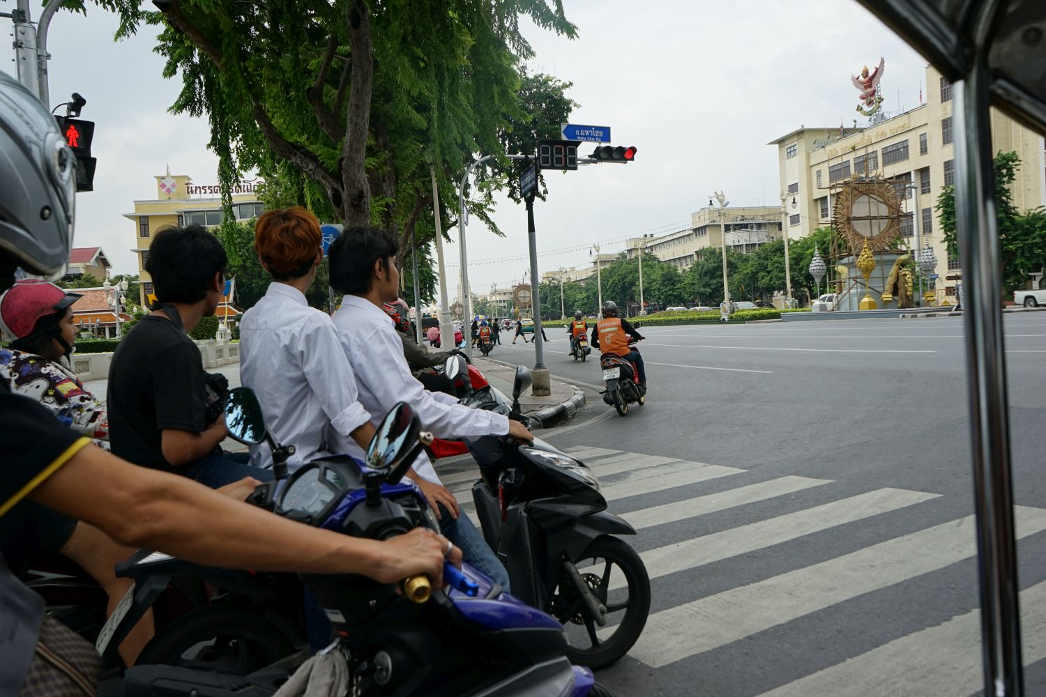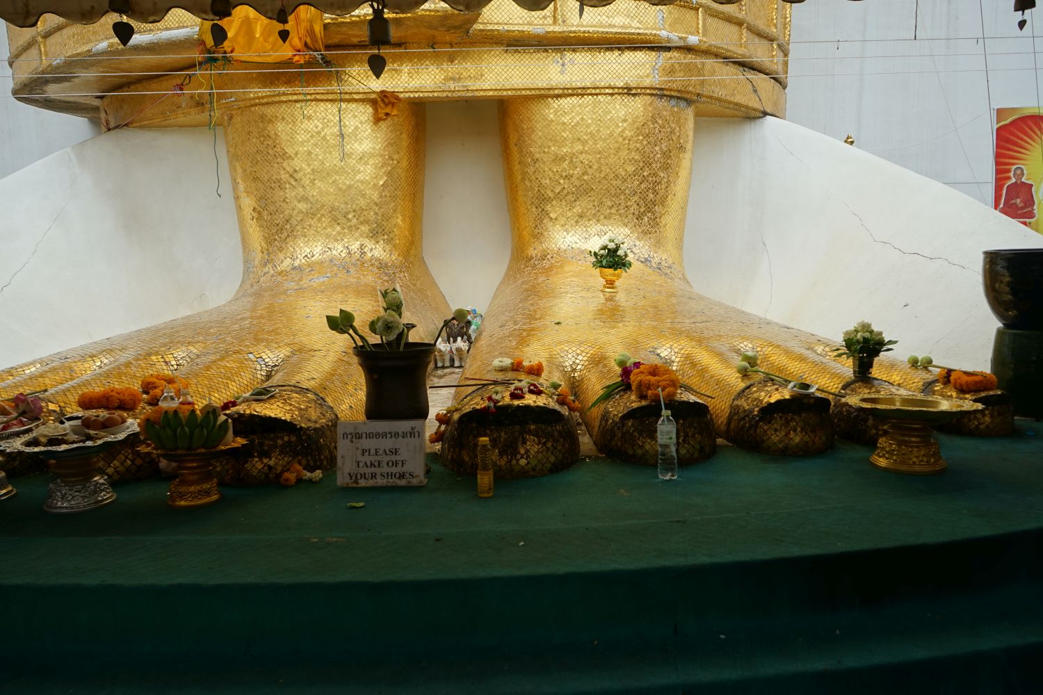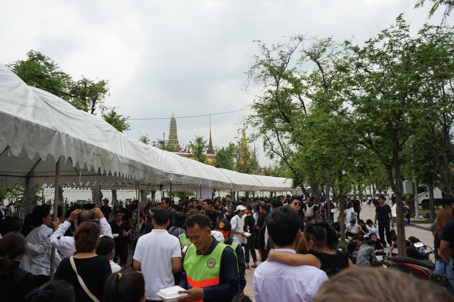 Heute stand etwas Sightseeing auf dem Programm, also schnappten wir uns ein Tuktuk, in der nähe vom Hotel und fuhren zunächst zum Tempel des goldenen Bergs (Wat Saket). Nach 318 Stufen waren wir am Gipfel angekommen und konnten etwas die Aussicht über Bangkok genießen. Nächster Stop war dann der 32 Meter hohe stehende Buddah (Luang Pho Tho) des Wat Intharawihan Tempels. Zum Abschluss Stand eigentlich ein Besuch des Königspalasts auf dem Programm. Dieser ist jedoch aufgrund der aktuellen Staatstrauer geschlossen. Trotzdem hat sich ein Besuch gelohnt. Riesige schwarz gekleidete Menschenmengen reisen aktuell zum Palast, um ihrem König beizustehen. Für uns Außenstehende hat das ganze Treiben etwas von einer Naturkatastrophe: Militär, riesige Wasservorräte und andere Hilfsgüter, die an die Menschen kostenlos verteilt werden. Aufgrund der Staatstrauer wird aktuell kein Alkohol verkauft bzw. ausgeschenkt, wodurch ich die Kao San Road noch nie so leer und vor allem ruhig erlebt habe. Morgen geht es für uns weiter nach Krabi, wo wir hoffentlich etwas weniger durchwachsenes Wetter haben.