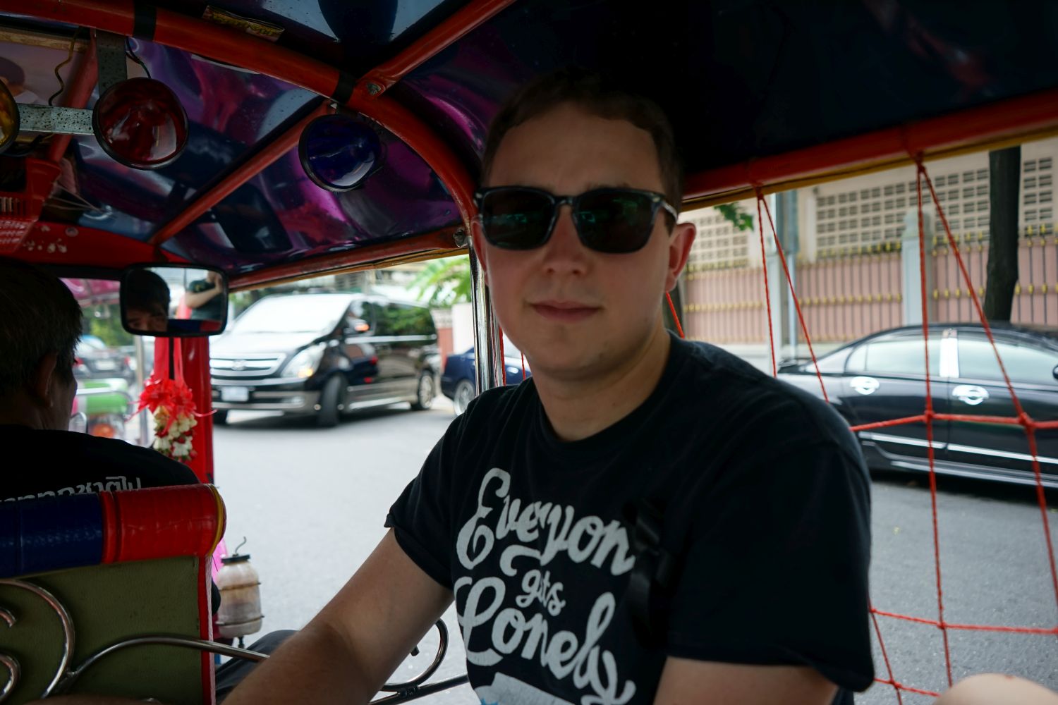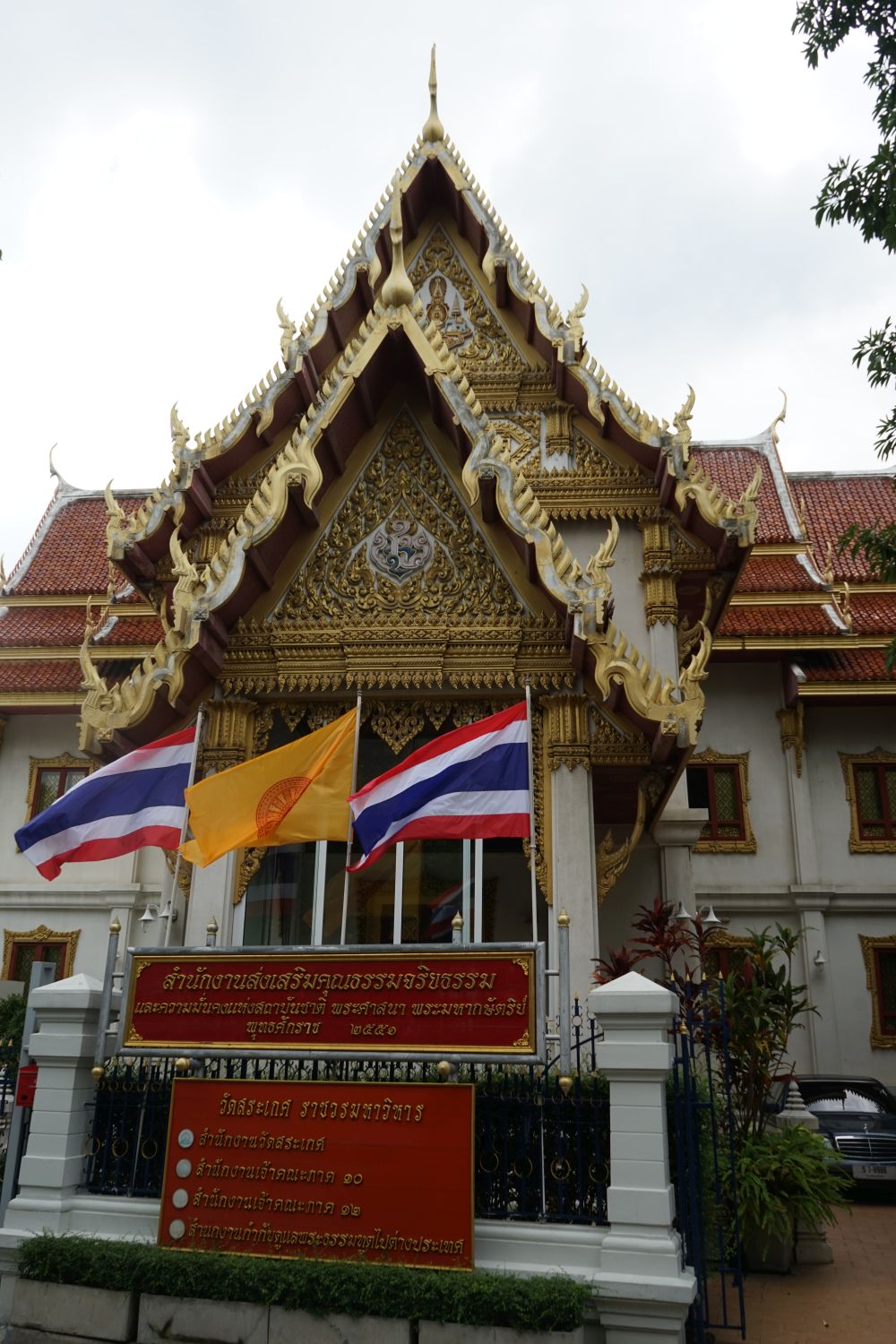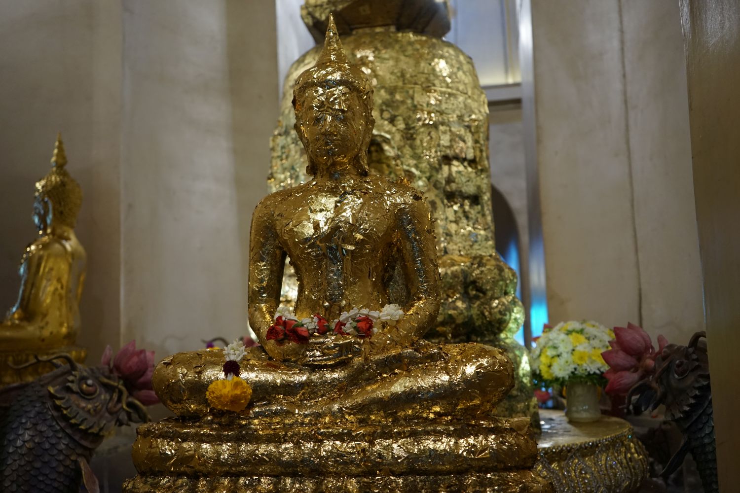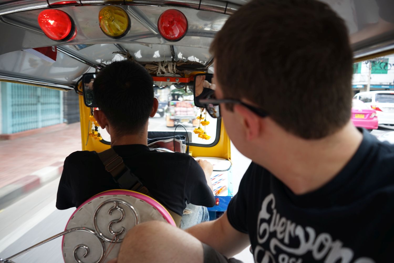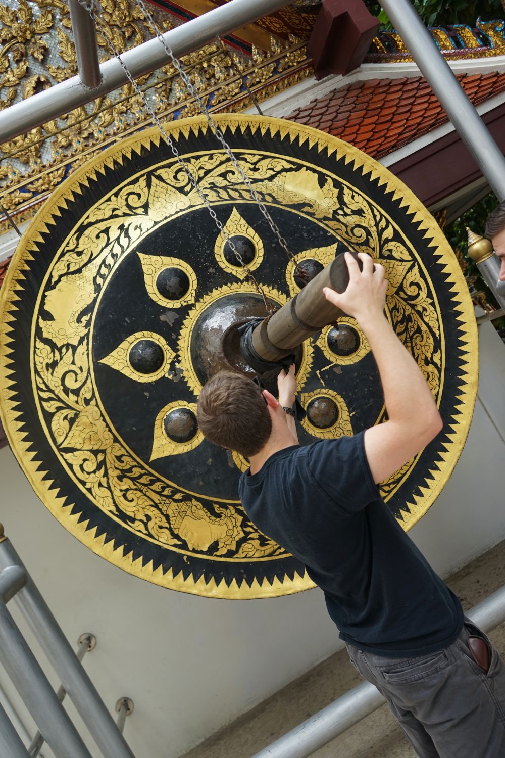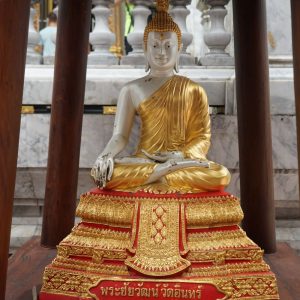 Heute stand etwas Sightseeing auf dem Programm, also schnappten wir uns ein Tuktuk, in der nähe vom Hotel und fuhren zunächst zum Tempel des goldenen Bergs (Wat Saket). Nach 318 Stufen waren wir am Gipfel angekommen und konnten etwas die Aussicht über Bangkok genießen. Nächster Stop war dann der 32 Meter hohe stehende Buddah (Luang Pho Tho) des Wat Intharawihan Tempels. Zum Abschluss Stand eigentlich ein Besuch des Königspalasts auf dem Programm. Dieser ist jedoch aufgrund der aktuellen Staatstrauer geschlossen. Trotzdem hat sich ein Besuch gelohnt. Riesige schwarz gekleidete Menschenmengen reisen aktuell zum Palast, um ihrem König beizustehen. Für uns Außenstehende hat das ganze Treiben etwas von einer Naturkatastrophe: Militär, riesige Wasservorräte und andere Hilfsgüter, die an die Menschen kostenlos verteilt werden. Aufgrund der Staatstrauer wird aktuell kein Alkohol verkauft bzw. ausgeschenkt, wodurch ich die Kao San Road noch nie so leer und vor allem ruhig erlebt habe. Morgen geht es für uns weiter nach Krabi, wo wir hoffentlich etwas weniger durchwachsenes Wetter haben.