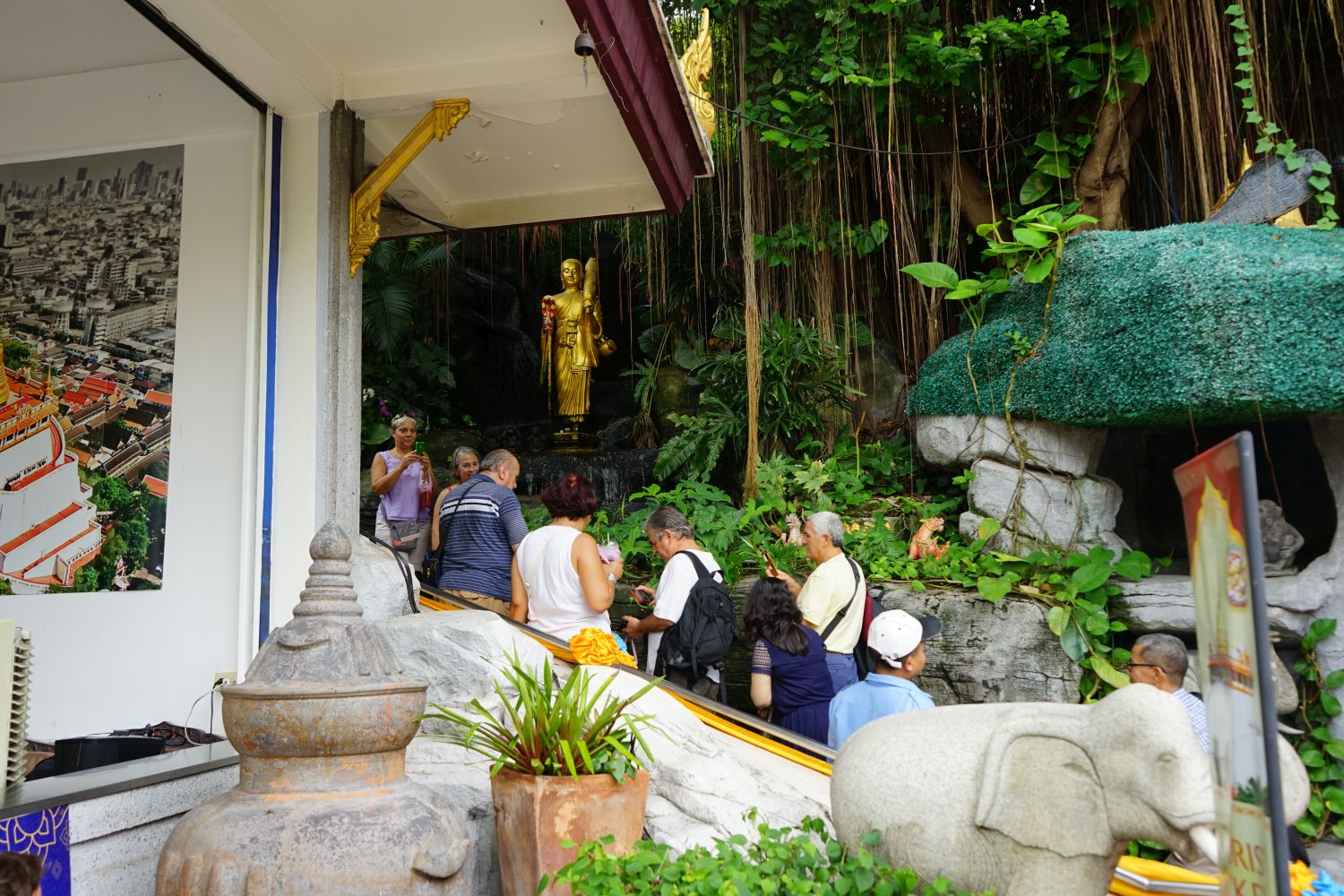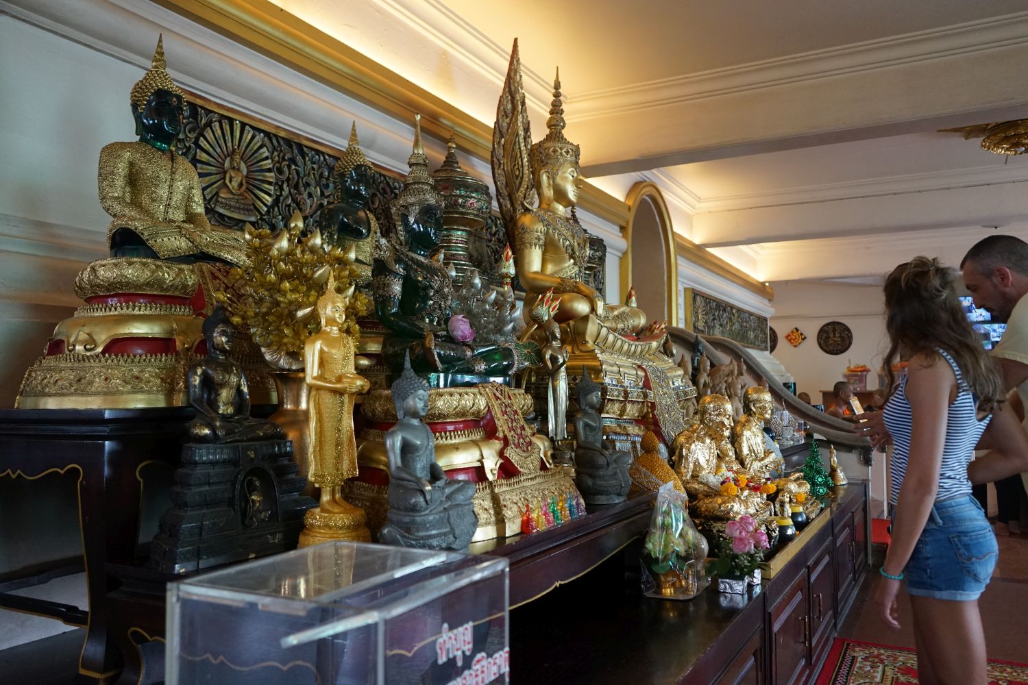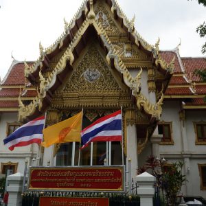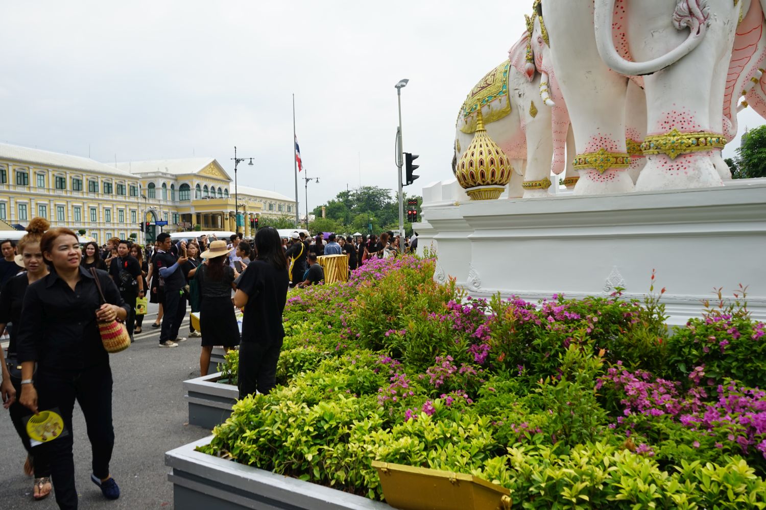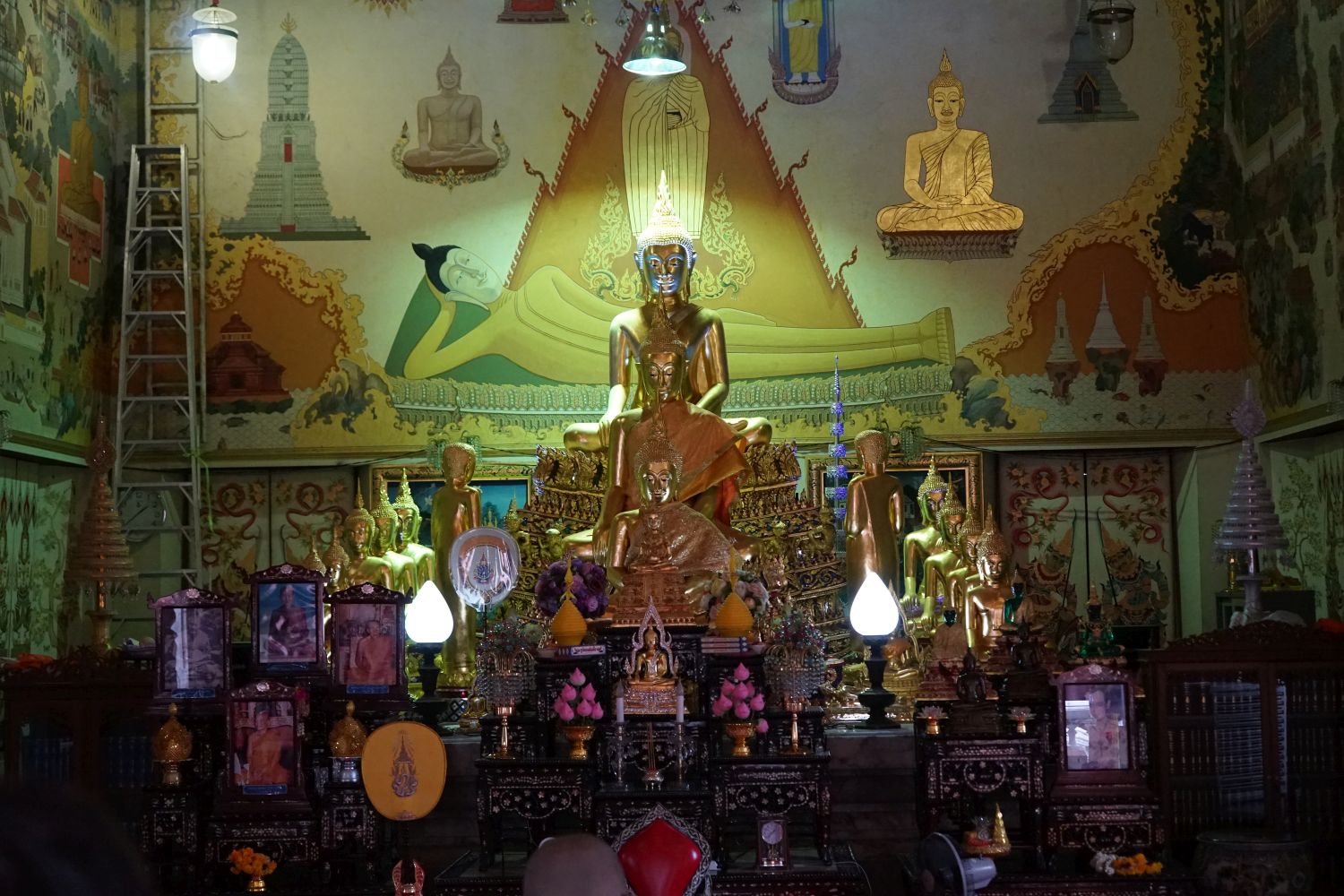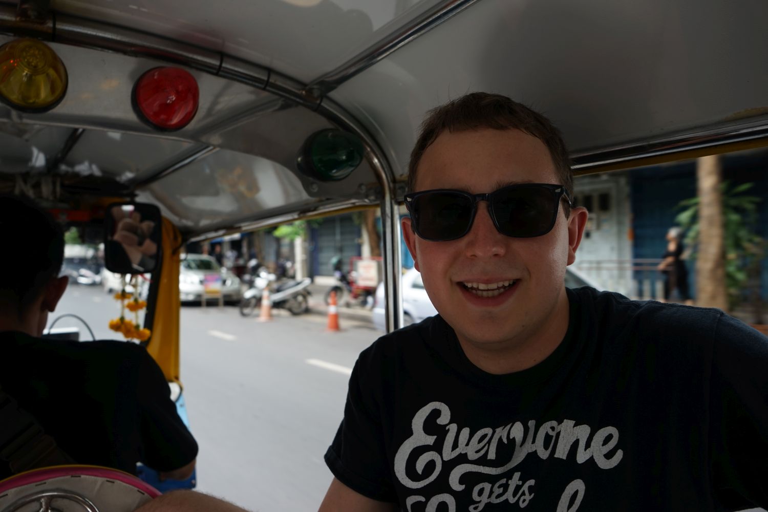 Heute stand etwas Sightseeing auf dem Programm, also schnappten wir uns ein Tuktuk, in der nähe vom Hotel und fuhren zunächst zum Tempel des goldenen Bergs (Wat Saket). Nach 318 Stufen waren wir am Gipfel angekommen und konnten etwas die Aussicht über Bangkok genießen. Nächster Stop war dann der 32 Meter hohe stehende Buddah (Luang Pho Tho) des Wat Intharawihan Tempels. Zum Abschluss Stand eigentlich ein Besuch des Königspalasts auf dem Programm. Dieser ist jedoch aufgrund der aktuellen Staatstrauer geschlossen. Trotzdem hat sich ein Besuch gelohnt. Riesige schwarz gekleidete Menschenmengen reisen aktuell zum Palast, um ihrem König beizustehen. Für uns Außenstehende hat das ganze Treiben etwas von einer Naturkatastrophe: Militär, riesige Wasservorräte und andere Hilfsgüter, die an die Menschen kostenlos verteilt werden. Aufgrund der Staatstrauer wird aktuell kein Alkohol verkauft bzw. ausgeschenkt, wodurch ich die Kao San Road noch nie so leer und vor allem ruhig erlebt habe. Morgen geht es für uns weiter nach Krabi, wo wir hoffentlich etwas weniger durchwachsenes Wetter haben.
