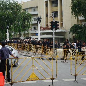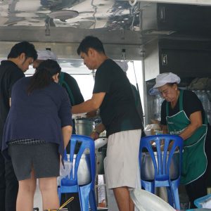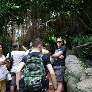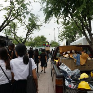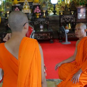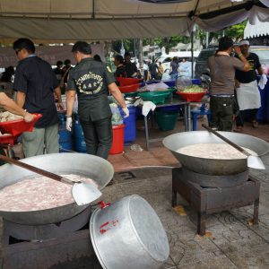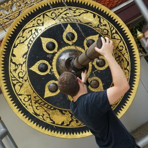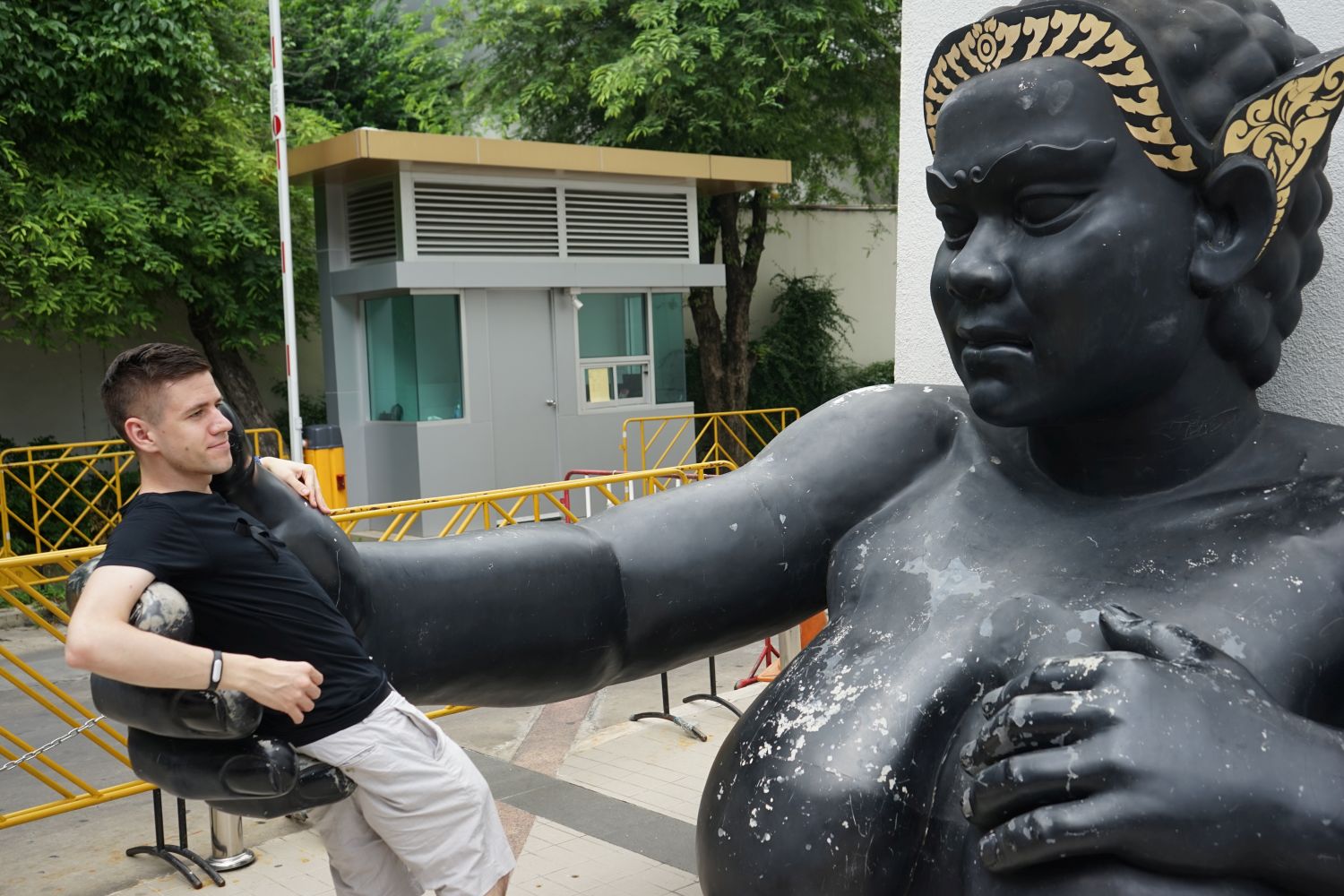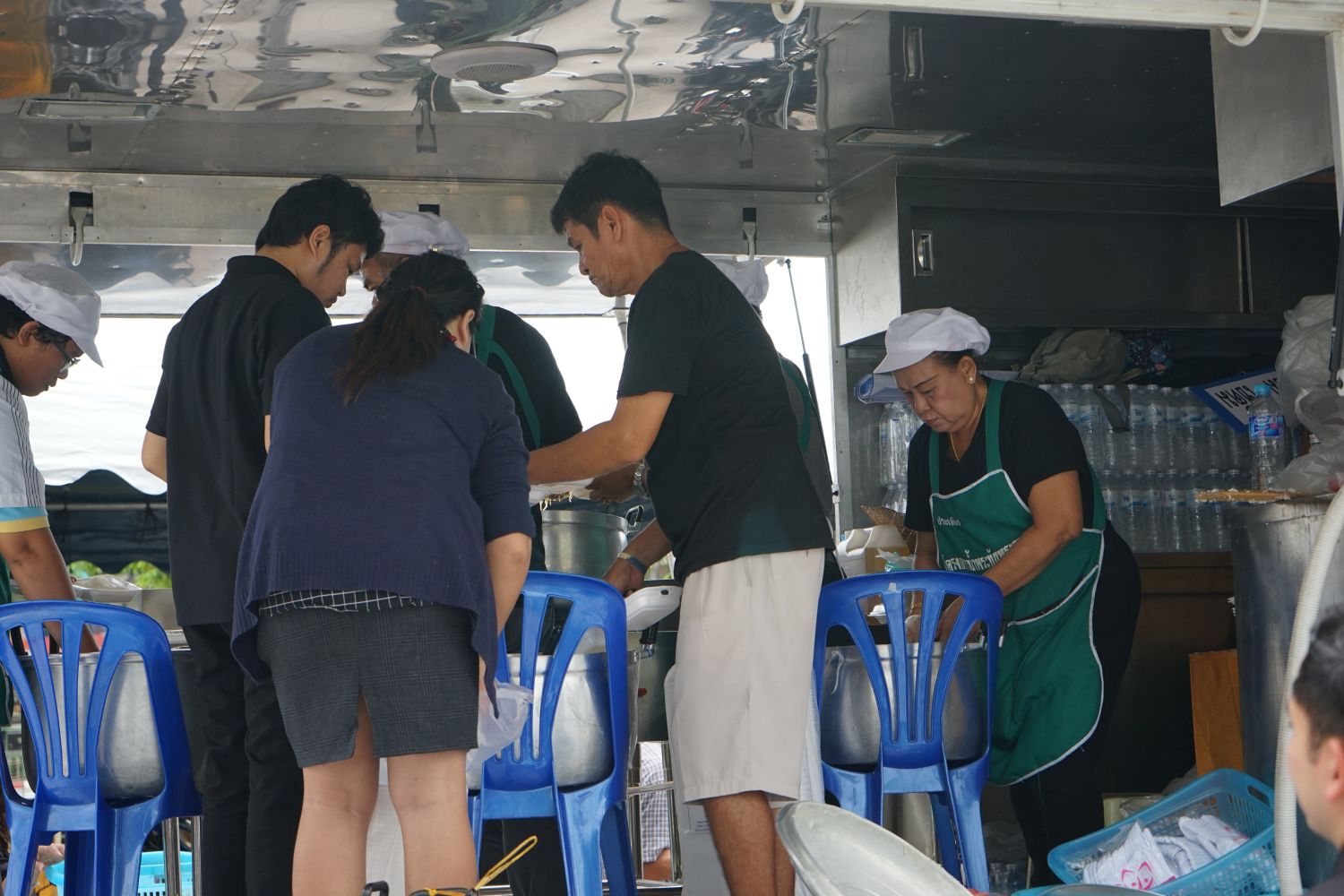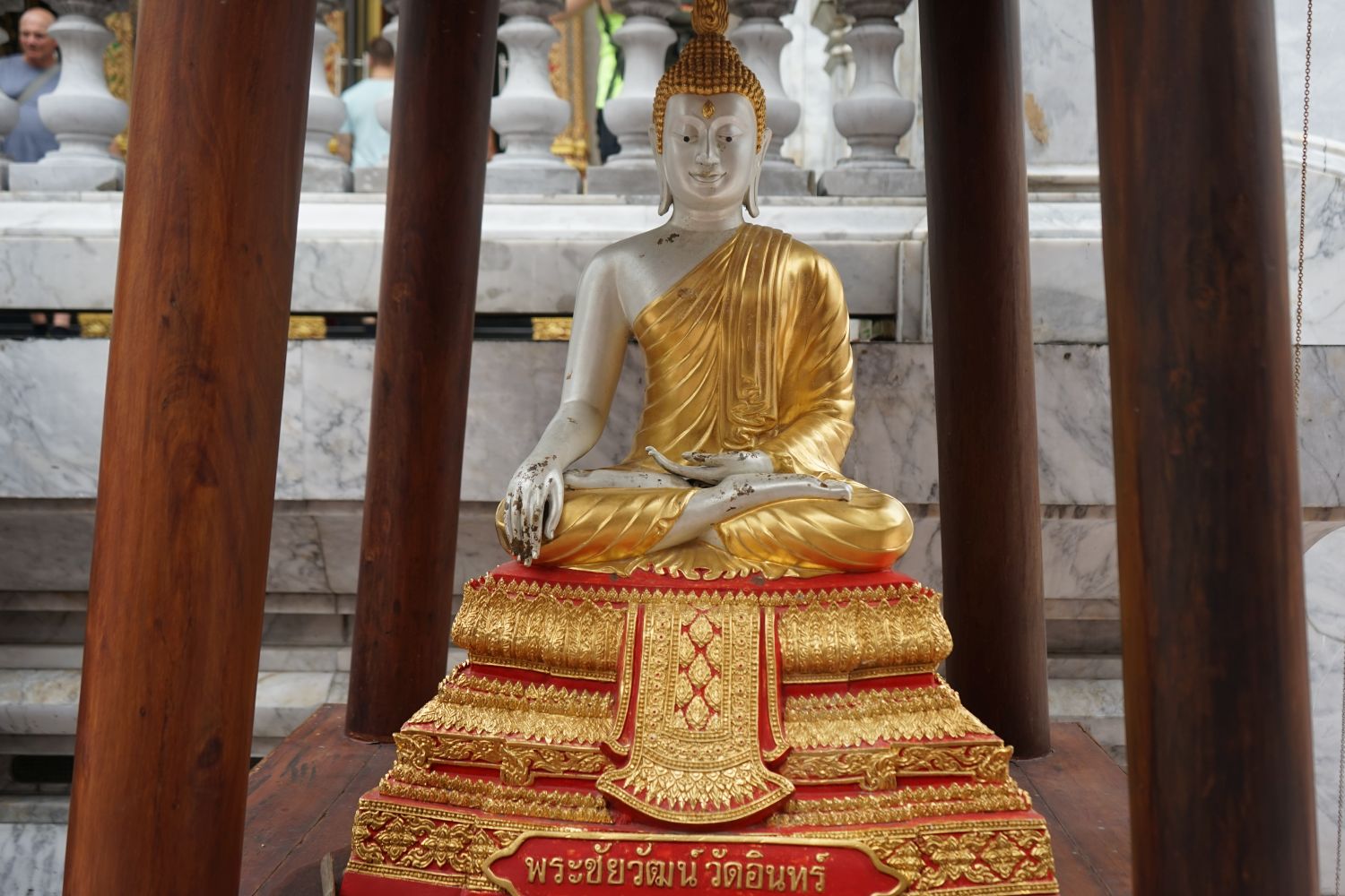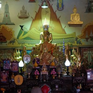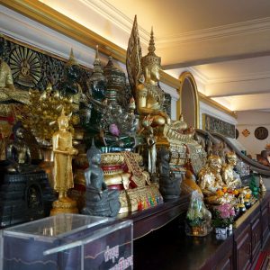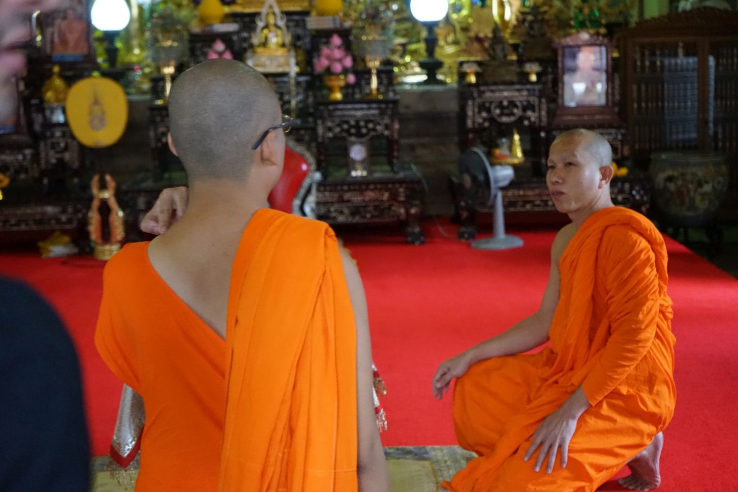 Heute stand etwas Sightseeing auf dem Programm, also schnappten wir uns ein Tuktuk, in der nähe vom Hotel und fuhren zunächst zum Tempel des goldenen Bergs (Wat Saket). Nach 318 Stufen waren wir am Gipfel angekommen und konnten etwas die Aussicht über Bangkok genießen. Nächster Stop war dann der 32 Meter hohe stehende Buddah (Luang Pho Tho) des Wat Intharawihan Tempels. Zum Abschluss Stand eigentlich ein Besuch des Königspalasts auf dem Programm. Dieser ist jedoch aufgrund der aktuellen Staatstrauer geschlossen. Trotzdem hat sich ein Besuch gelohnt. Riesige schwarz gekleidete Menschenmengen reisen aktuell zum Palast, um ihrem König beizustehen. Für uns Außenstehende hat das ganze Treiben etwas von einer Naturkatastrophe: Militär, riesige Wasservorräte und andere Hilfsgüter, die an die Menschen kostenlos verteilt werden. Aufgrund der Staatstrauer wird aktuell kein Alkohol verkauft bzw. ausgeschenkt, wodurch ich die Kao San Road noch nie so leer und vor allem ruhig erlebt habe. Morgen geht es für uns weiter nach Krabi, wo wir hoffentlich etwas weniger durchwachsenes Wetter haben.