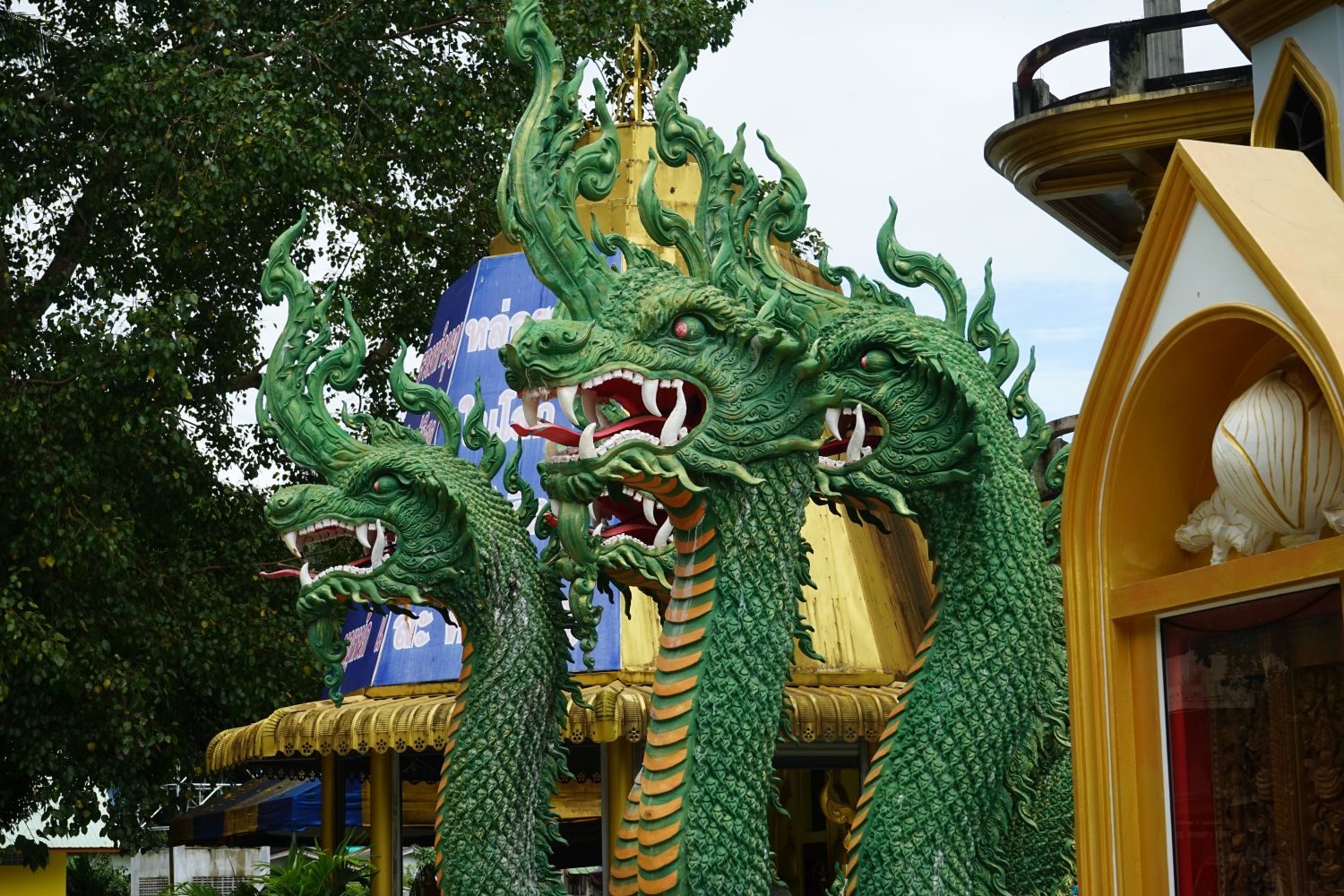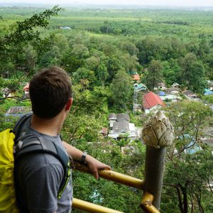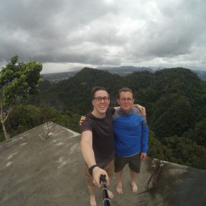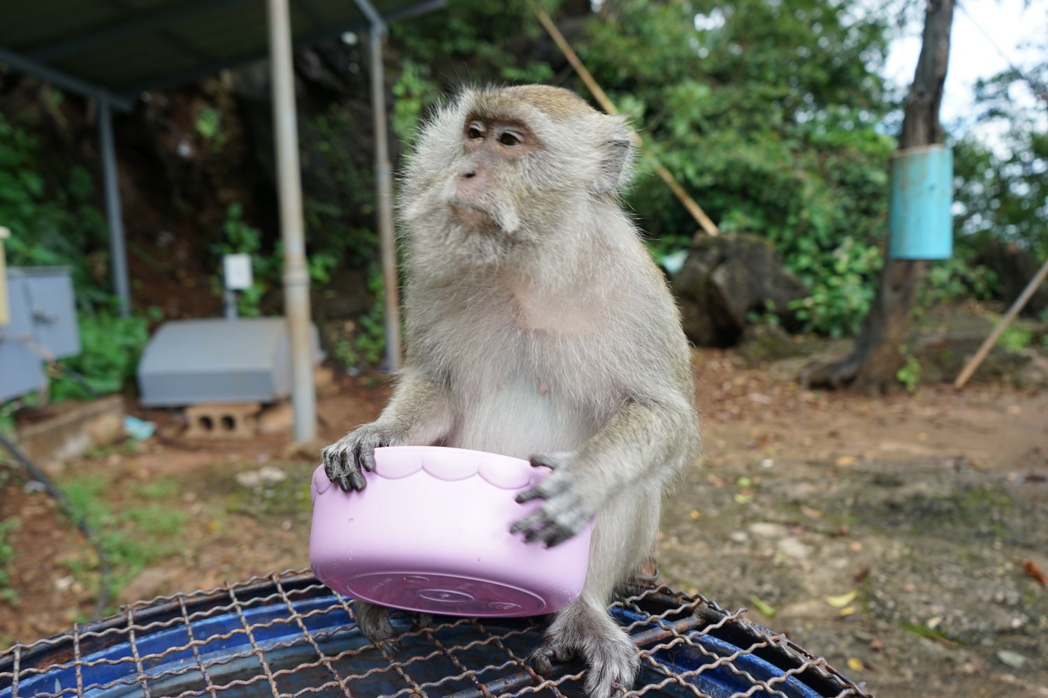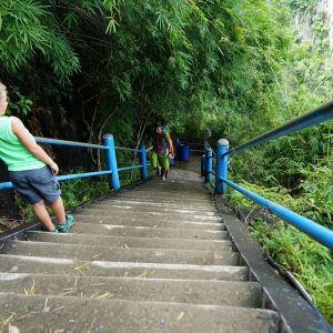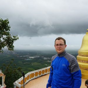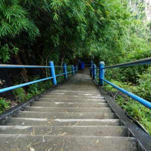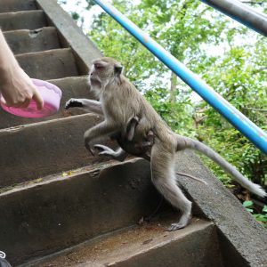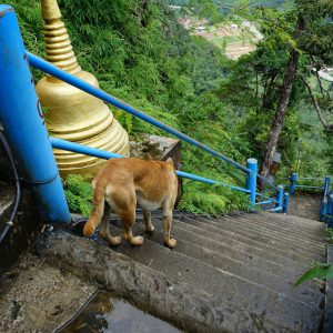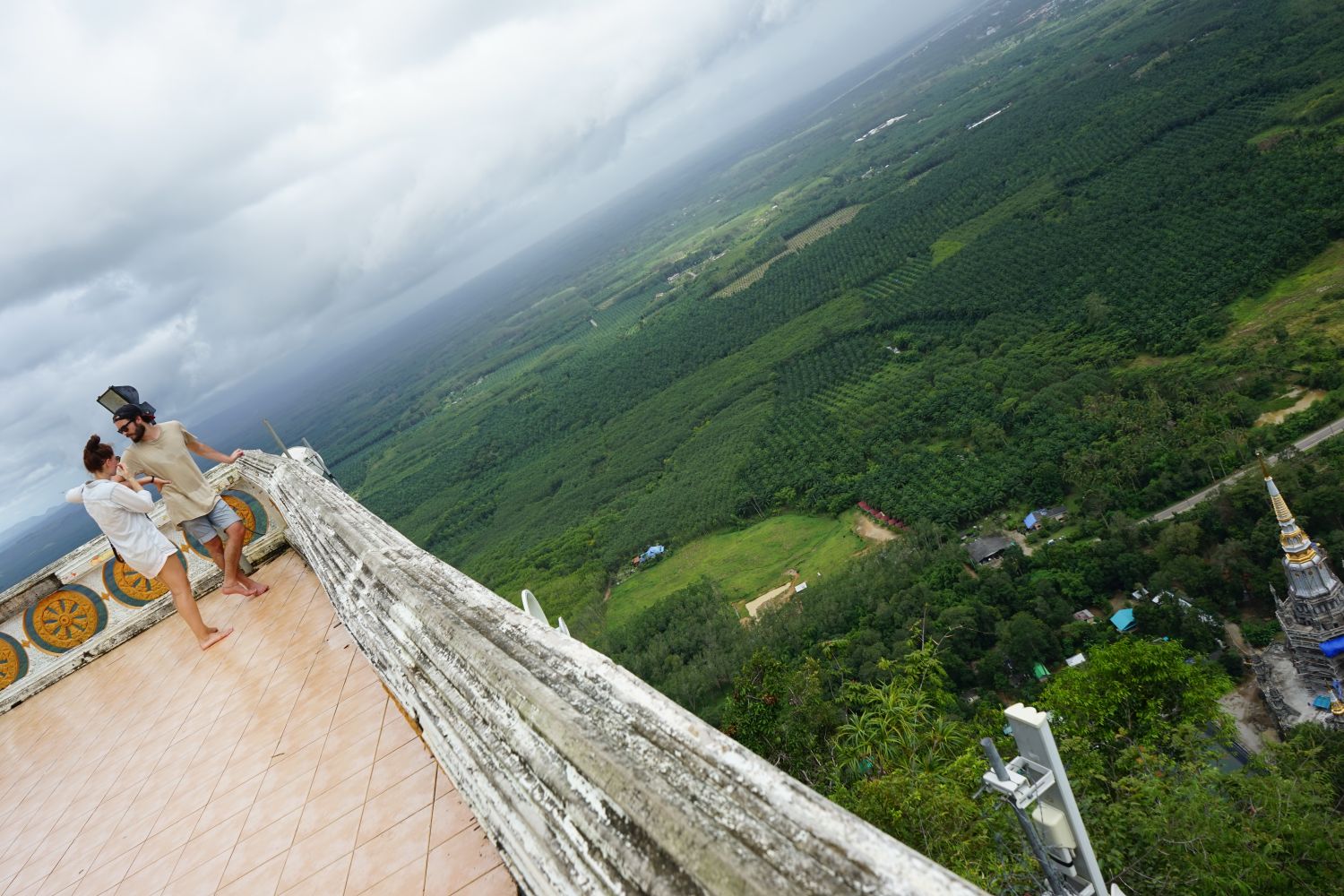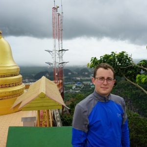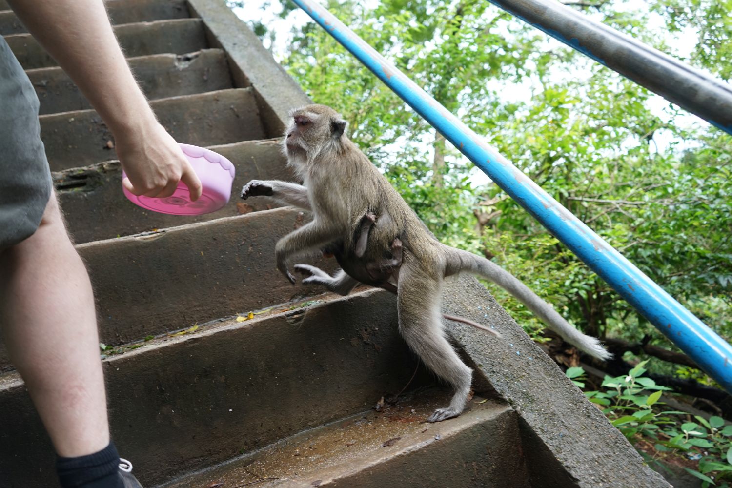 Am nächsten Mittag ging es für Philip und mich zum Wat Tham Suea Tempel (Tiger Cave Temple). Dieser teilt sich in zwei Bereiche auf. Zum einen die Tempelanlage am Fuße des Berges sowie der große sitzende Buddha auf der Bergspitze. Diese kann nur per Fuß erreicht werden, genau gesagt über 1237 Stufen hinweg. Als der Buddha noch im Bau war, wurden Touristen gebeten Baumaterial mit auf die Bergspitze zu tragen, glücklicherweise ist das aktuell nicht mehr so. Was aber nicht bedeutet das der Aufstieg nur im Ansatz leicht gewesen wäre. Nach einem hohen Tempo die erste Hälfte der Stufen kroch ich förmlich nur noch die letzten Stufen hoch. Als wir dann schweißgebadet am Gipfel ankamen, wurden wir zumindest mit einer herrlichen Aussicht sowie einer kühlen Brise belohnt. Nach gut einer drei viertel Stunde ausschwitzen und Bilder machen ging es dann wieder den Berg hinunter, der Abstieg verlief bis auf einen Regenschauer problemfrei und den Rest des Tages wurde faul im Hotelzimmer verbracht.