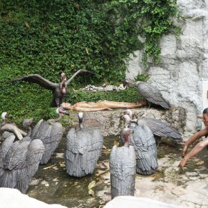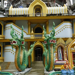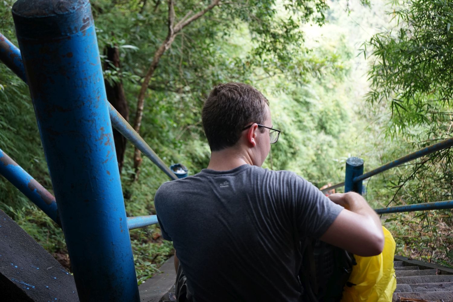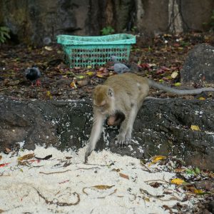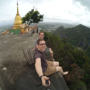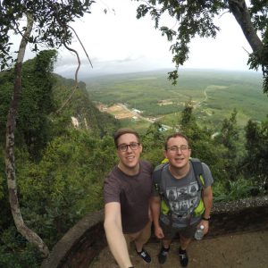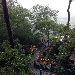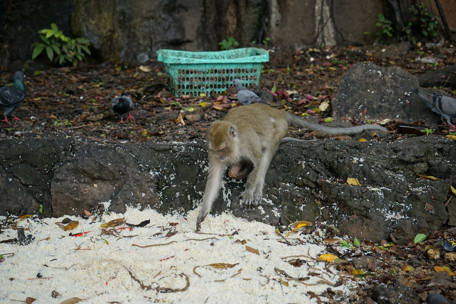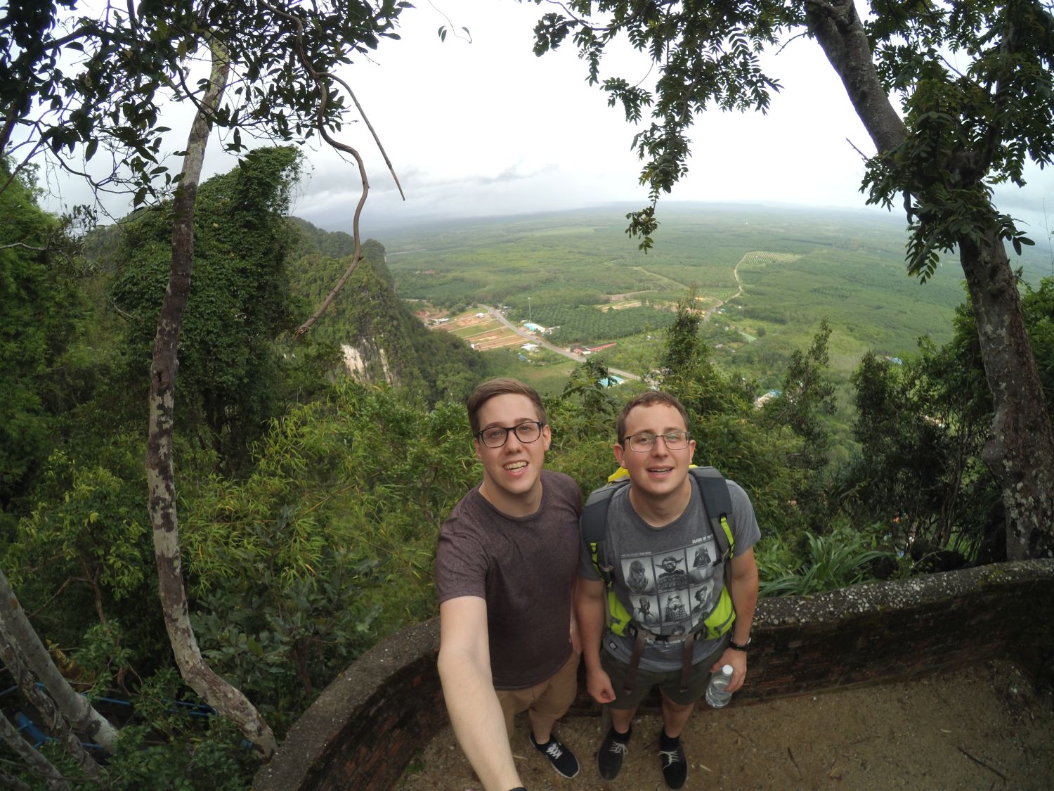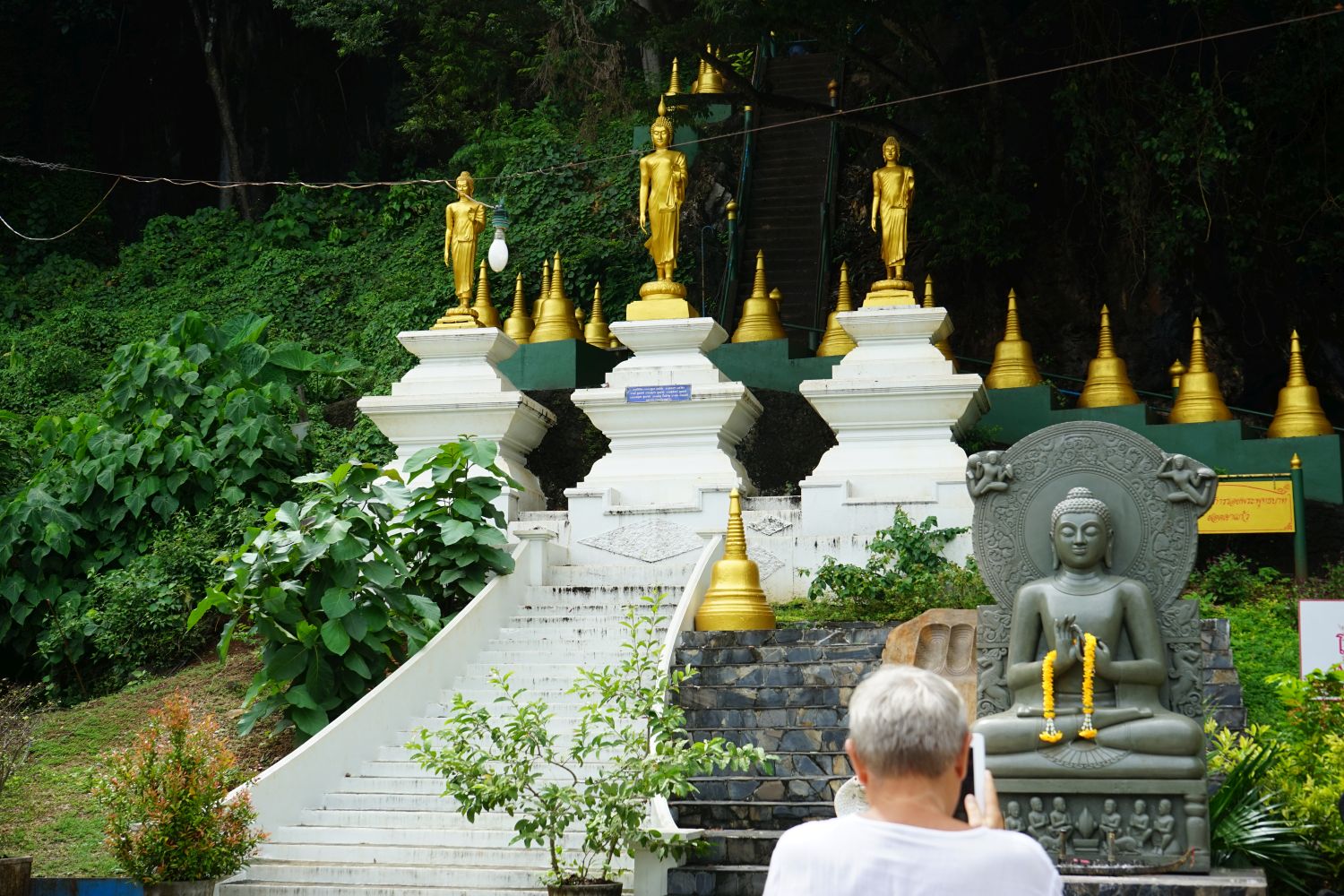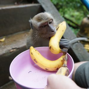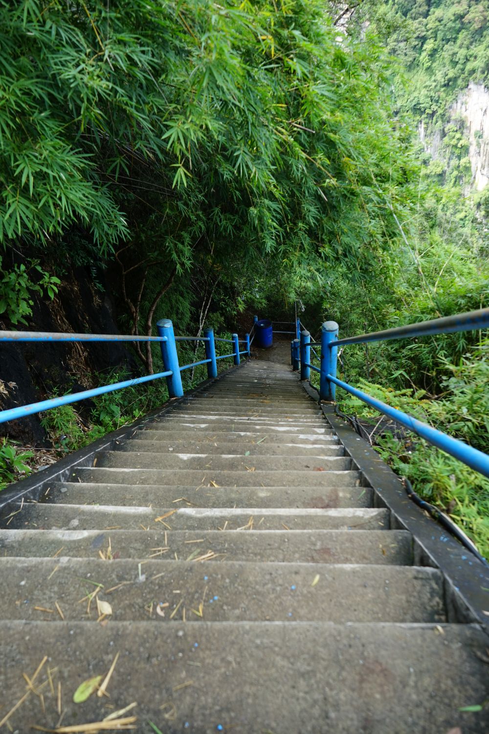 Am nächsten Mittag ging es für Philip und mich zum Wat Tham Suea Tempel (Tiger Cave Temple). Dieser teilt sich in zwei Bereiche auf. Zum einen die Tempelanlage am Fuße des Berges sowie der große sitzende Buddha auf der Bergspitze. Diese kann nur per Fuß erreicht werden, genau gesagt über 1237 Stufen hinweg. Als der Buddha noch im Bau war, wurden Touristen gebeten Baumaterial mit auf die Bergspitze zu tragen, glücklicherweise ist das aktuell nicht mehr so. Was aber nicht bedeutet das der Aufstieg nur im Ansatz leicht gewesen wäre. Nach einem hohen Tempo die erste Hälfte der Stufen kroch ich förmlich nur noch die letzten Stufen hoch. Als wir dann schweißgebadet am Gipfel ankamen, wurden wir zumindest mit einer herrlichen Aussicht sowie einer kühlen Brise belohnt. Nach gut einer drei viertel Stunde ausschwitzen und Bilder machen ging es dann wieder den Berg hinunter, der Abstieg verlief bis auf einen Regenschauer problemfrei und den Rest des Tages wurde faul im Hotelzimmer verbracht.
