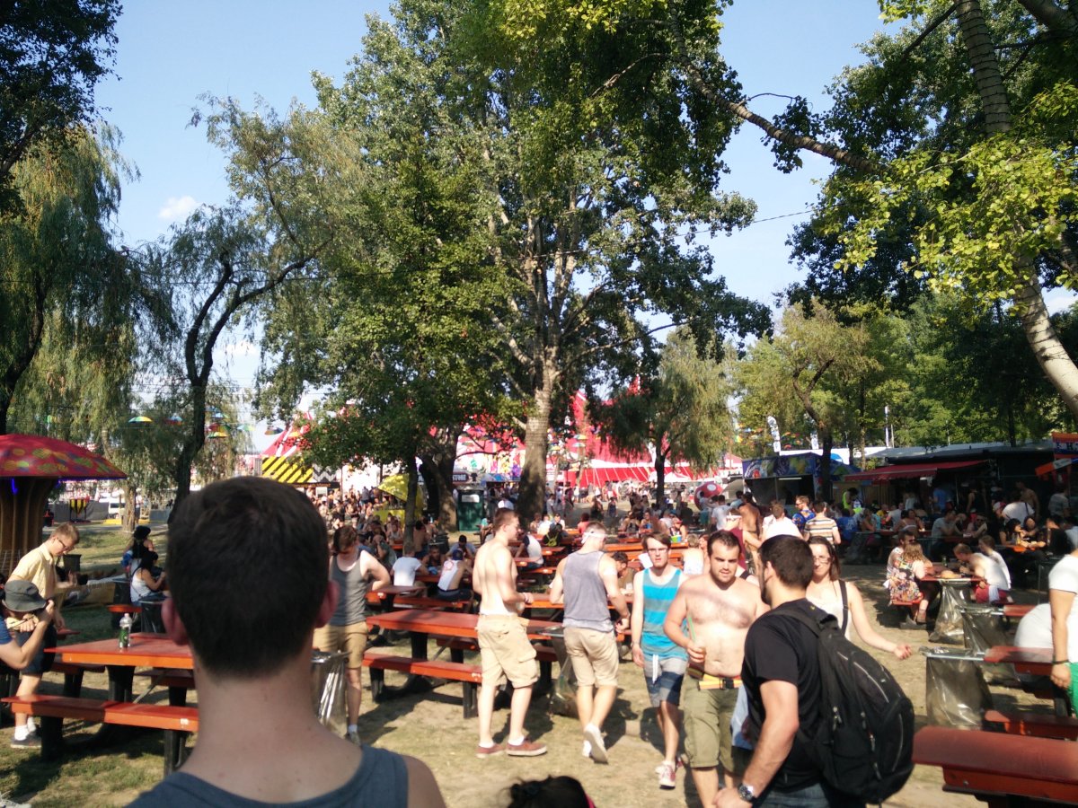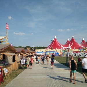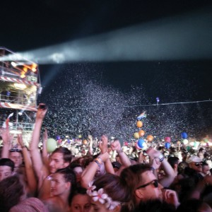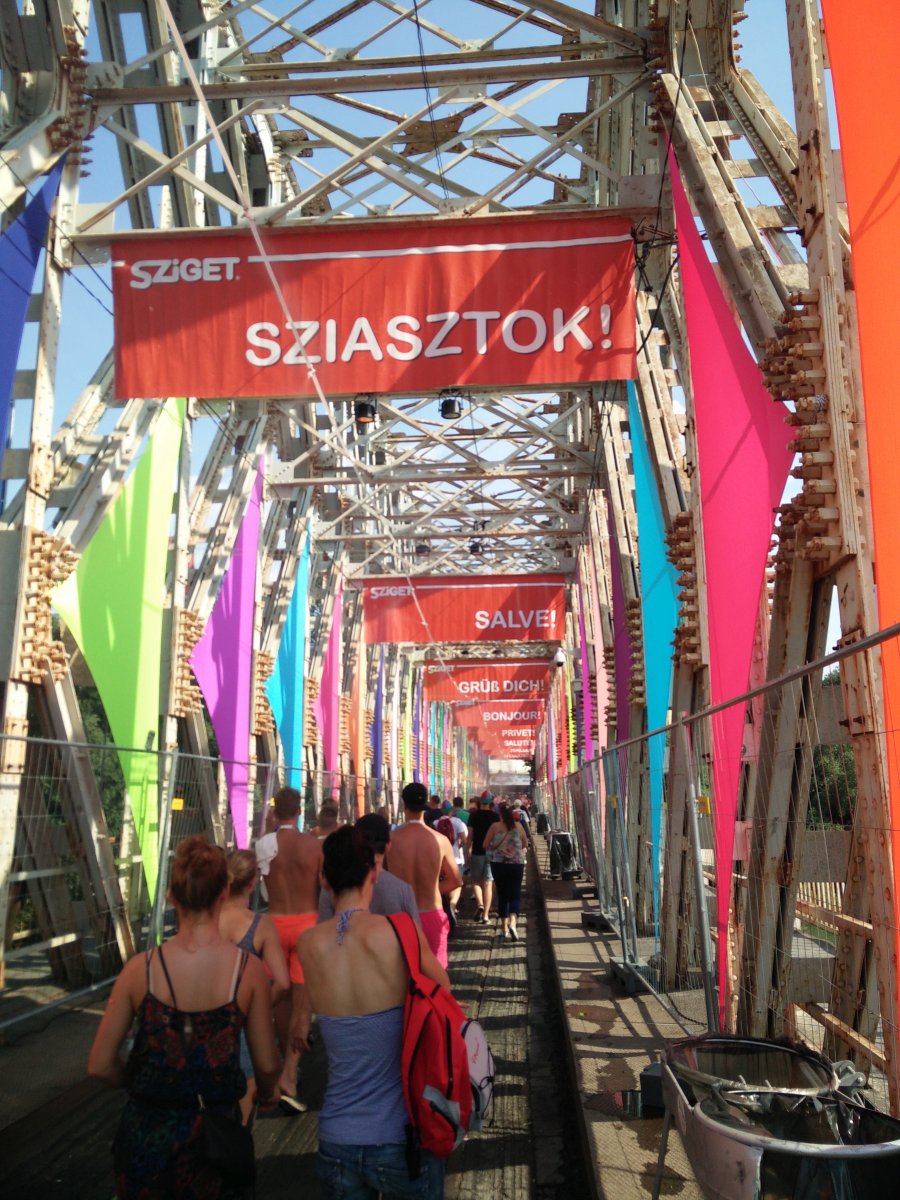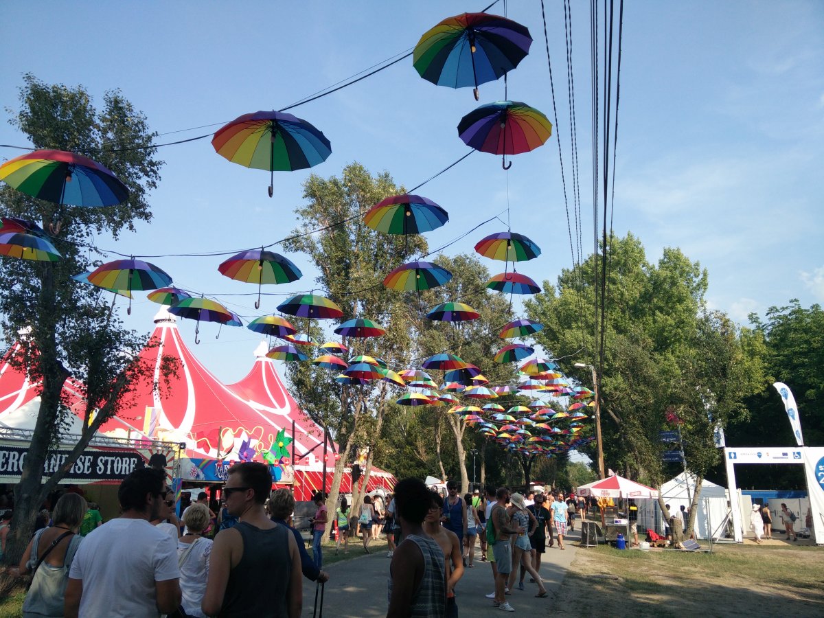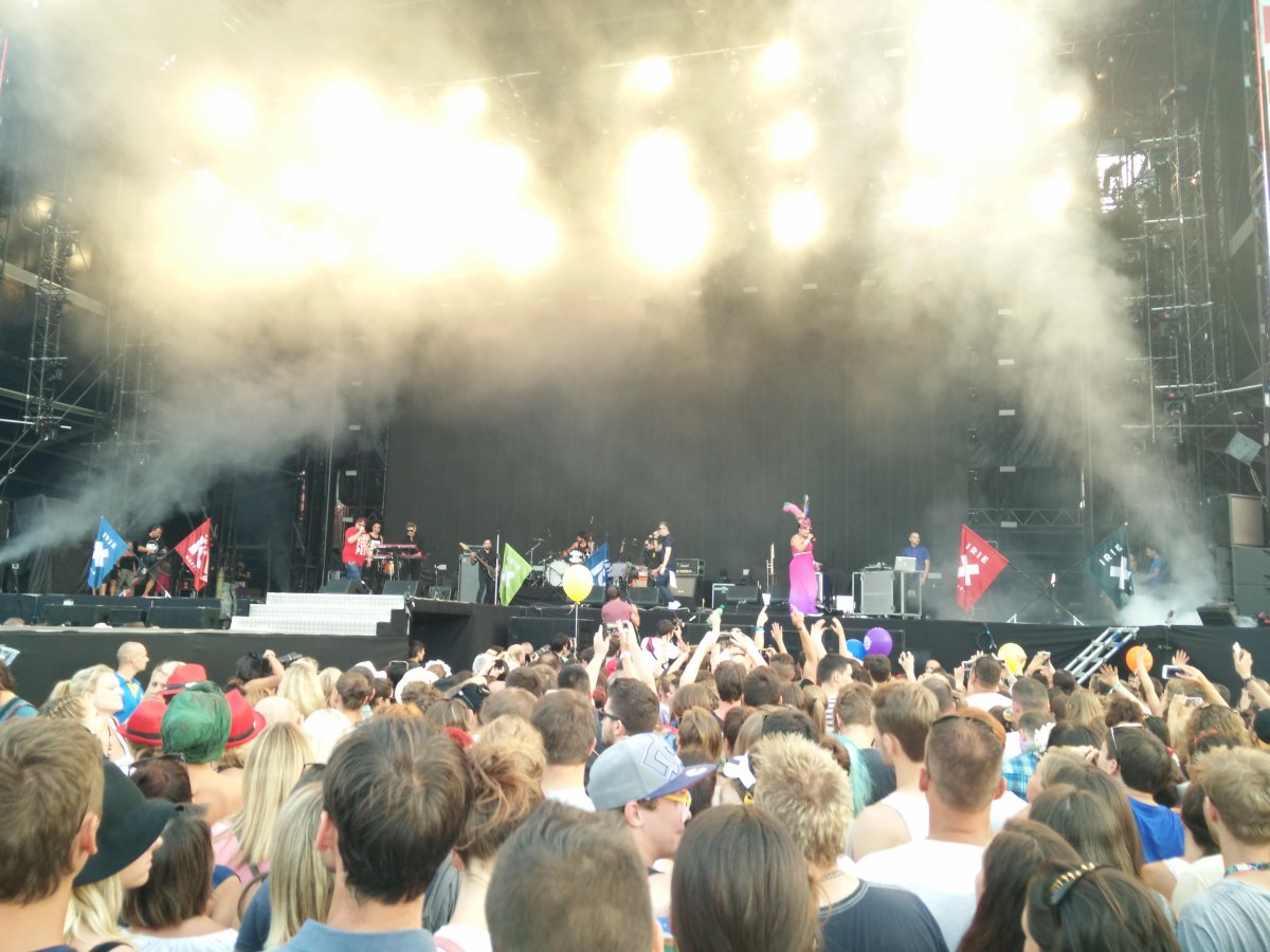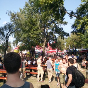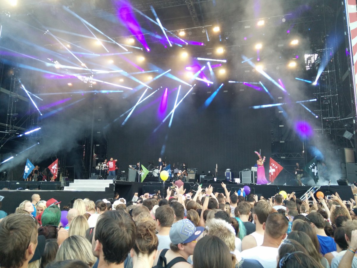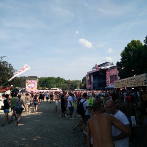 Heute war es endlich soweit und das Festival öffnete seine Pforten. Nach dem Frühstück ging es also direkt zum Gelände, wo wir unsere Bändchen und Pässe erhalten haben. Auf die Insel gelangt man über eine alte Eisenbahnbrücke, die für das Festival rausgeputzt wurde. Nach den ersten Schritten auf der Insel haben wir zum ersten mal realisiert wie riesig das Festival eigentlich ist. Überall sind Bühnen und Kunstobjekte. Nach dem wir uns die Hauptbühne angeschaut haben ging es zu einer kleineren Bühne, wo eine deutsche Band auftrat. Anschließend waren wir dann auf der Ballonparty, bei Irrie Maffia und dann bei Robbie Williams. Gegen 4 Uhr waren wir dann wieder zurück im Apartment.