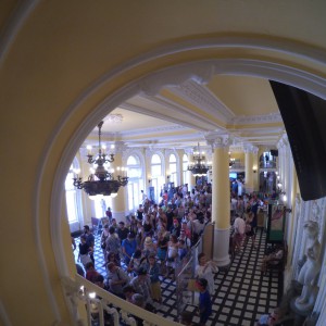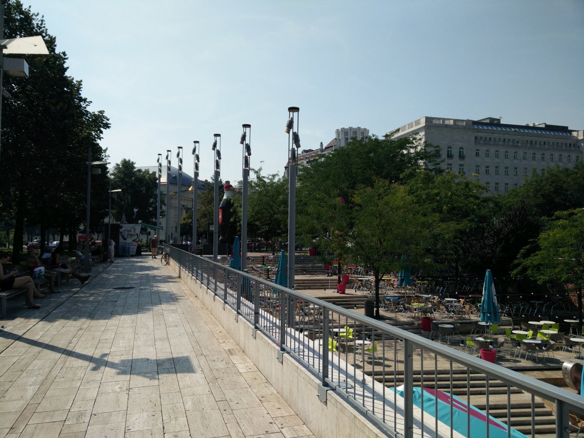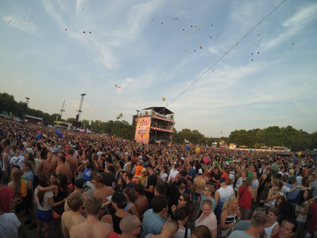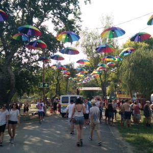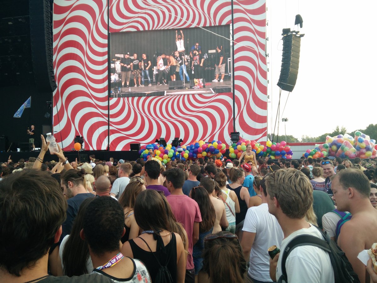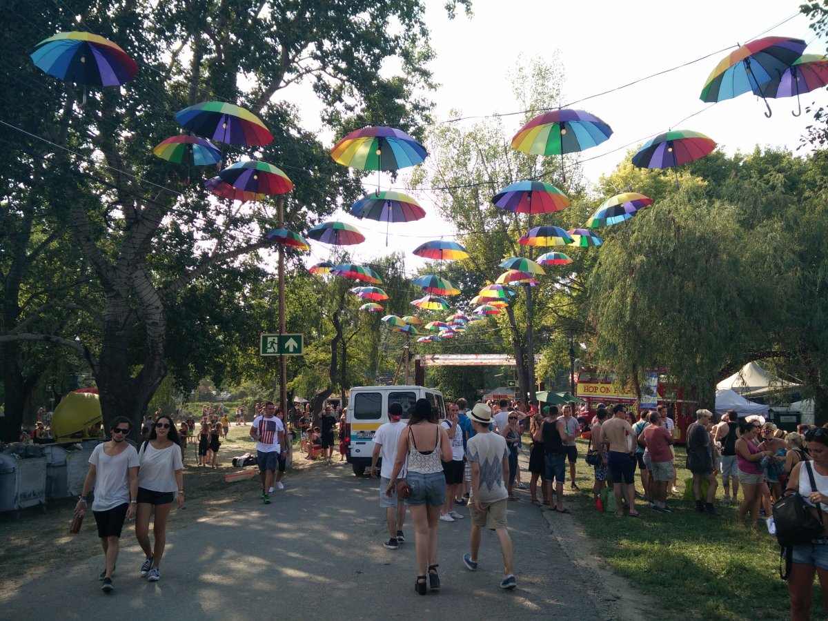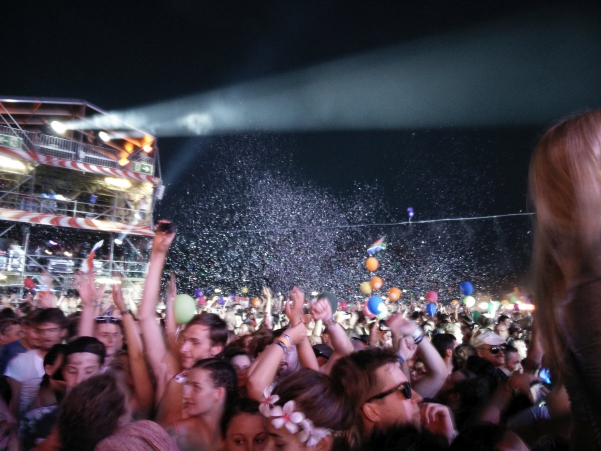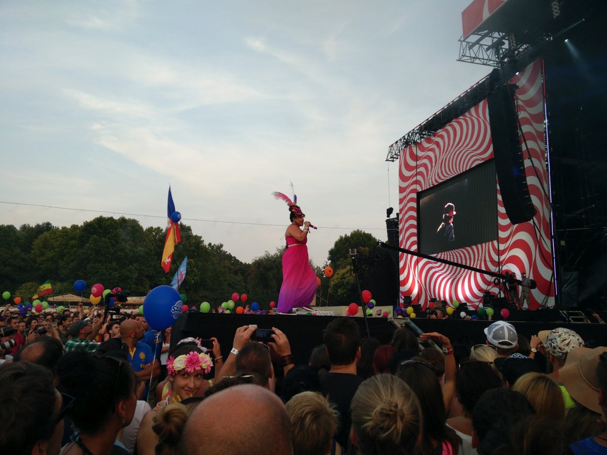 Heute war es endlich soweit und das Festival öffnete seine Pforten. Nach dem Frühstück ging es also direkt zum Gelände, wo wir unsere Bändchen und Pässe erhalten haben. Auf die Insel gelangt man über eine alte Eisenbahnbrücke, die für das Festival rausgeputzt wurde. Nach den ersten Schritten auf der Insel haben wir zum ersten mal realisiert wie riesig das Festival eigentlich ist. Überall sind Bühnen und Kunstobjekte. Nach dem wir uns die Hauptbühne angeschaut haben ging es zu einer kleineren Bühne, wo eine deutsche Band auftrat. Anschließend waren wir dann auf der Ballonparty, bei Irrie Maffia und dann bei Robbie Williams. Gegen 4 Uhr waren wir dann wieder zurück im Apartment.