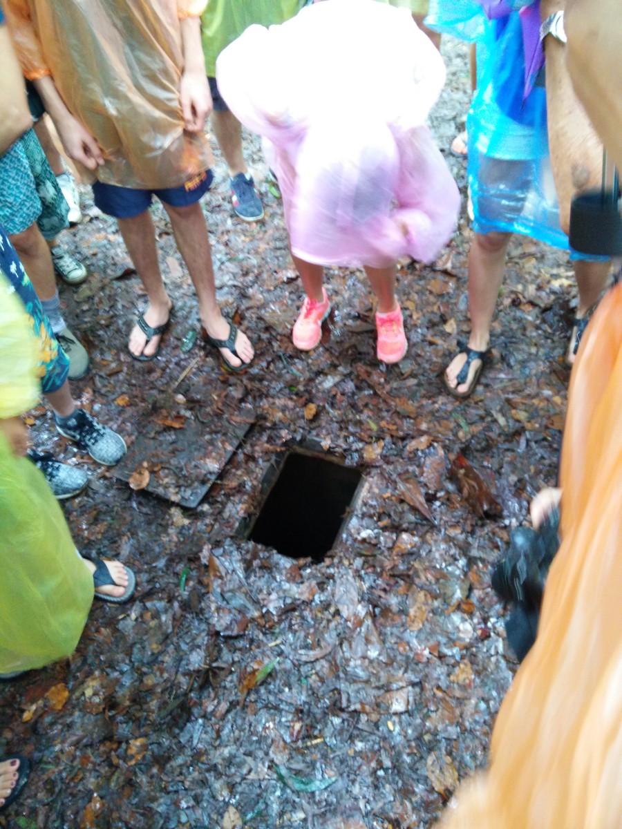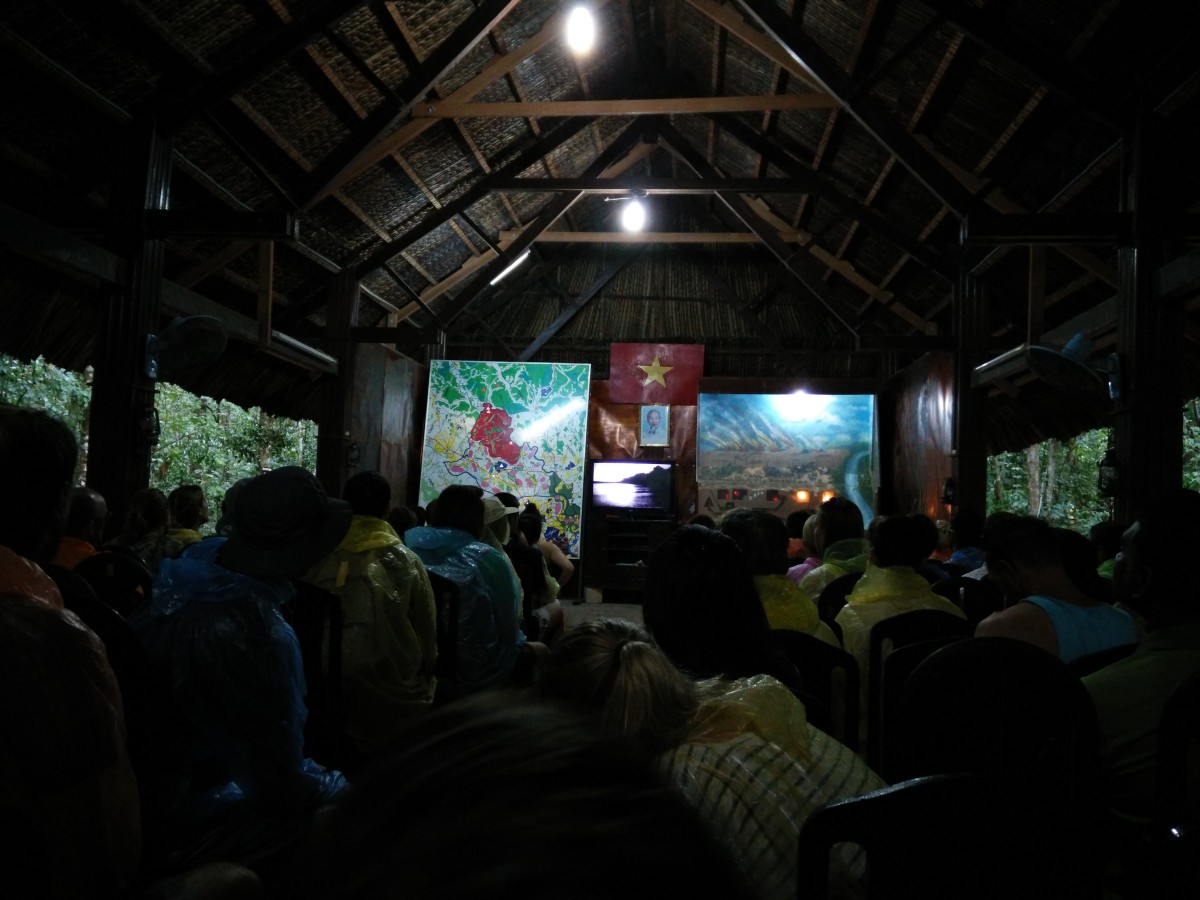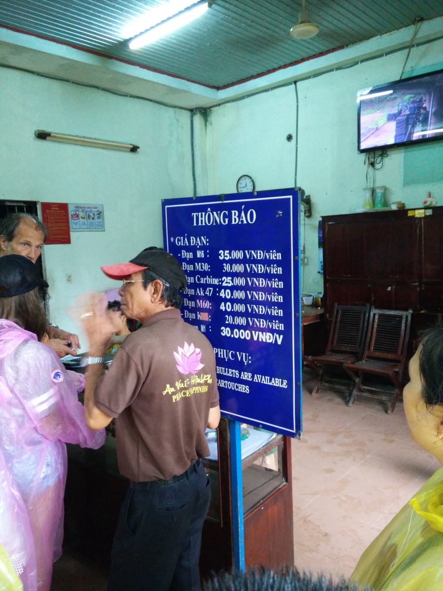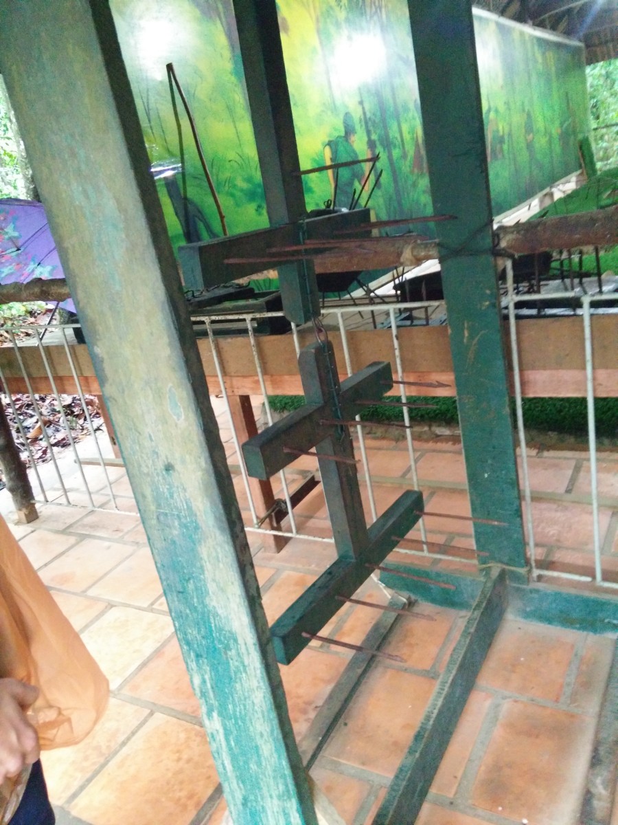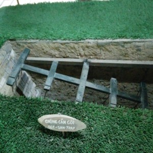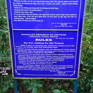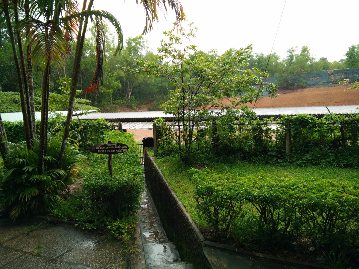 Das beschreibt im Groben und Ganzen den heutigen Ausflug zum Cu Chi Tunnelnetzwerk. Als erstes ging es jedoch in eine Art Behindertenwerkstatt die von der Regierung subventioniert wird und in der Menschen arbeiten die Aufgrund der von den USA eingesetzten Dioxinen behindert zur Welt kamen. Sie setzten Eierschalen in mühevoller Handarbeit zu Bildern zusammen, die dann über mehrere Arbeitsschritte gehärtet und bemalt werden. Danach ging es dann zum eigentlichen Ziel des Ausflugs. Zu nächst gab es Informationen über die allgemeine Kriegsführung der Vietcong, sowie den Bau der Tunnel und den damit verbundene Fallen. Nach einem Zwischenstopp an einem Schießstand, bei dem das abfeuern einer AK47 mit 10 Schuss bei etwa 17€ lag, wurde ein 20m langer Tunnel durchkrochen. Bei der Enge und Hitze alles andere als angenehm. Abends waren wir dann noch mit Philips Bruder, der in Saigon wohnt, Essen.