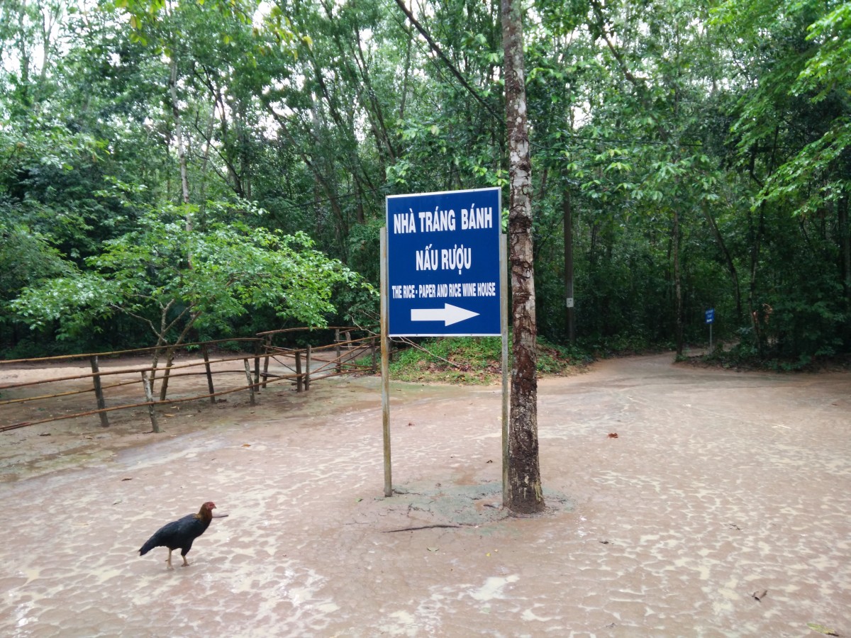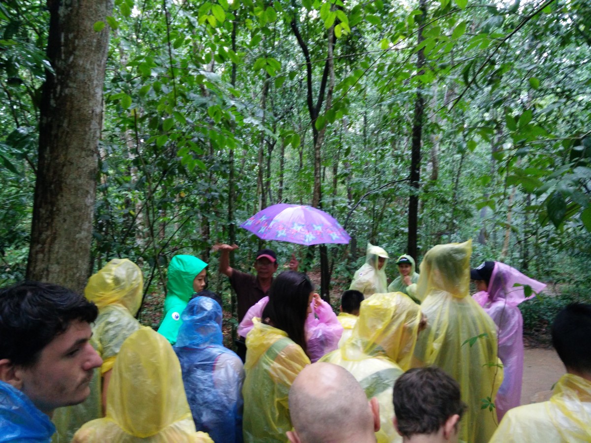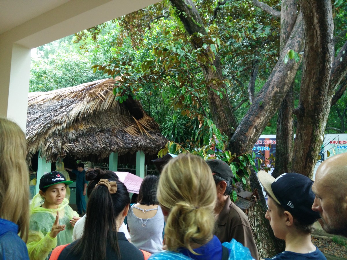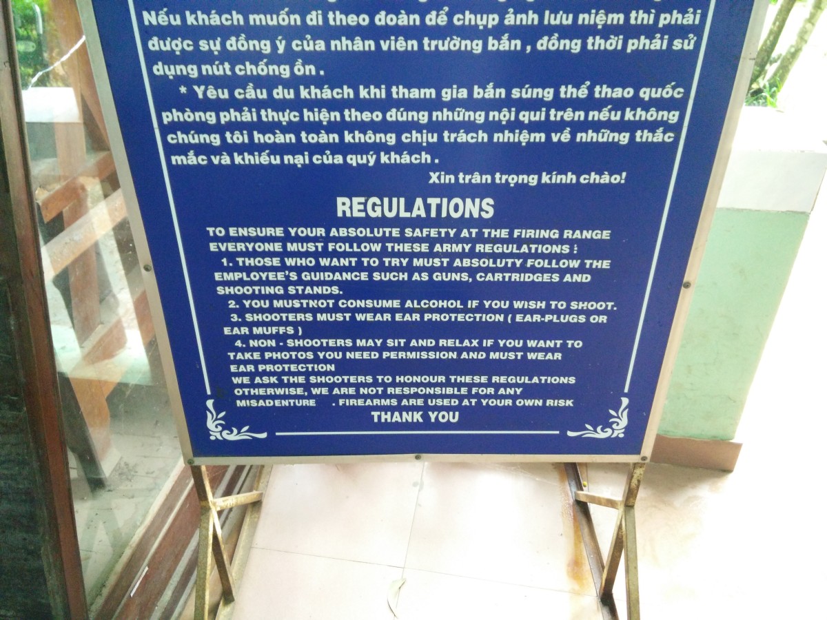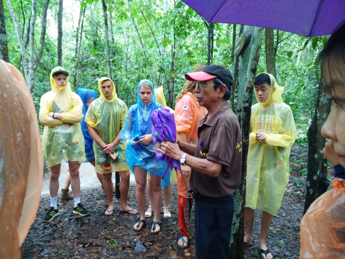 Das beschreibt im Groben und Ganzen den heutigen Ausflug zum Cu Chi Tunnelnetzwerk. Als erstes ging es jedoch in eine Art Behindertenwerkstatt die von der Regierung subventioniert wird und in der Menschen arbeiten die Aufgrund der von den USA eingesetzten Dioxinen behindert zur Welt kamen. Sie setzten Eierschalen in mühevoller Handarbeit zu Bildern zusammen, die dann über mehrere Arbeitsschritte gehärtet und bemalt werden. Danach ging es dann zum eigentlichen Ziel des Ausflugs. Zu nächst gab es Informationen über die allgemeine Kriegsführung der Vietcong, sowie den Bau der Tunnel und den damit verbundene Fallen. Nach einem Zwischenstopp an einem Schießstand, bei dem das abfeuern einer AK47 mit 10 Schuss bei etwa 17€ lag, wurde ein 20m langer Tunnel durchkrochen. Bei der Enge und Hitze alles andere als angenehm. Abends waren wir dann noch mit Philips Bruder, der in Saigon wohnt, Essen.