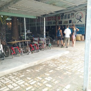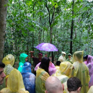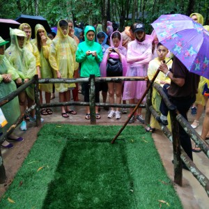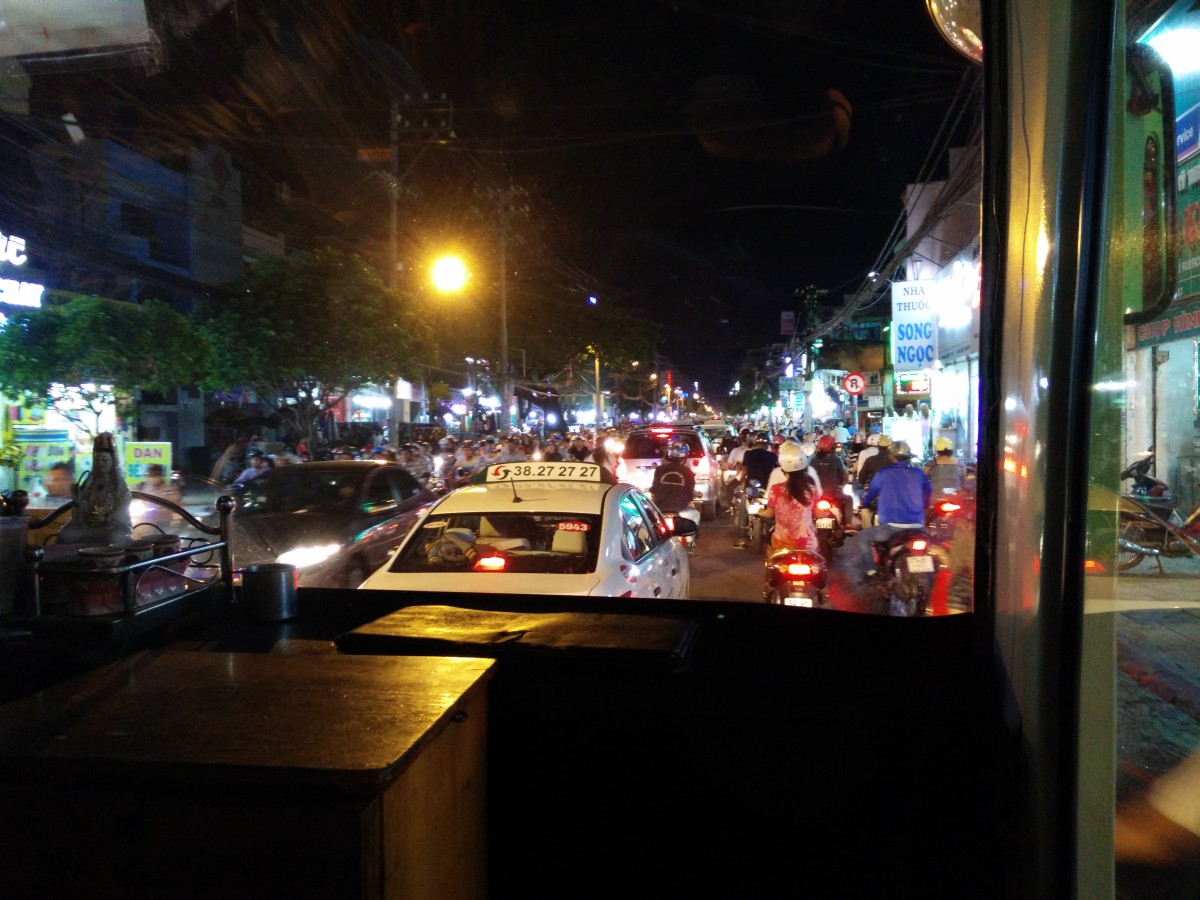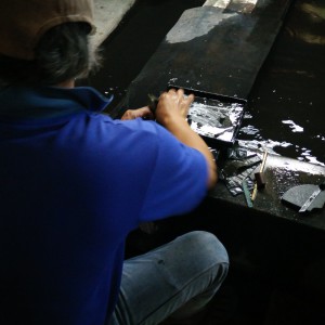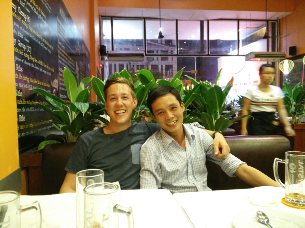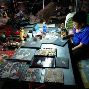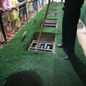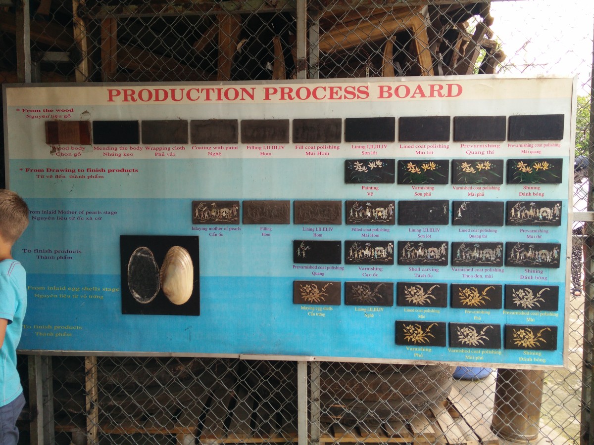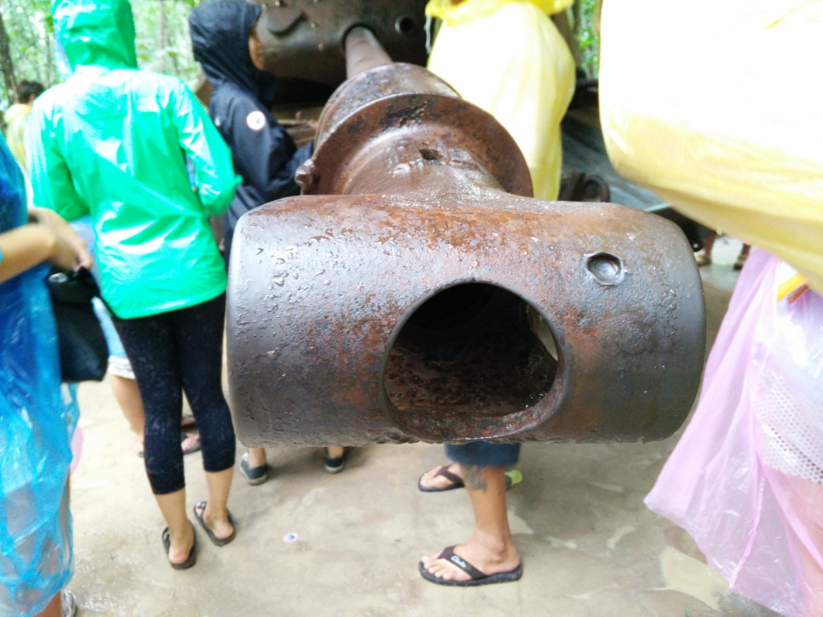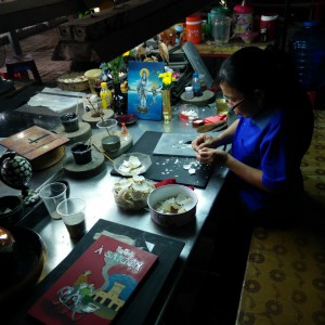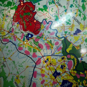 Das beschreibt im Groben und Ganzen den heutigen Ausflug zum Cu Chi Tunnelnetzwerk. Als erstes ging es jedoch in eine Art Behindertenwerkstatt die von der Regierung subventioniert wird und in der Menschen arbeiten die Aufgrund der von den USA eingesetzten Dioxinen behindert zur Welt kamen. Sie setzten Eierschalen in mühevoller Handarbeit zu Bildern zusammen, die dann über mehrere Arbeitsschritte gehärtet und bemalt werden. Danach ging es dann zum eigentlichen Ziel des Ausflugs. Zu nächst gab es Informationen über die allgemeine Kriegsführung der Vietcong, sowie den Bau der Tunnel und den damit verbundene Fallen. Nach einem Zwischenstopp an einem Schießstand, bei dem das abfeuern einer AK47 mit 10 Schuss bei etwa 17€ lag, wurde ein 20m langer Tunnel durchkrochen. Bei der Enge und Hitze alles andere als angenehm. Abends waren wir dann noch mit Philips Bruder, der in Saigon wohnt, Essen.